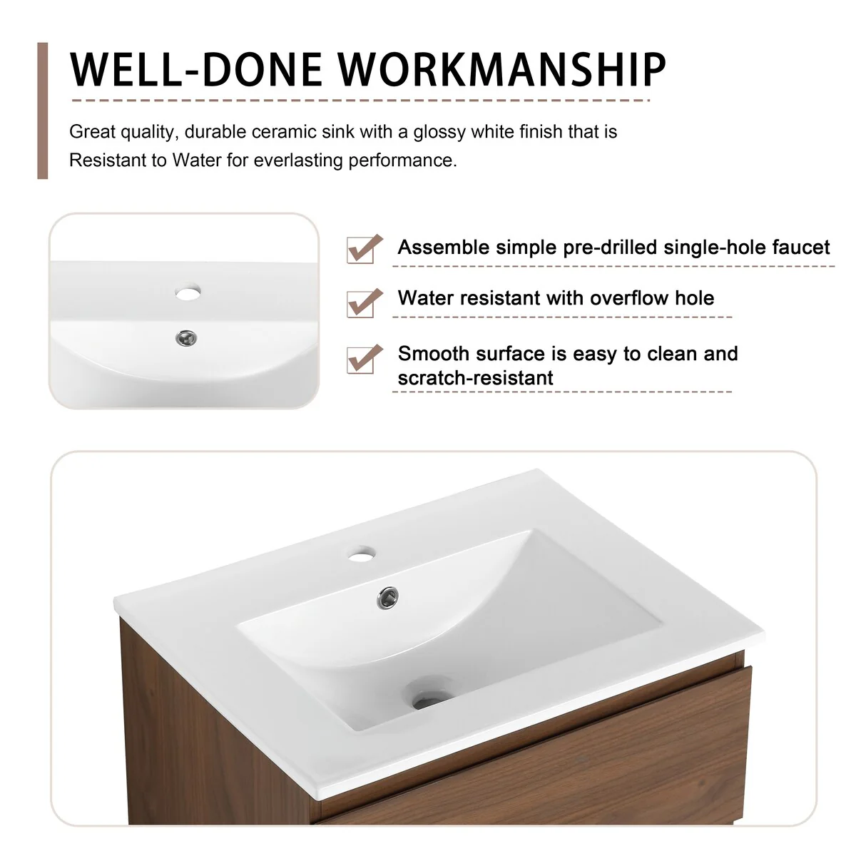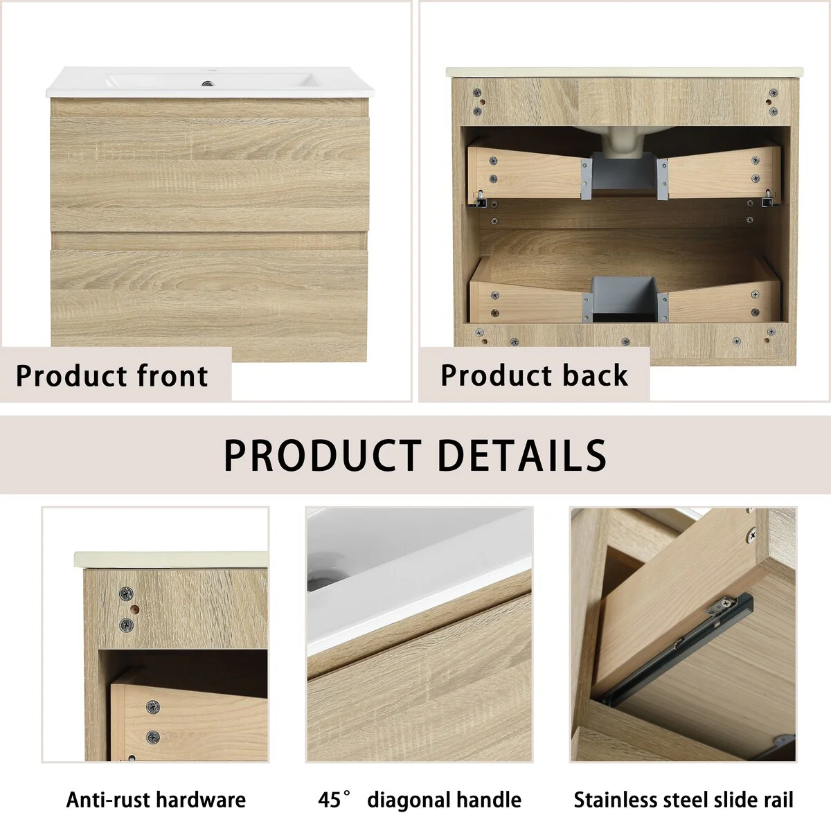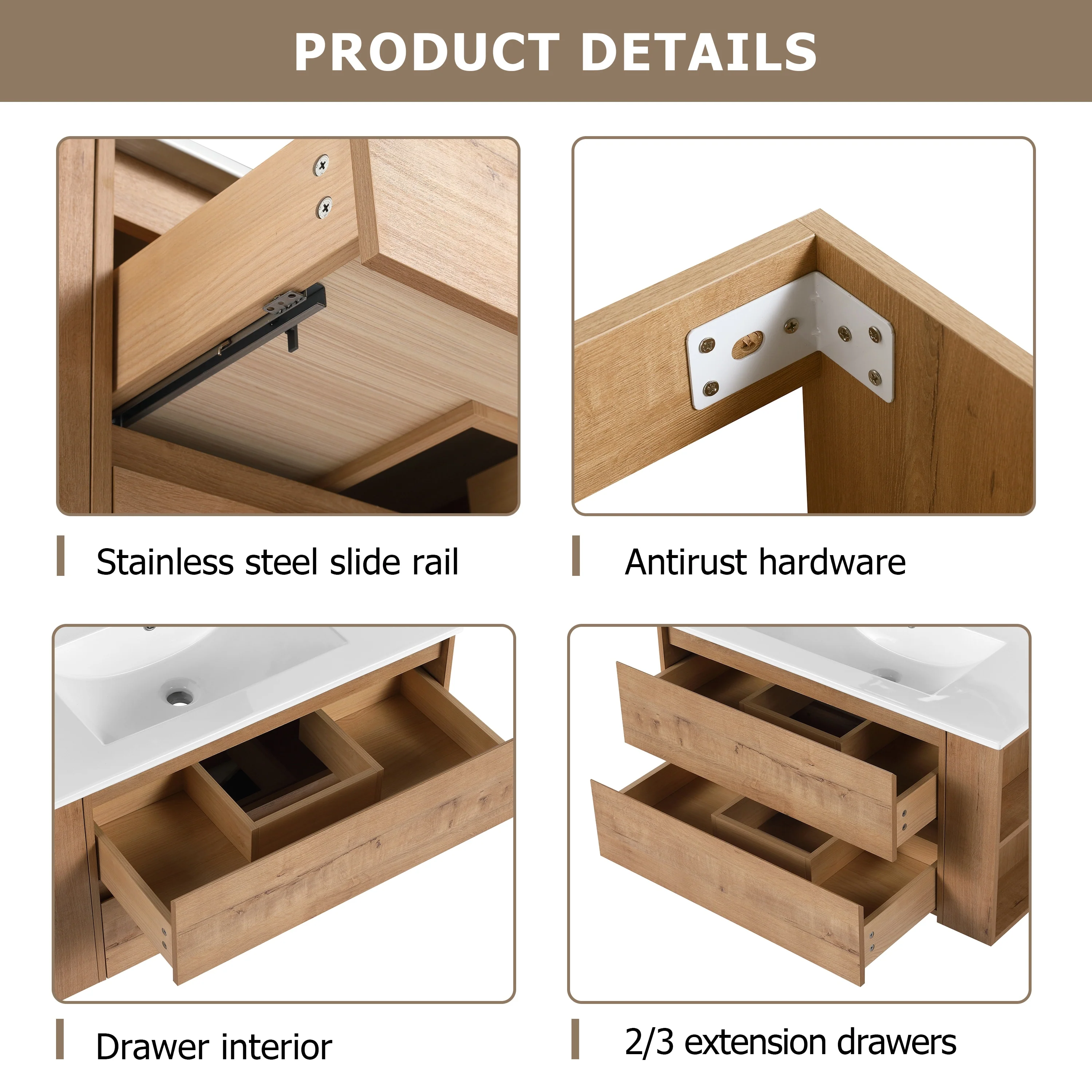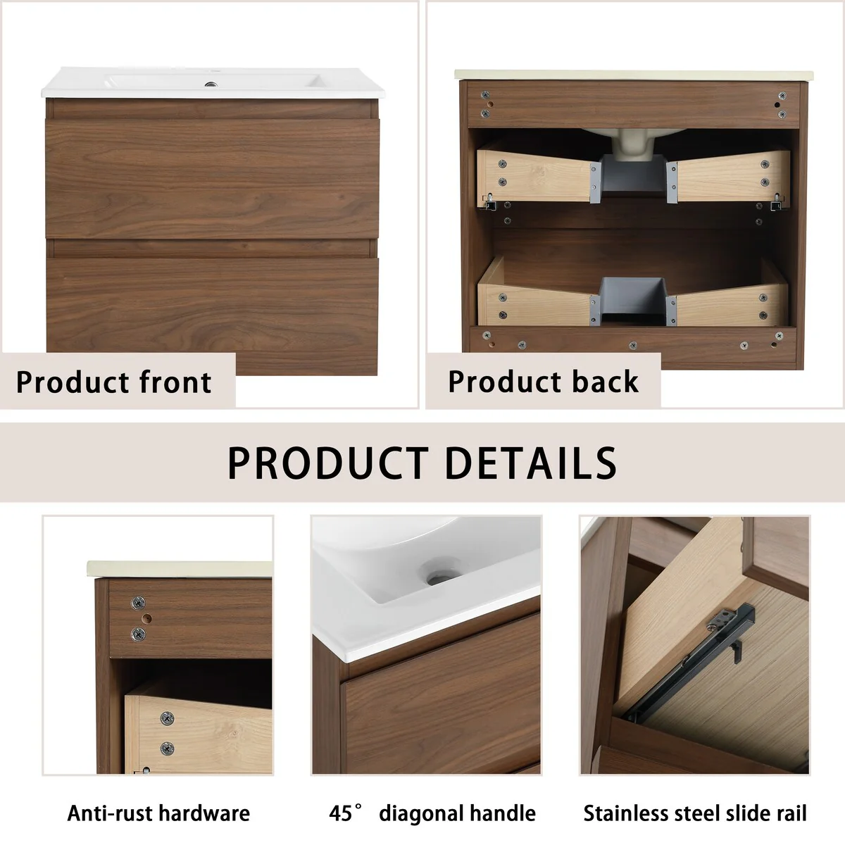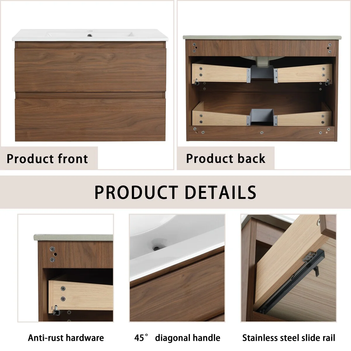 Bathroom Vanity With Sink In 24/30/36 Inch, Floating Bathroom Vanity With Soft Close Drawer