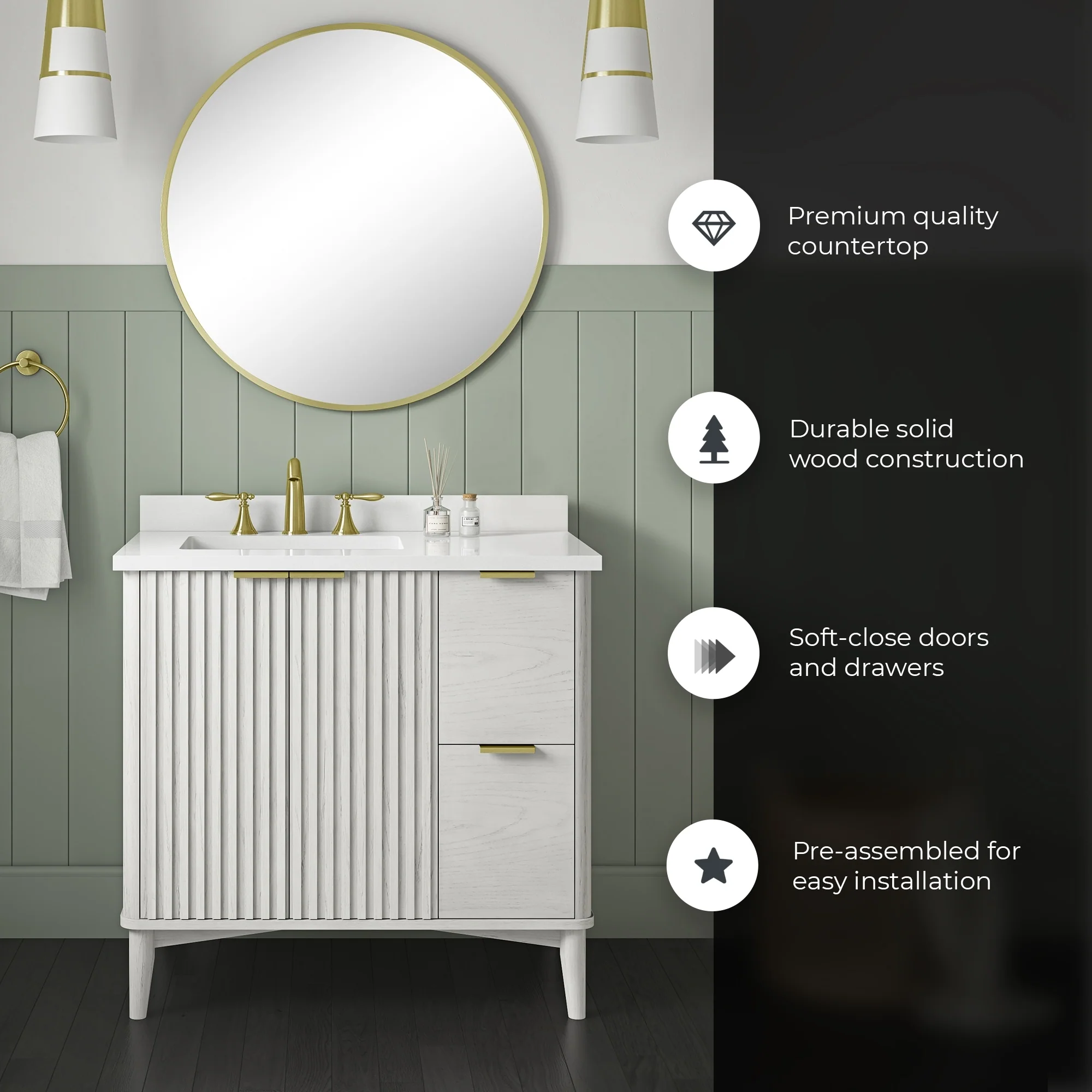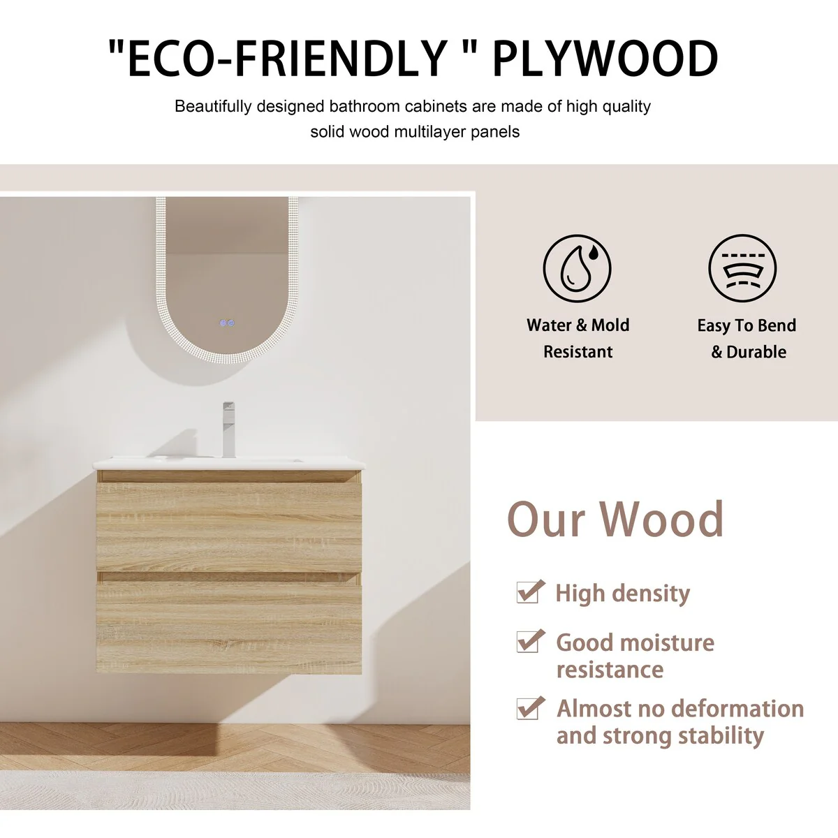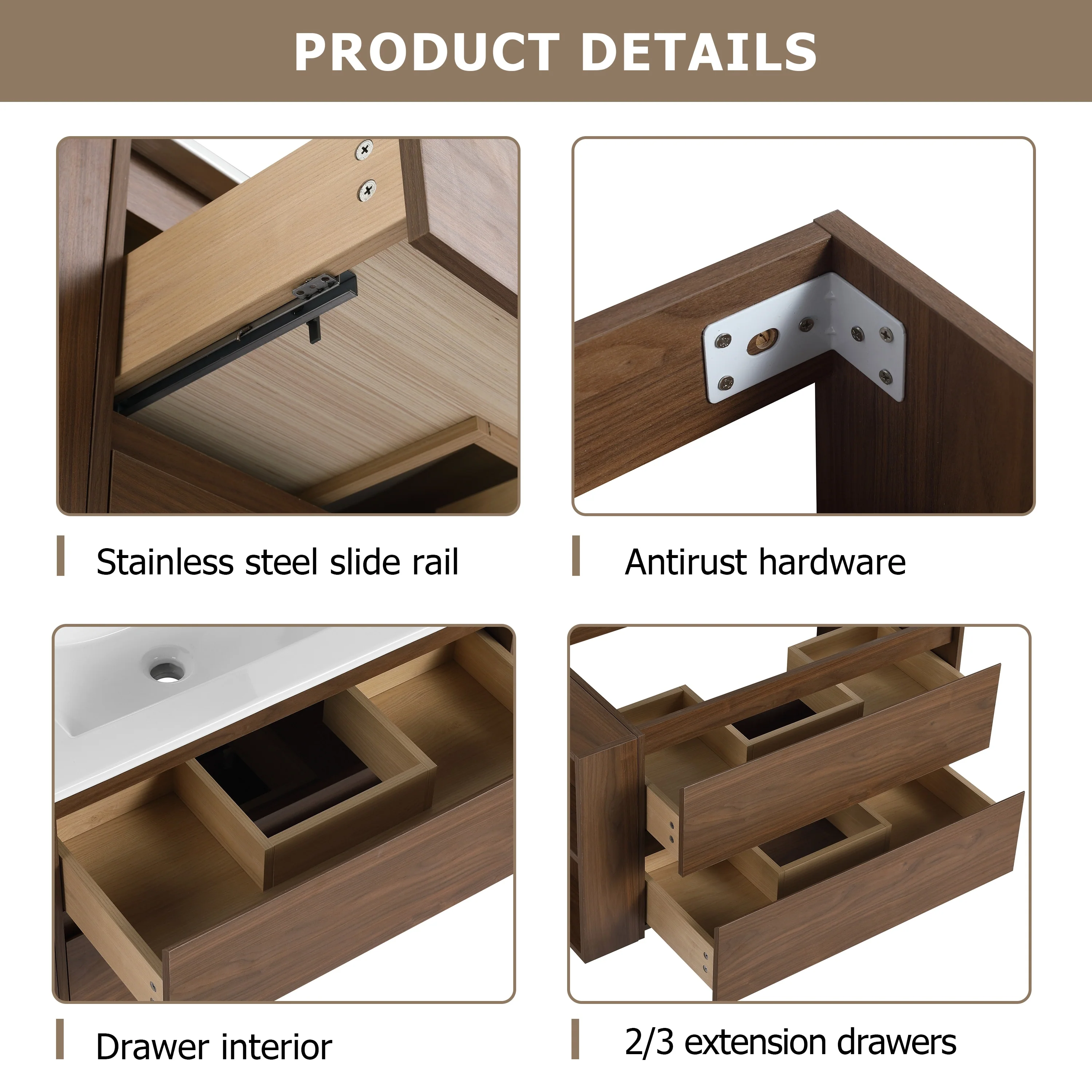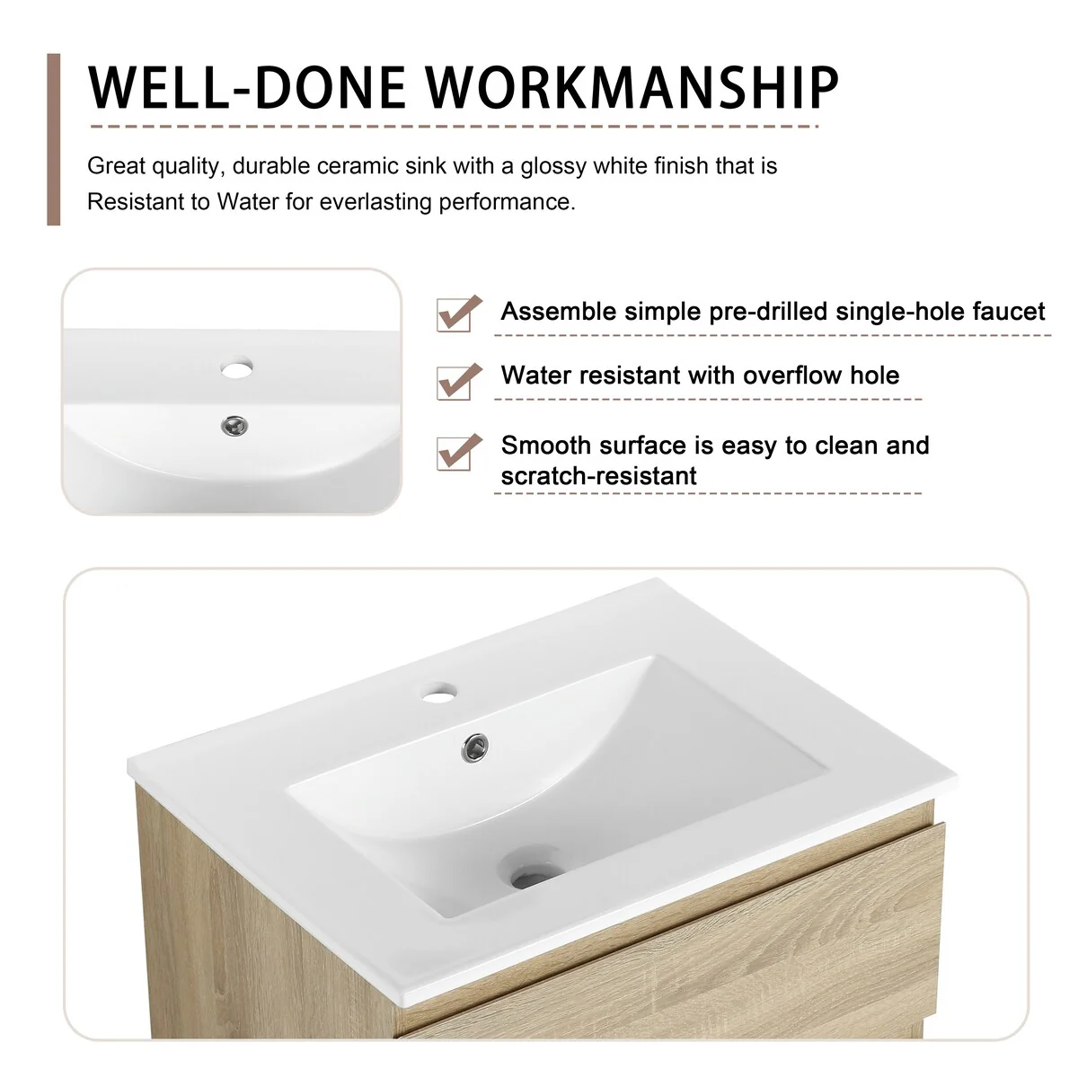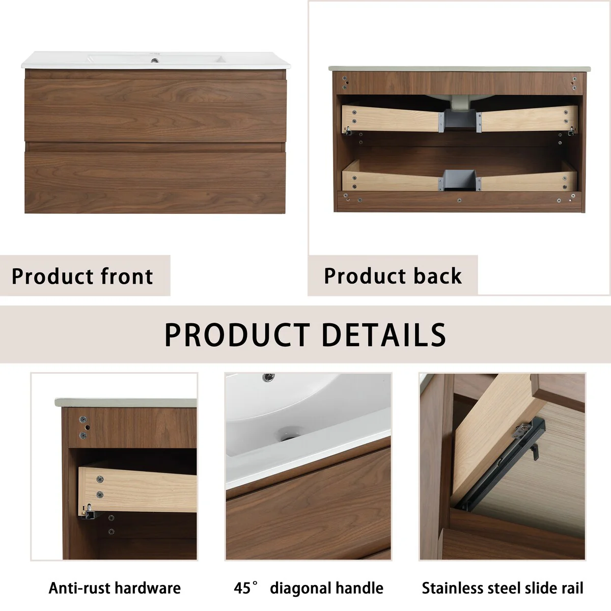 Bathroom Vanity With Sink In 24/30/36 Inch, Floating Bathroom Vanity With Soft Close Drawer