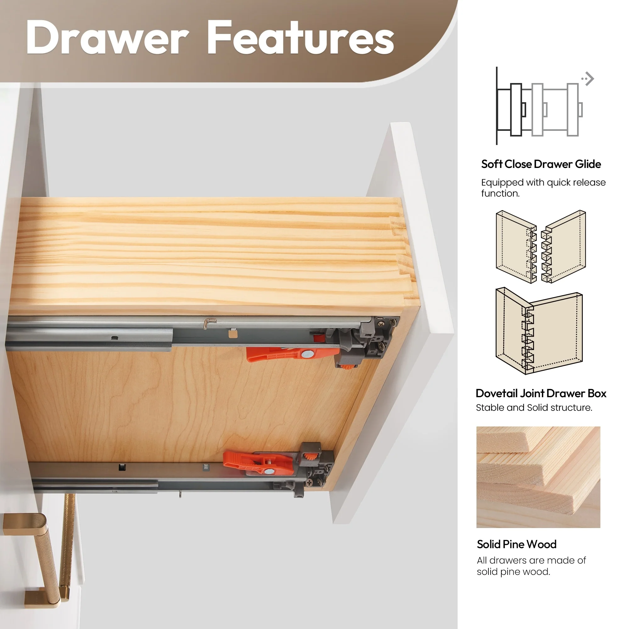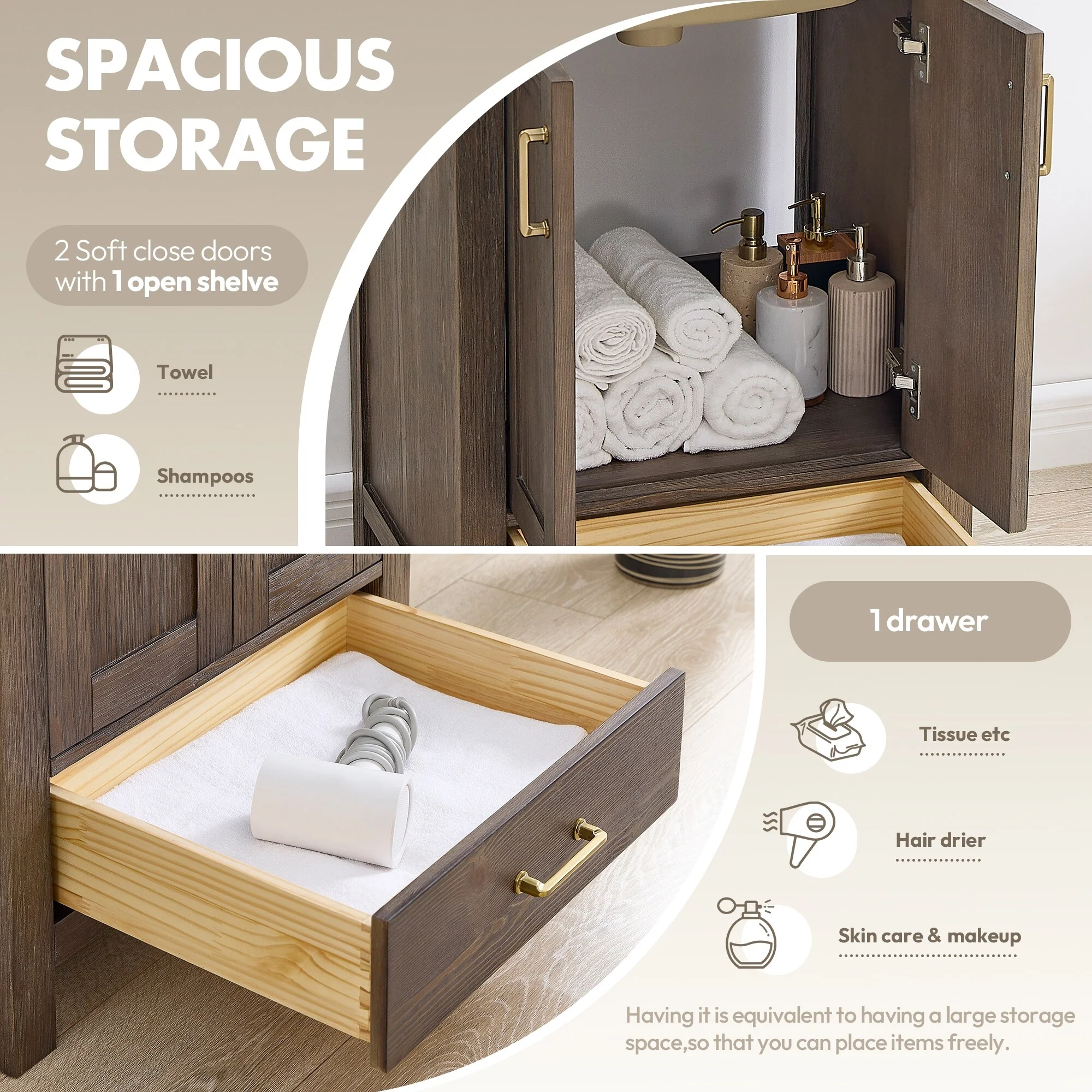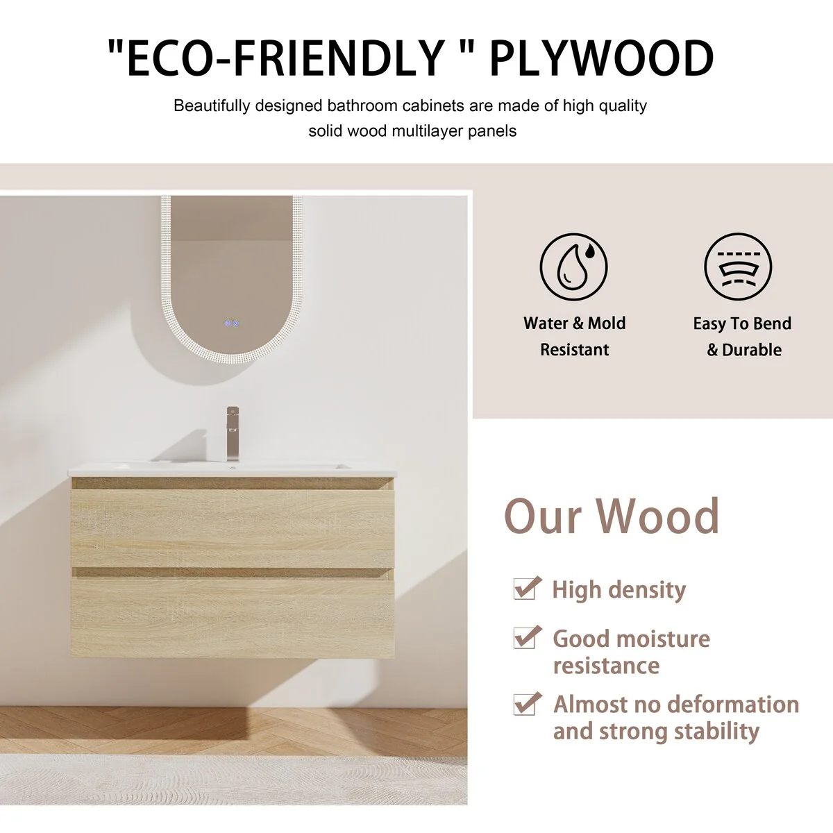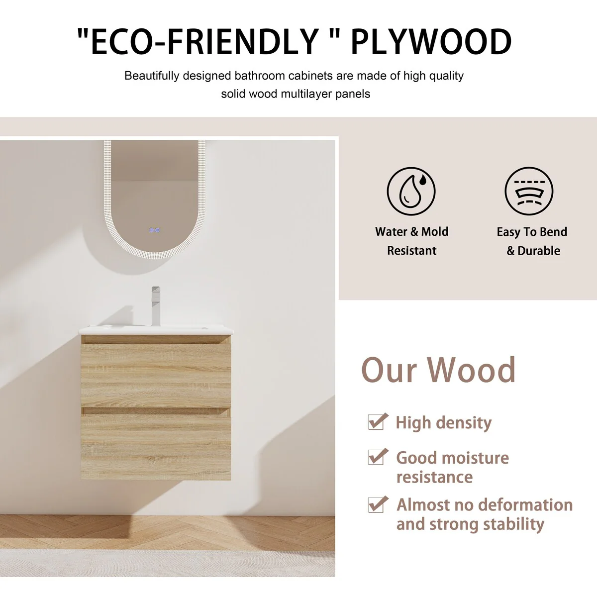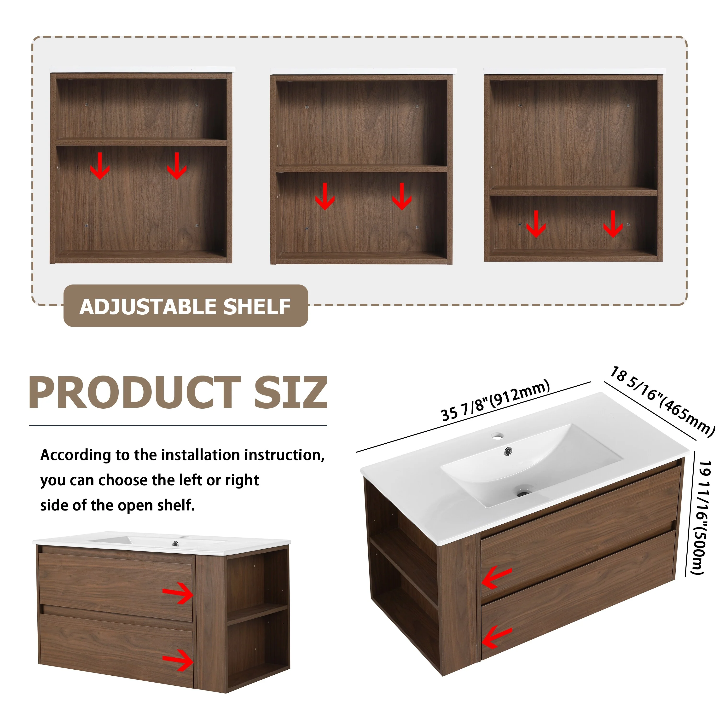 Bathroom Vanity With Sink In 24/30/36 Inch, Floating Bathroom Vanity With Soft Close Drawer