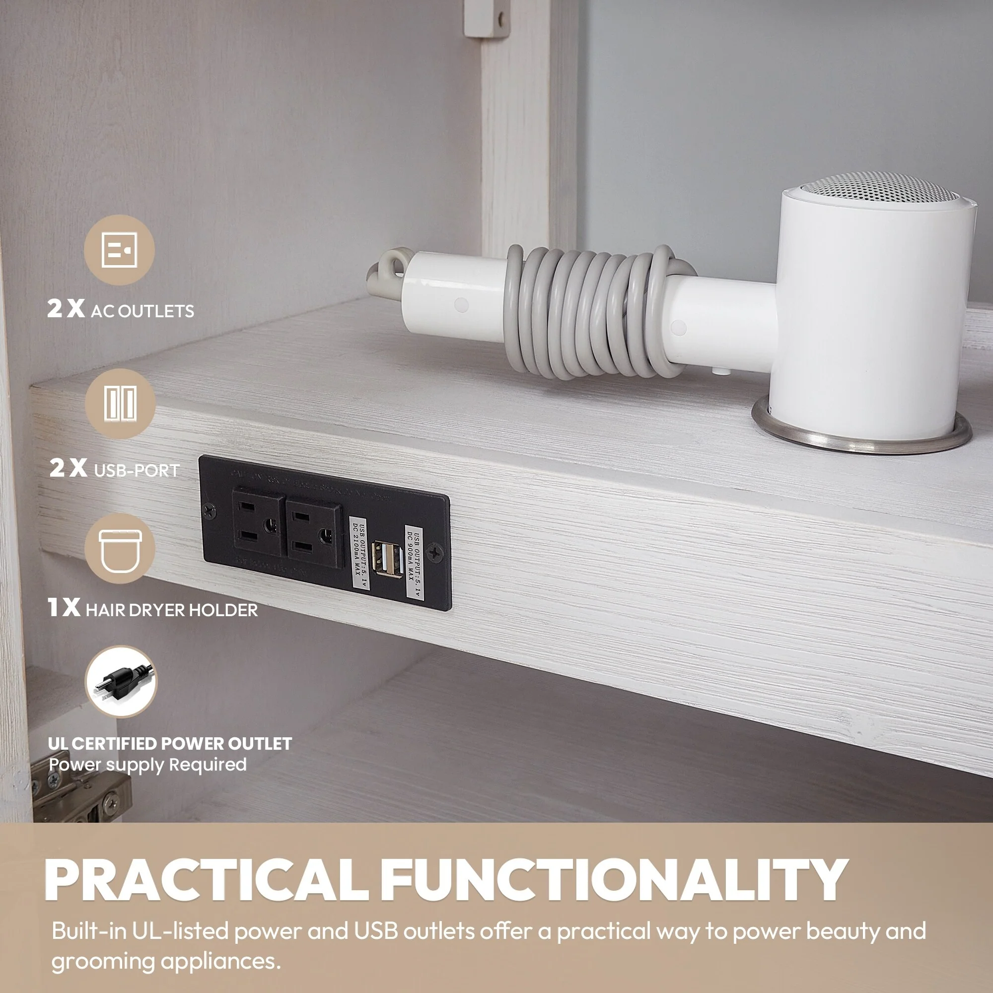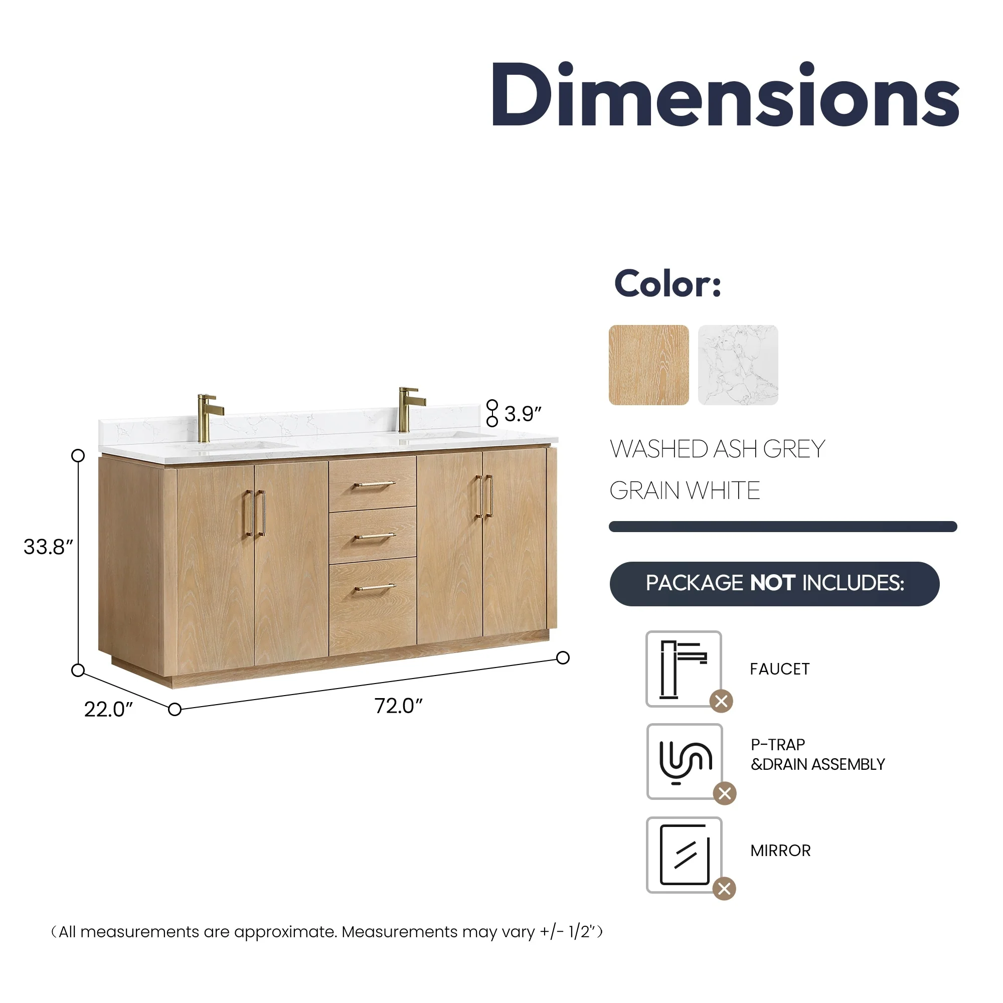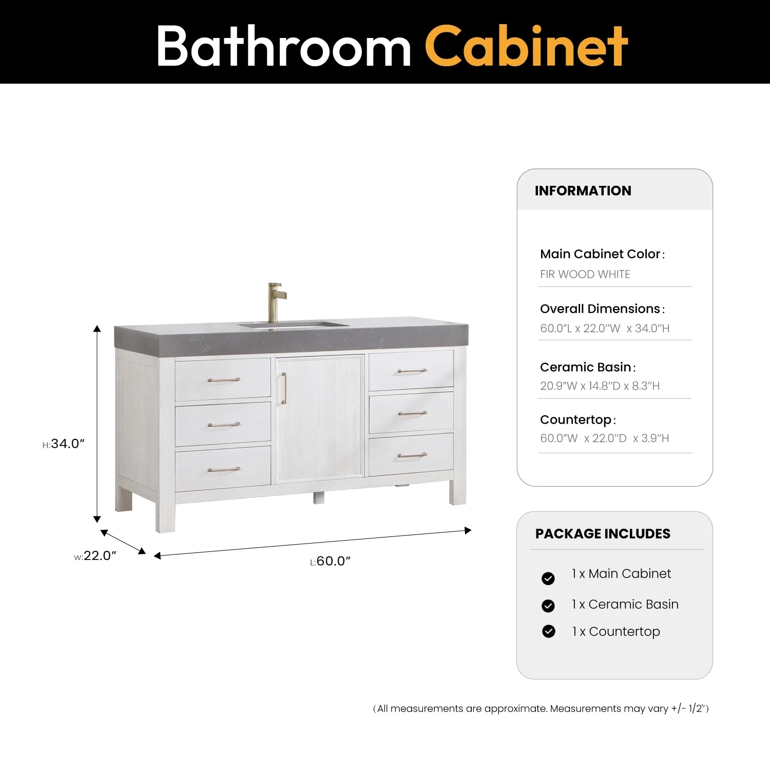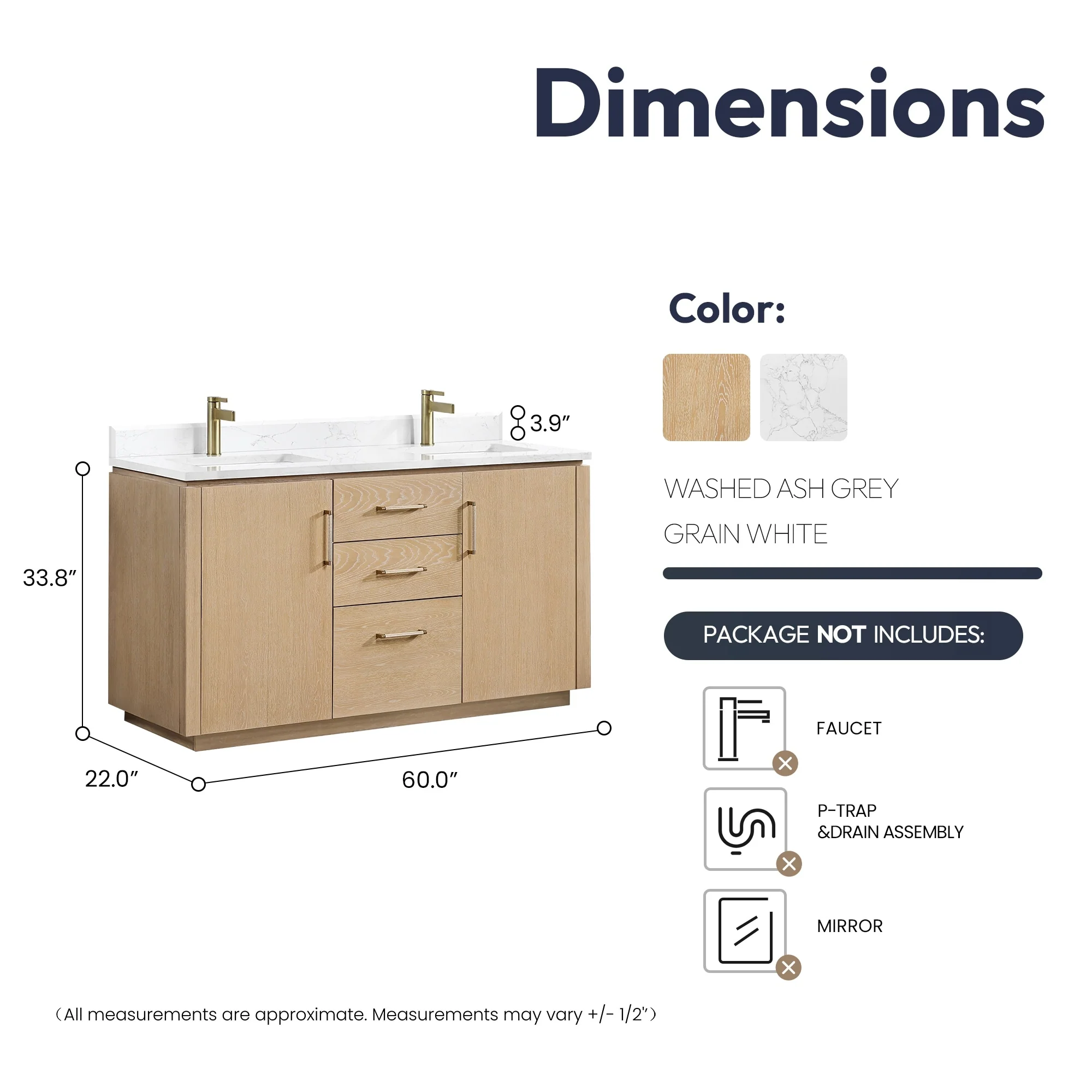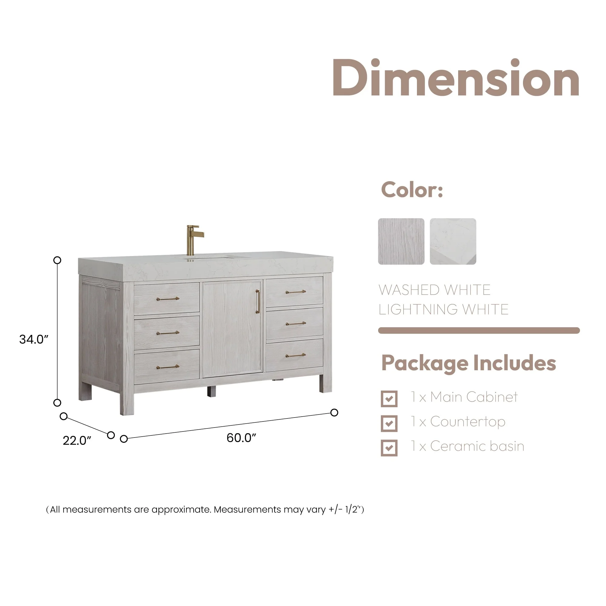 60 in. - Washed White - No Mirror