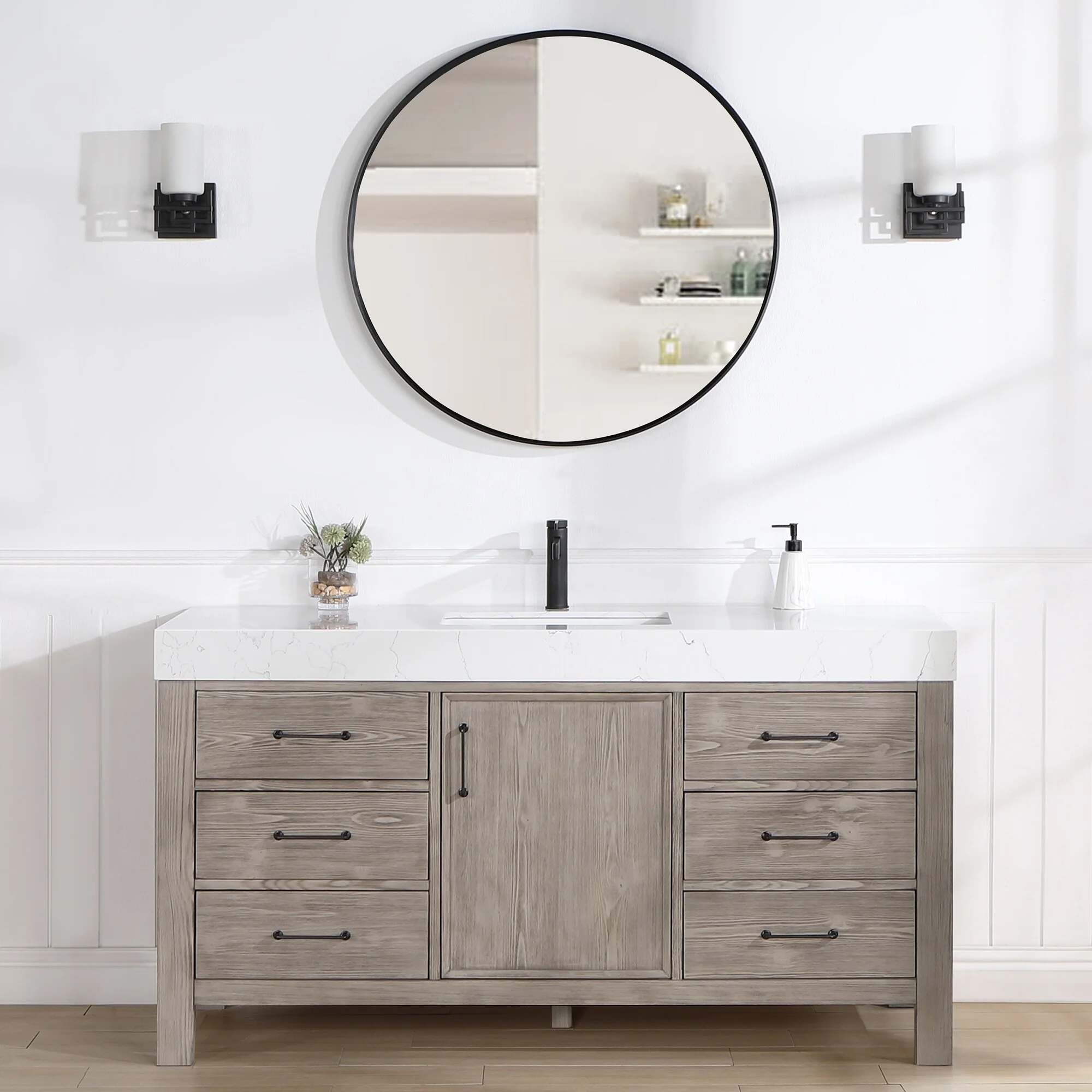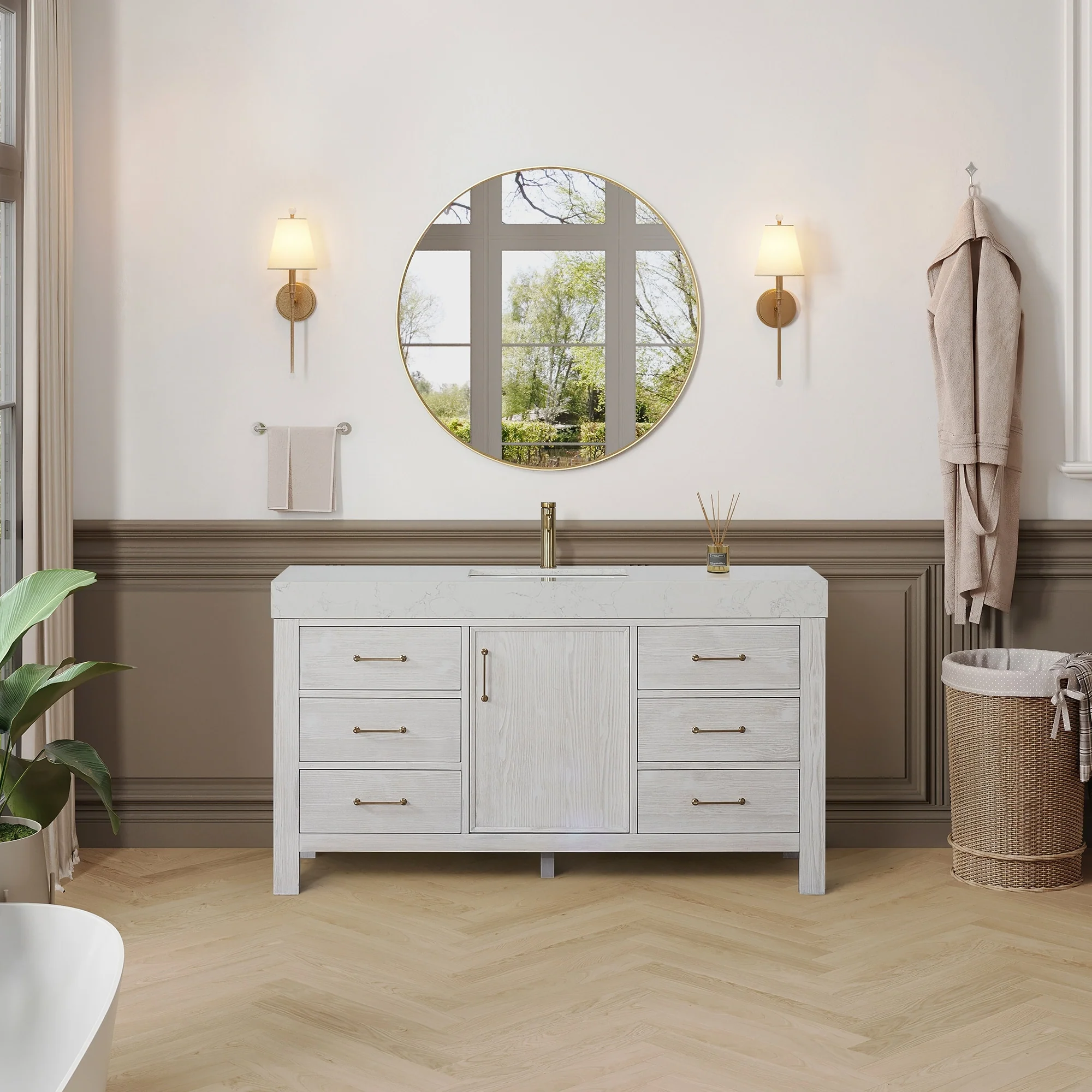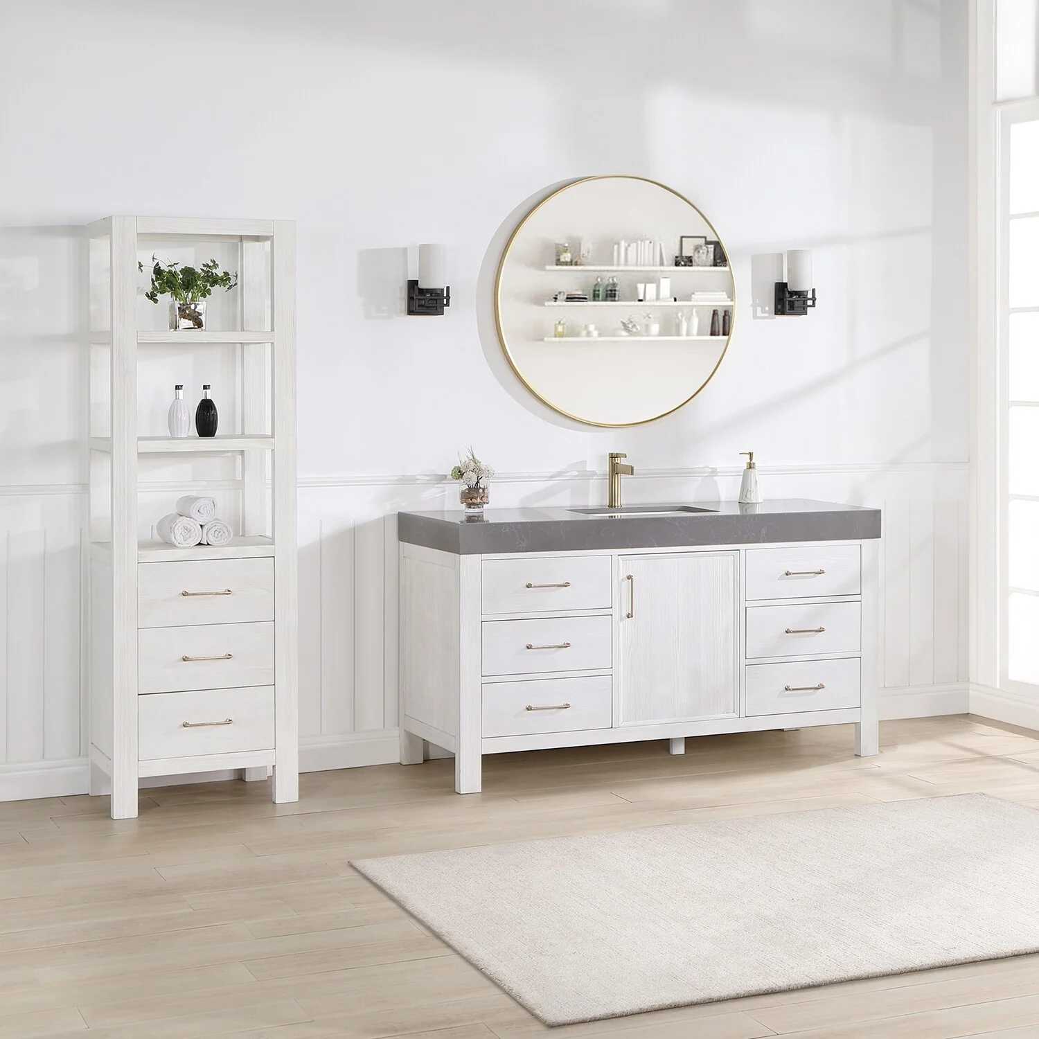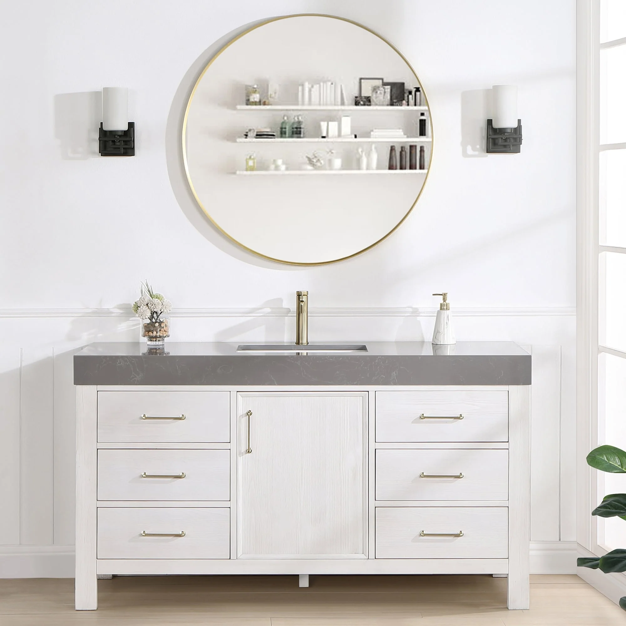 60 in. - Washed White - With Mirror