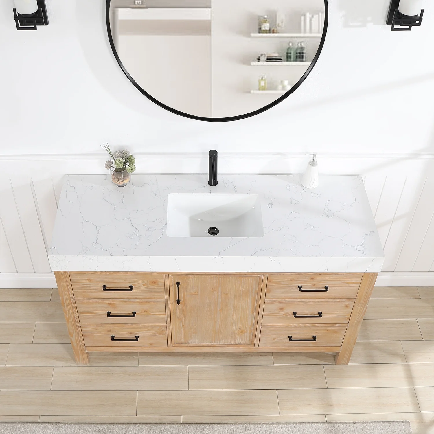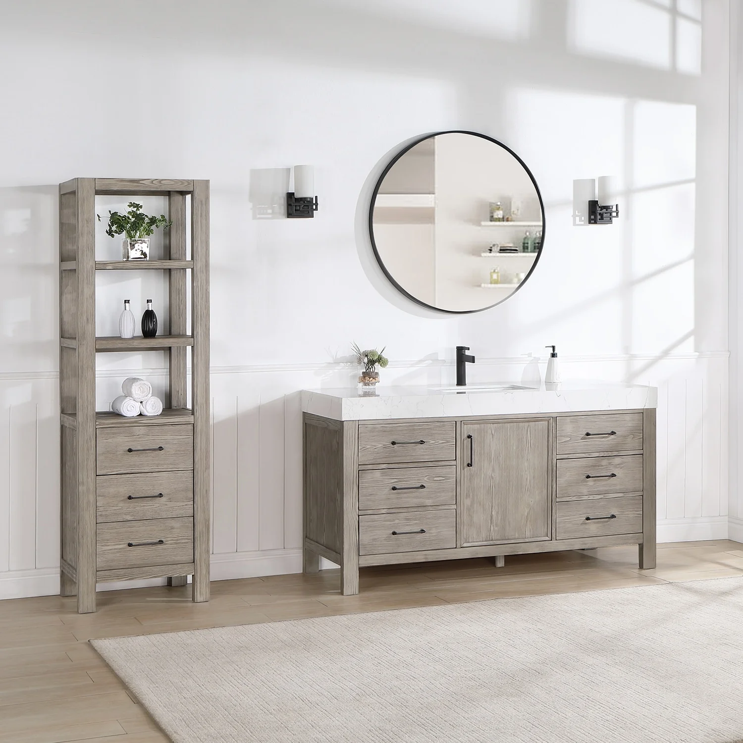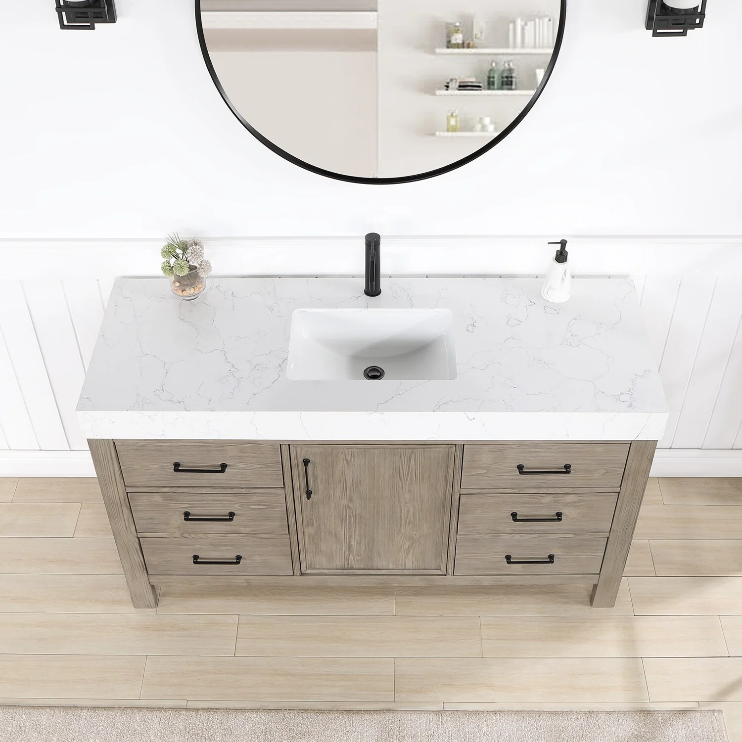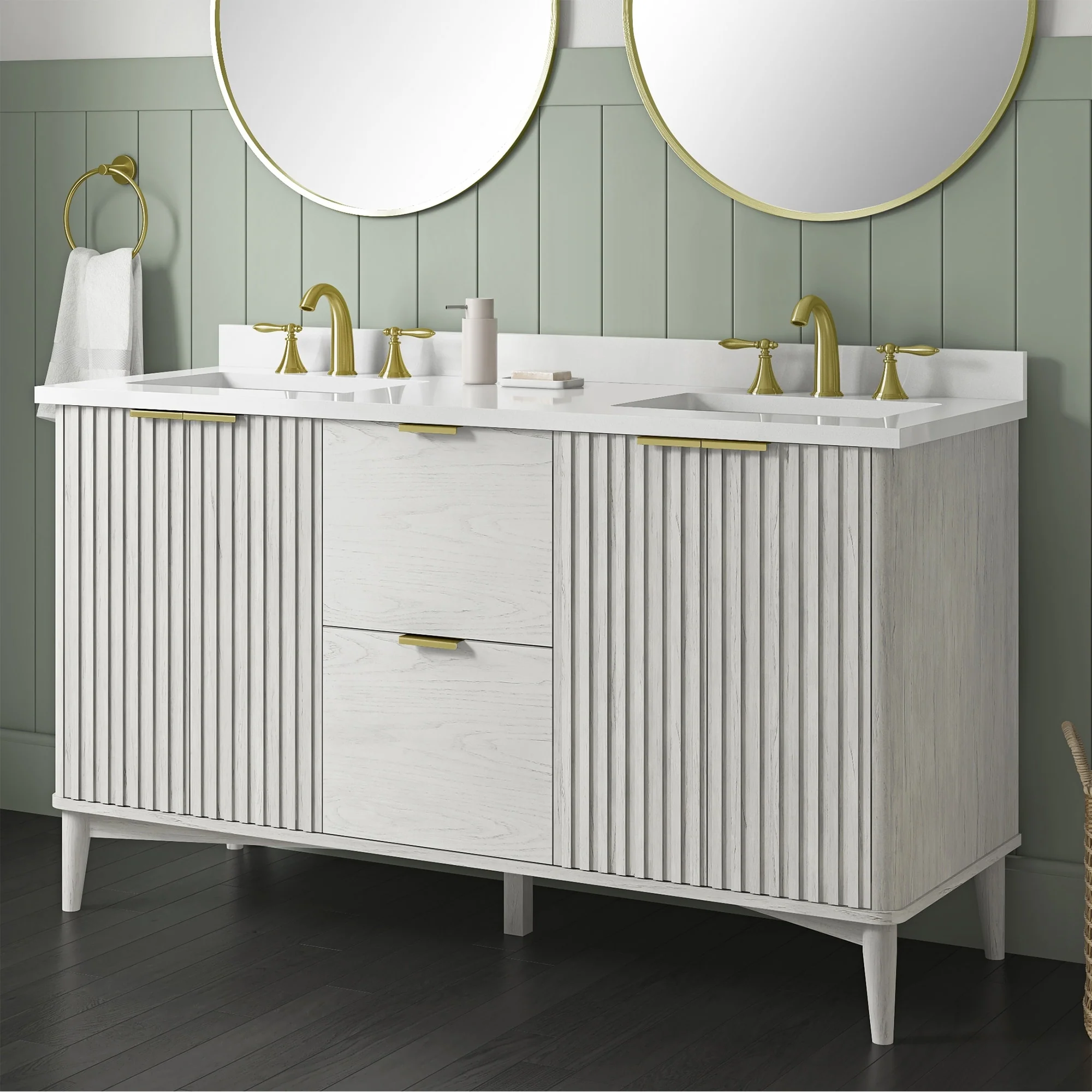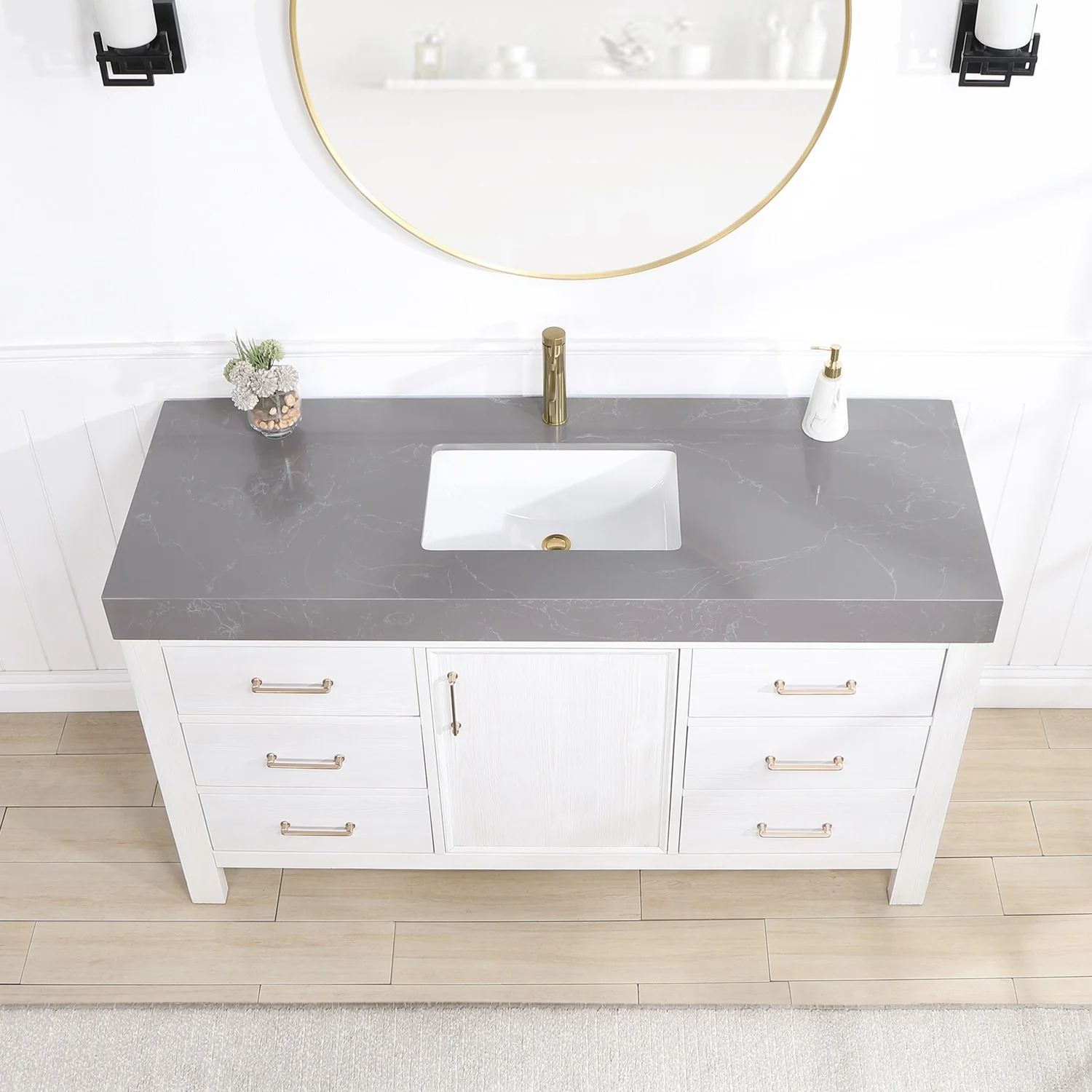 60 in. - Washed White - With Mirror
