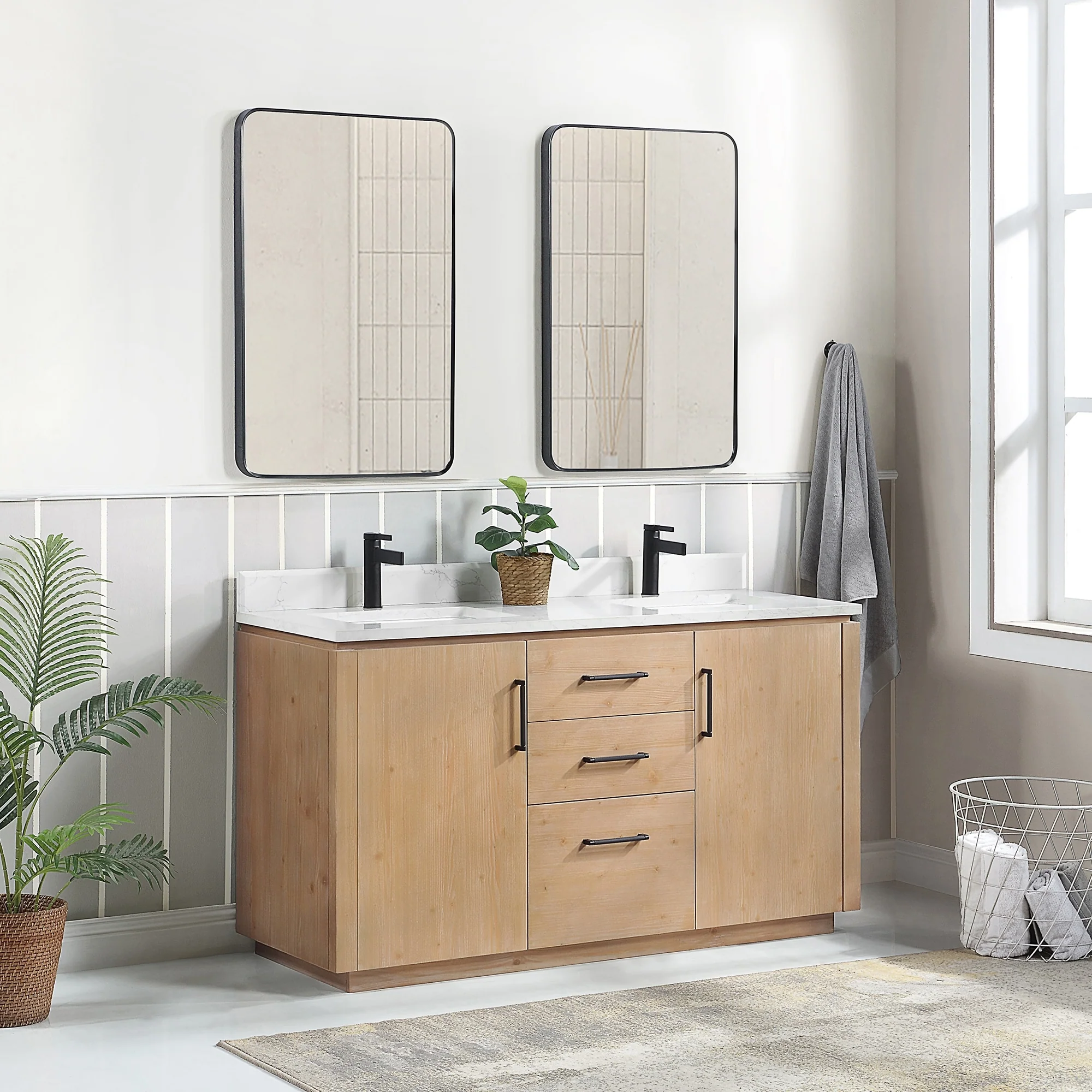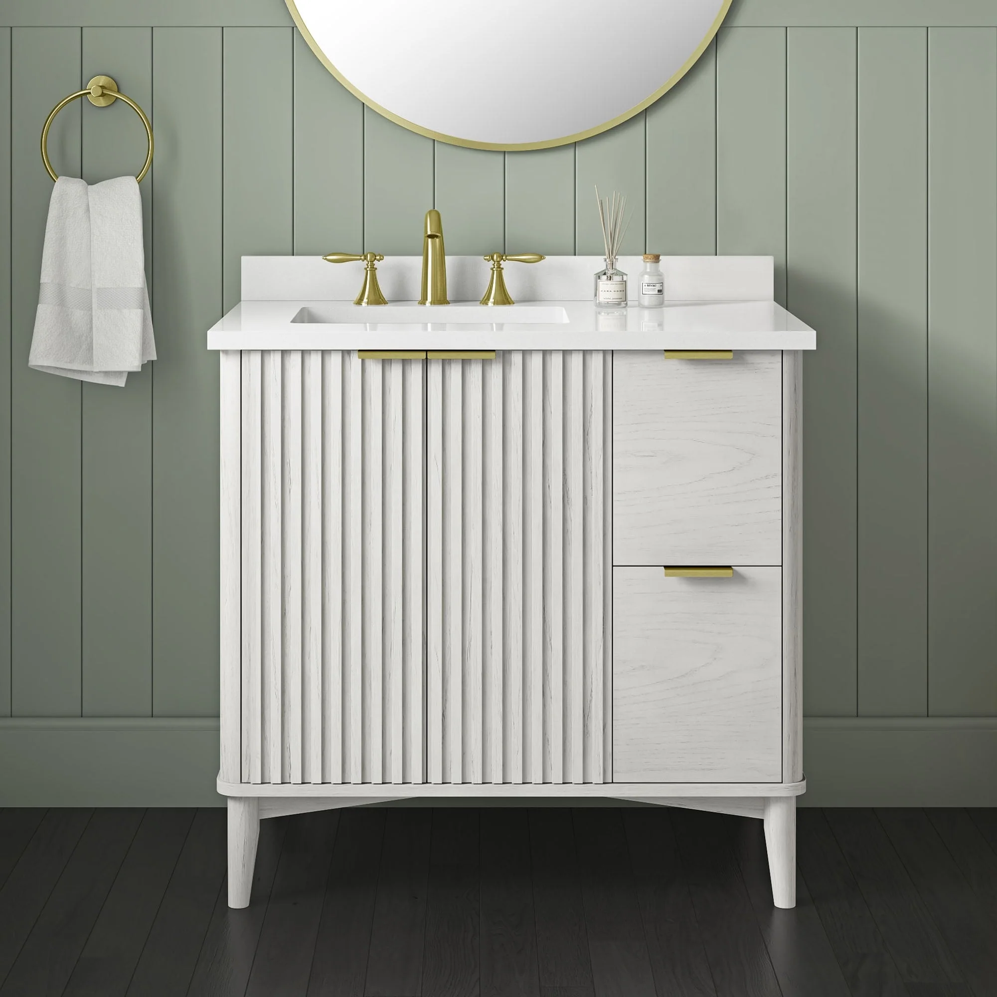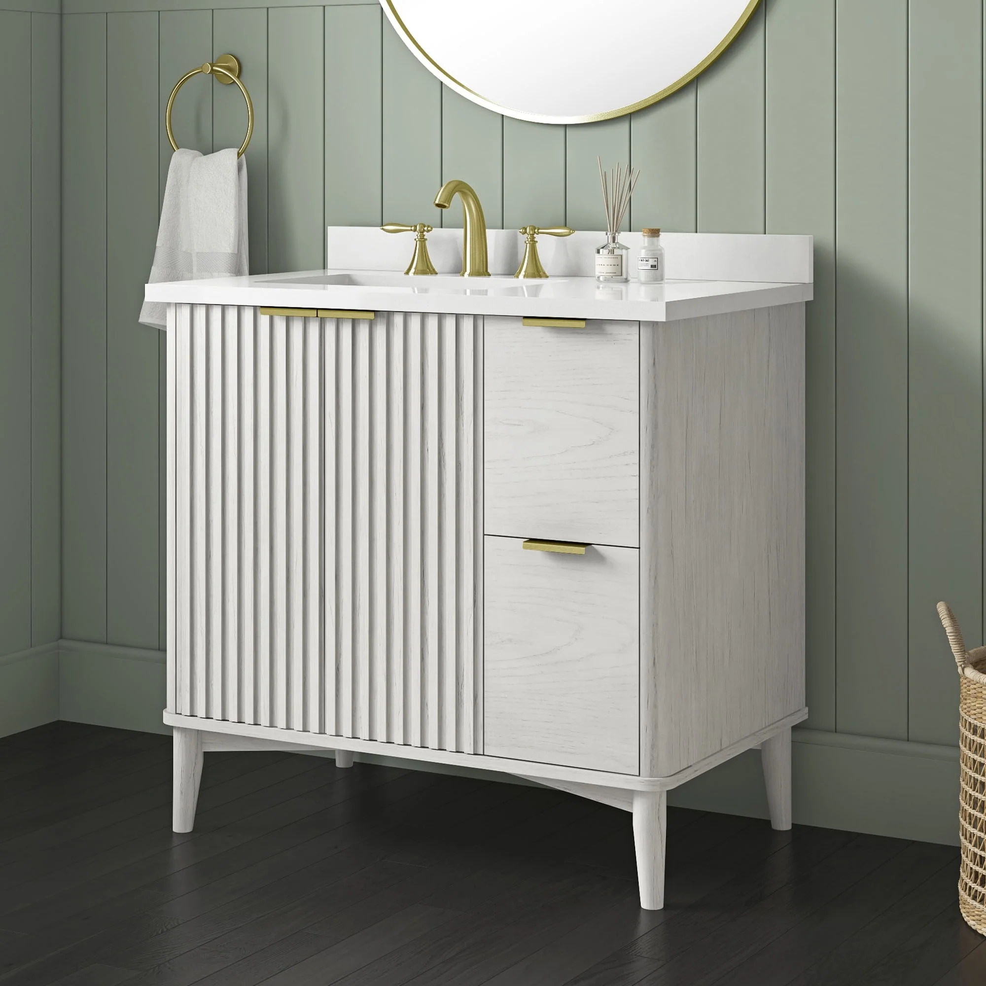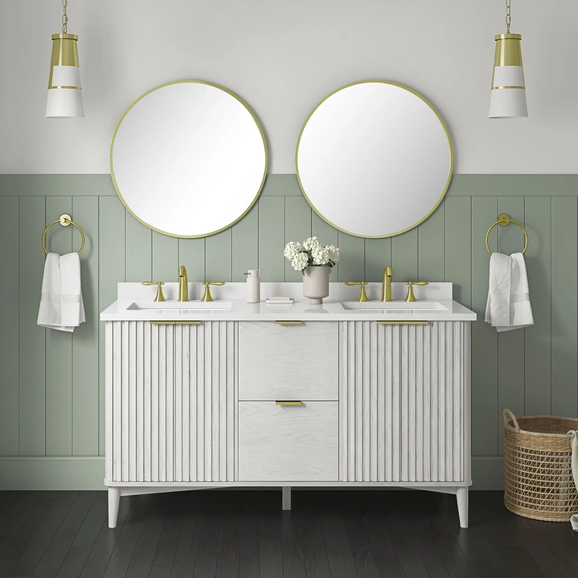 60 in. - Washed White - With Mirror