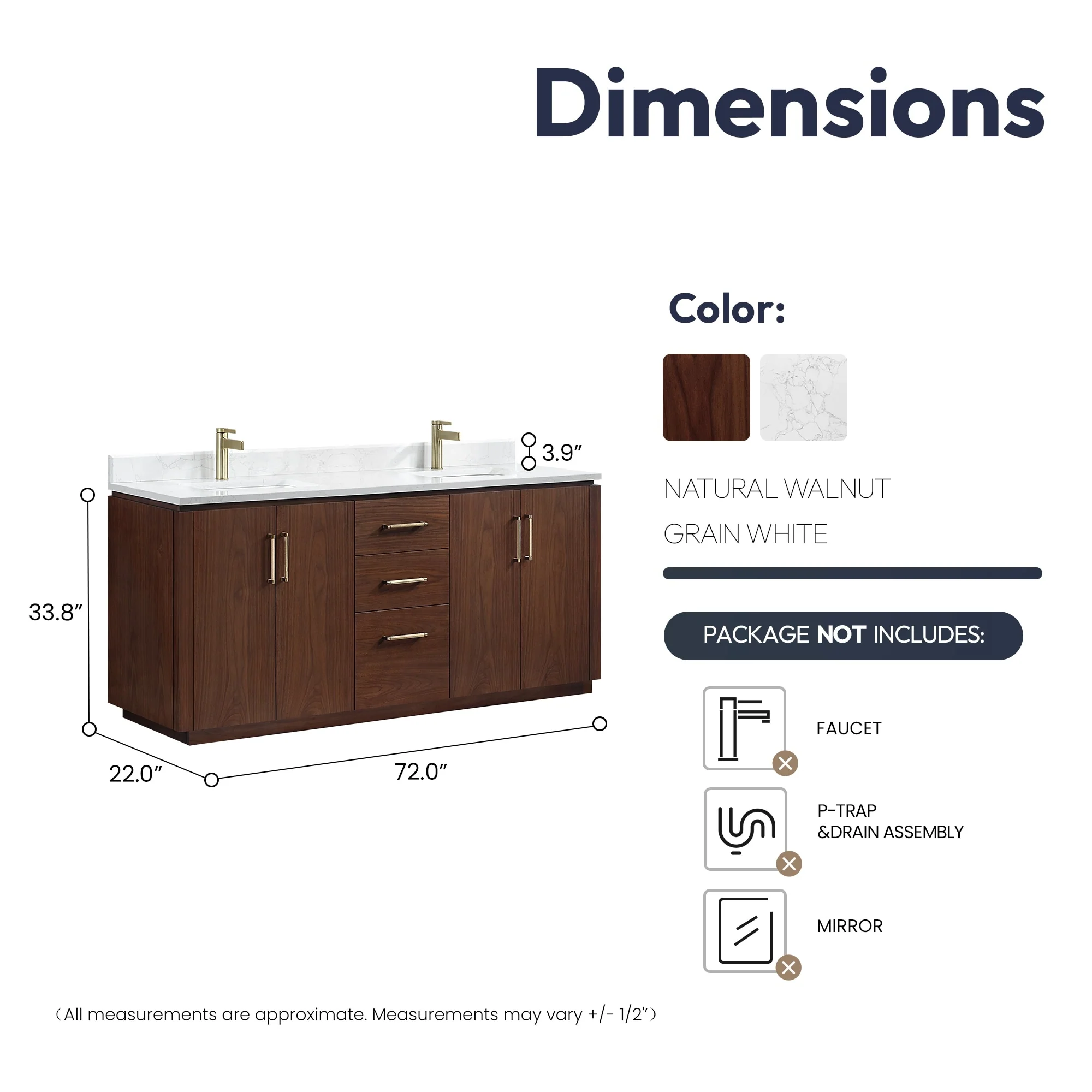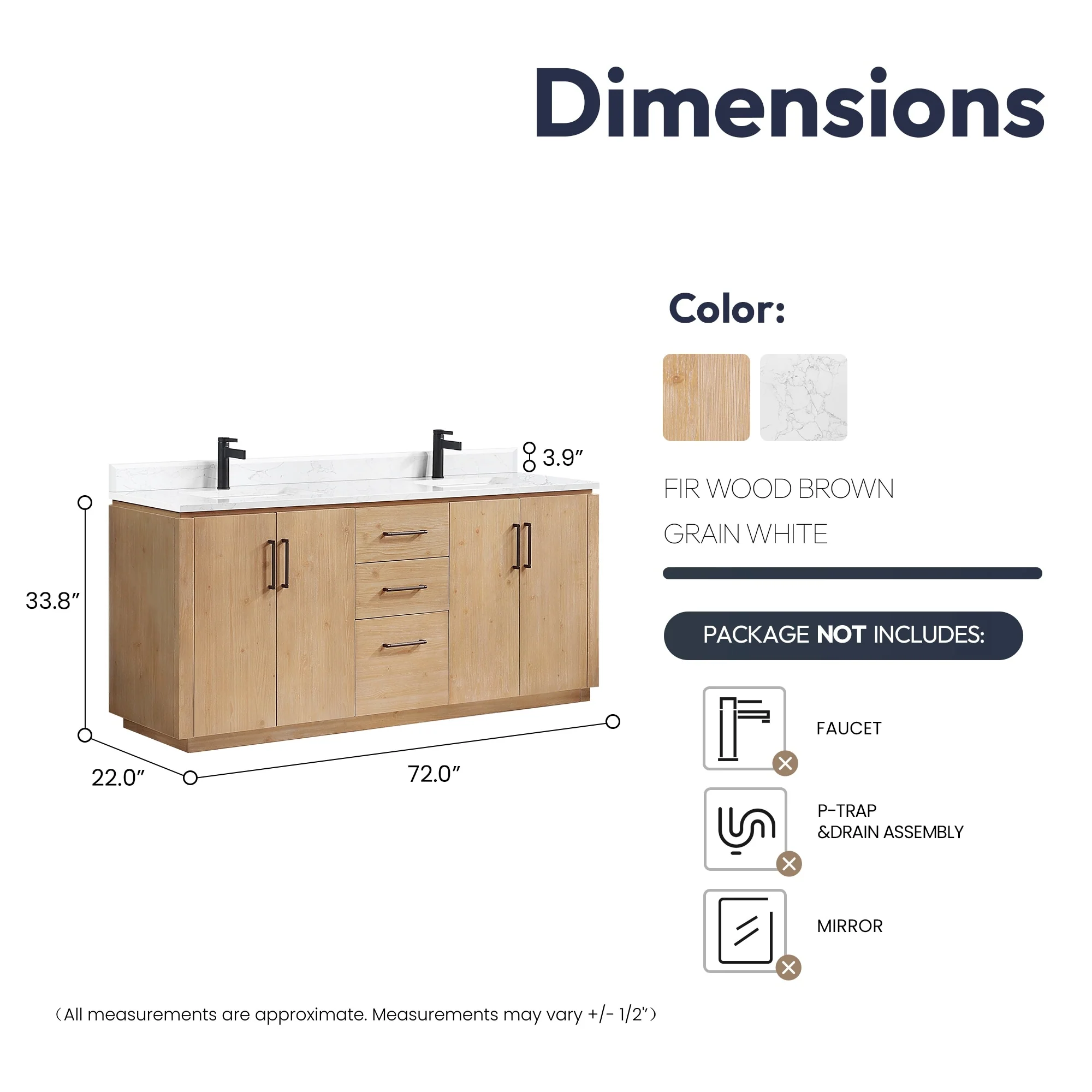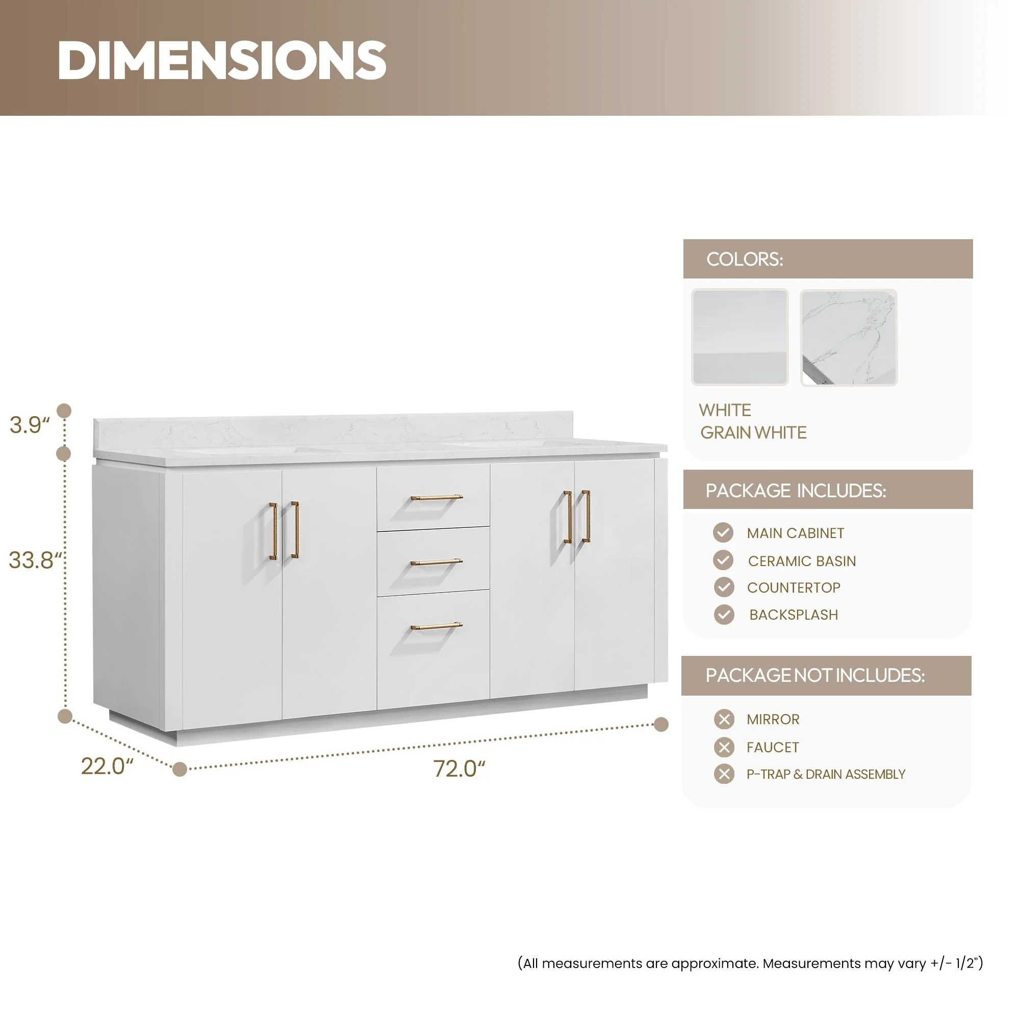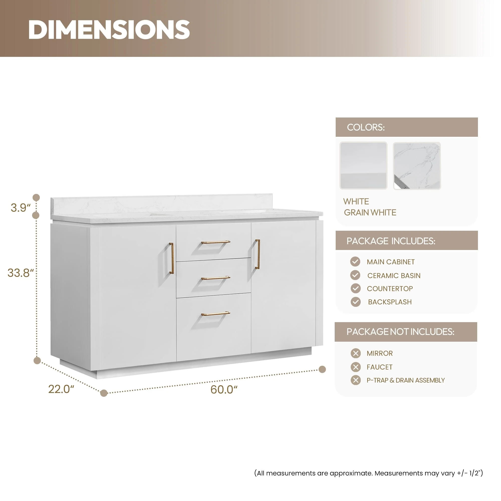 60 in. - Brown - No Mirror