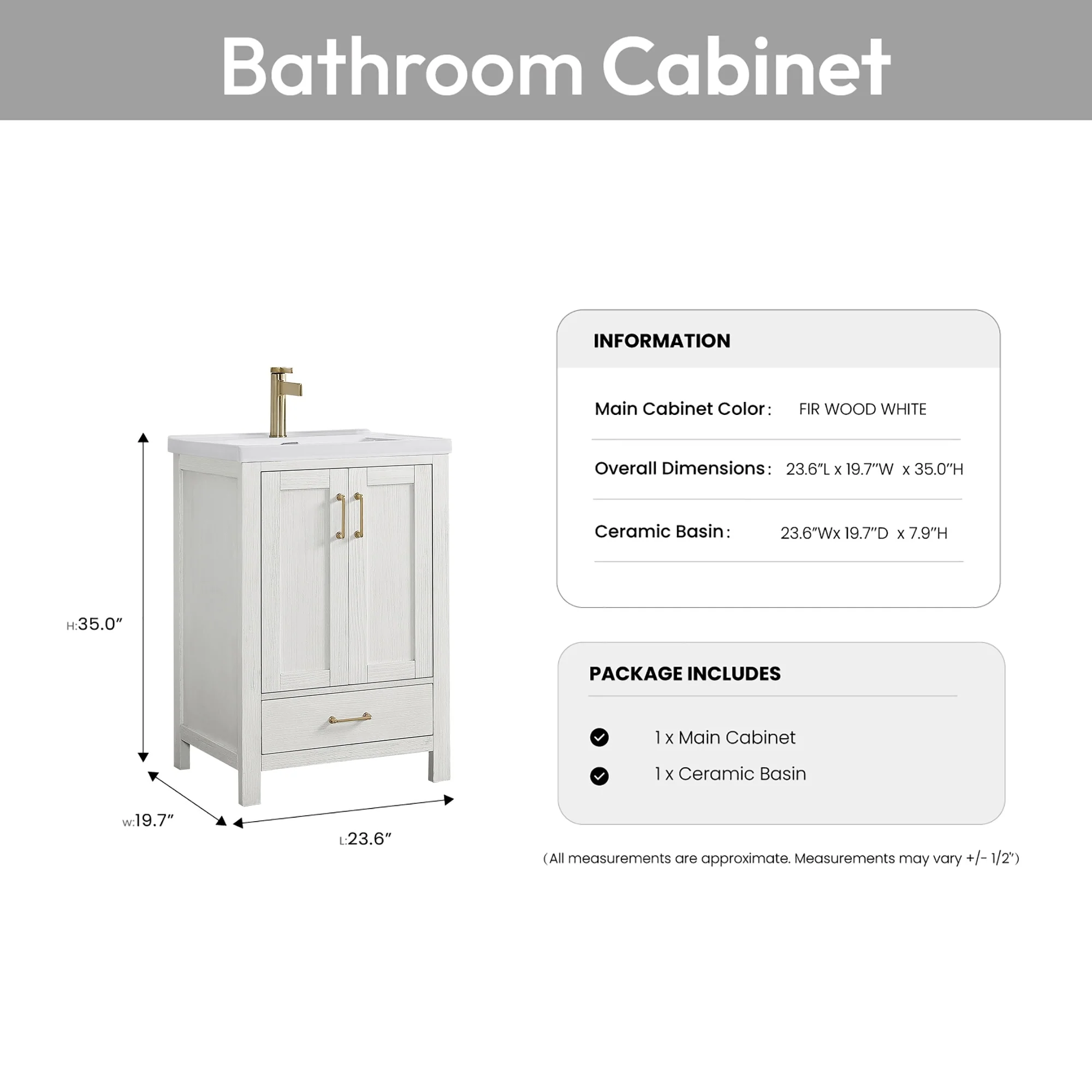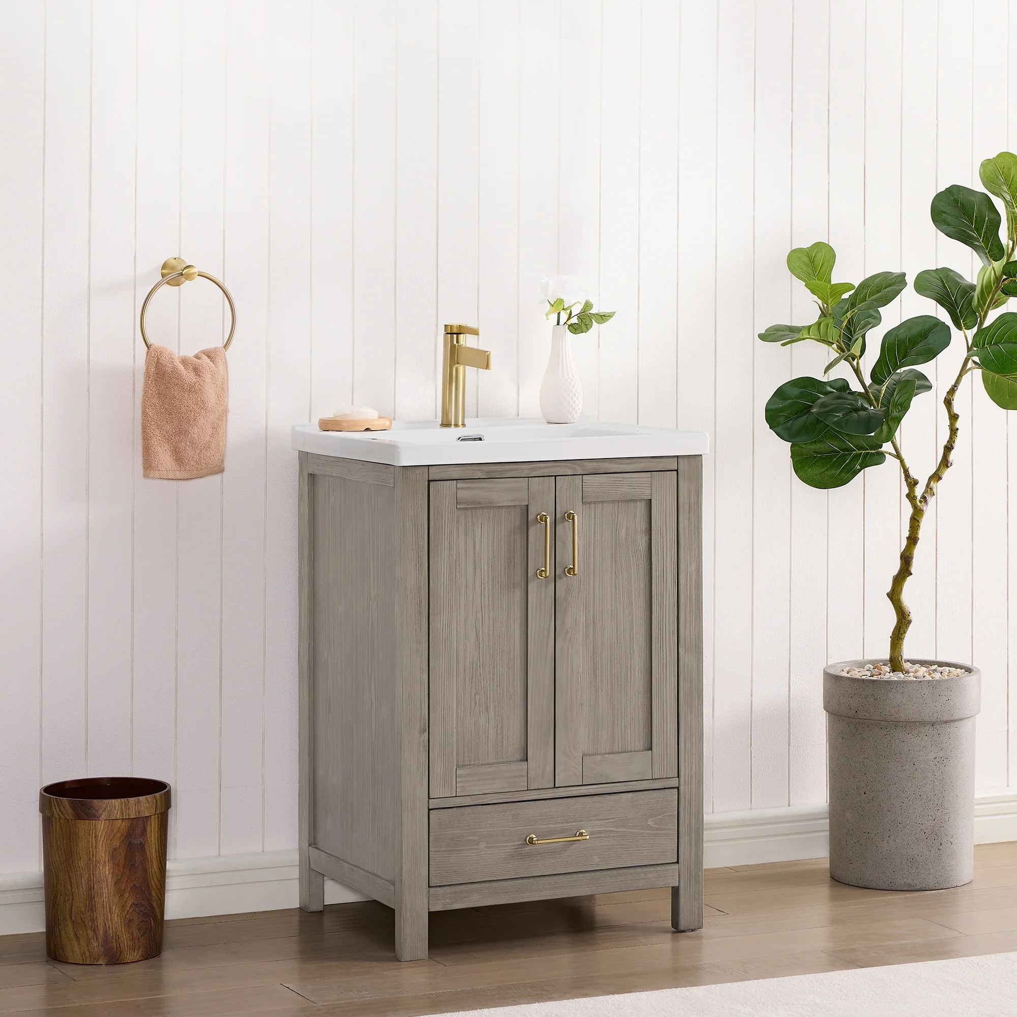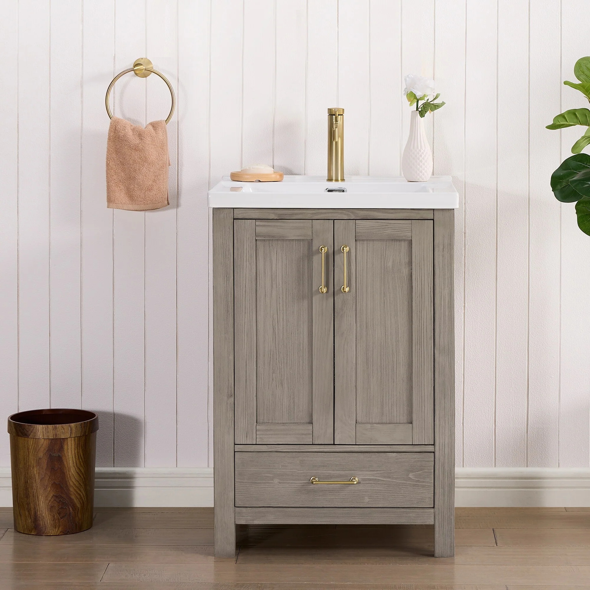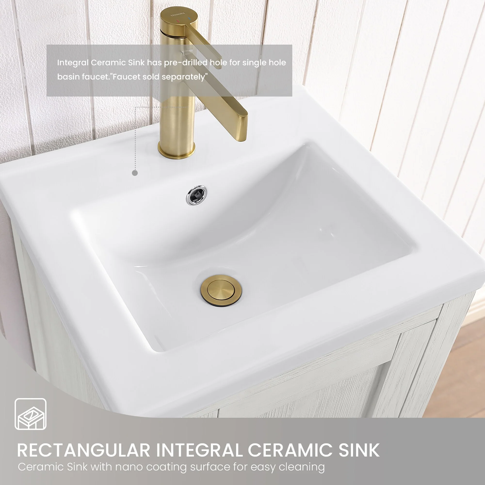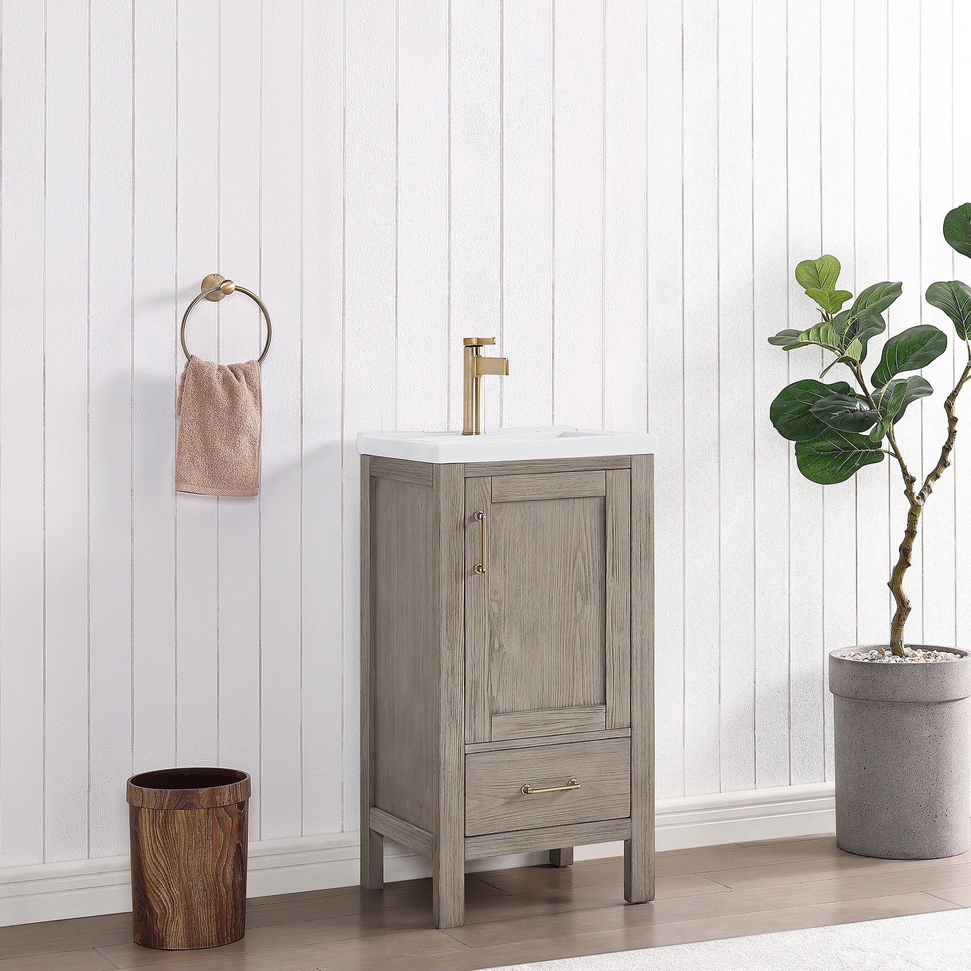 Gela Single Bath Vanity with Ceramic Basin Top without Mirror