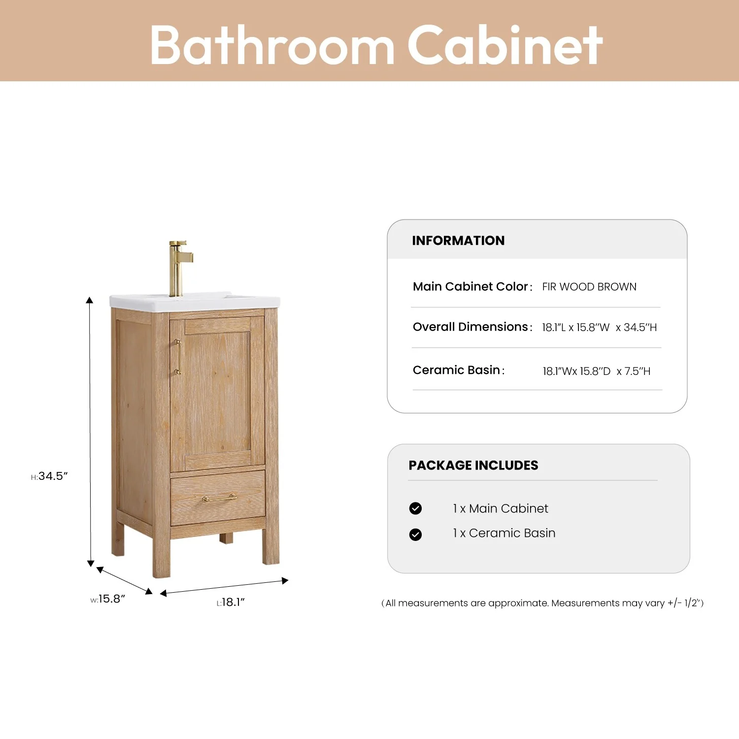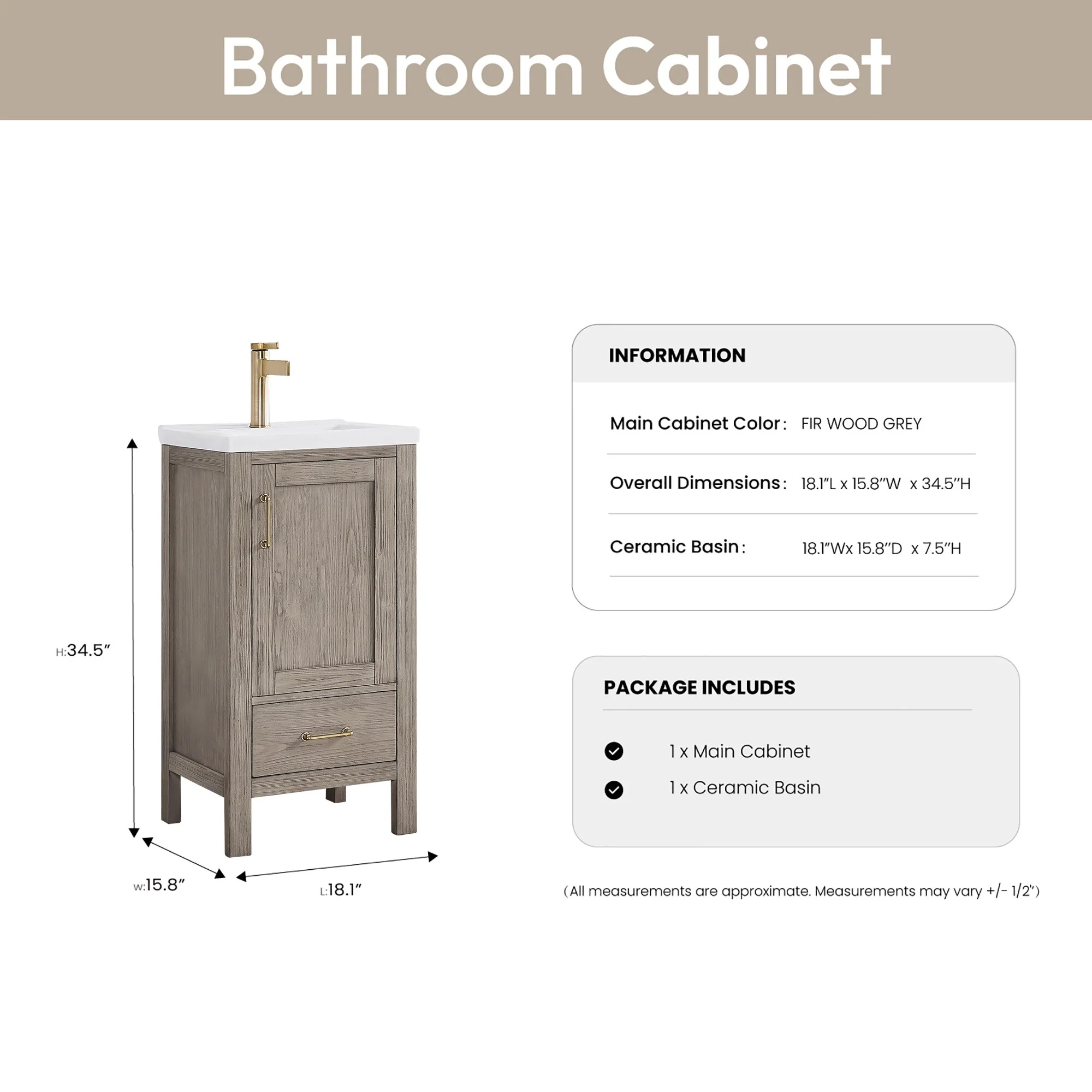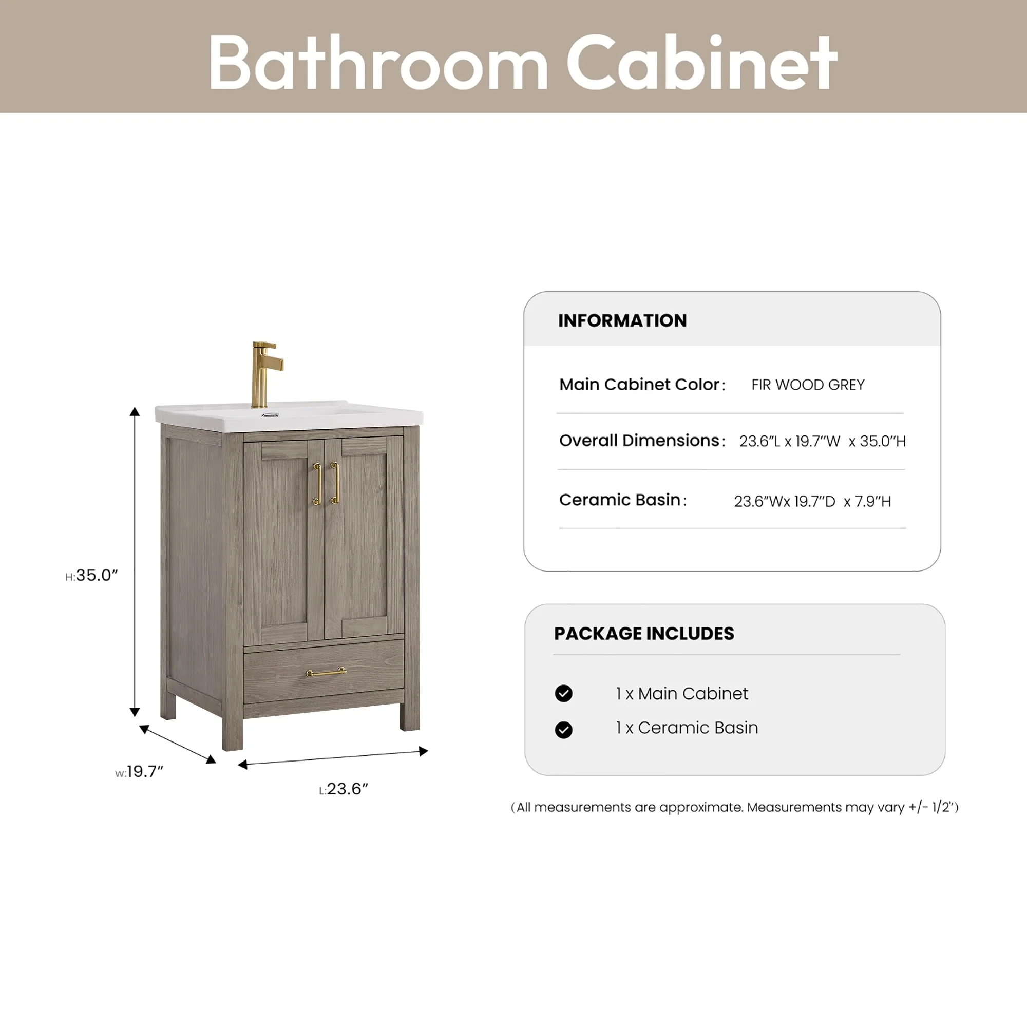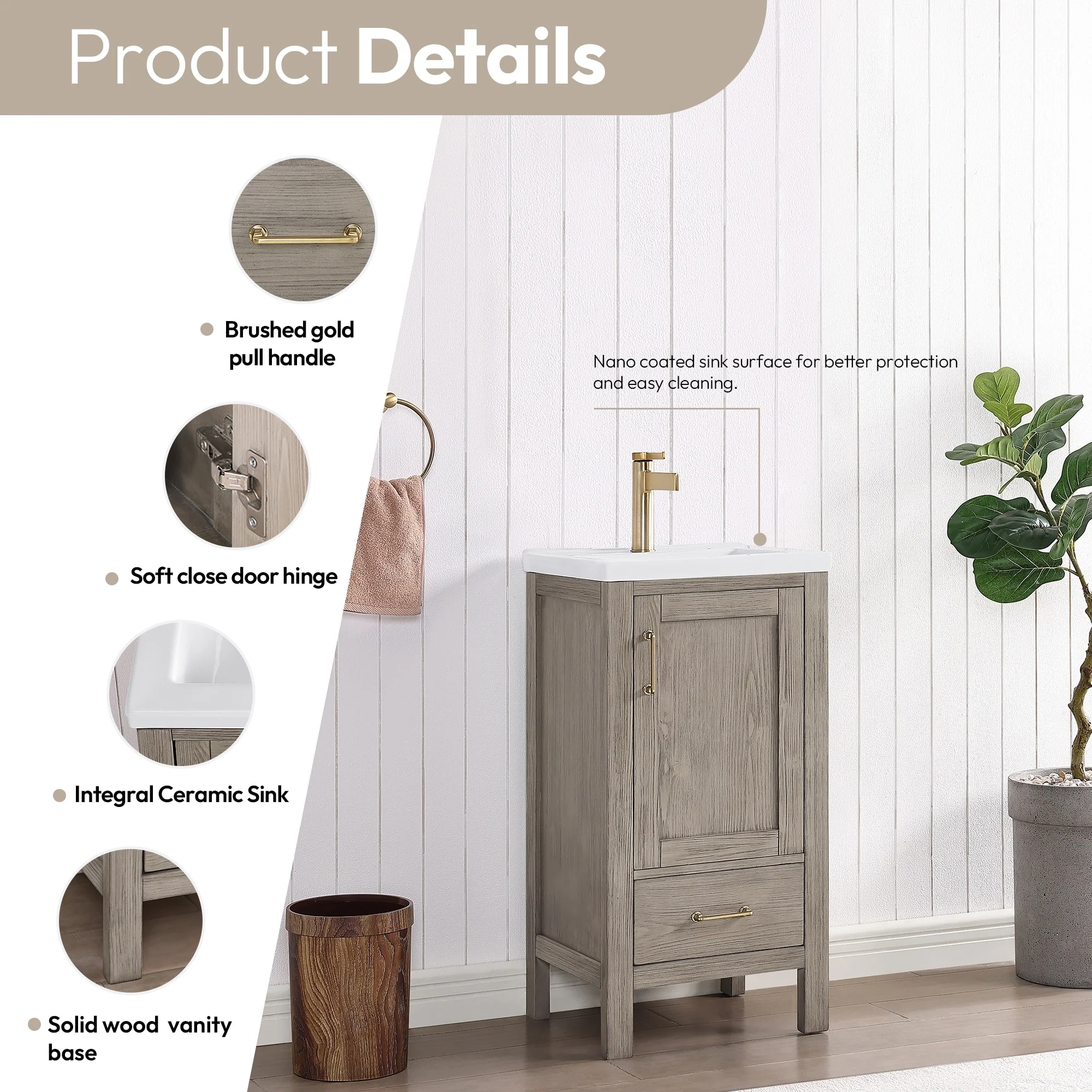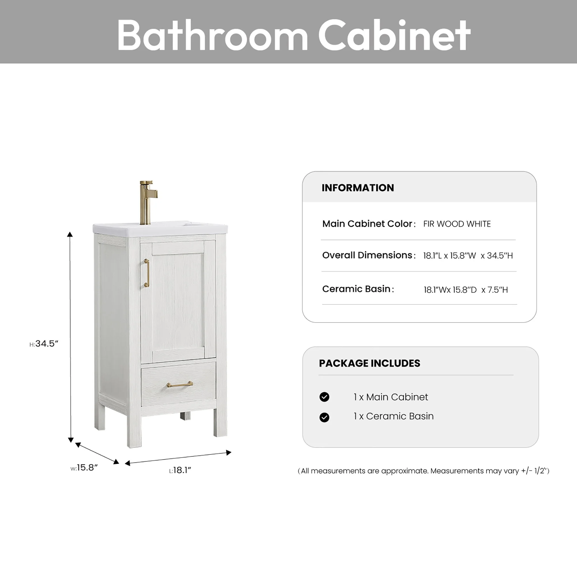 Gela Single Bath Vanity with Ceramic Basin Top without Mirror