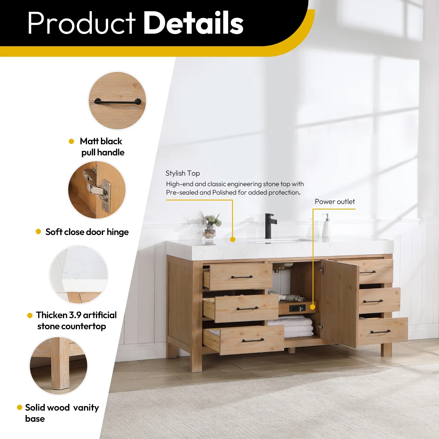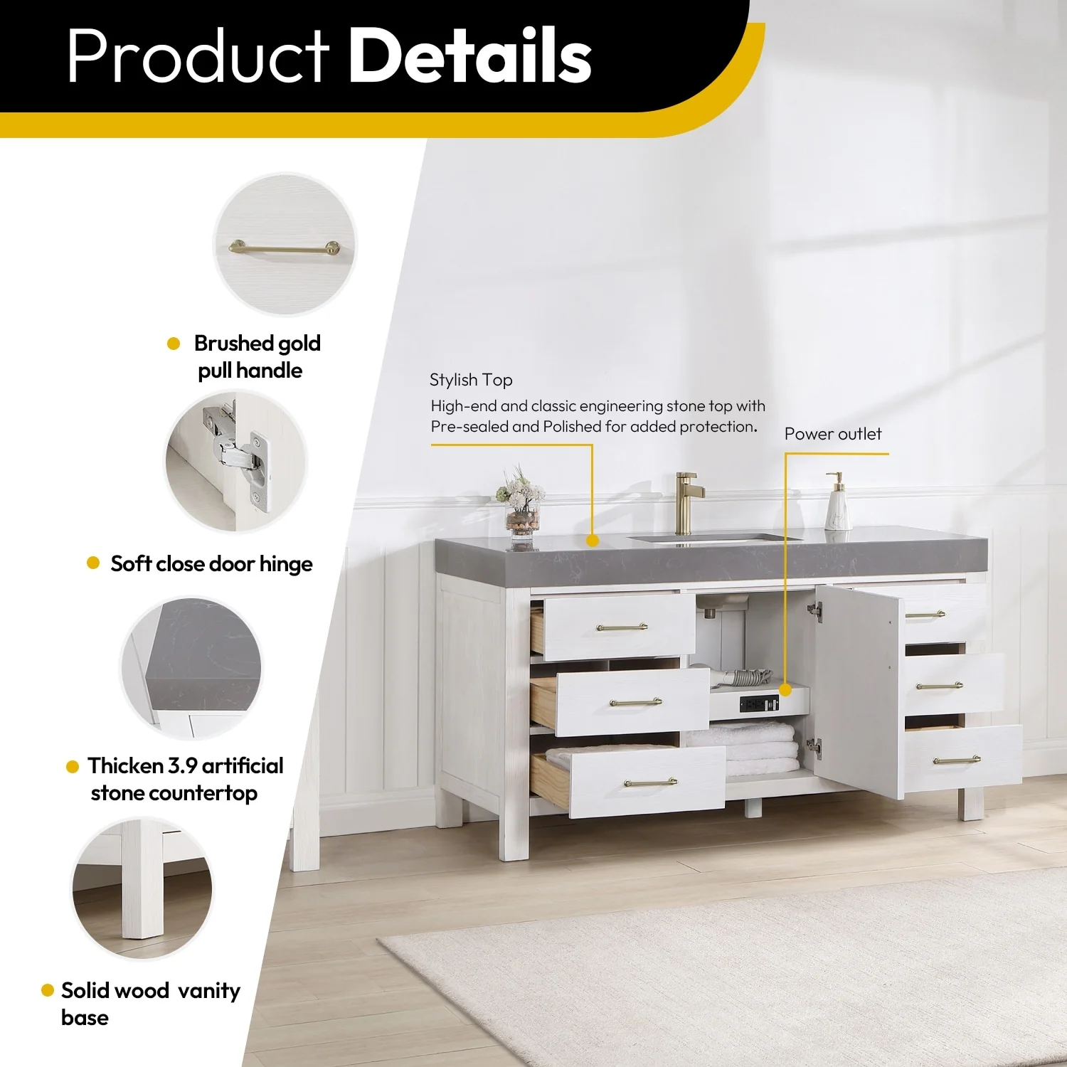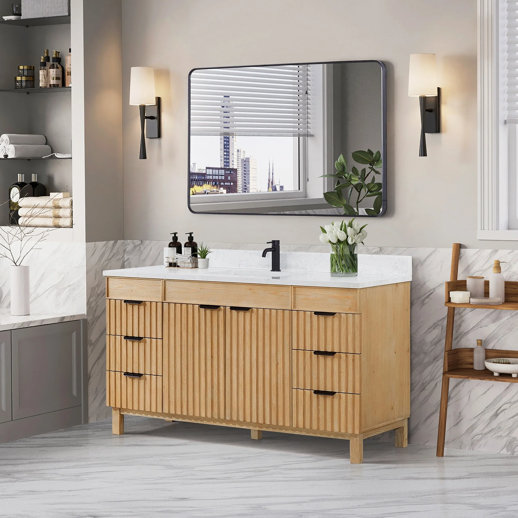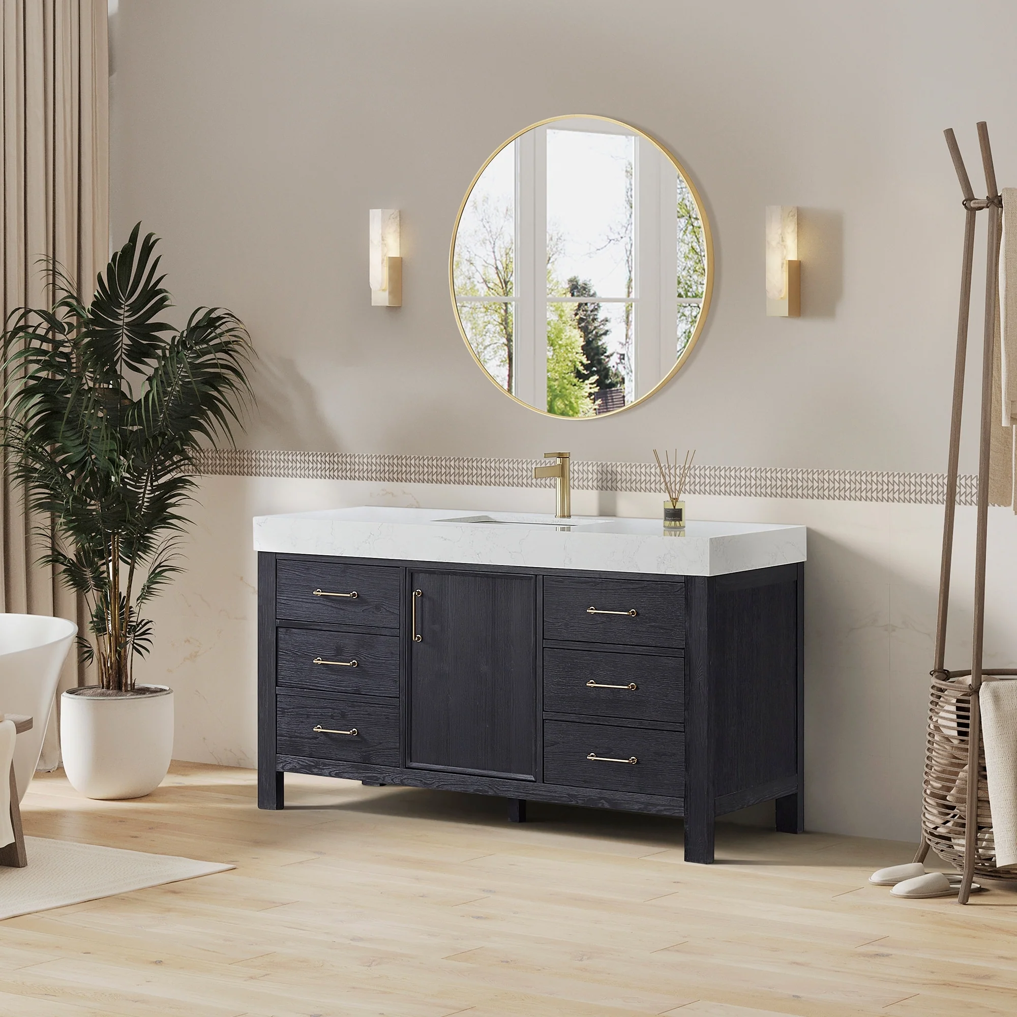 Leon 60 in. Single Bathroom Vanity with Composite Stone Top