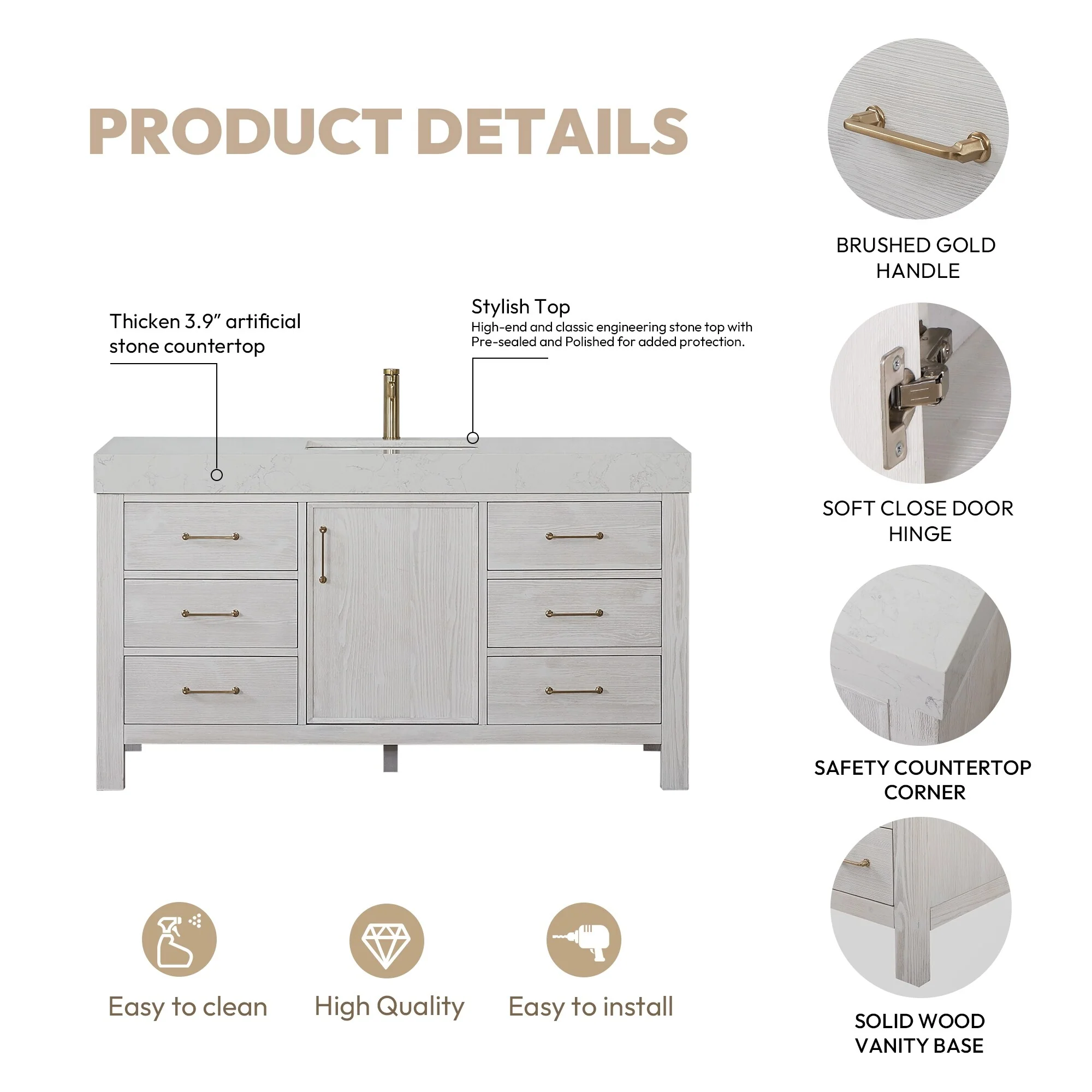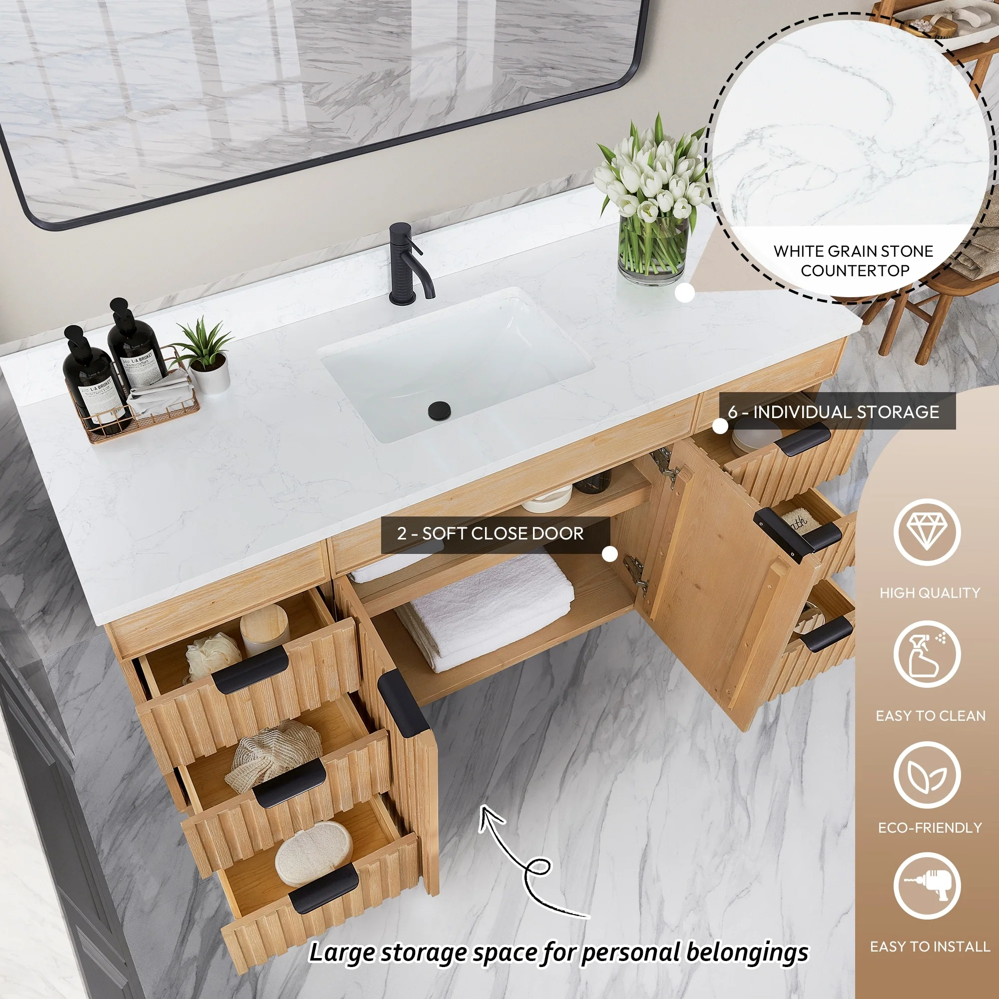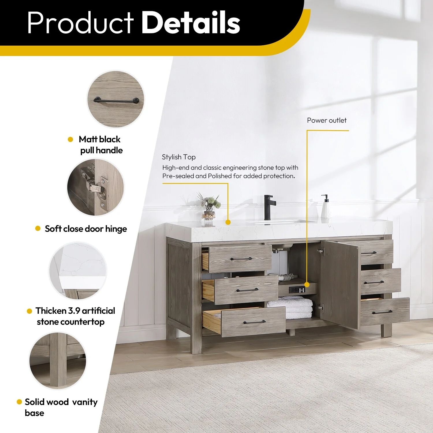 Leon 60 in. Single Bathroom Vanity with Composite Stone Top