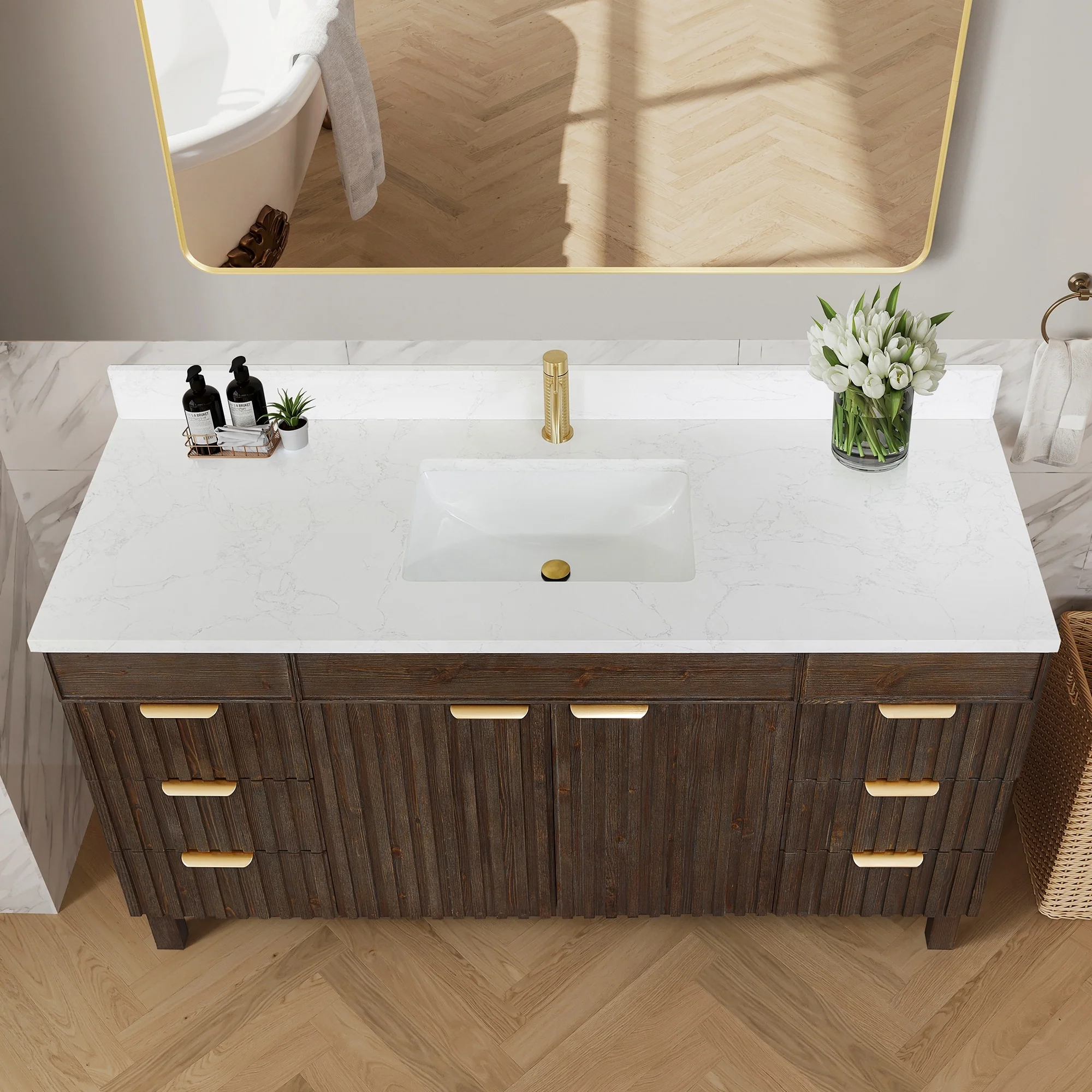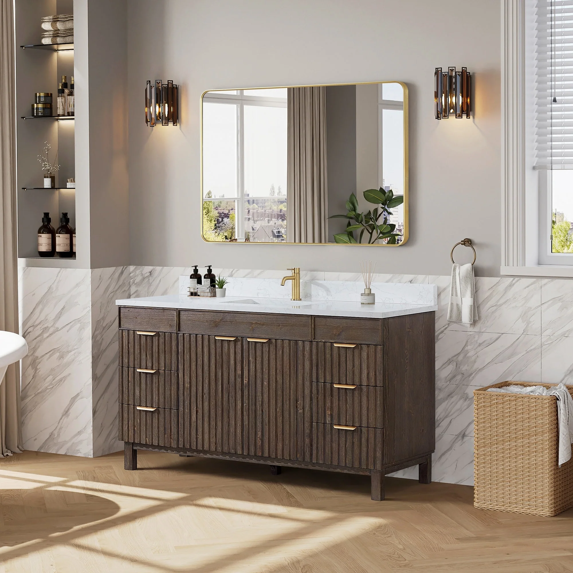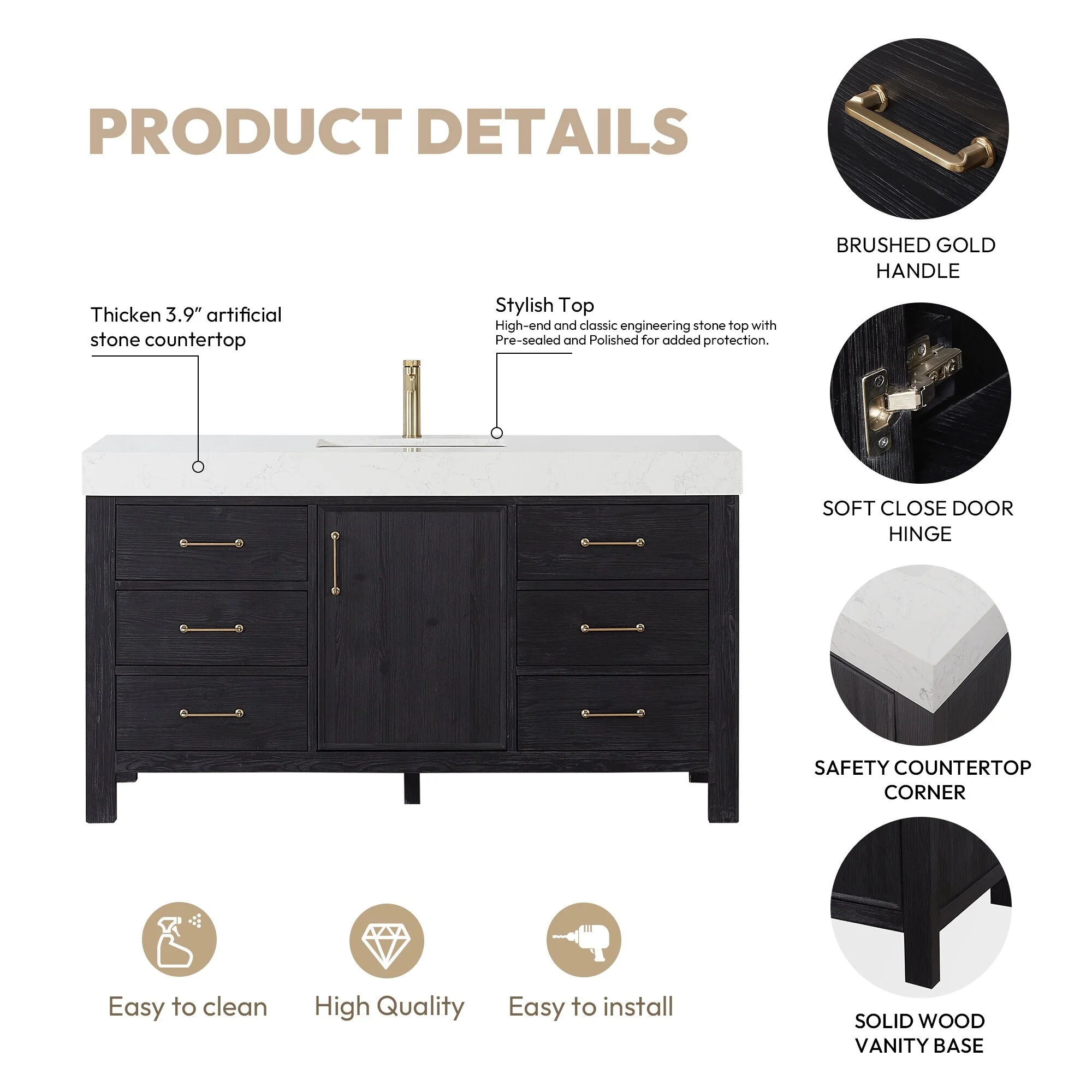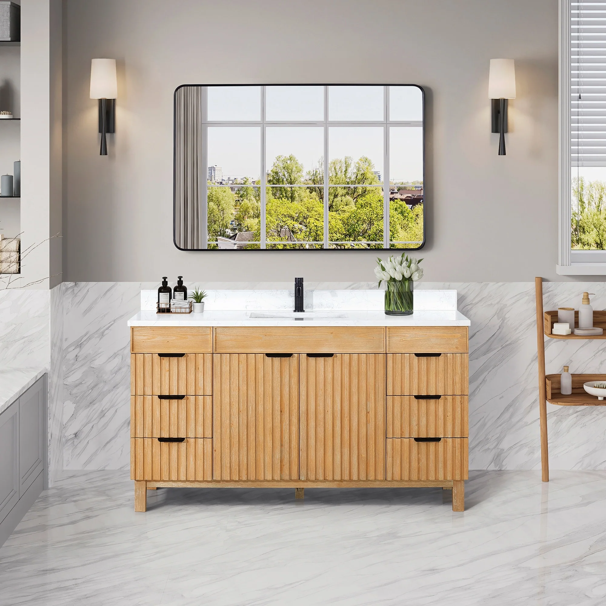 Leon 60 in. Single Bathroom Vanity with Composite Stone Top