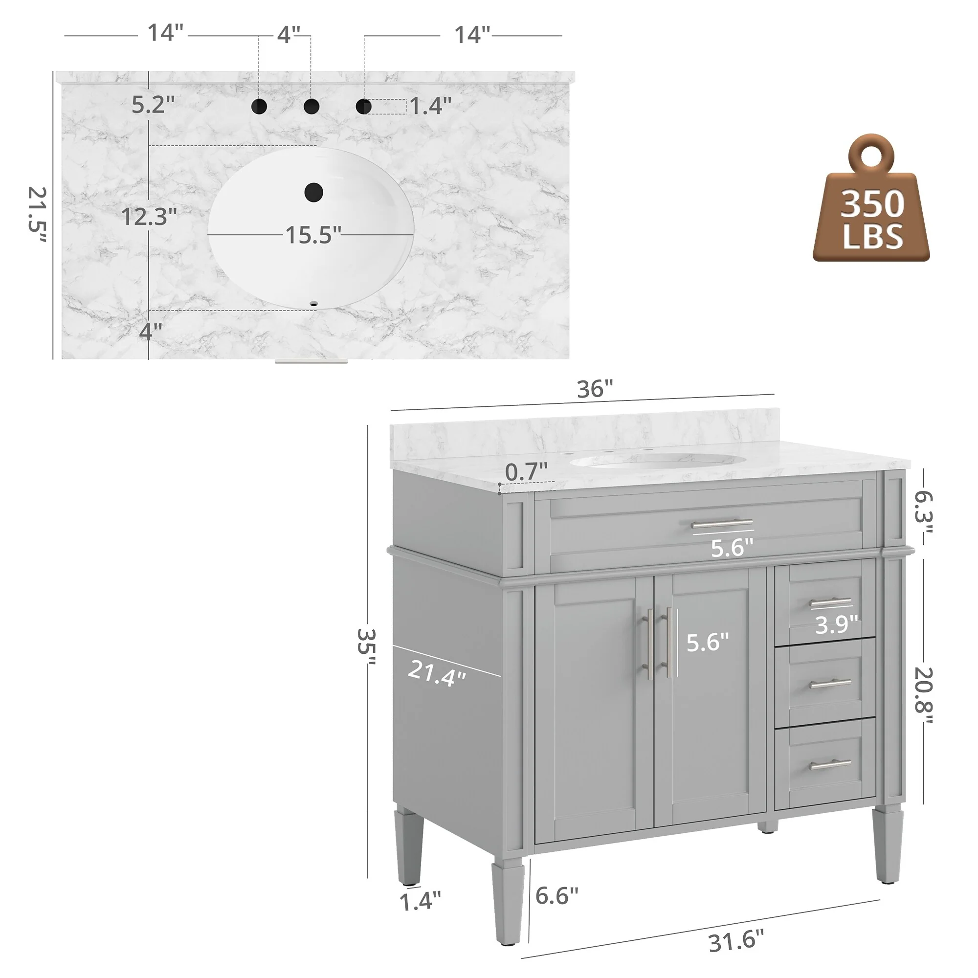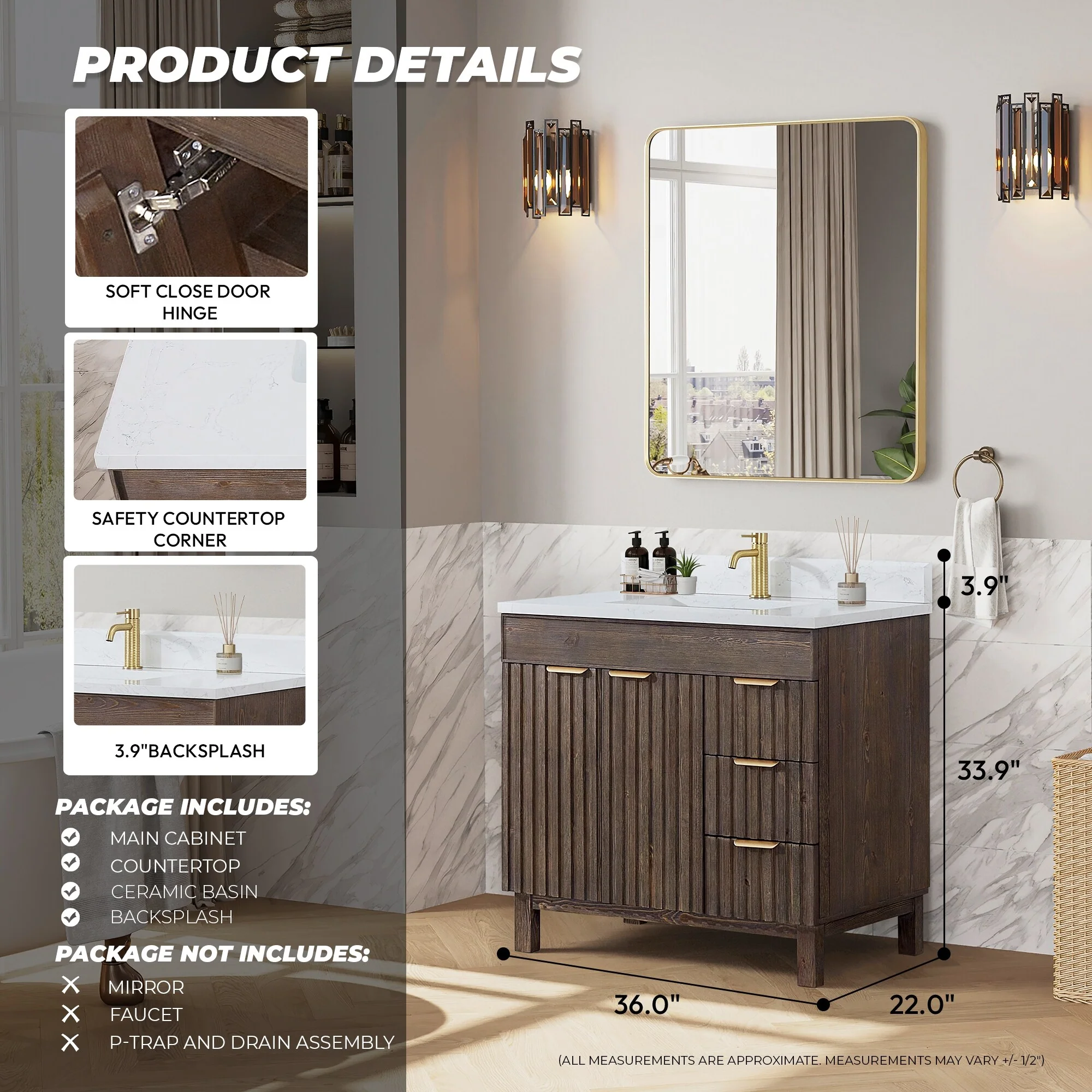 Moasis 36"/40"/ 47" Bathroom Vanity Cabinet with Sink