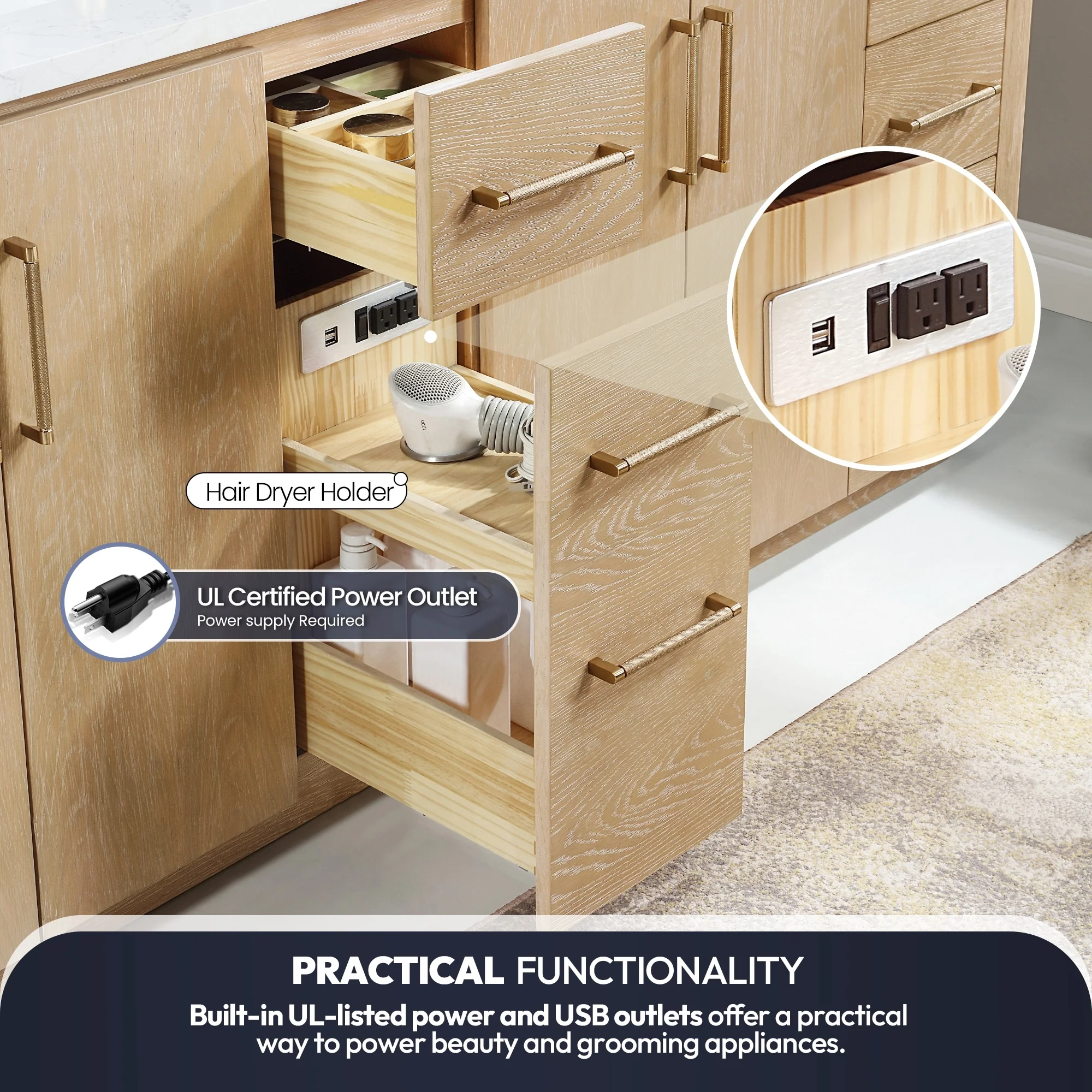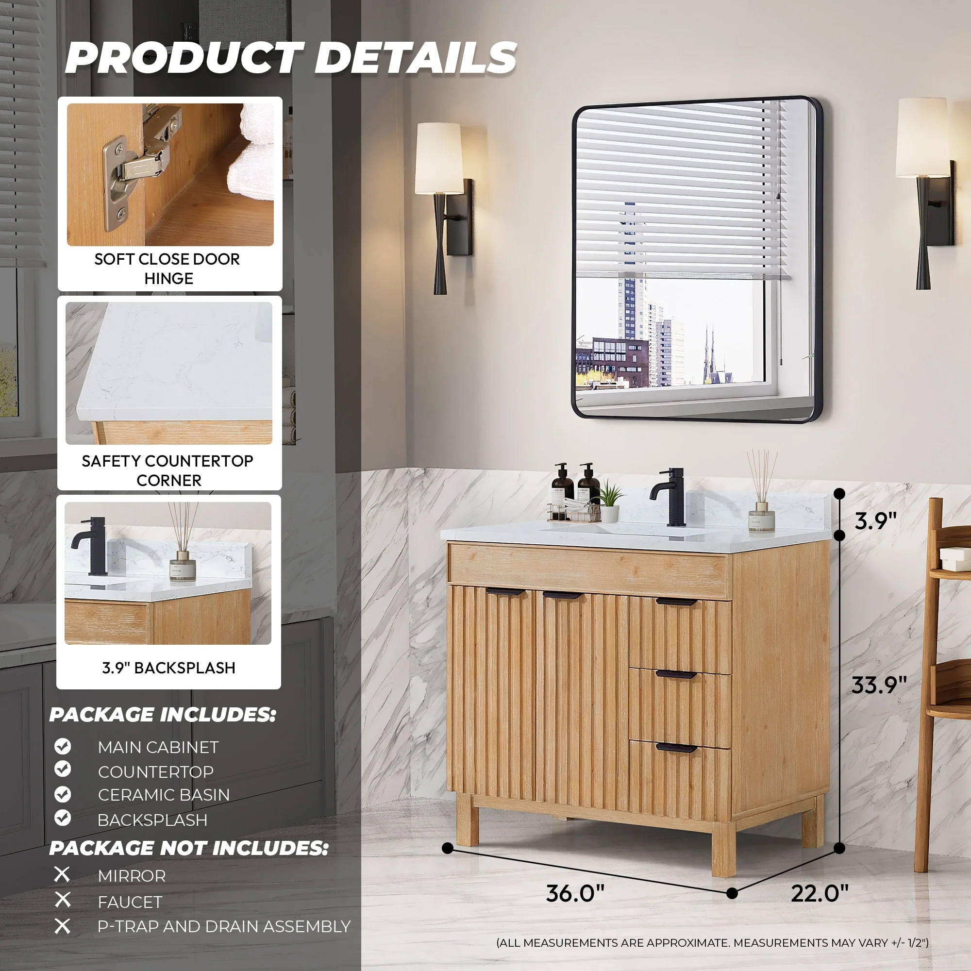 Chateau 36" Bathroom Vanity In Natural Oak