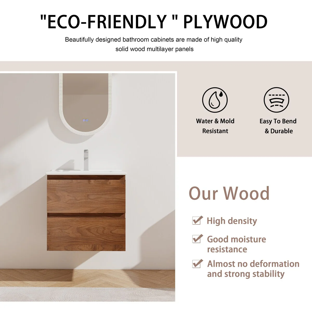 Malwee 24"/30"/36"/48" Floating Bathroom Vanity with Sink
