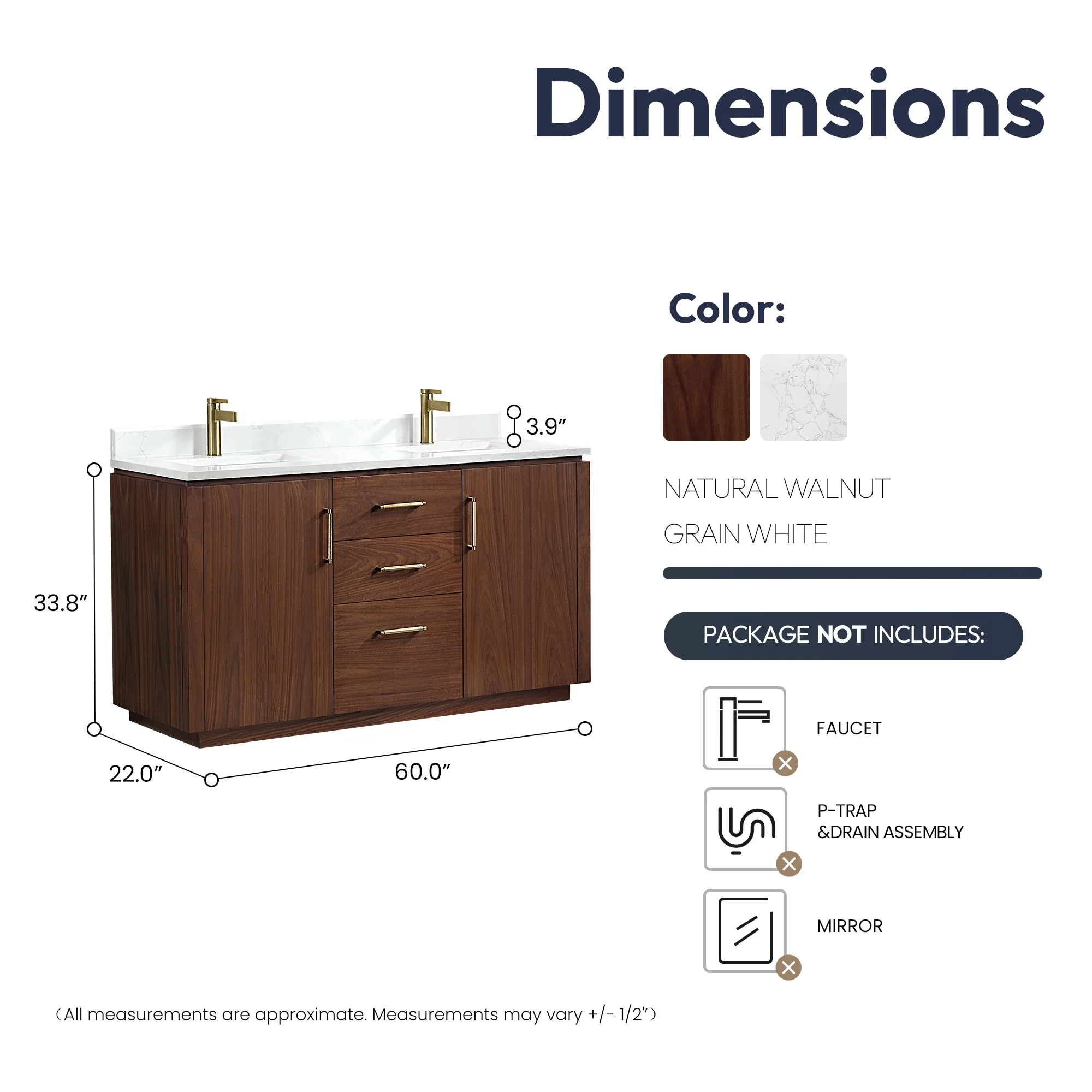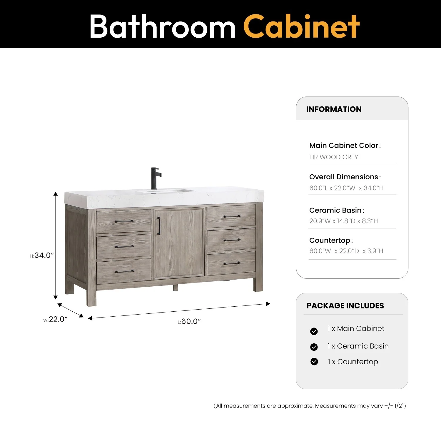 60 in. - Grey - No Mirror