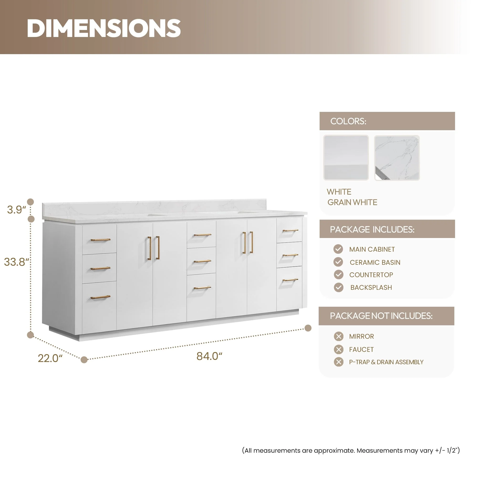 84 in. - White - No Mirror