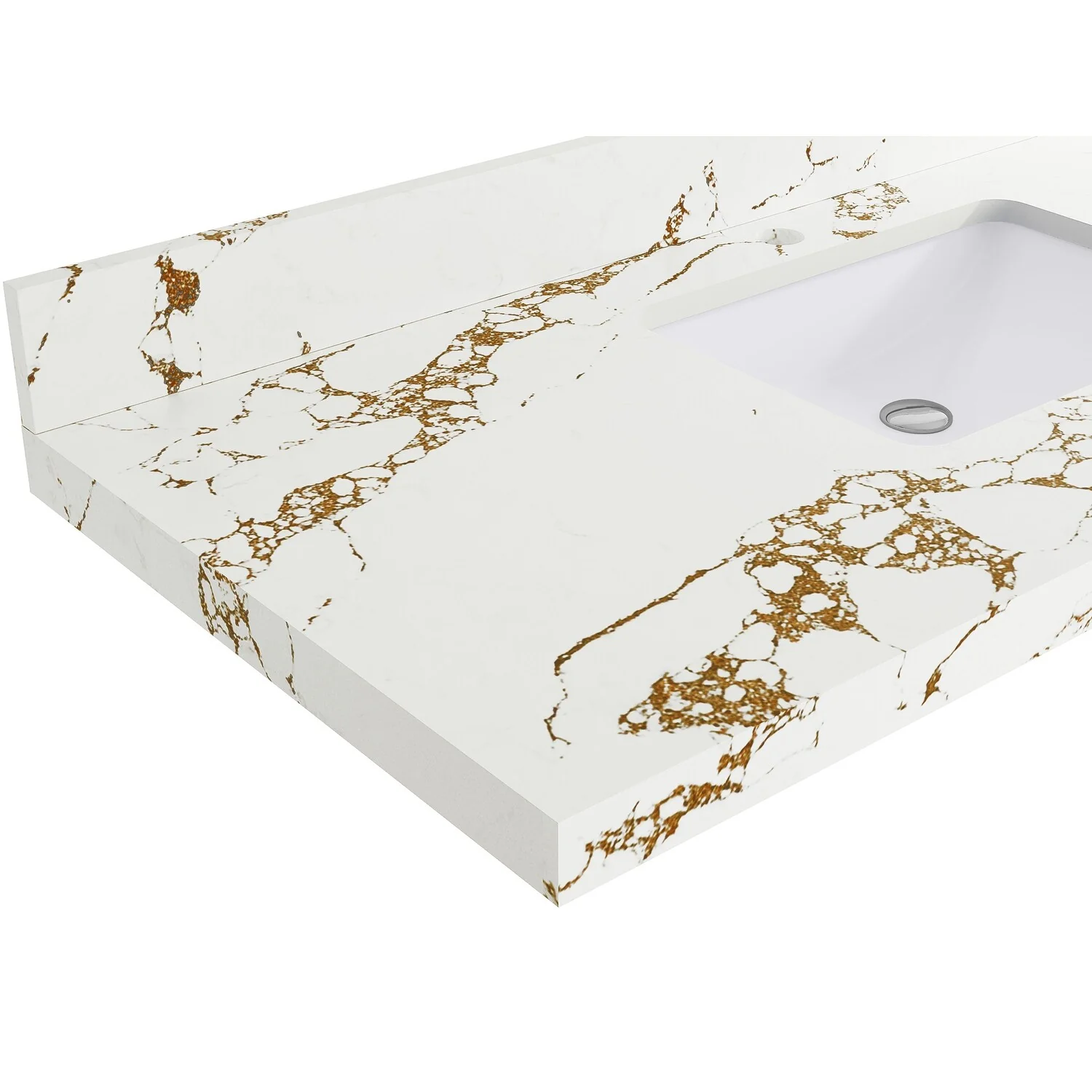 Winette 37" x 22" Quartz Bathroom Vanity Top with White Rectangular Cermic Sink and Backsplash