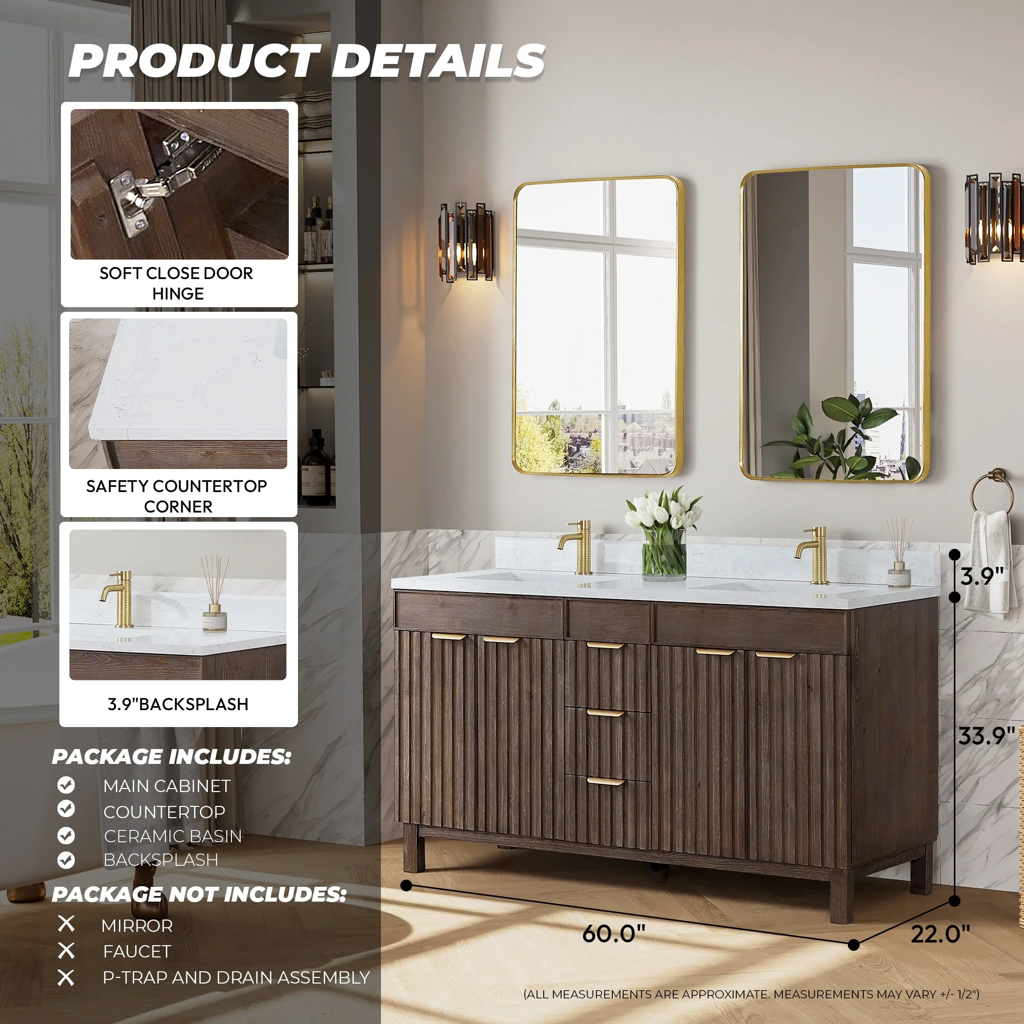 60 in. - Brown - With Mirror