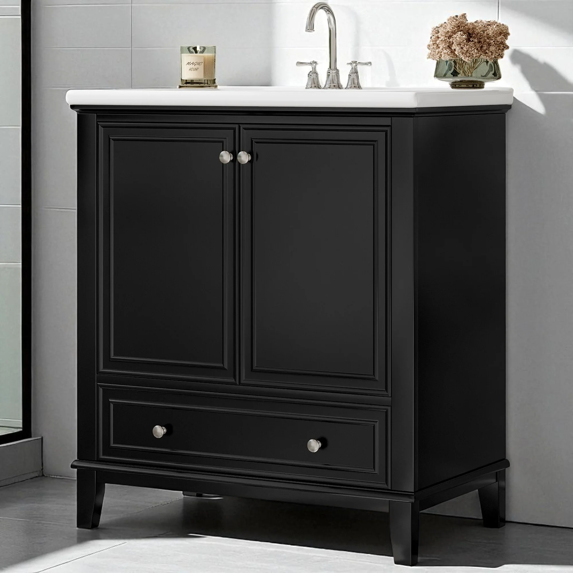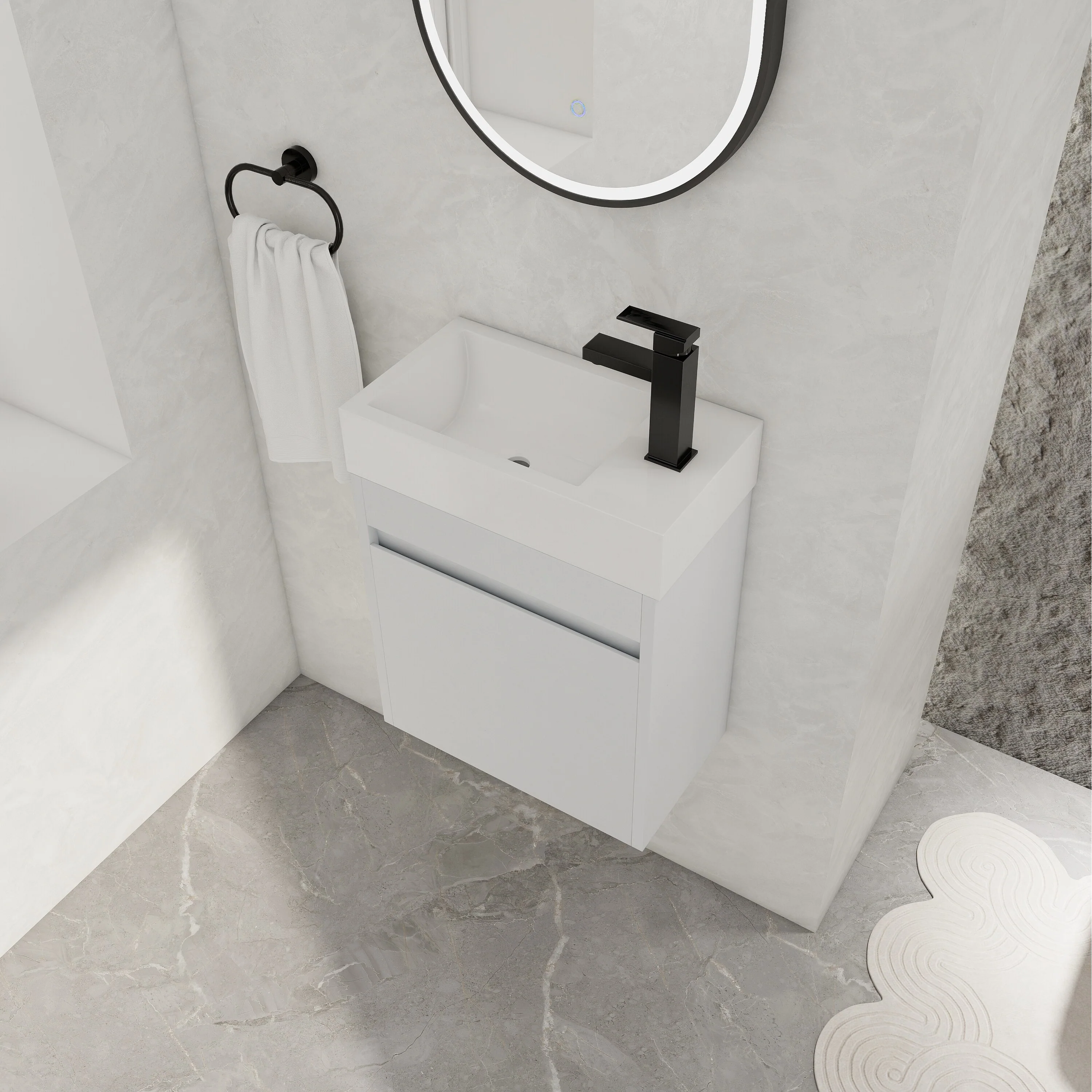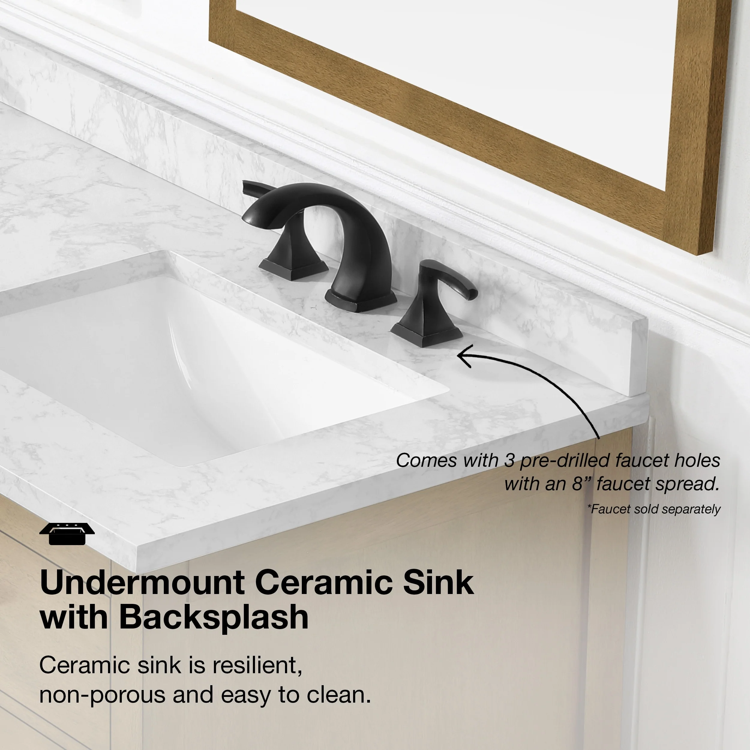 White, Black Trim, Carrara Cultured Marble Top