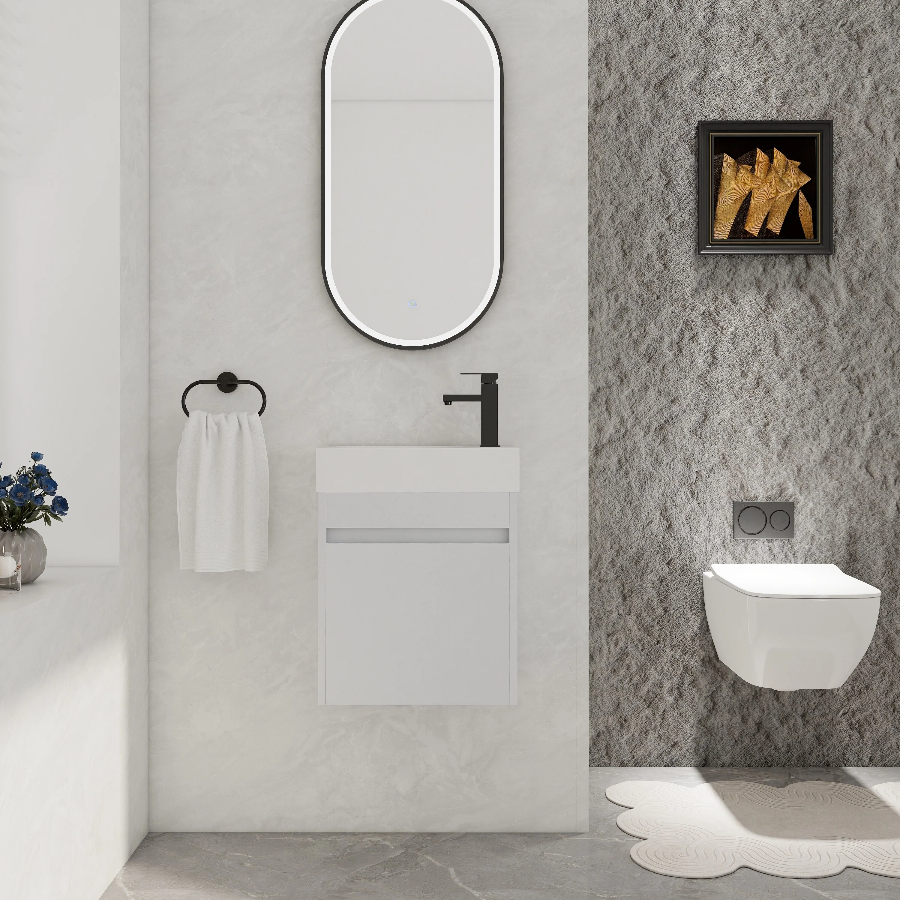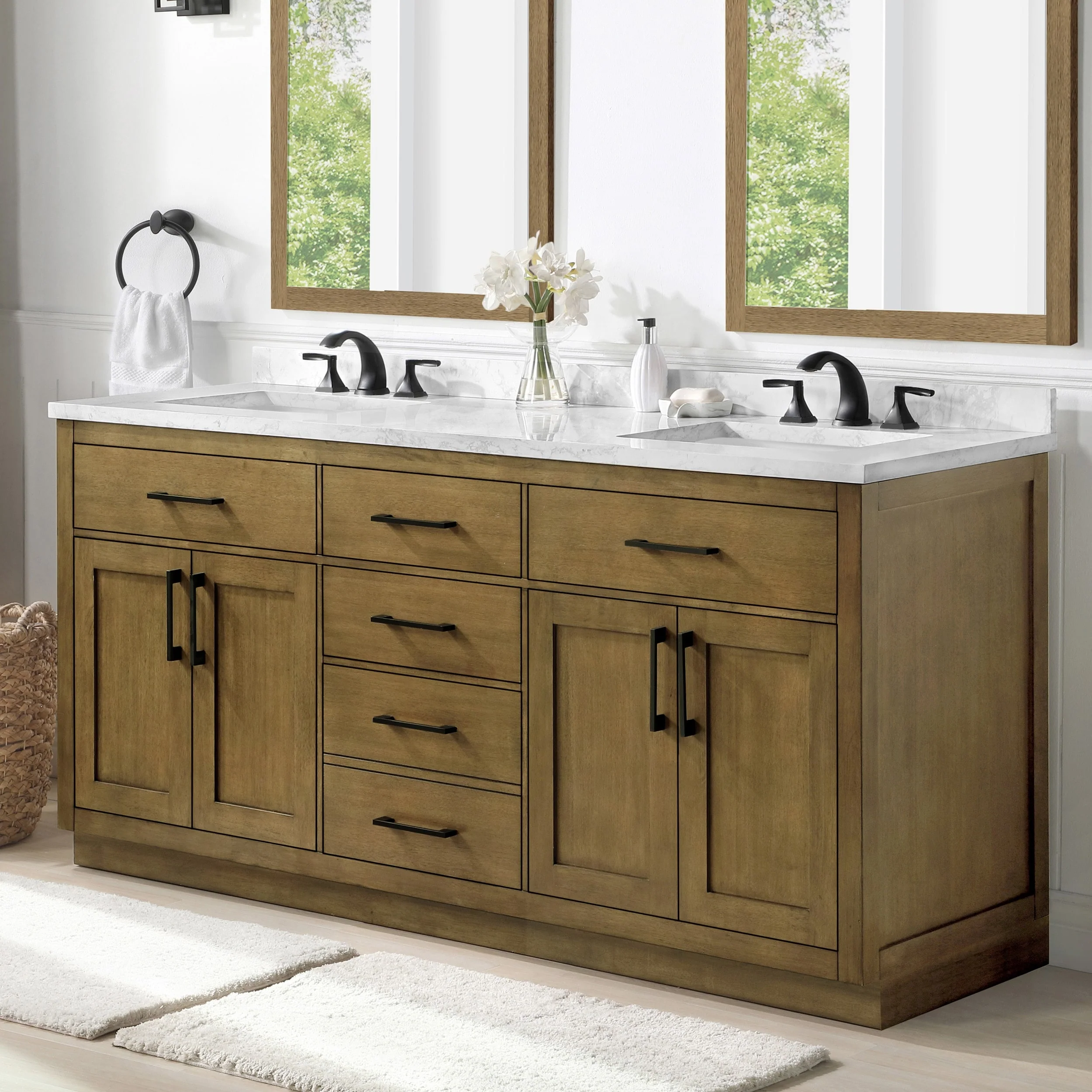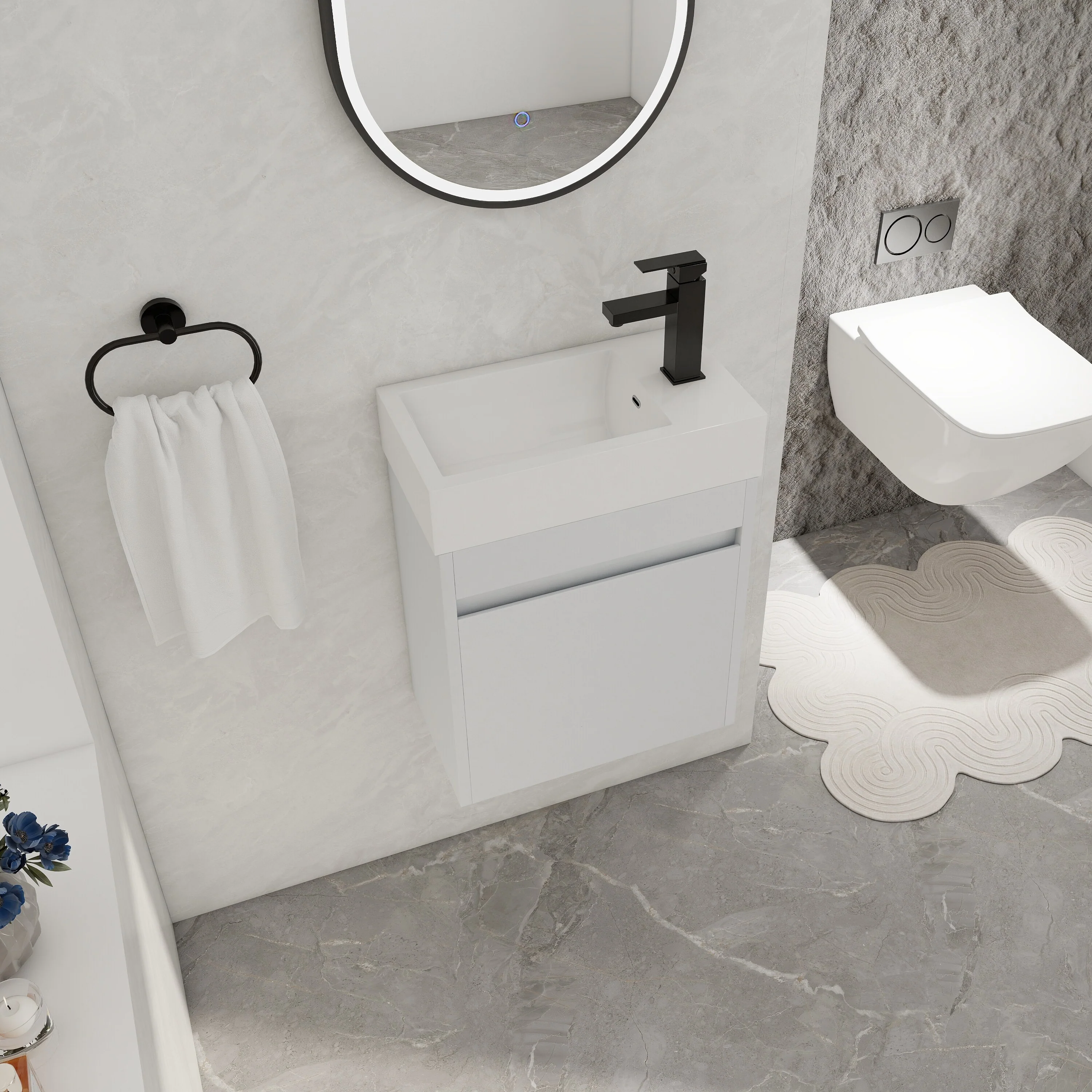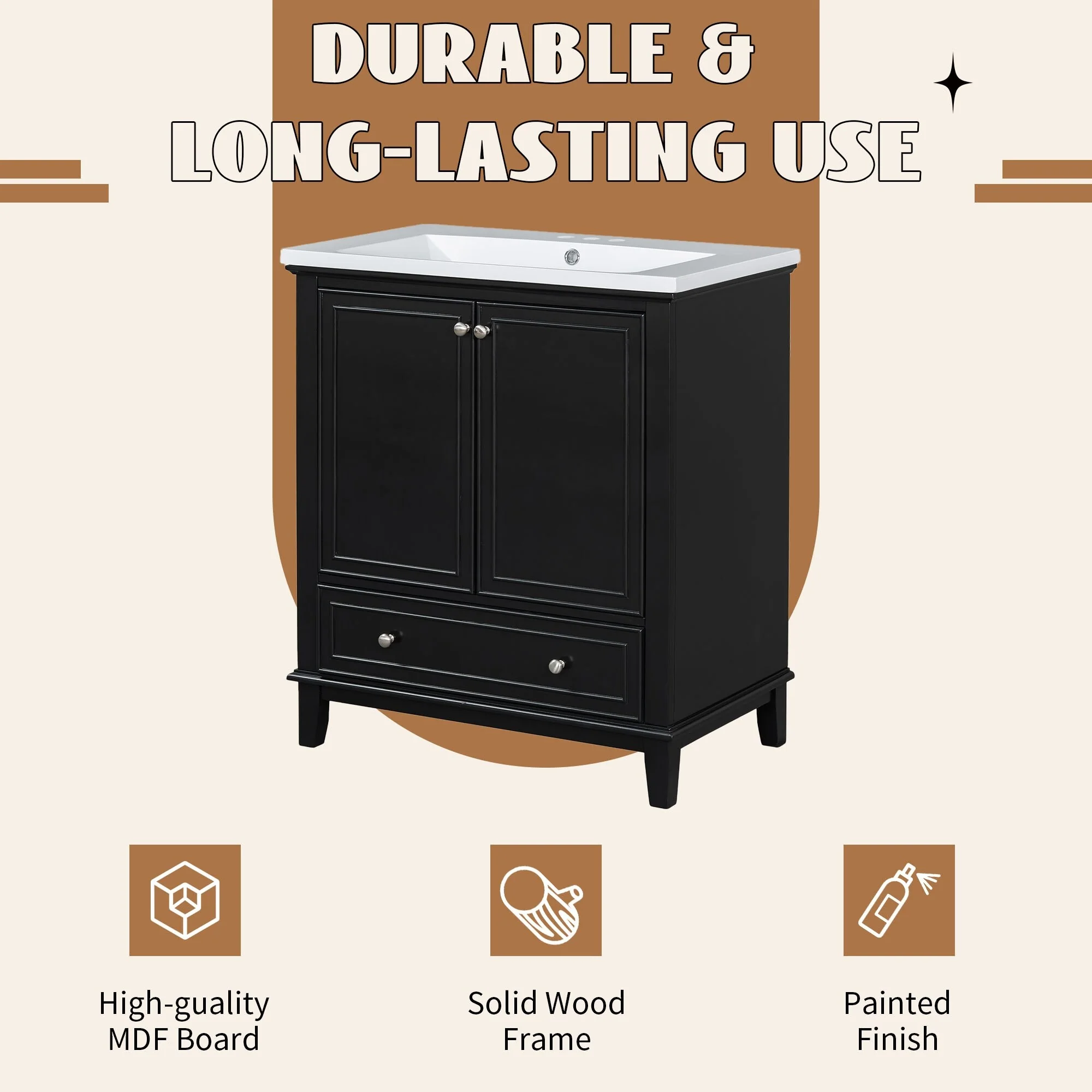 White, Black Trim, Carrara Cultured Marble Top