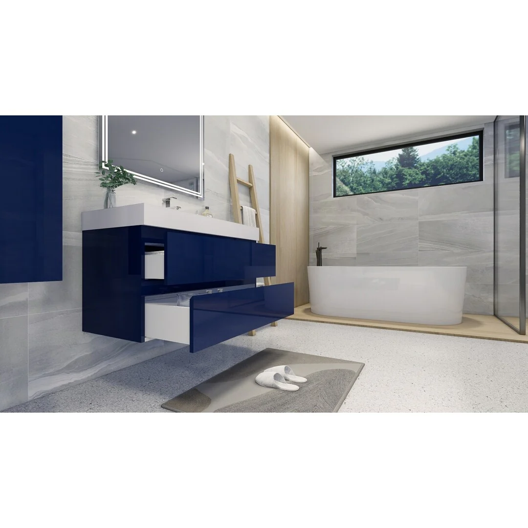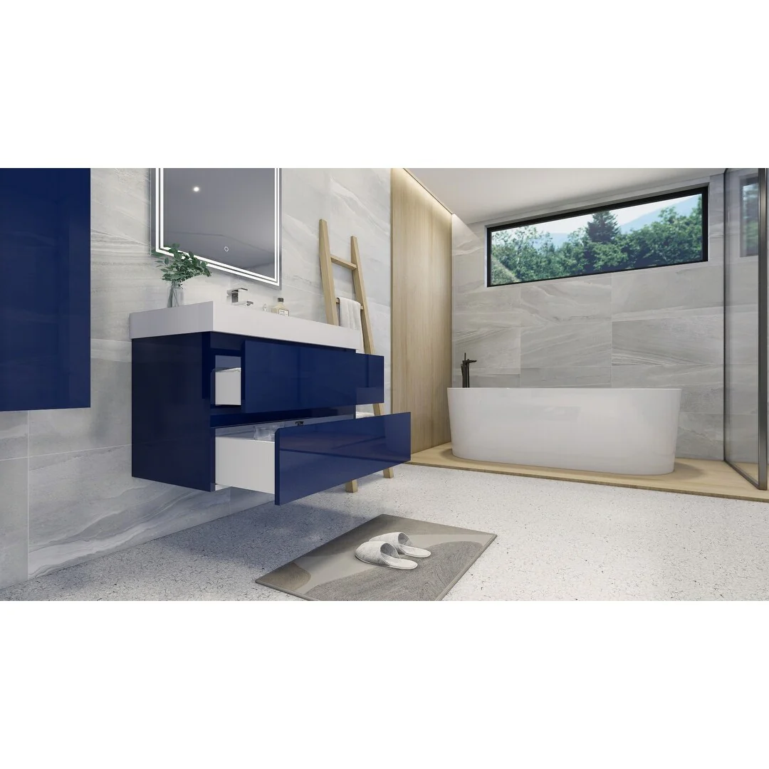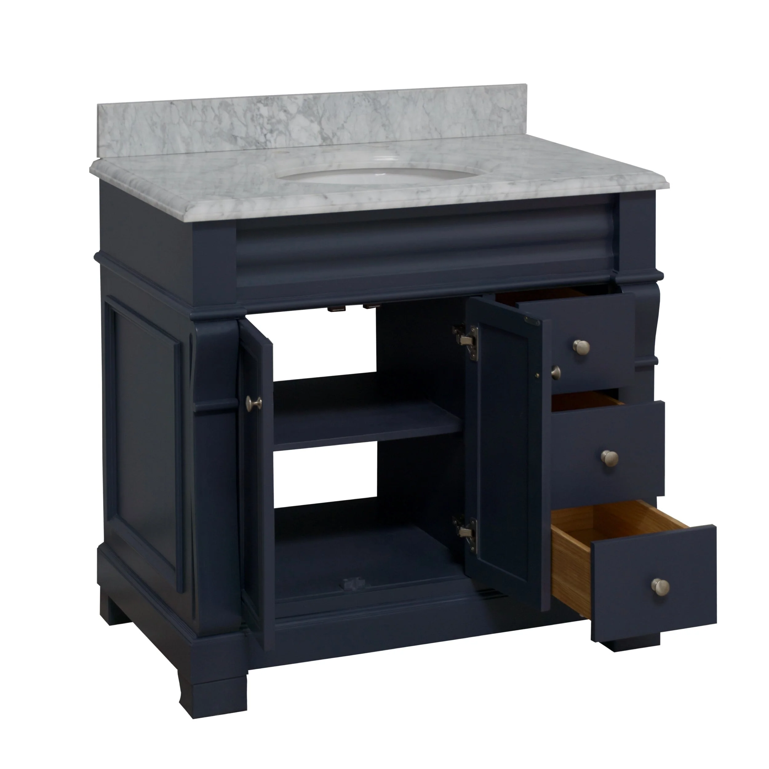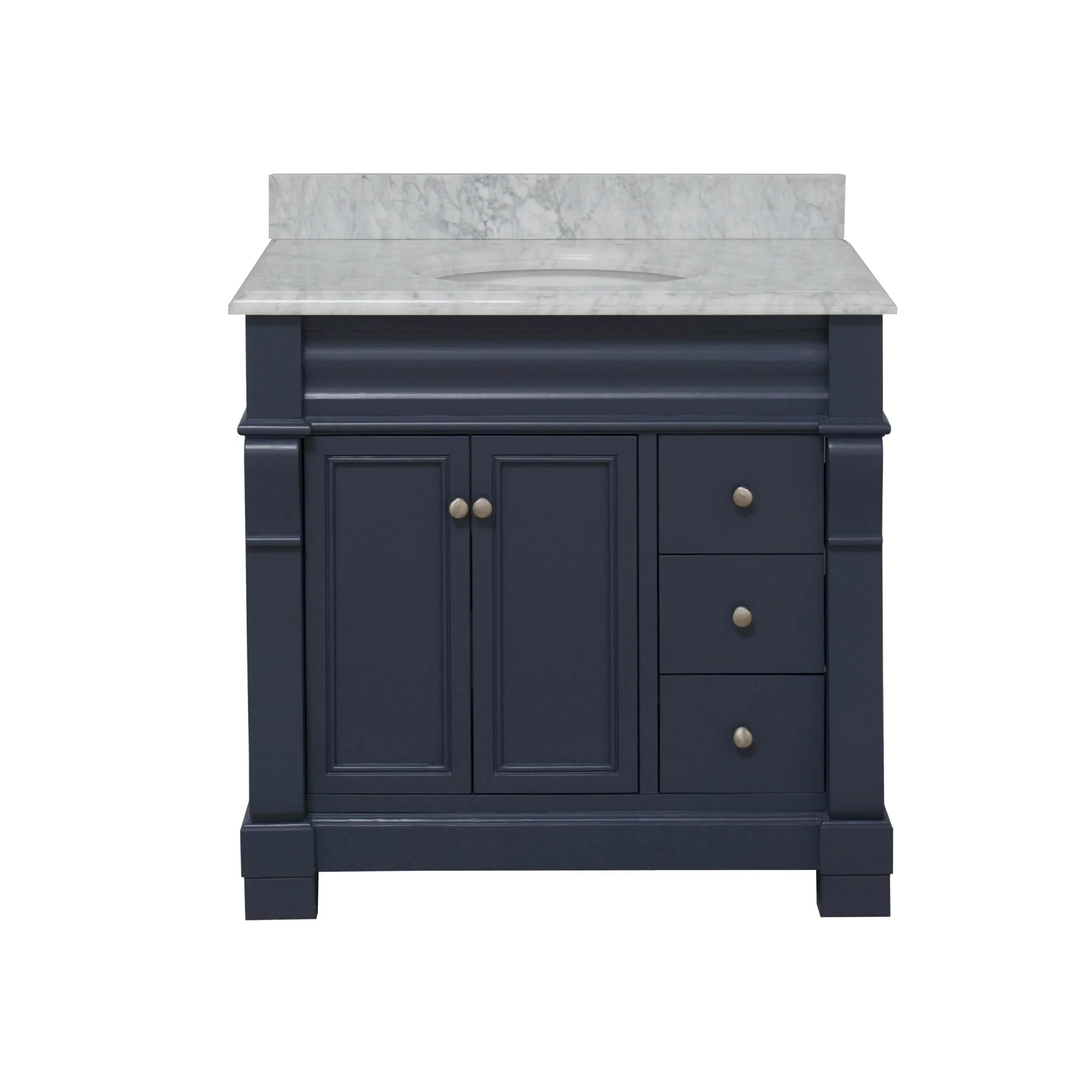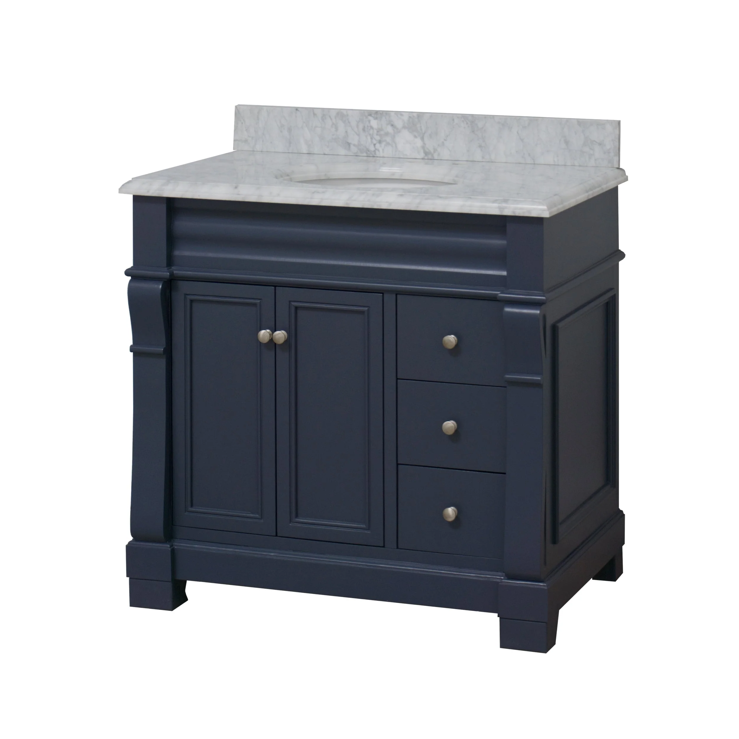 Dark Blue, Nickel Trim,Carrara Cultured Marble Top