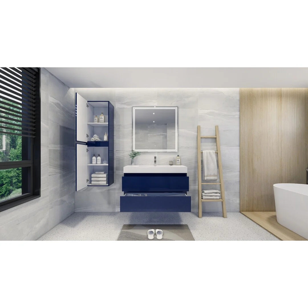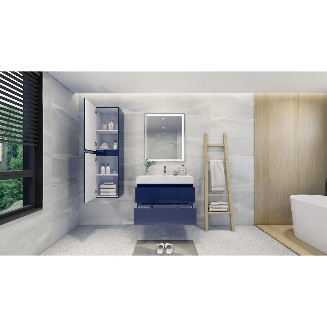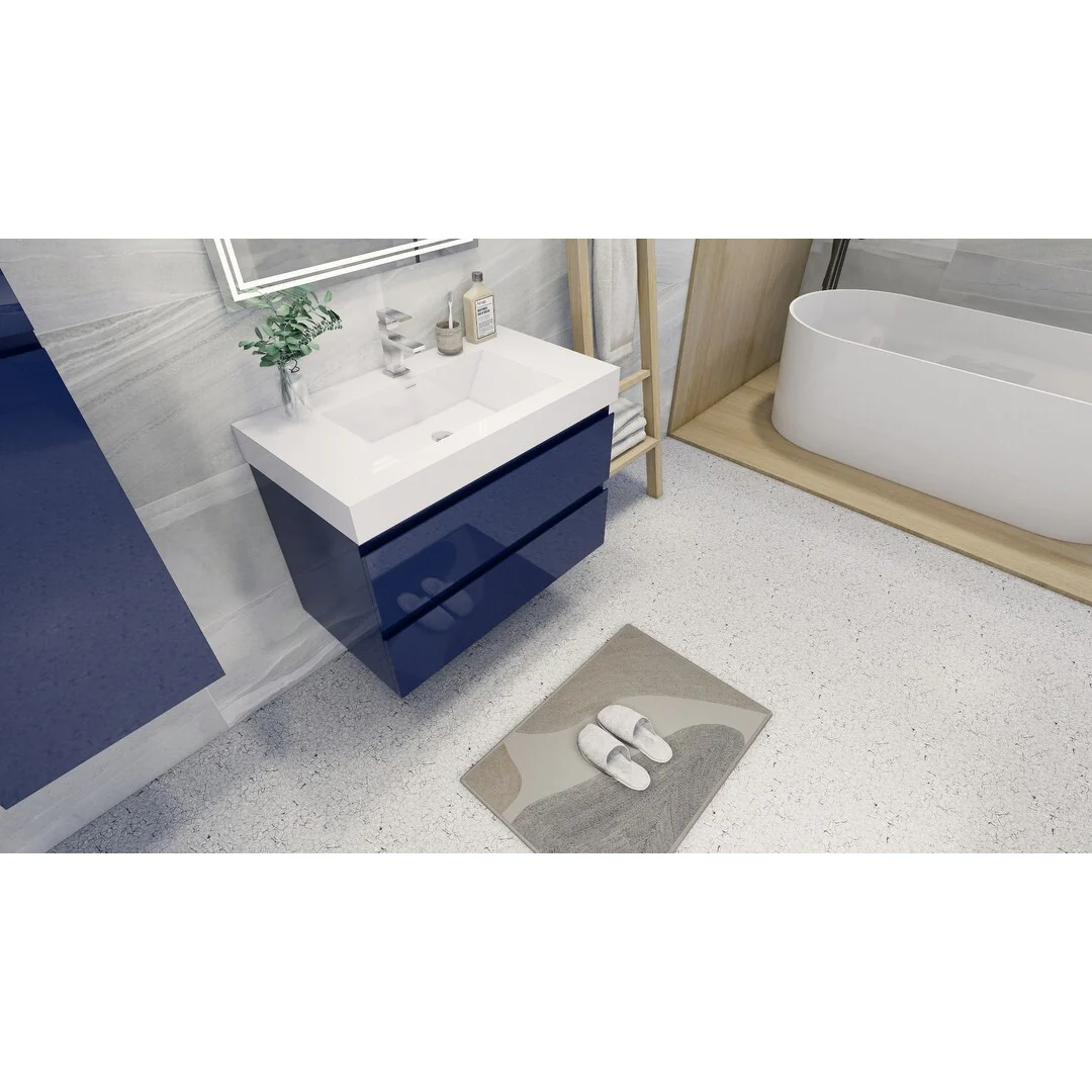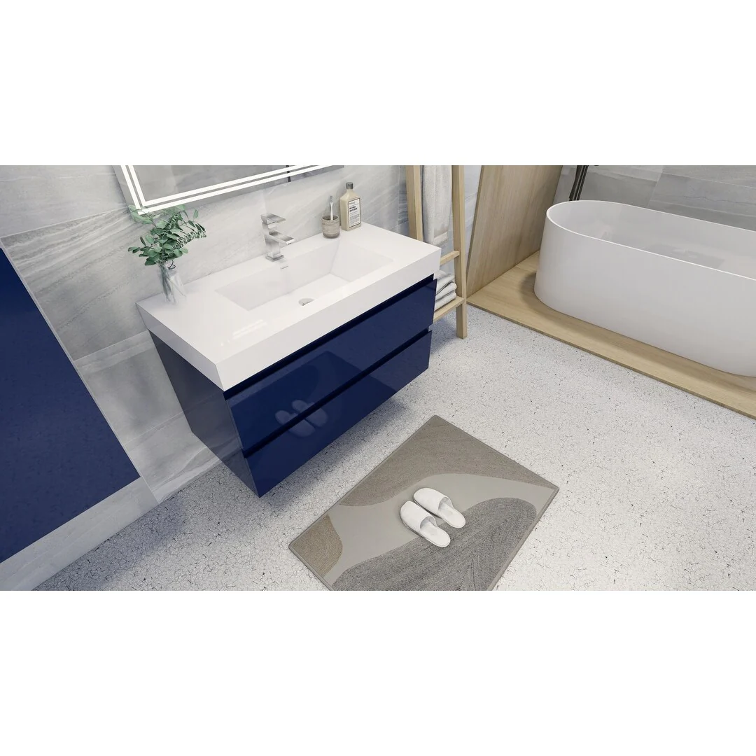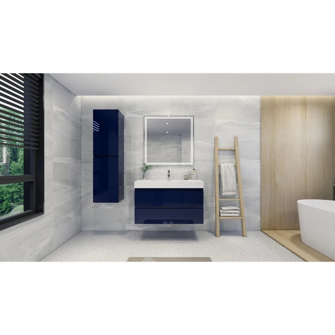 Dark Blue, Nickel Trim,Carrara Cultured Marble Top
