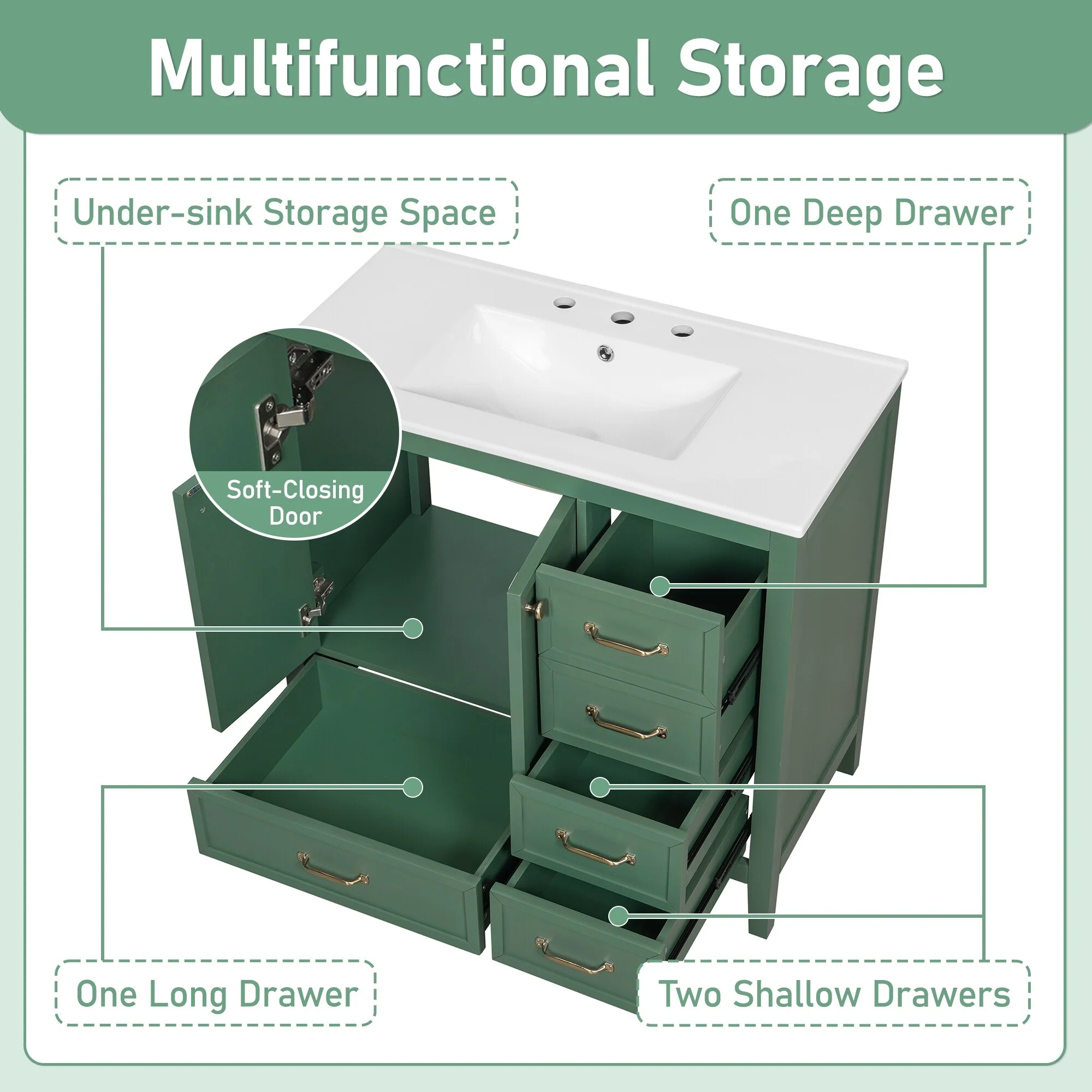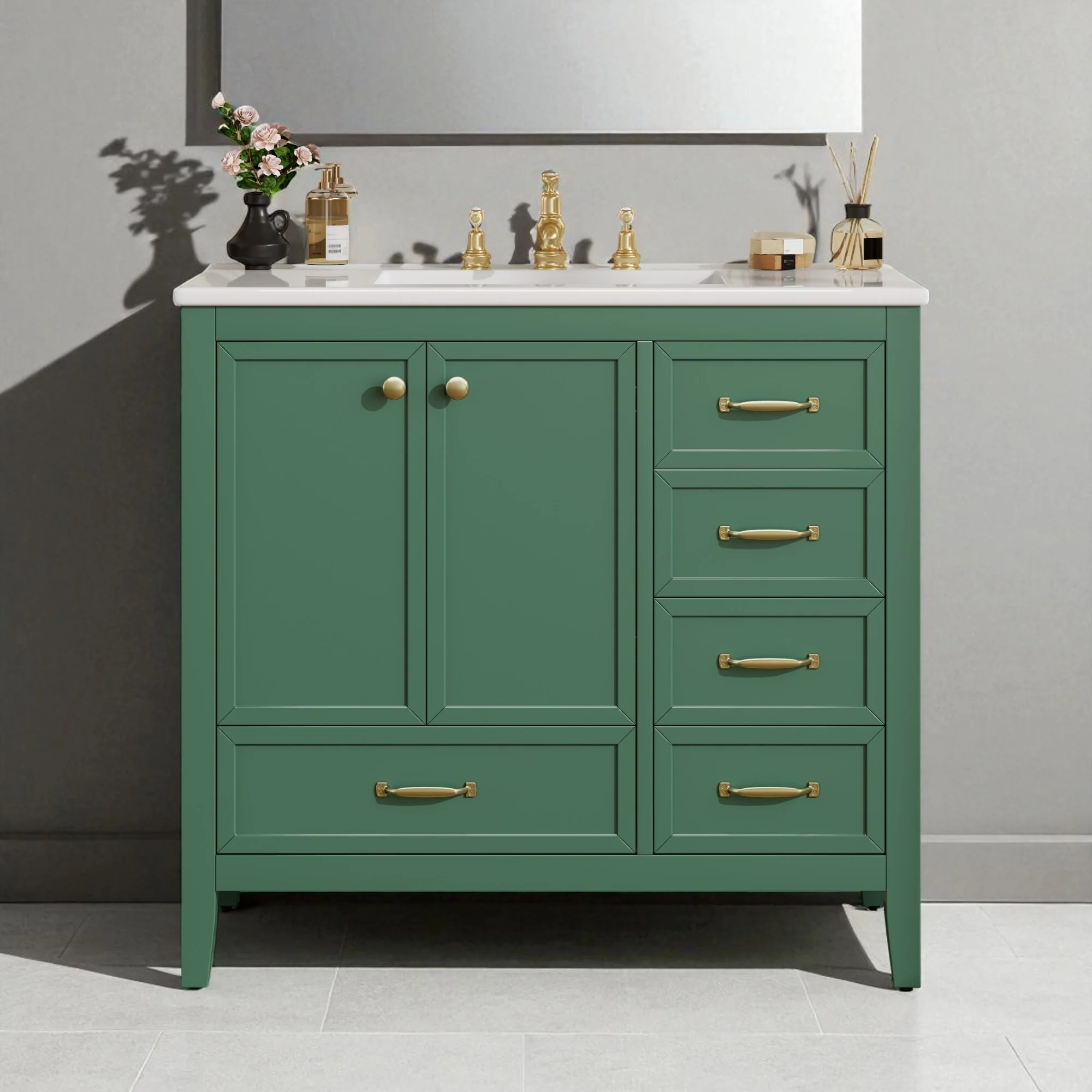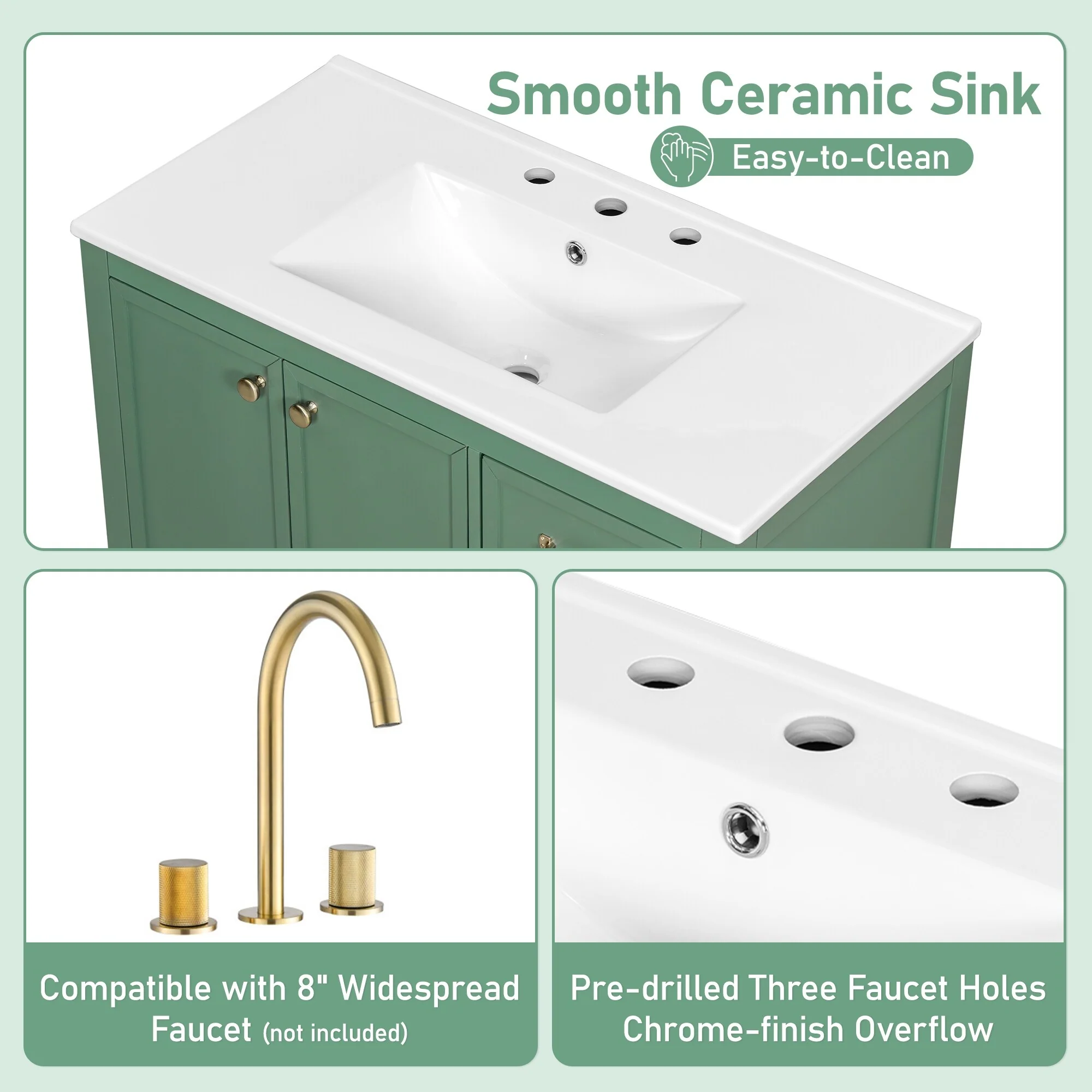 Green, Gold Trim, White Cultured Marble Top