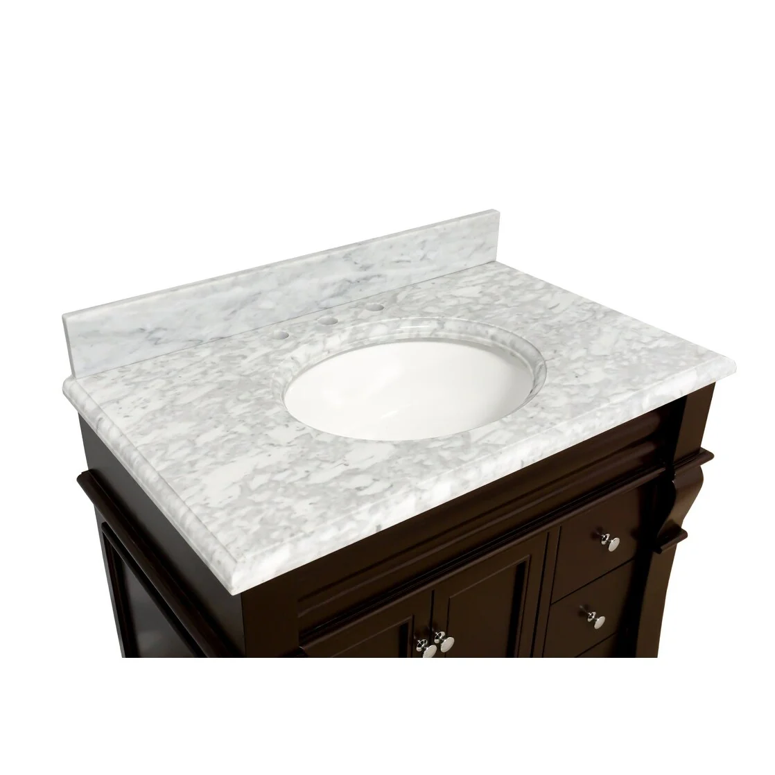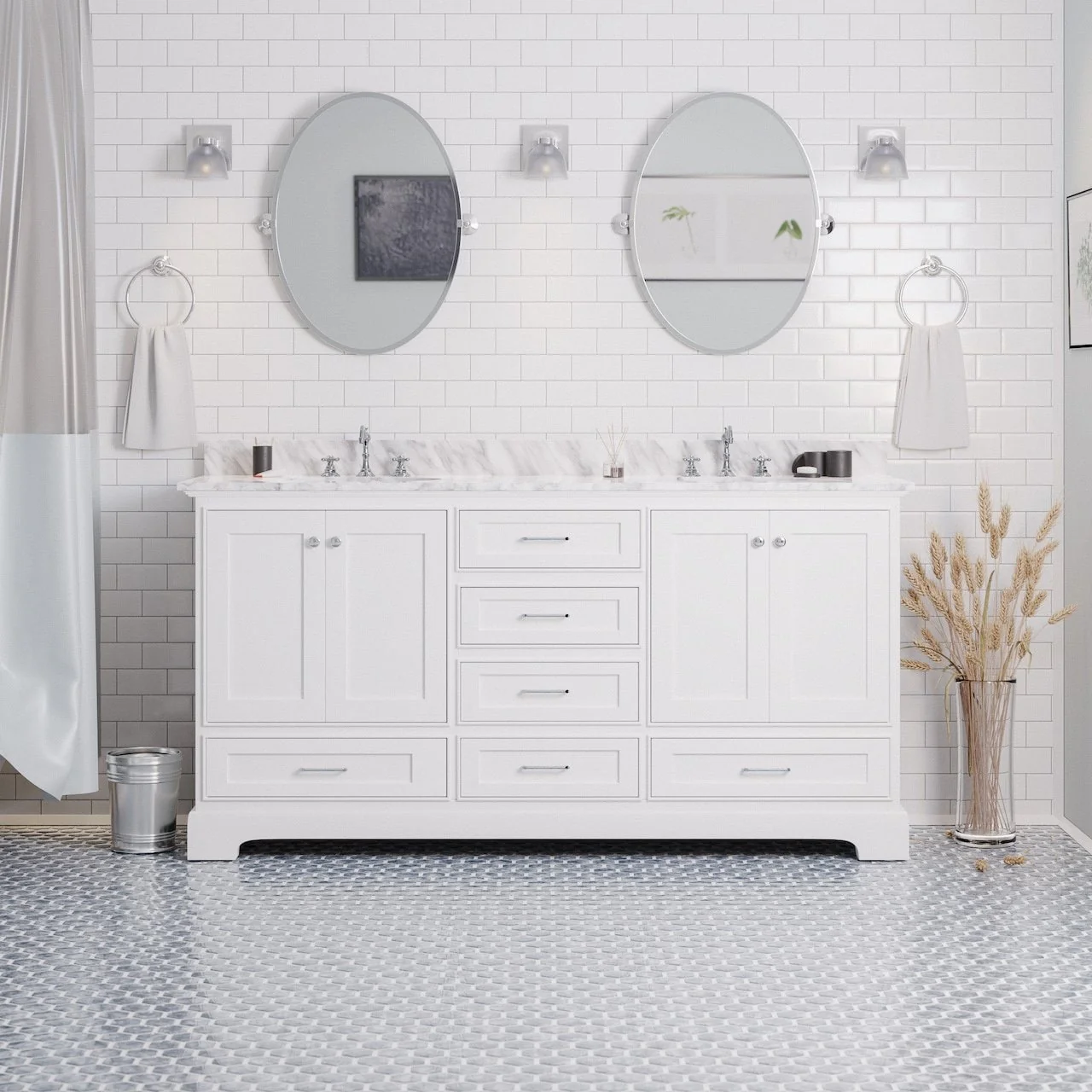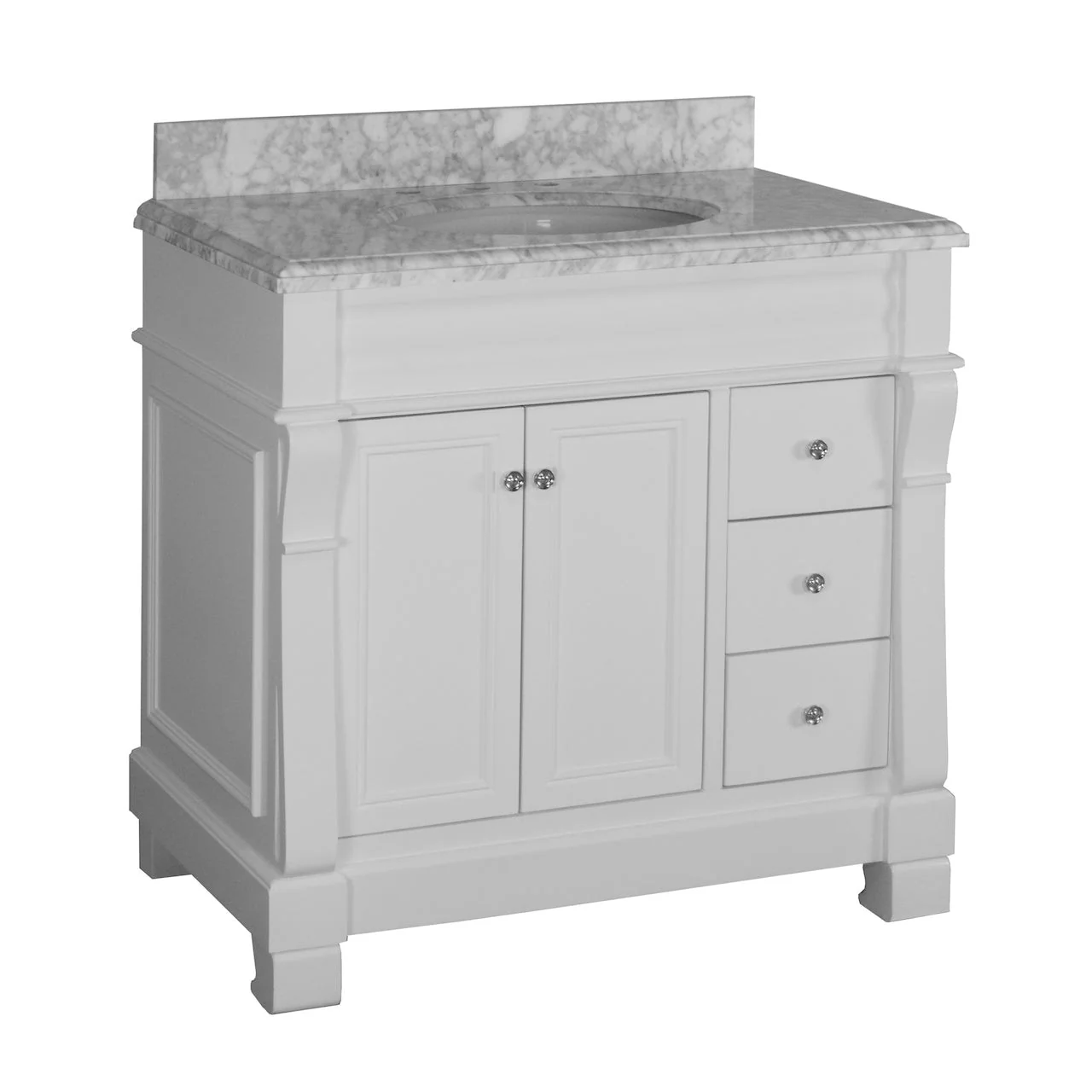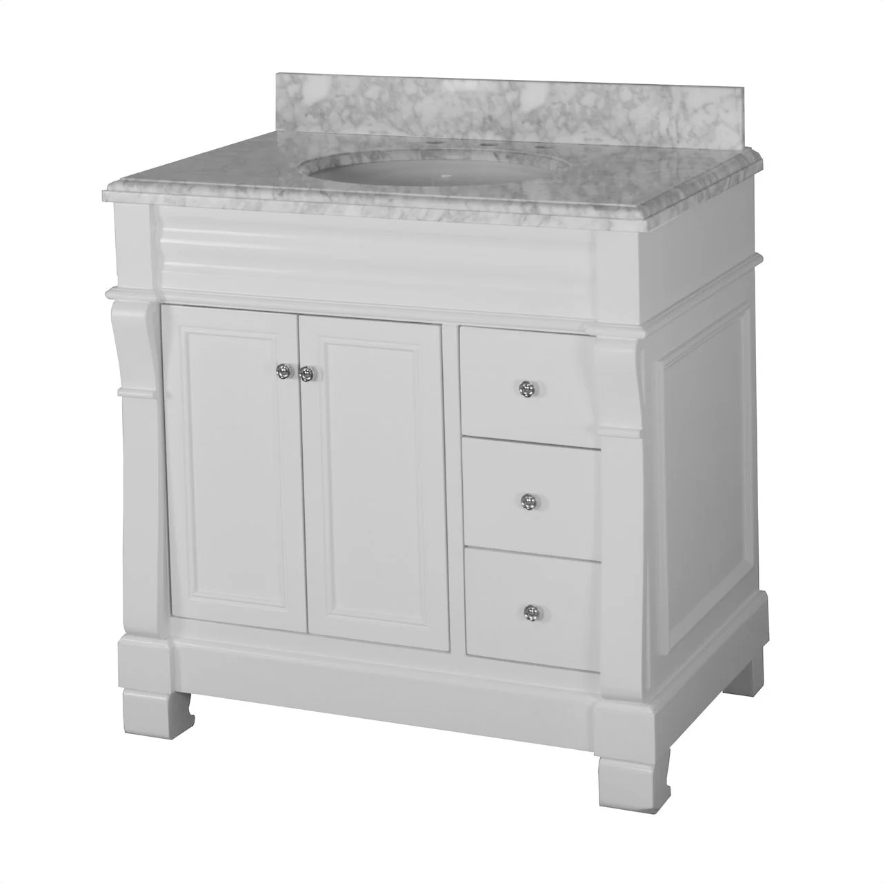 White, Nickel Trim, Carrara Cultured Marble Top