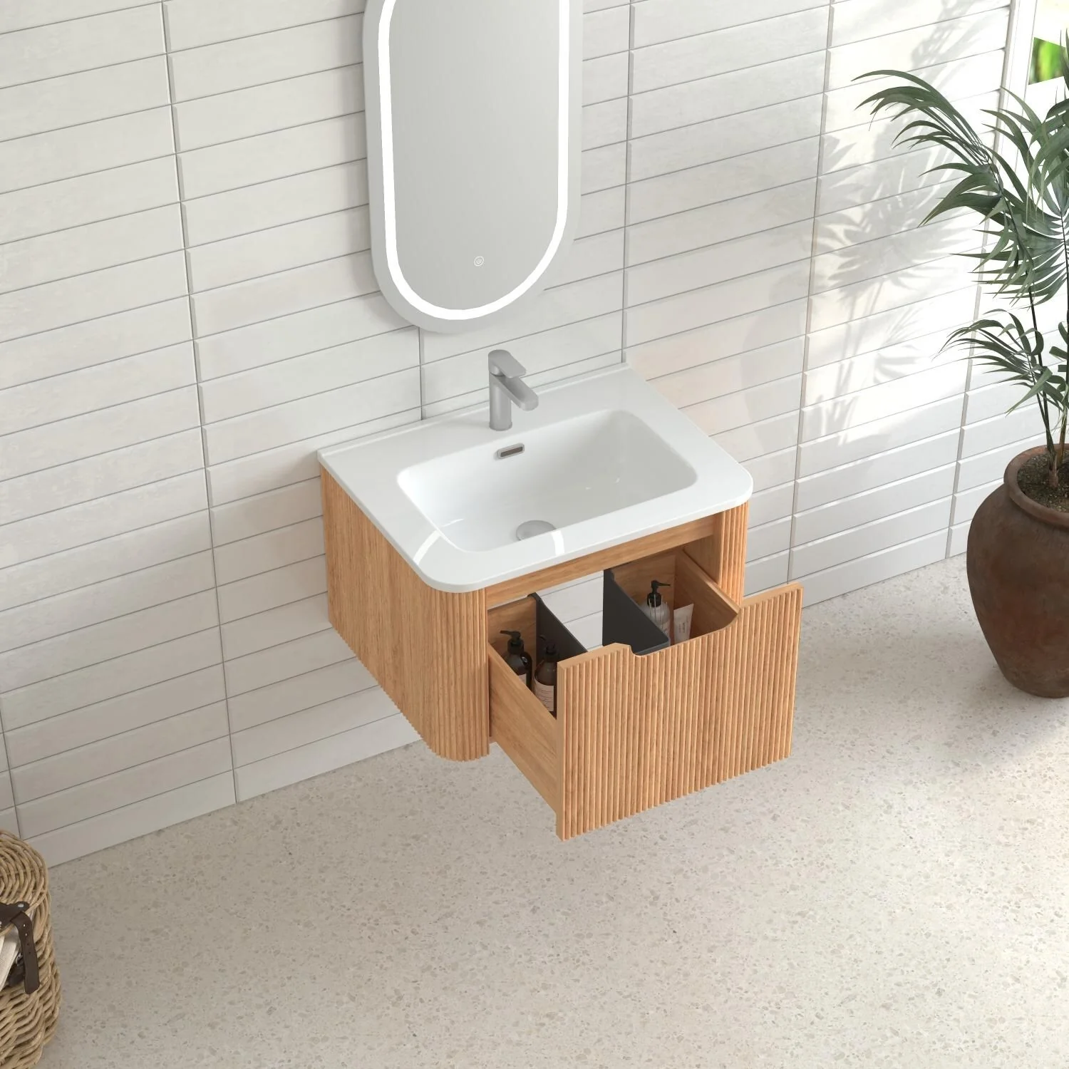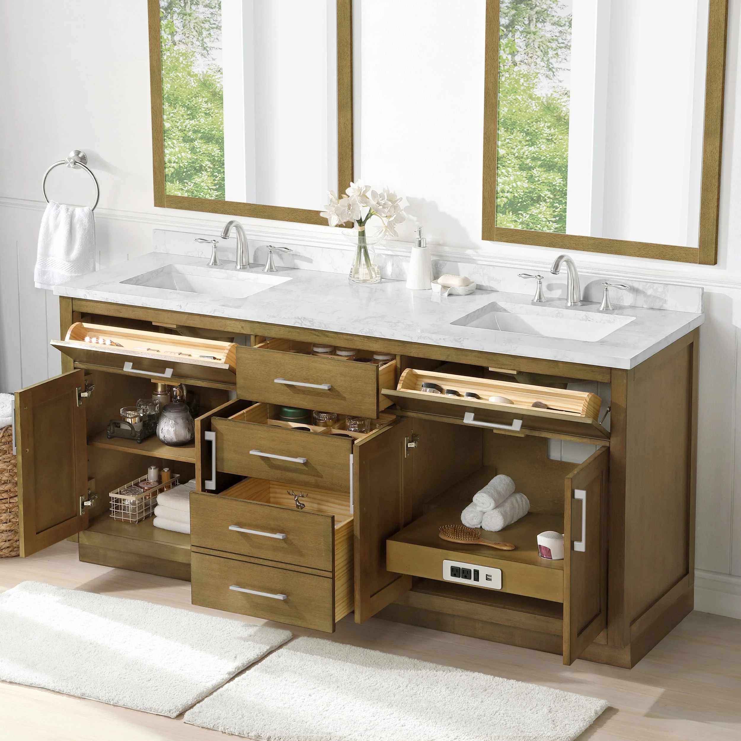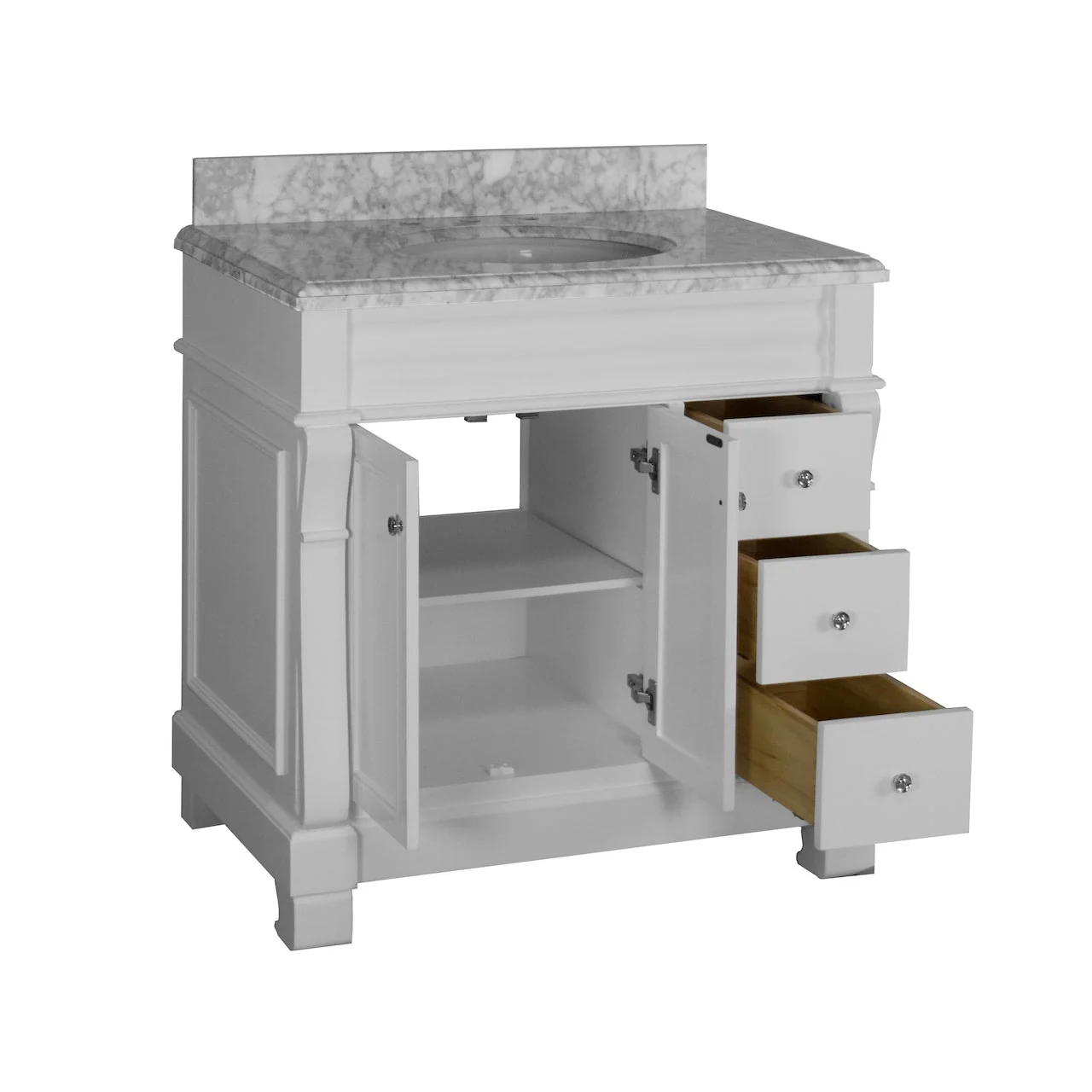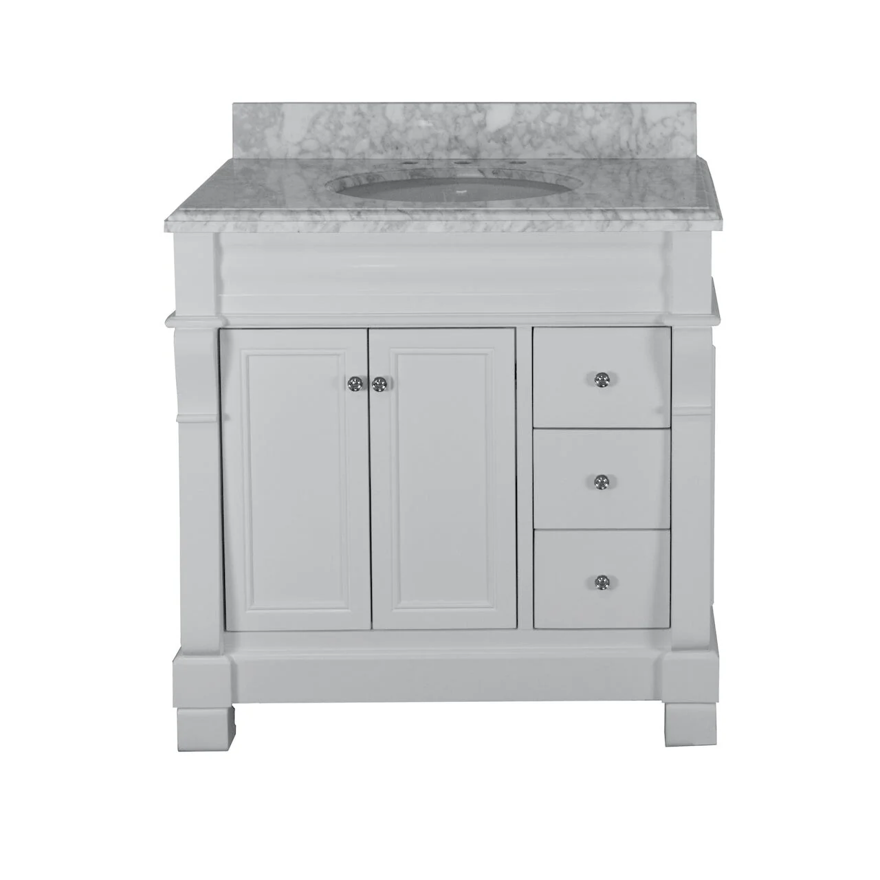 White, Nickel Trim, Carrara Cultured Marble Top