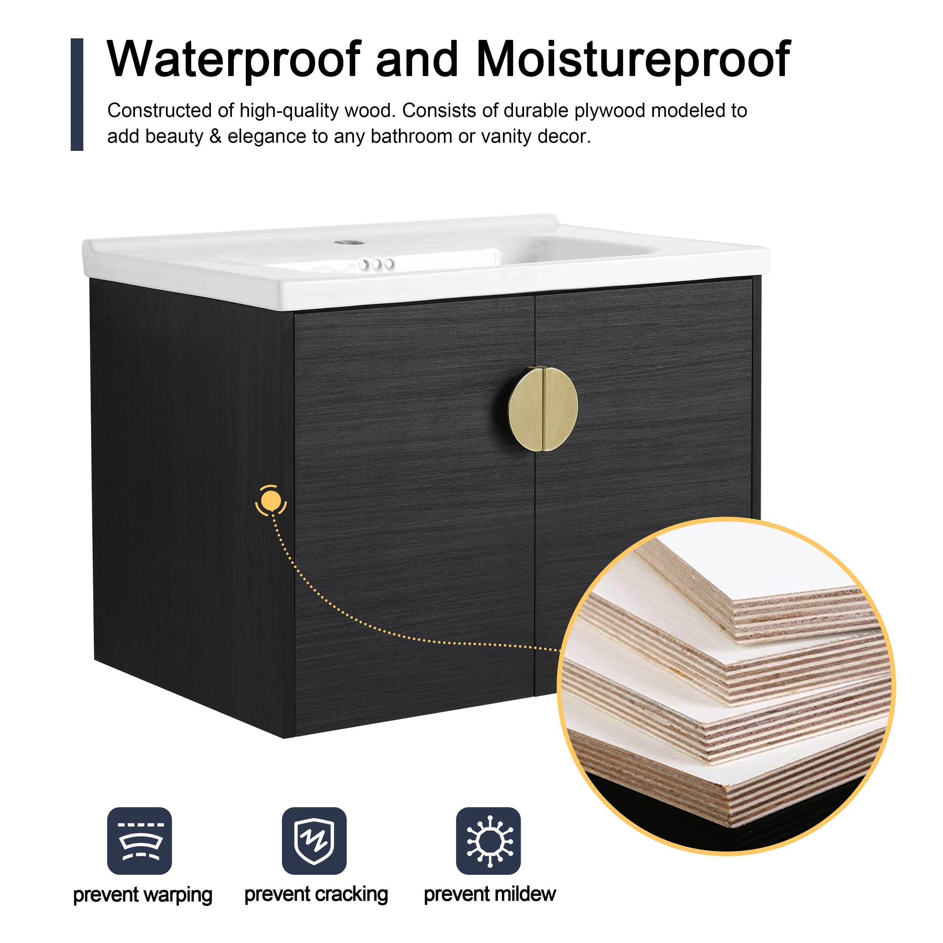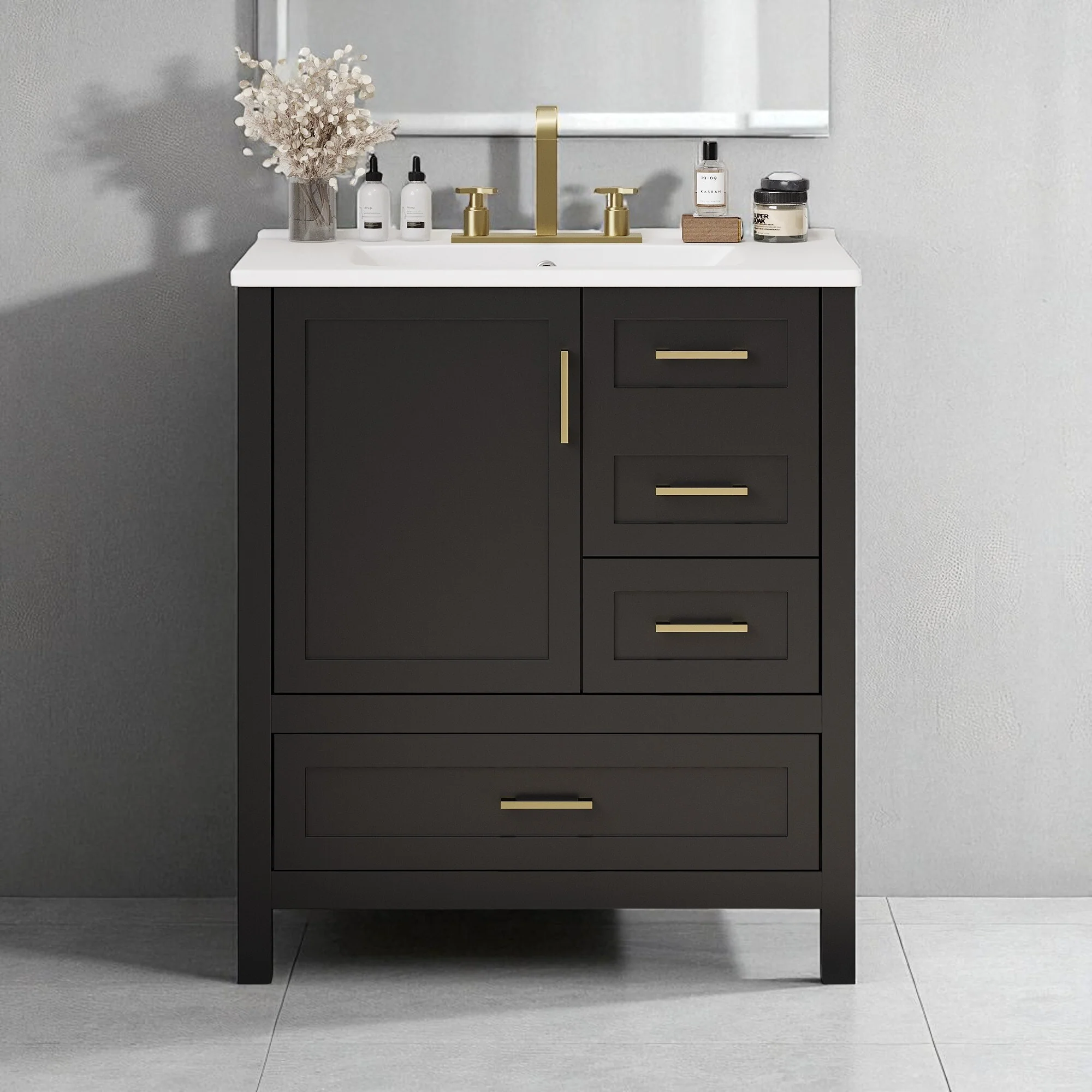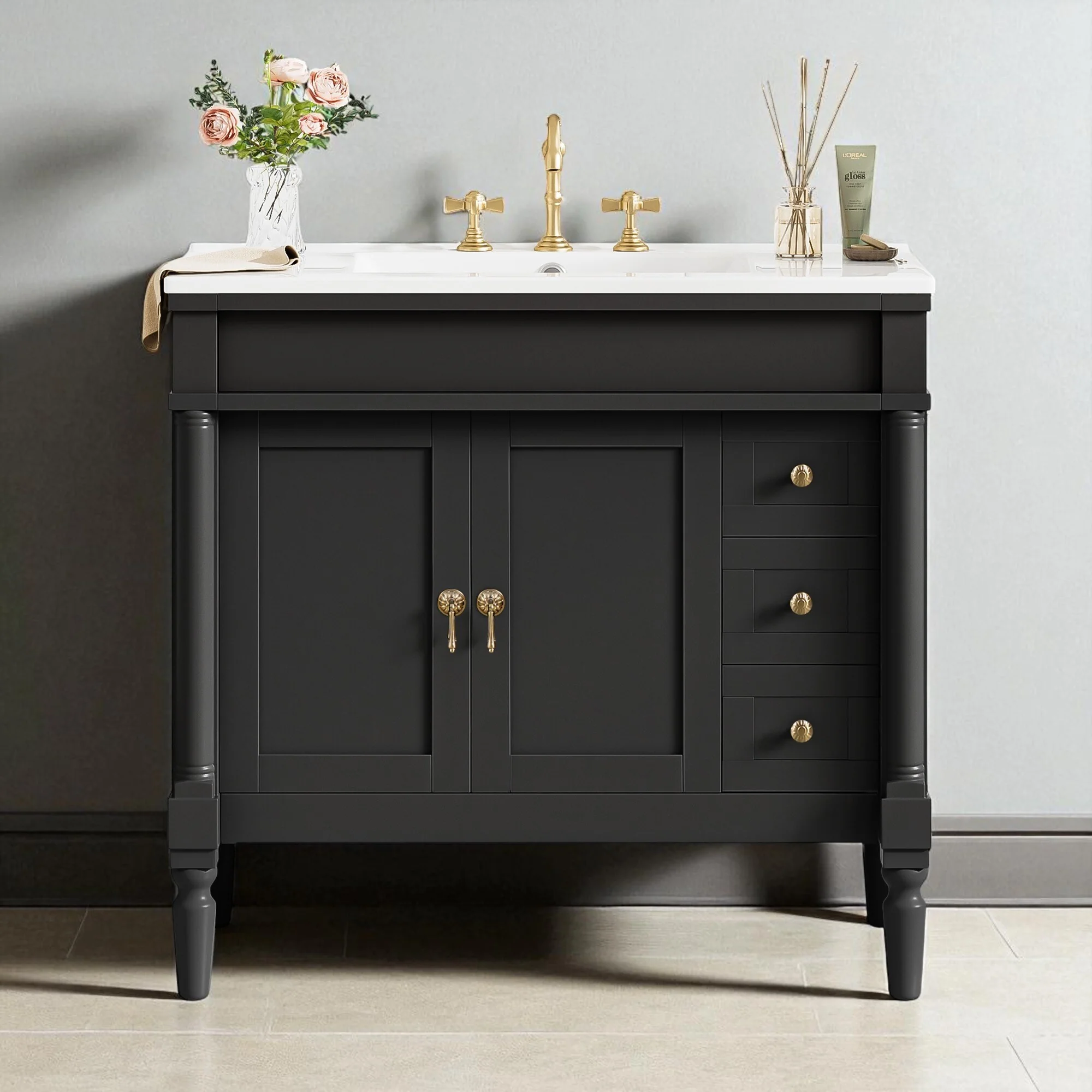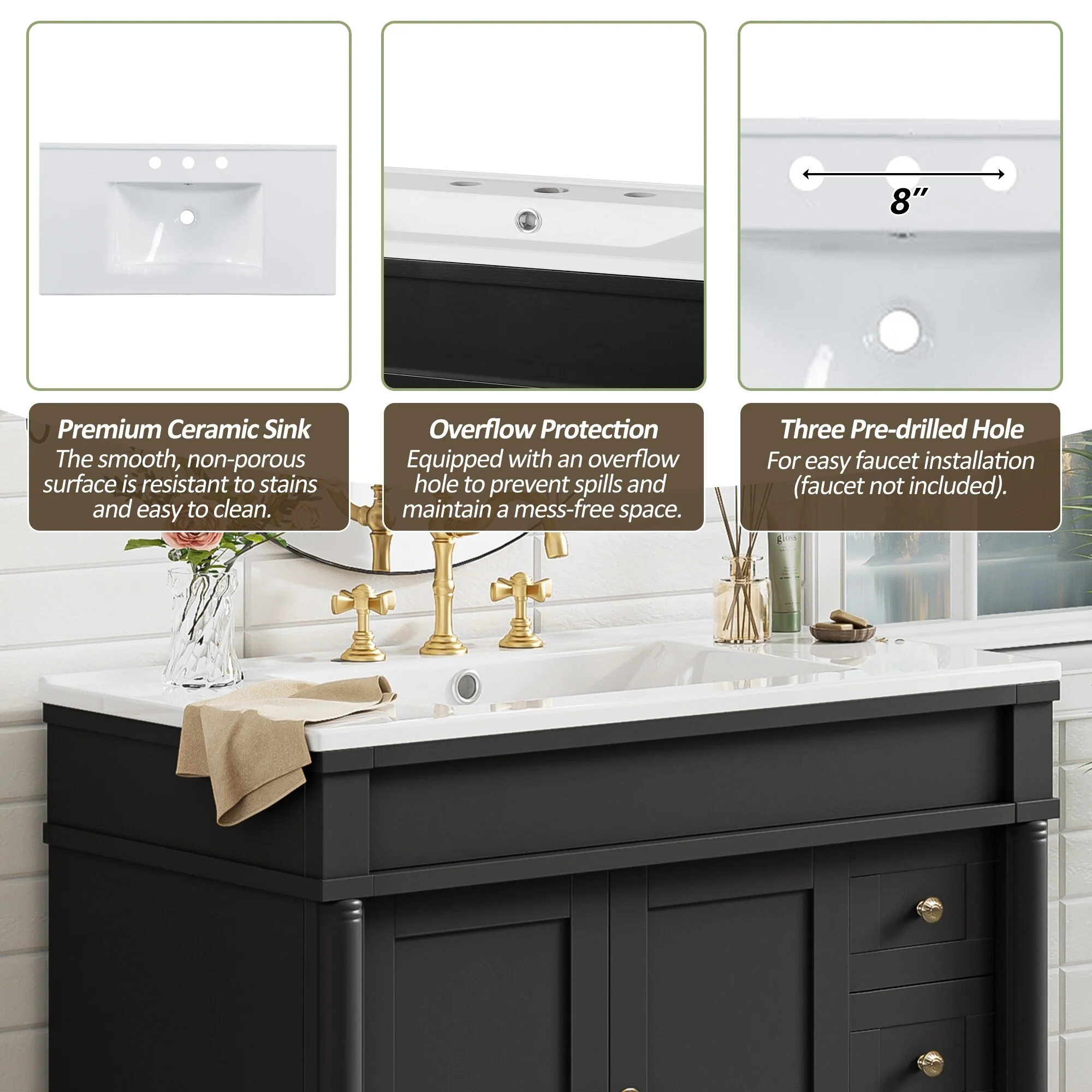 Dark Gray, Gold Trim, White Cultured Marble Top