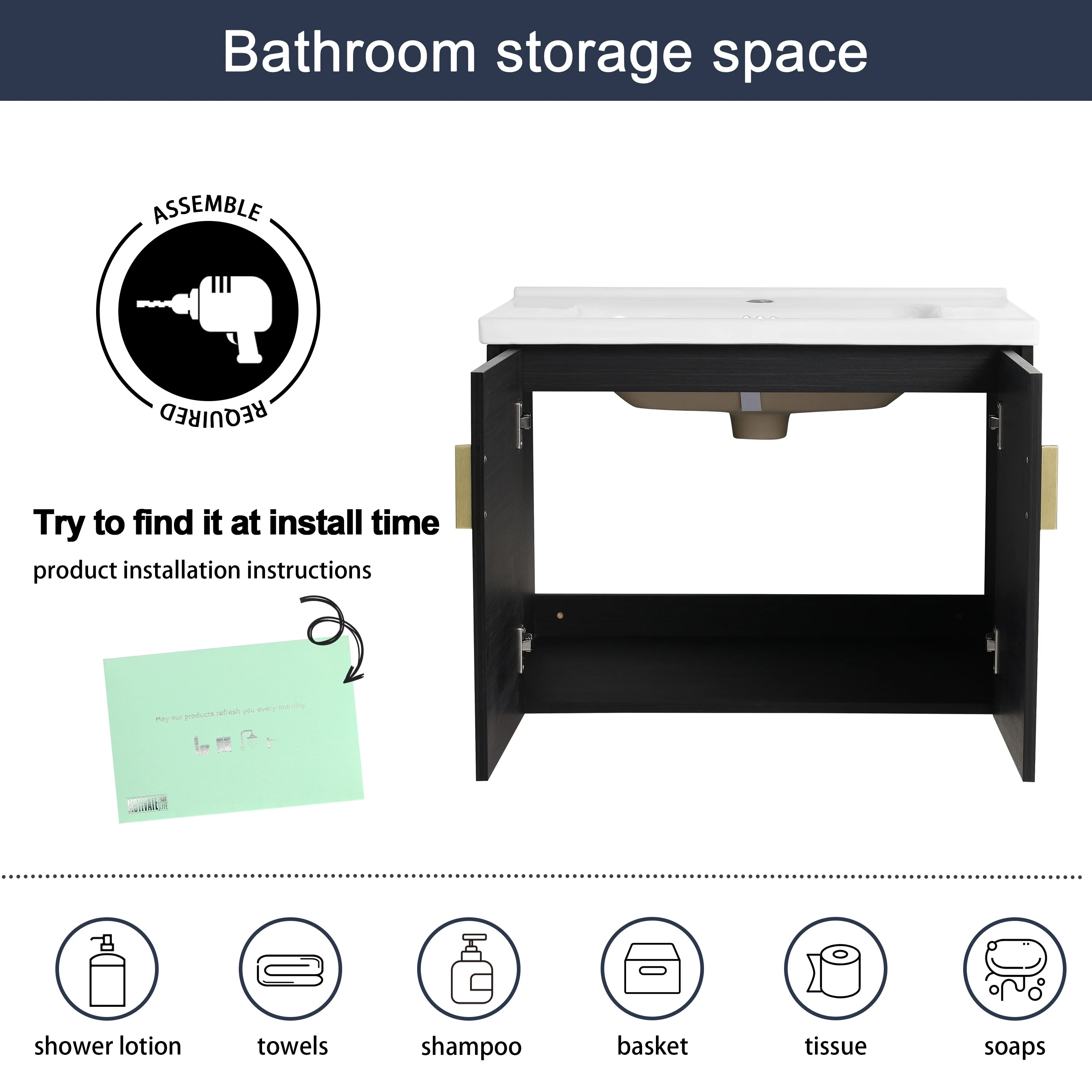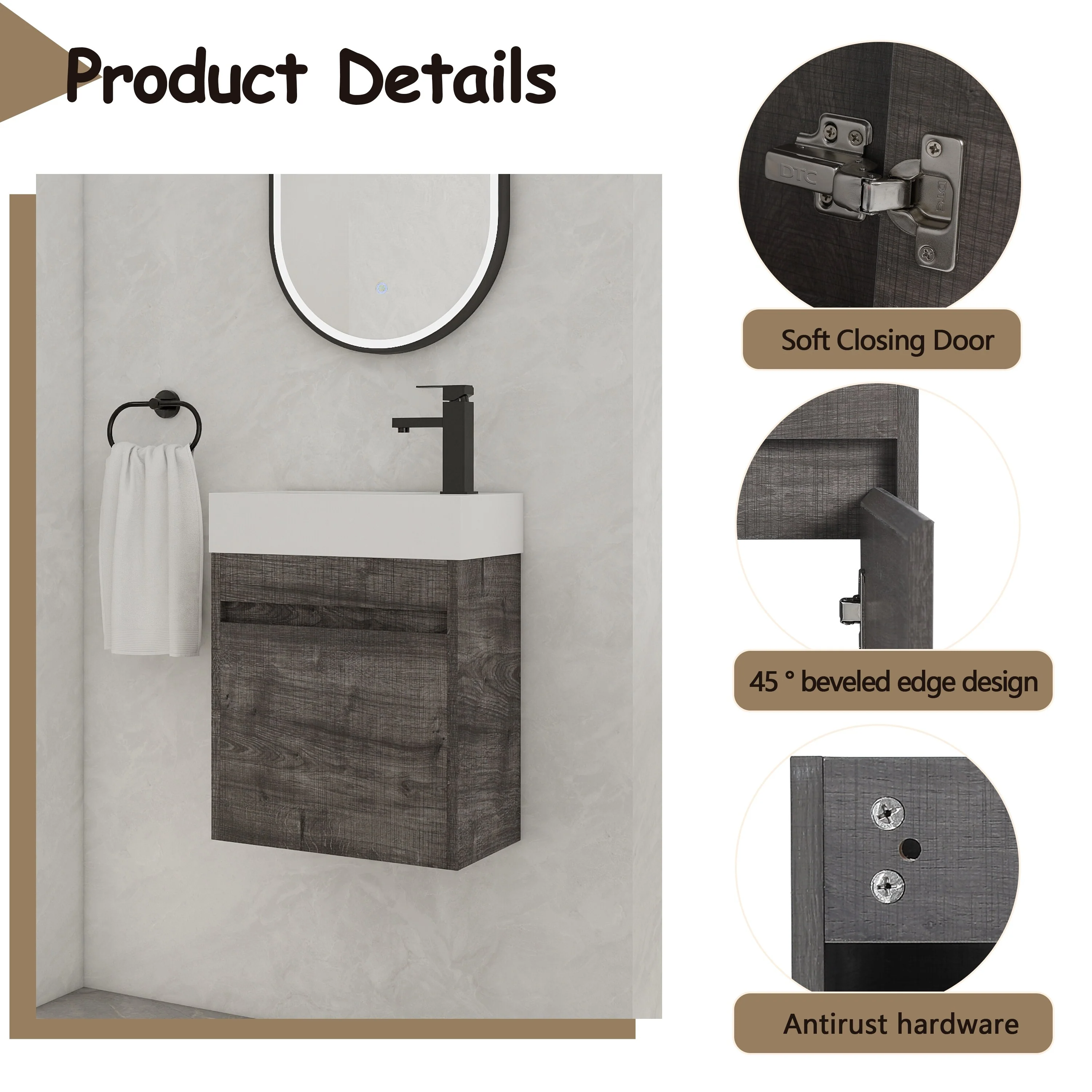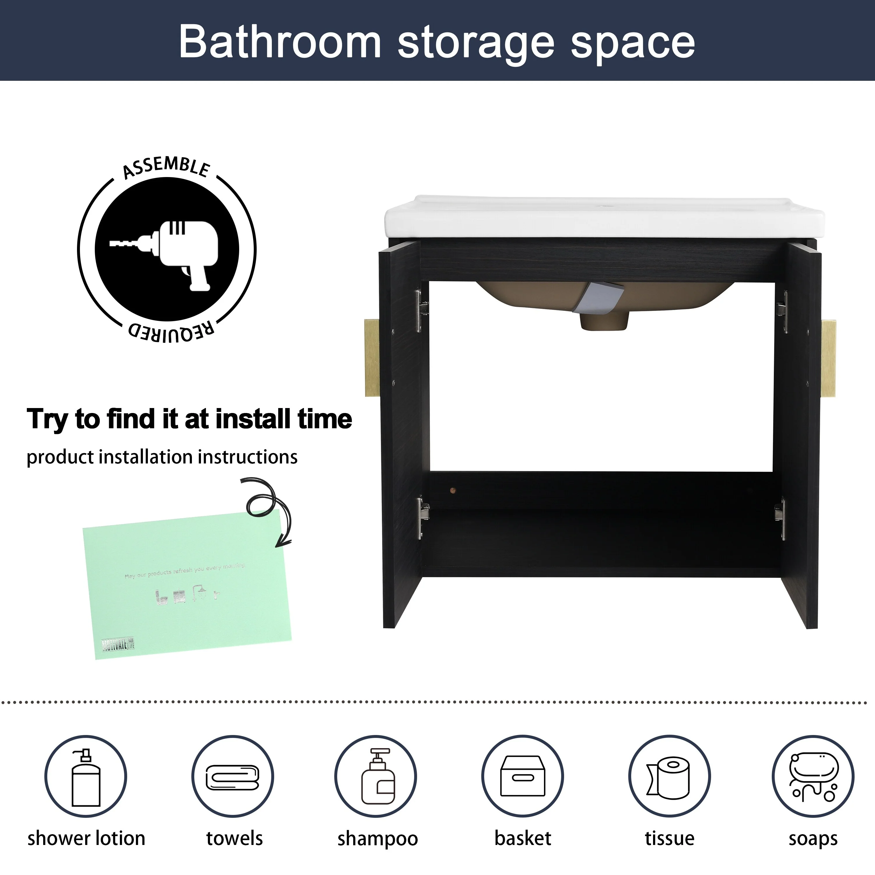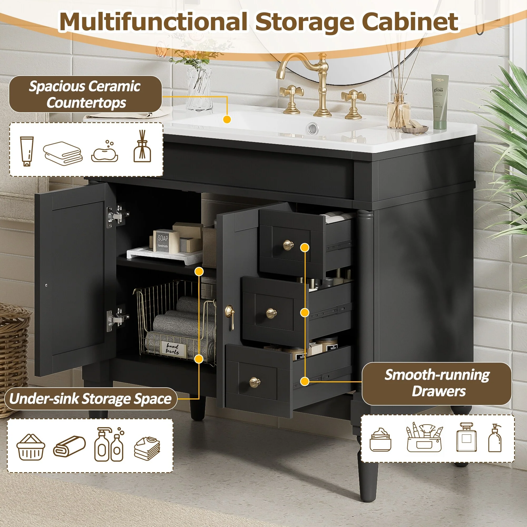 Dark Gray, Gold Trim, White Cultured Marble Top