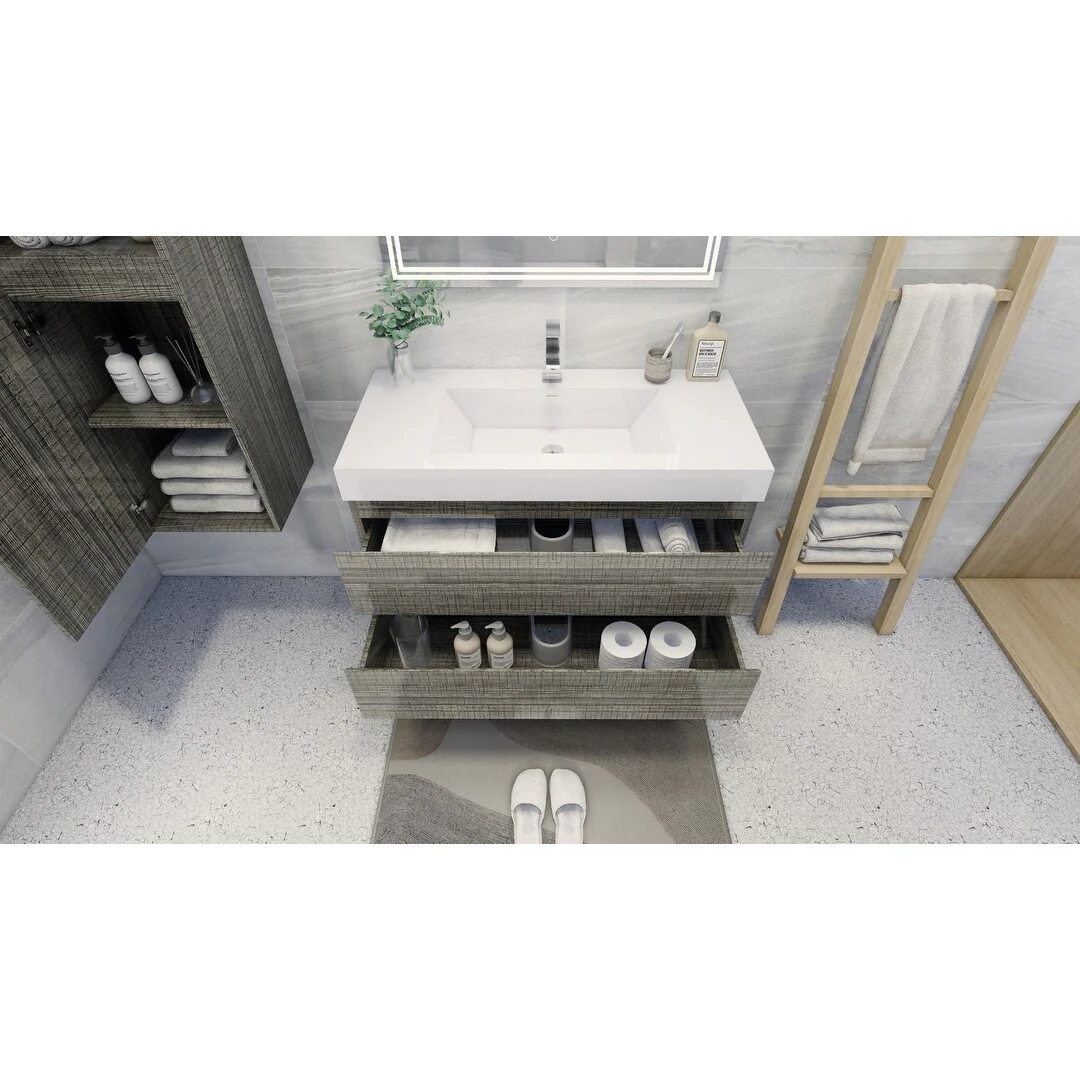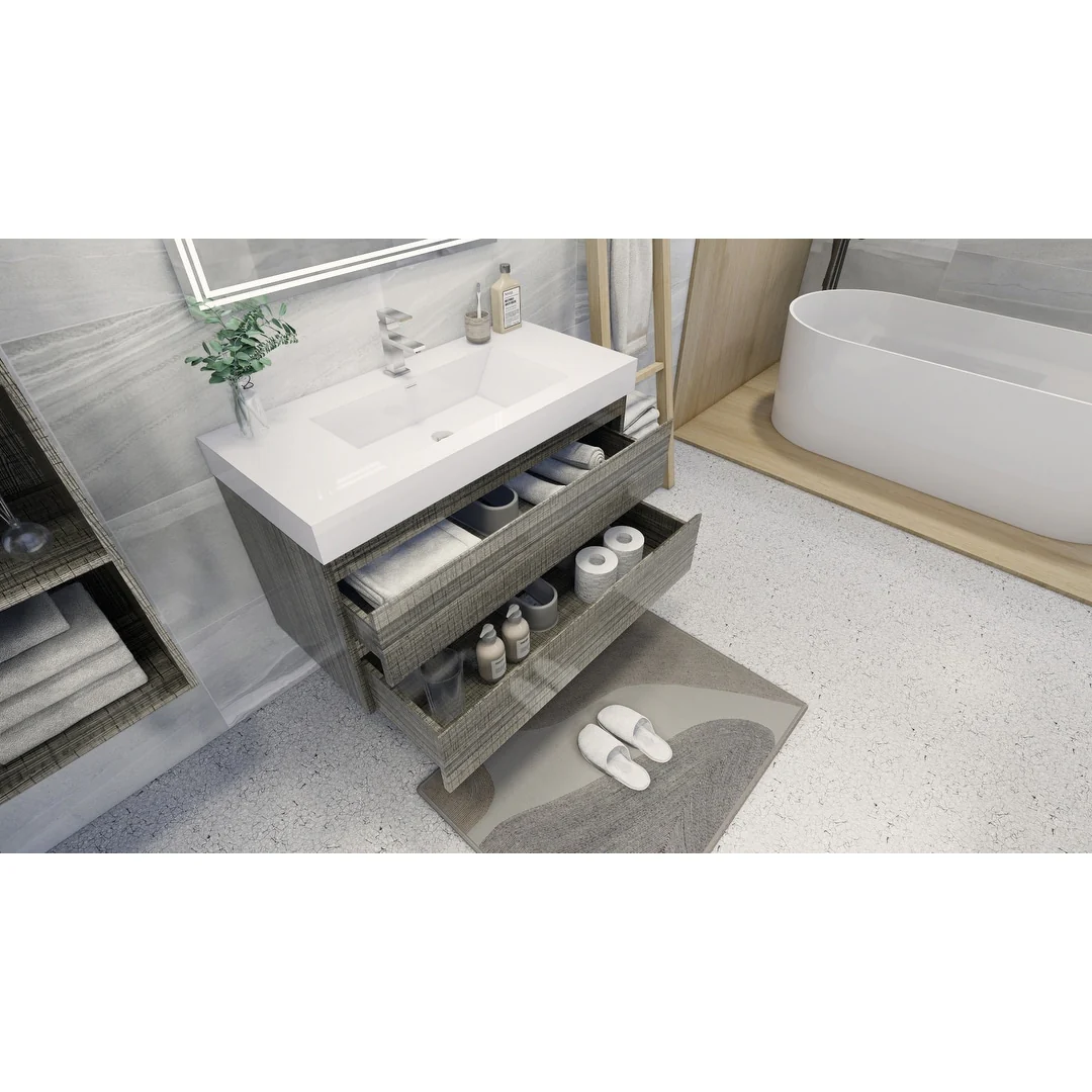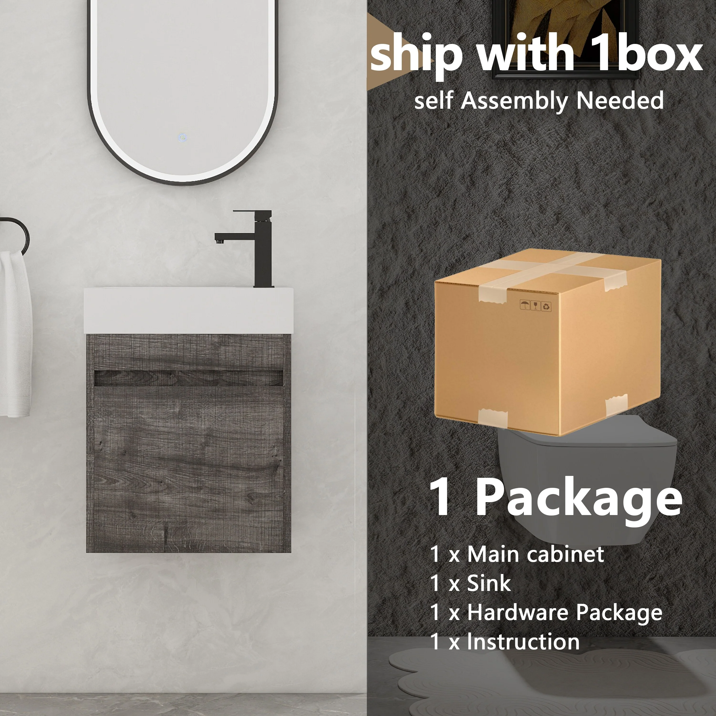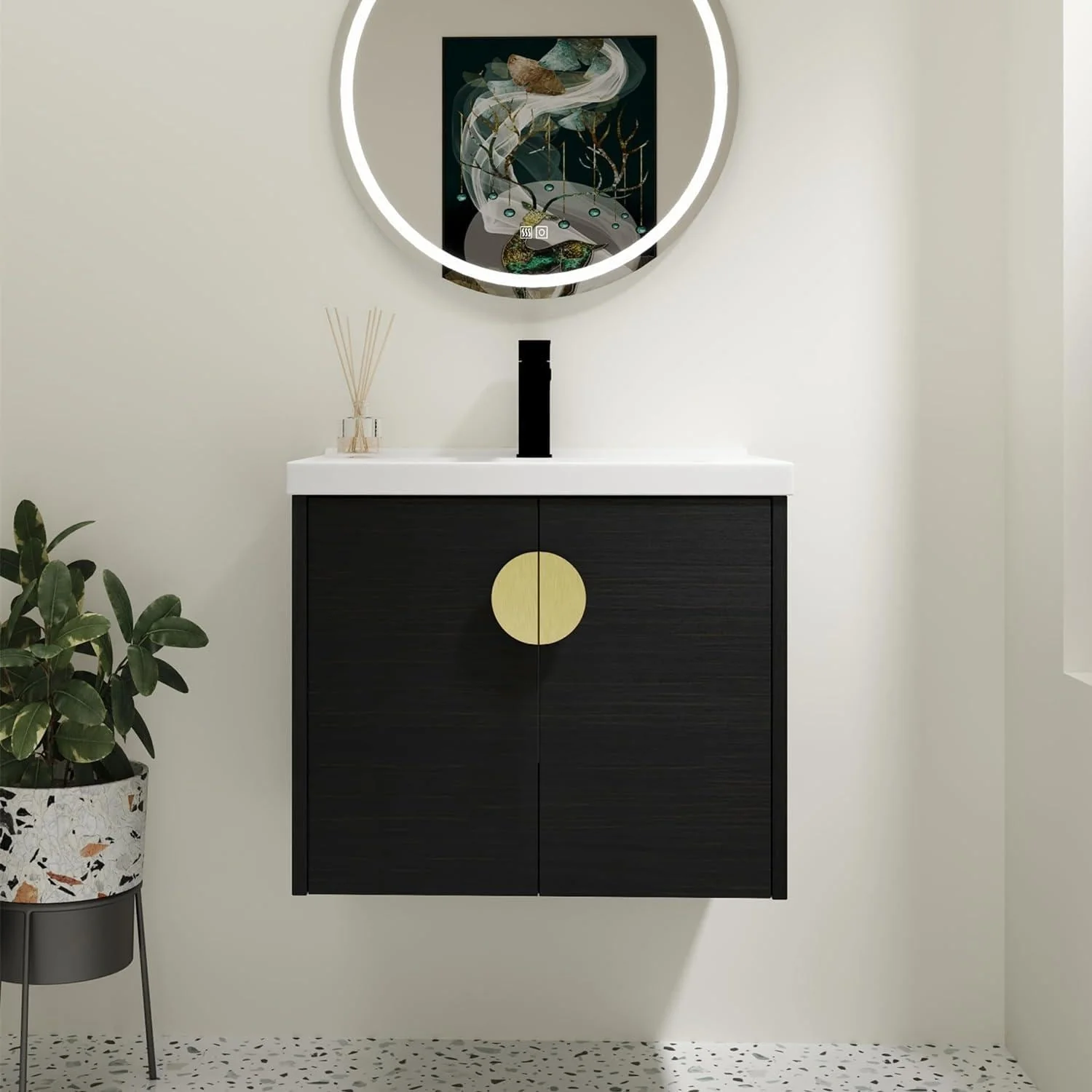 Dark Gray, Gold Trim, White Cultured Marble Top