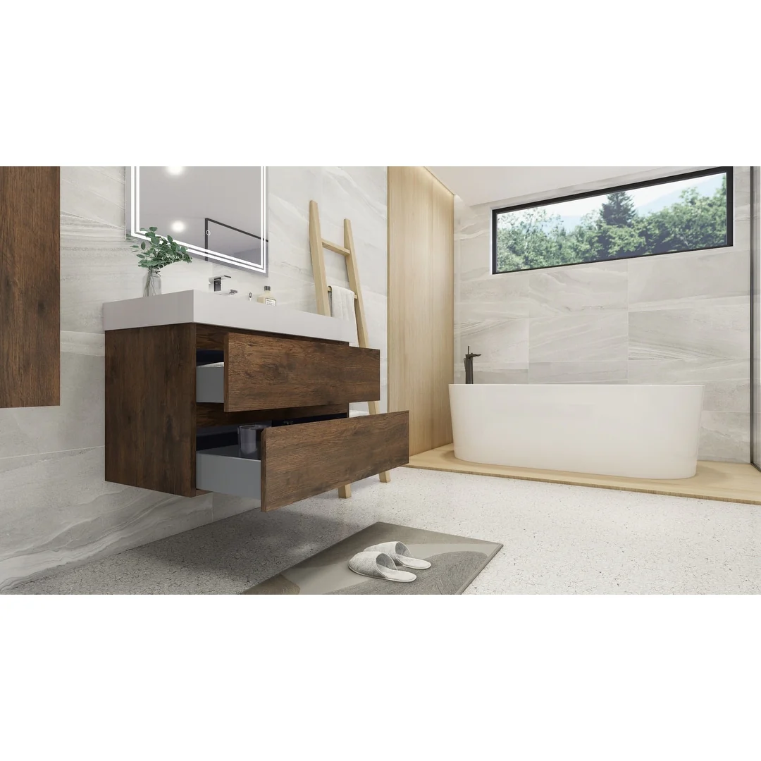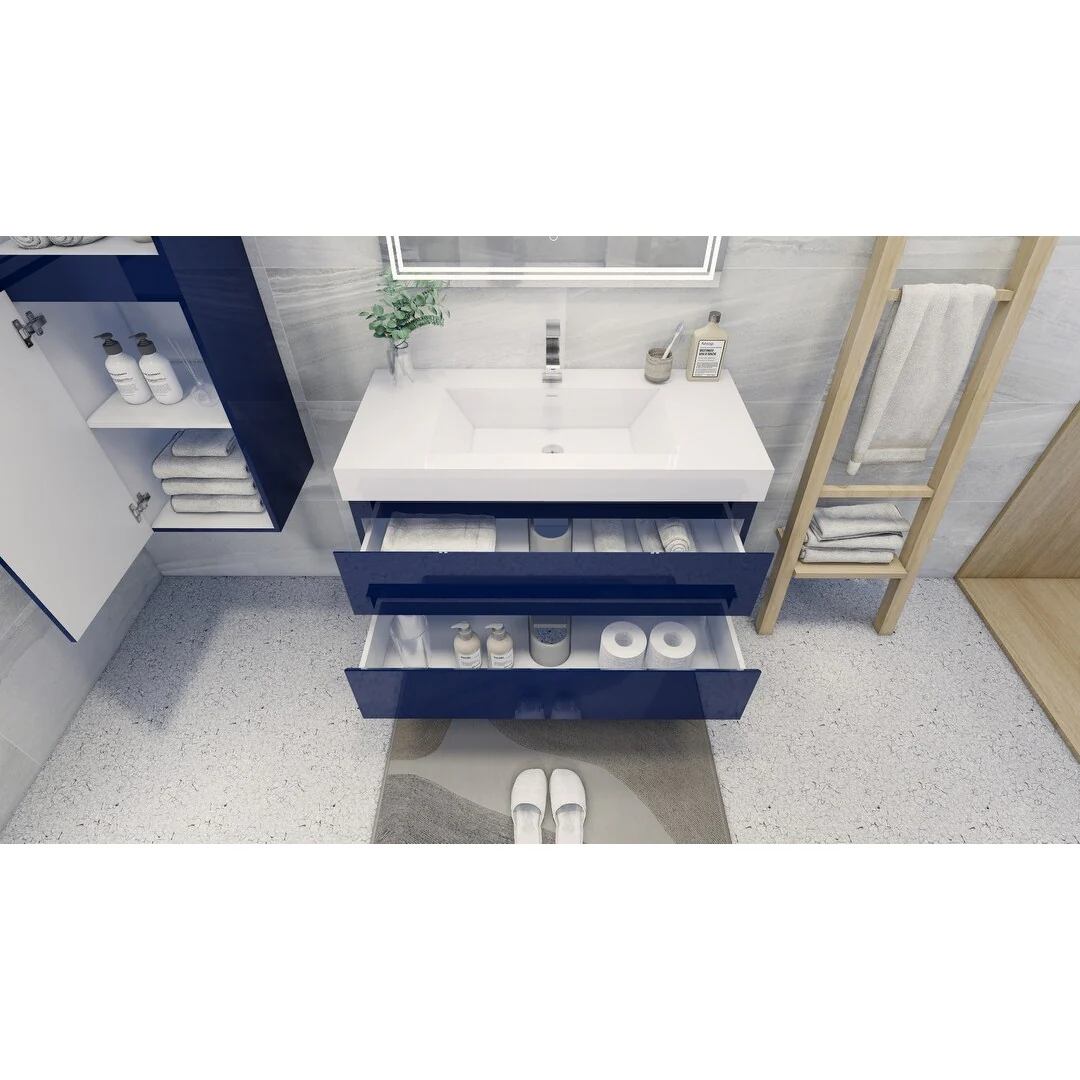 Dark Blue, Black Trim, White Cultured Marble Top
