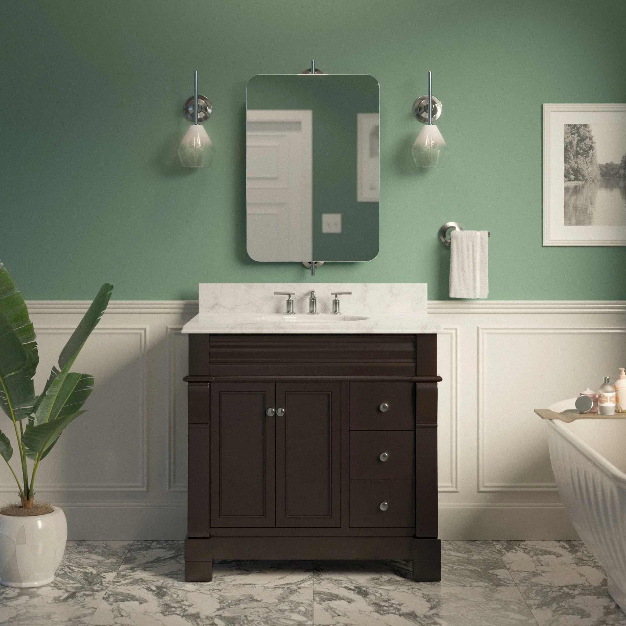 Green, Black Trim, Carrara Cultured Marble Top