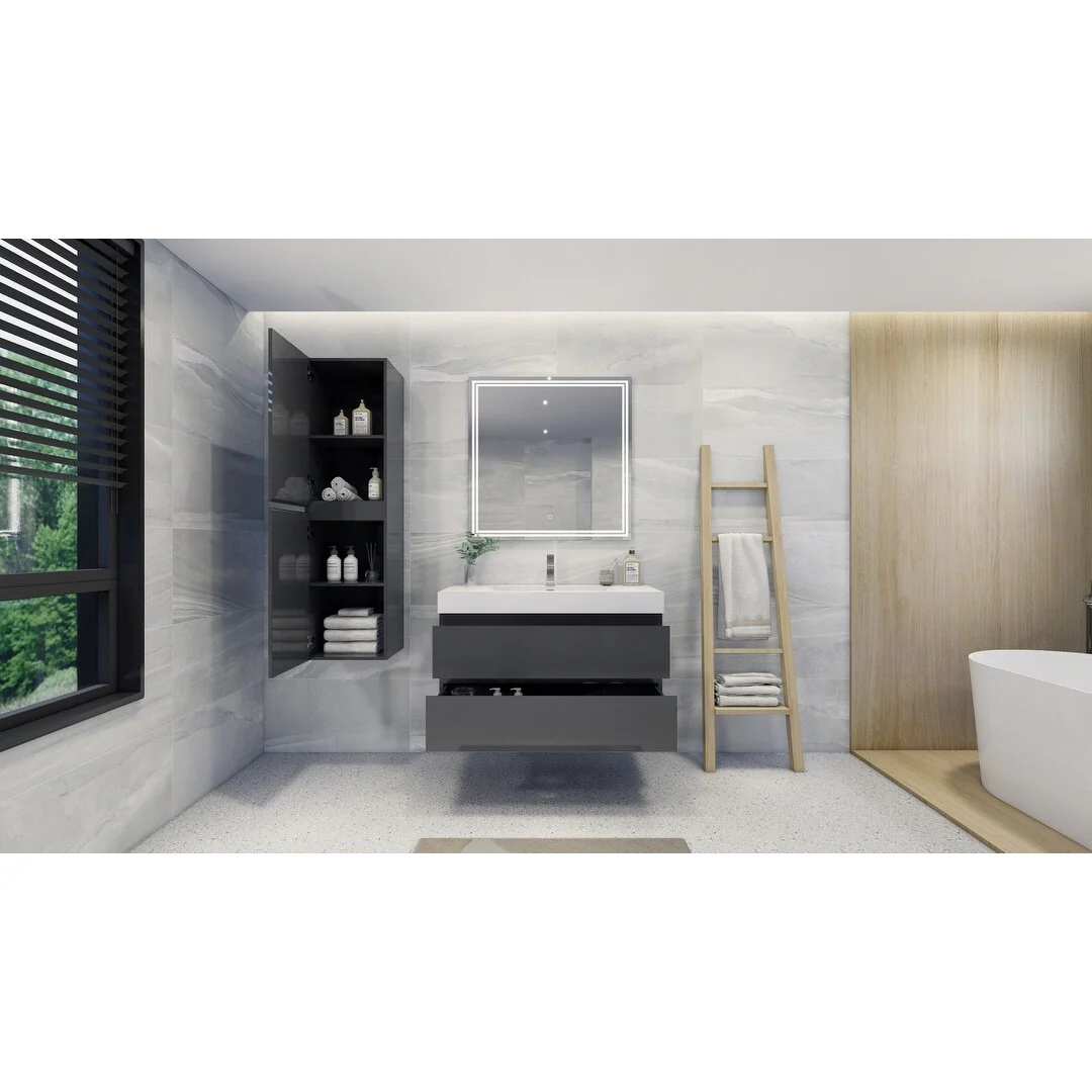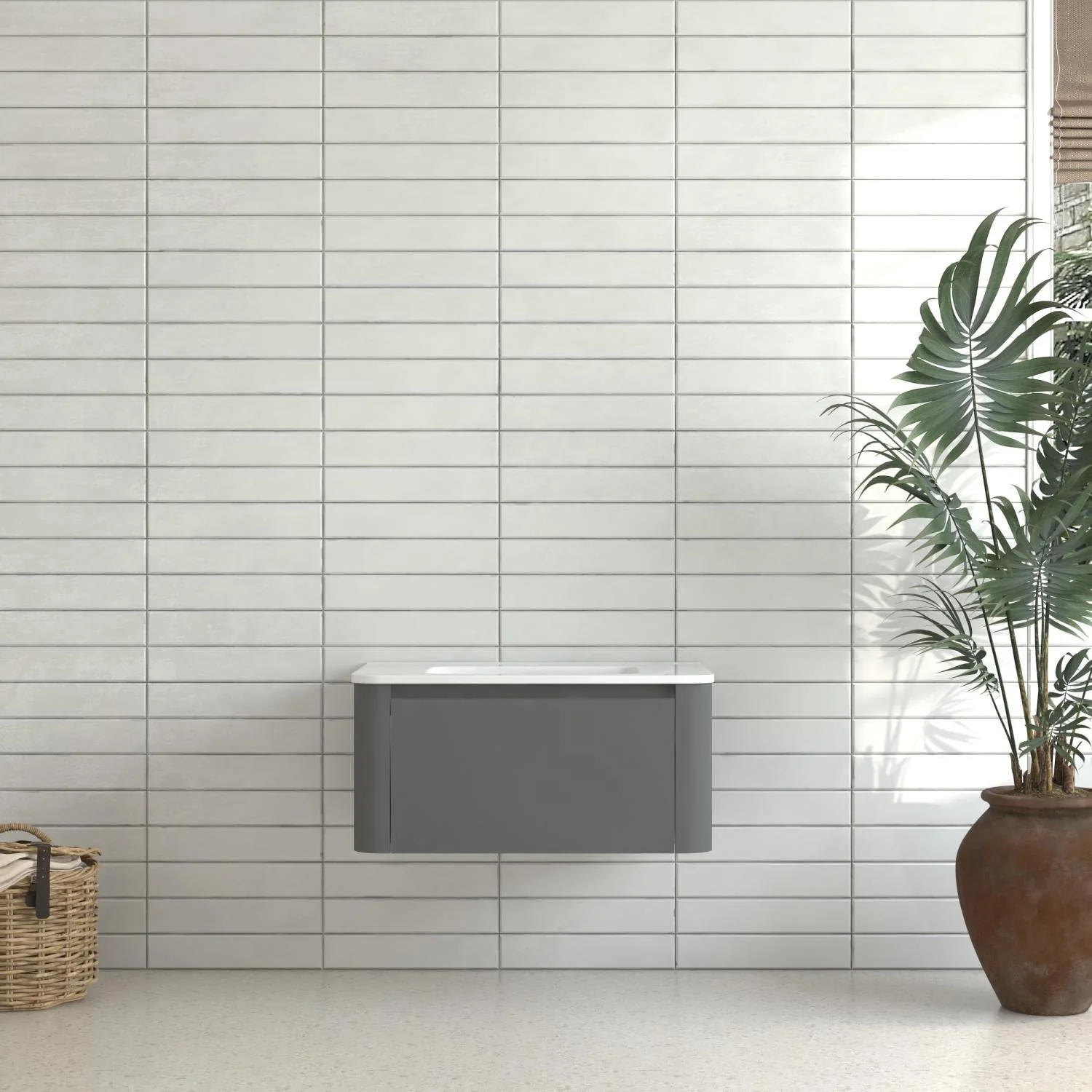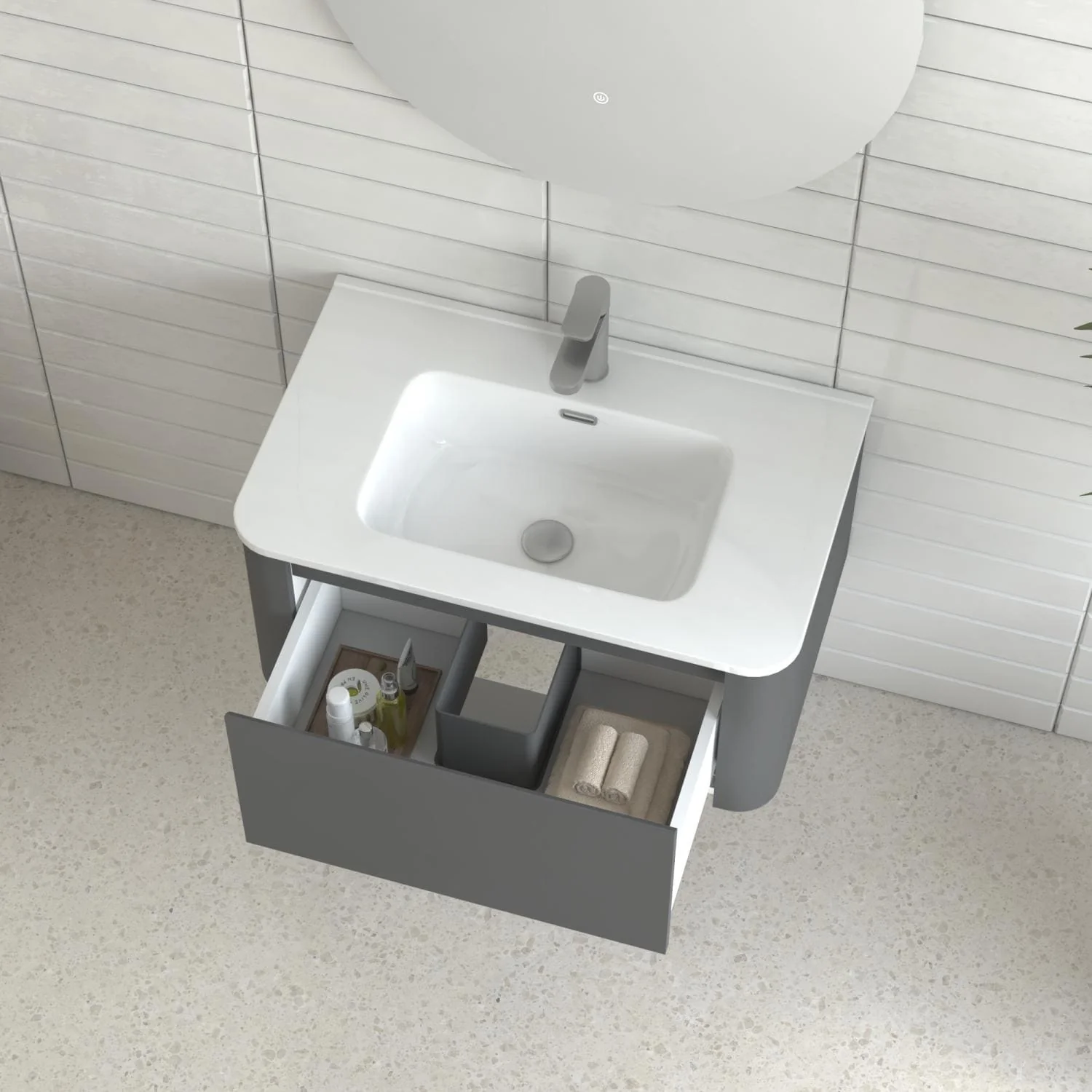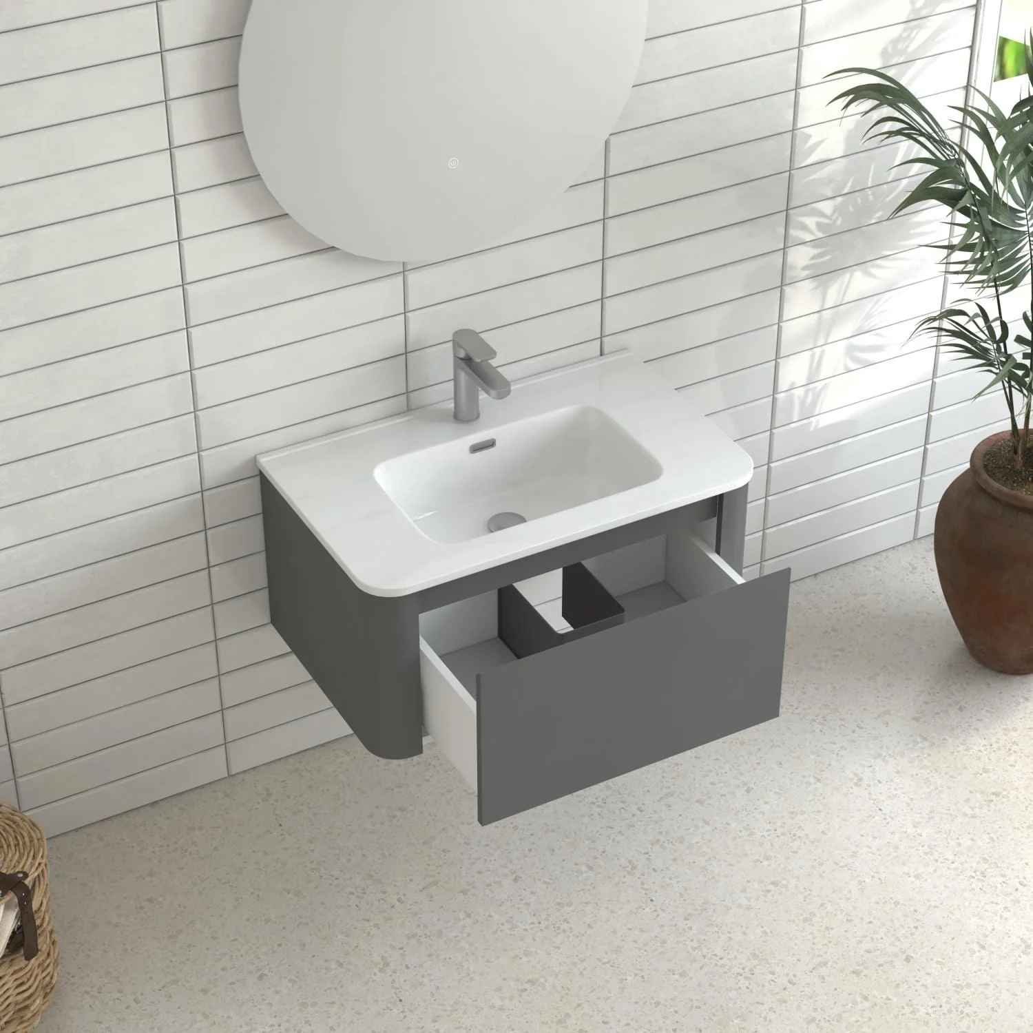 Dark Gray, Nickel Trim, White Cultured Marble Top