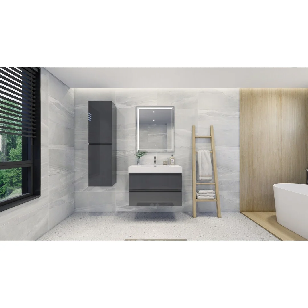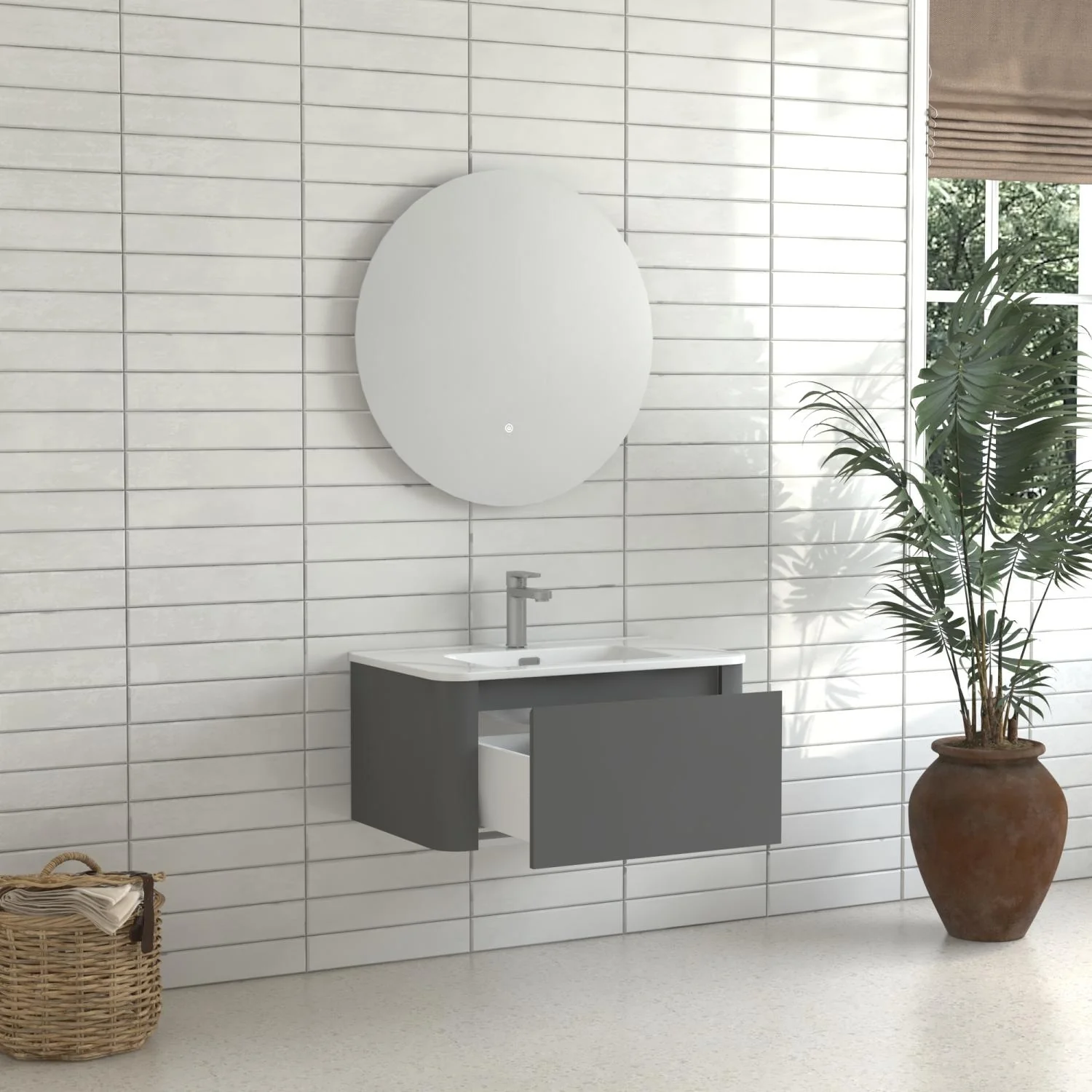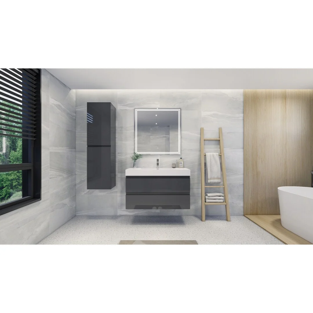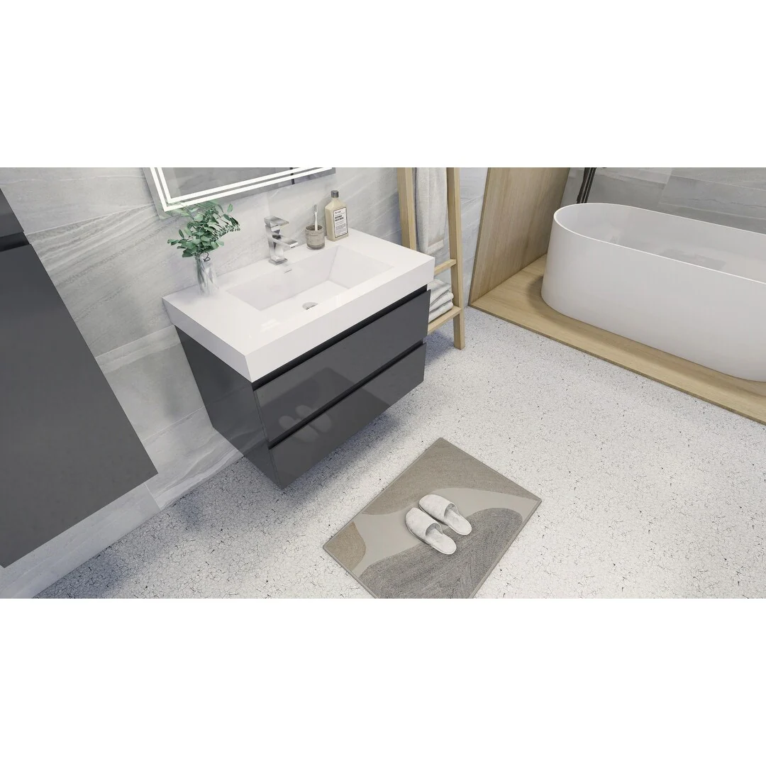 Dark Gray, Nickel Trim, White Cultured Marble Top
