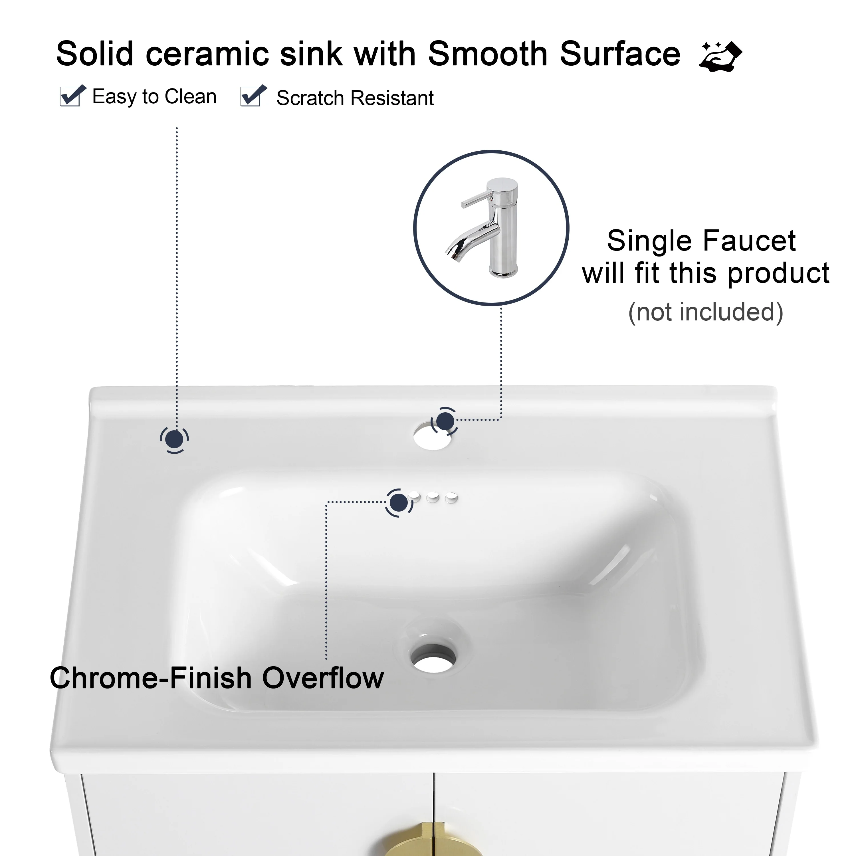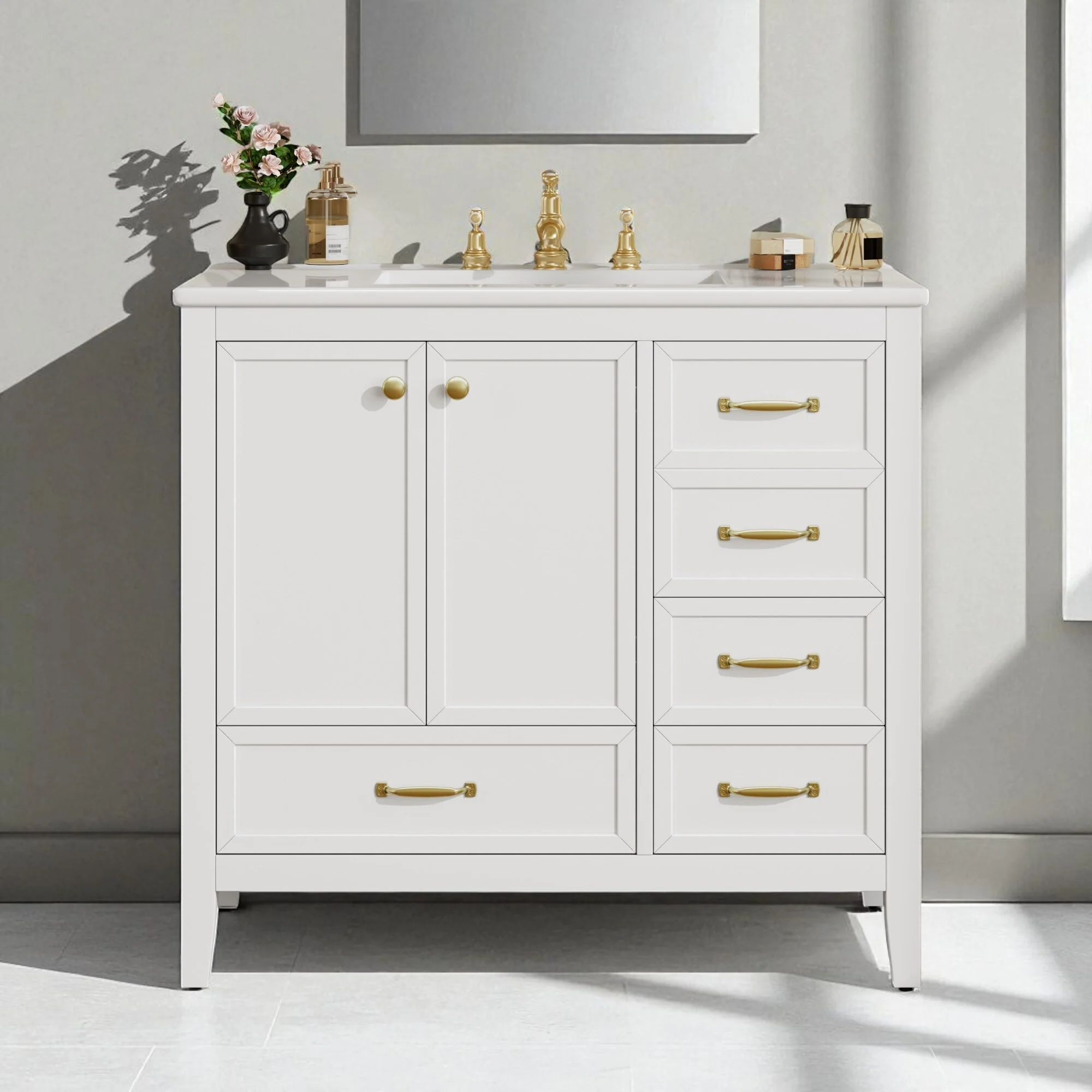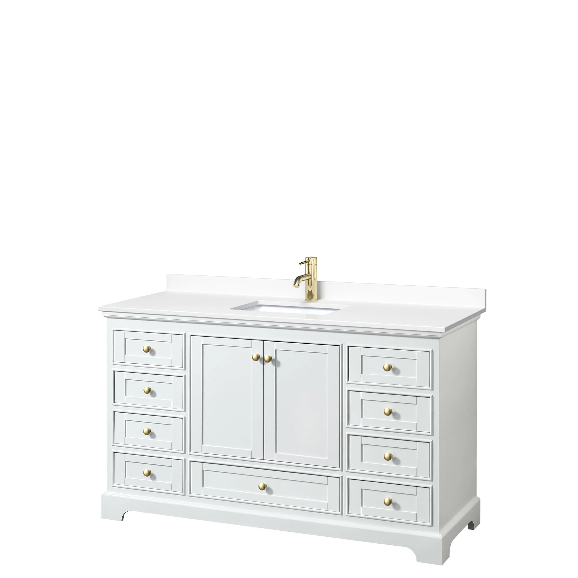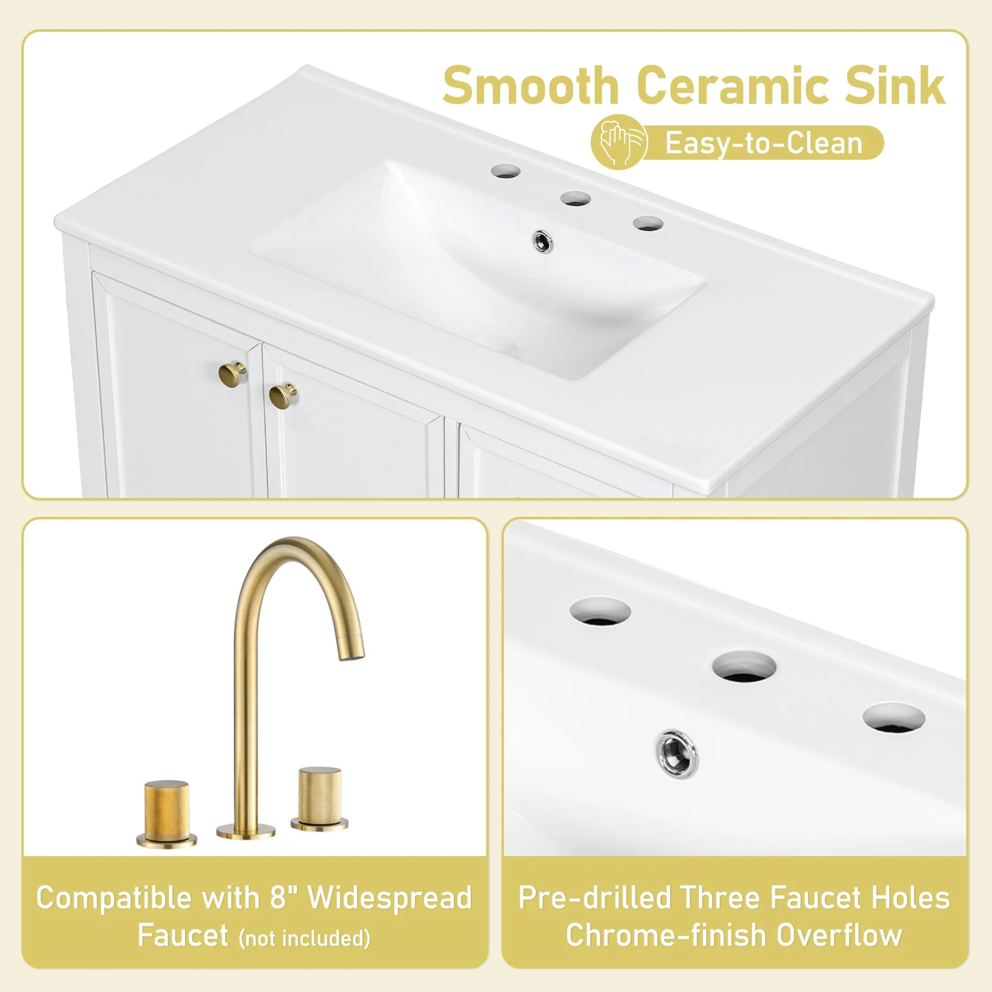 White, Gold Trim, White Cultured Marble Top