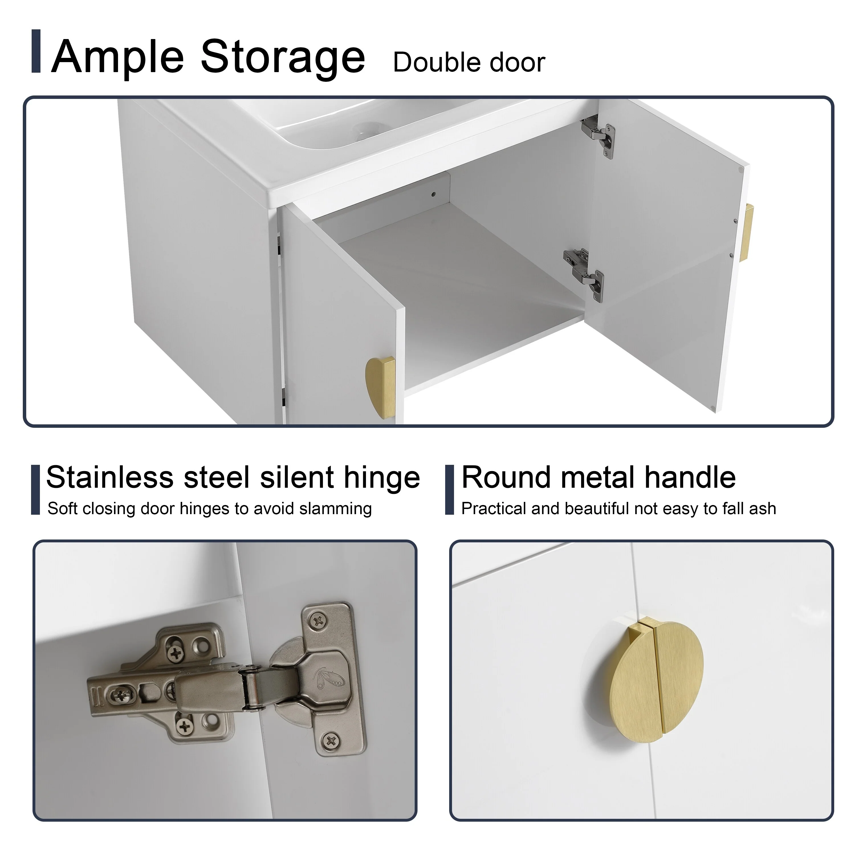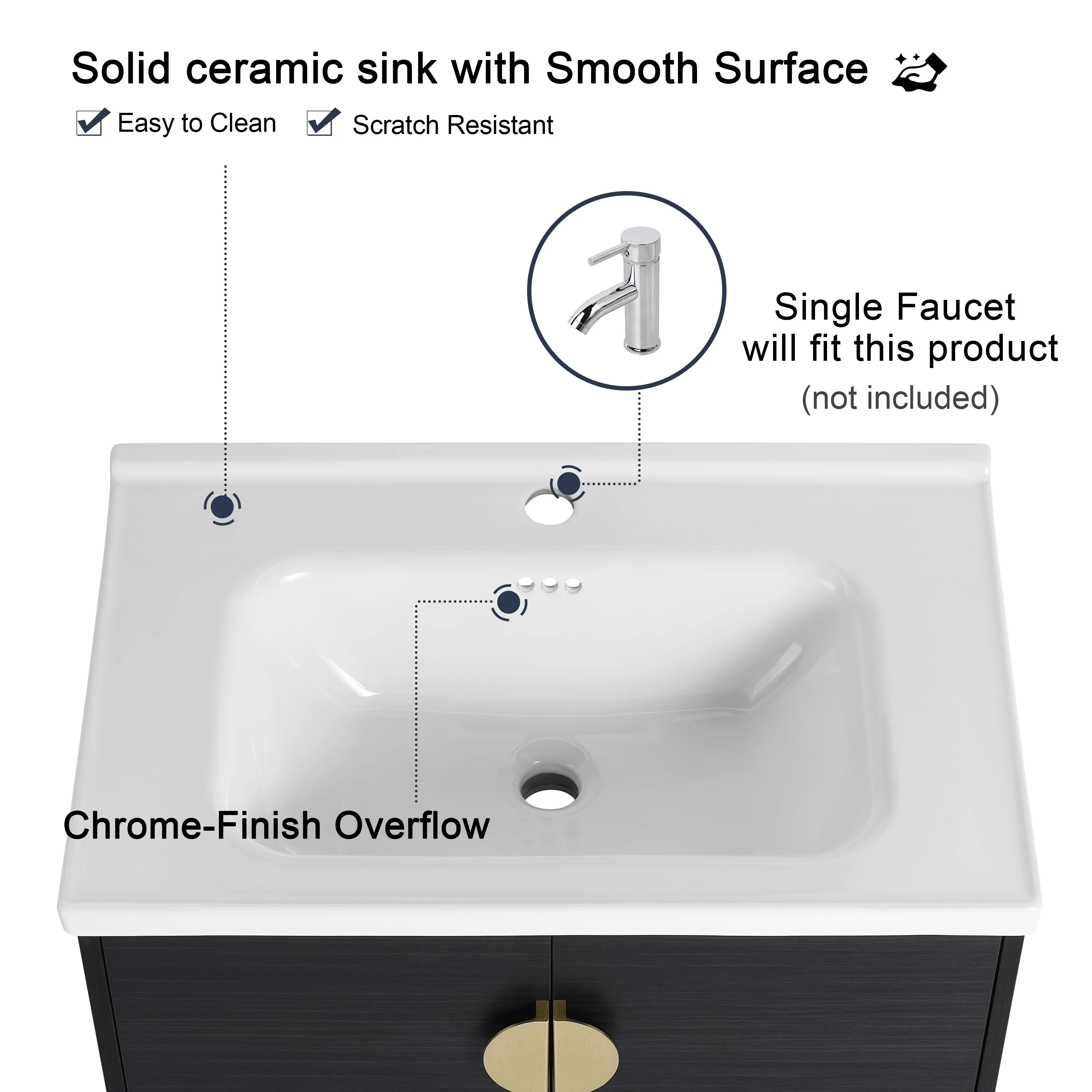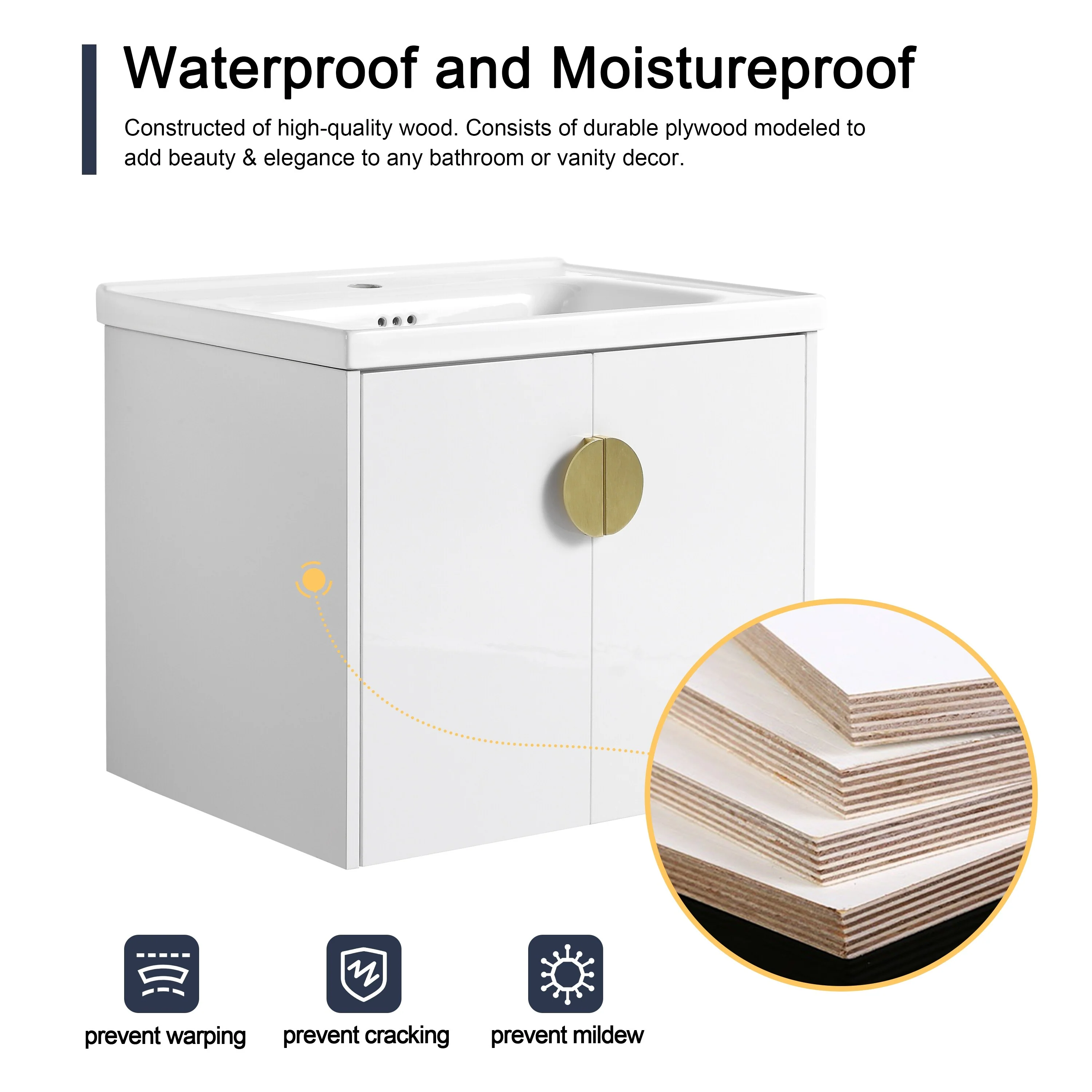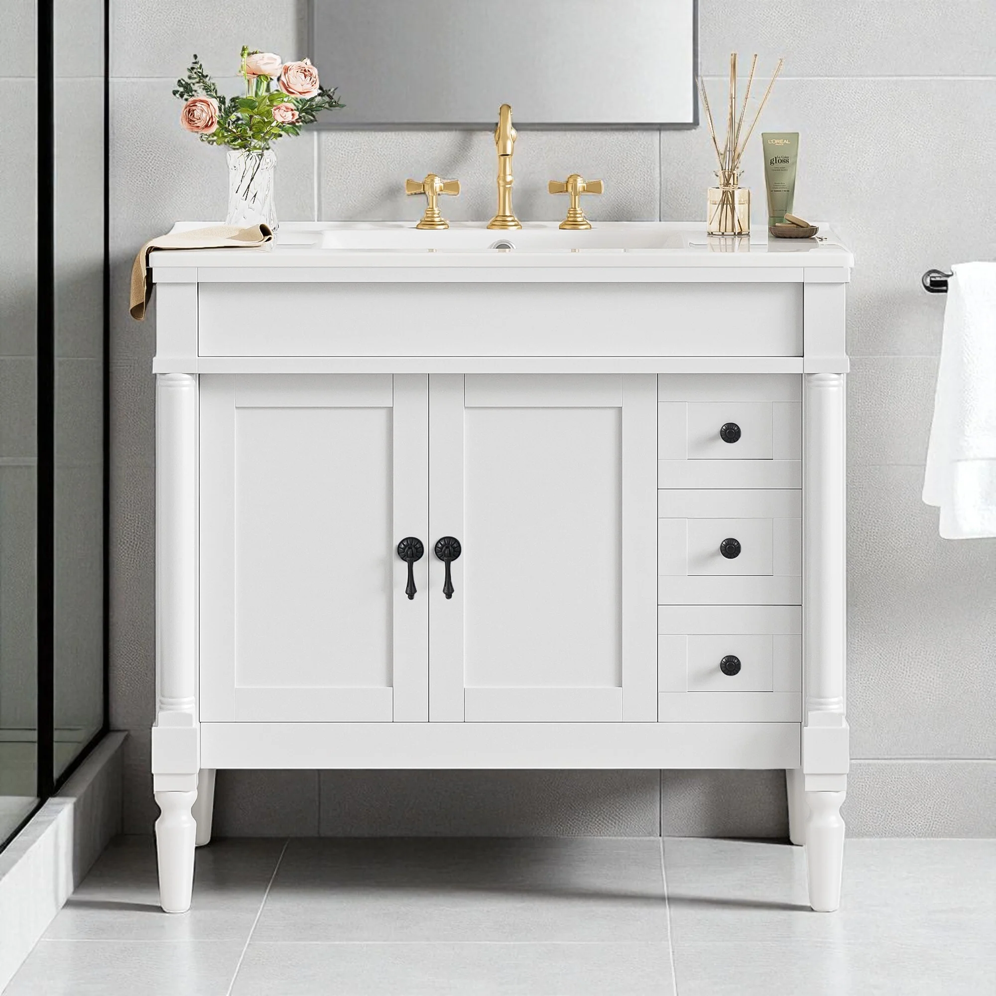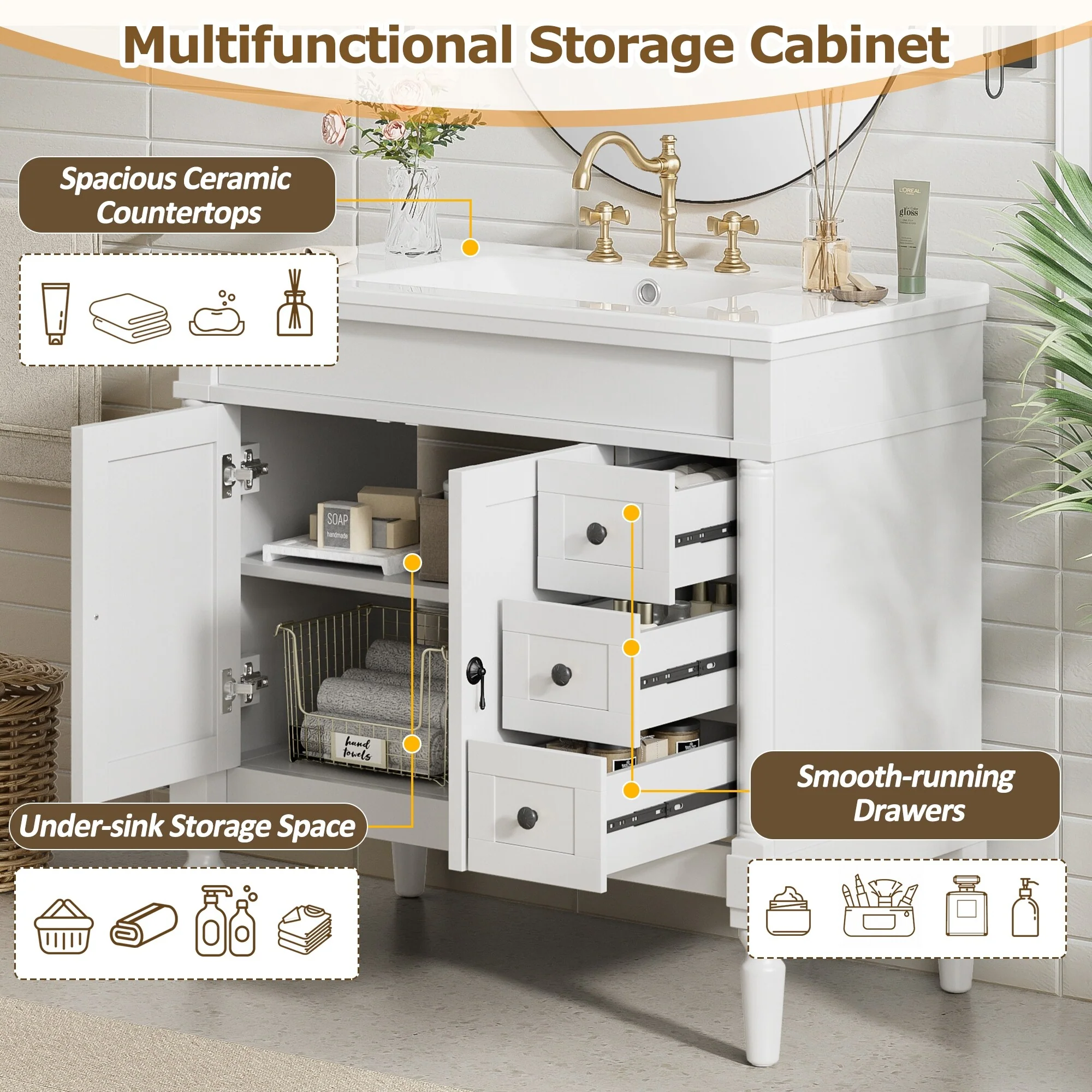 White, Gold Trim, White Cultured Marble Top