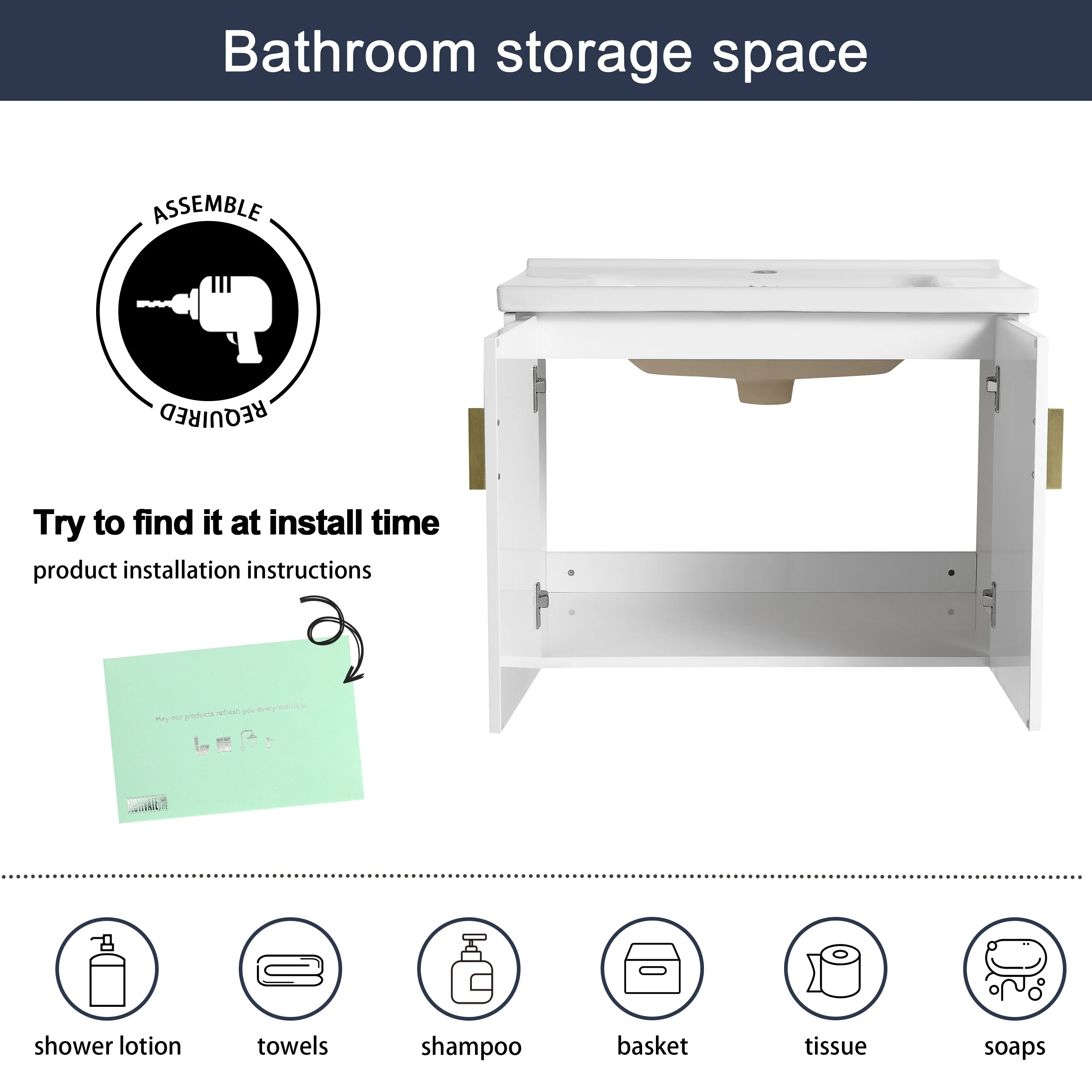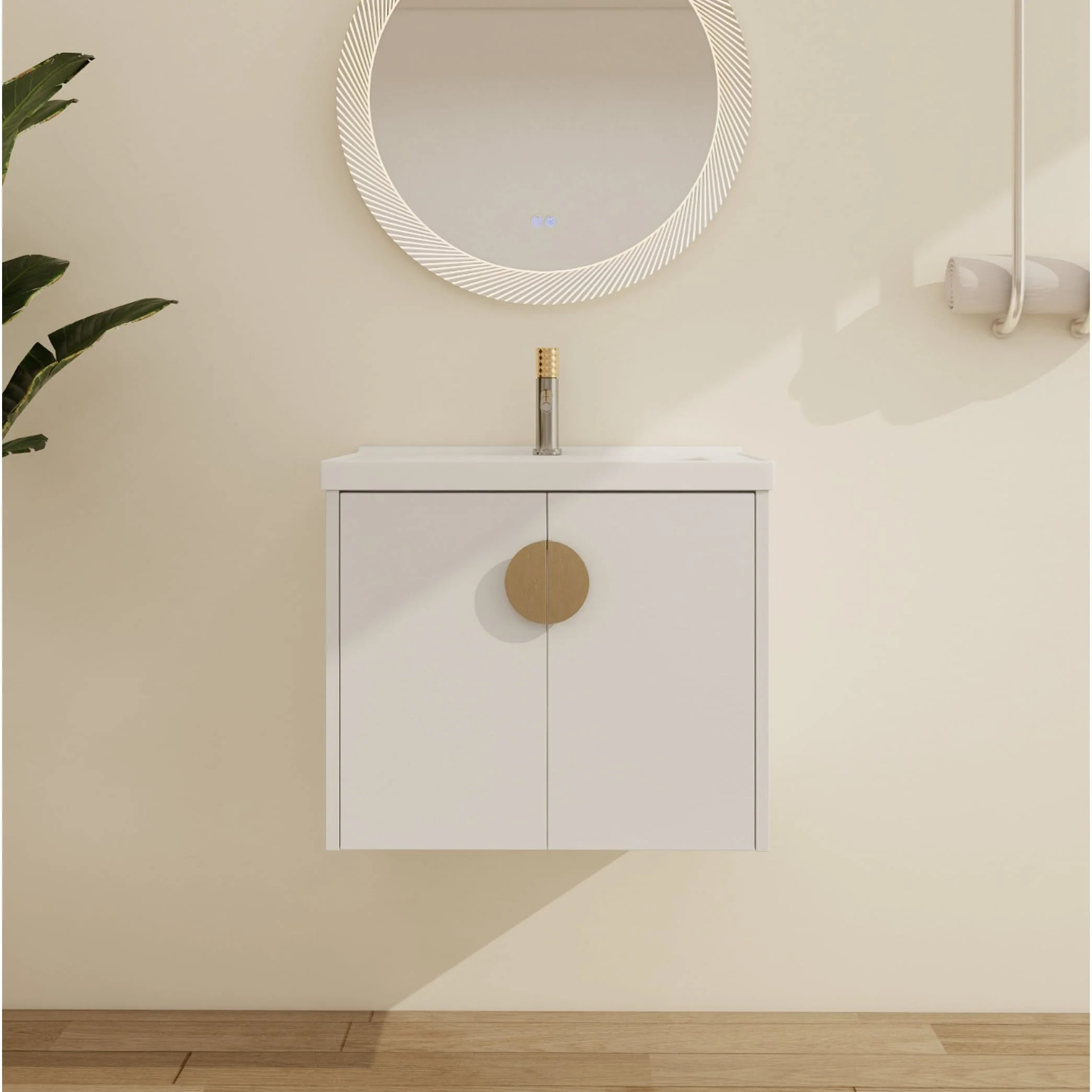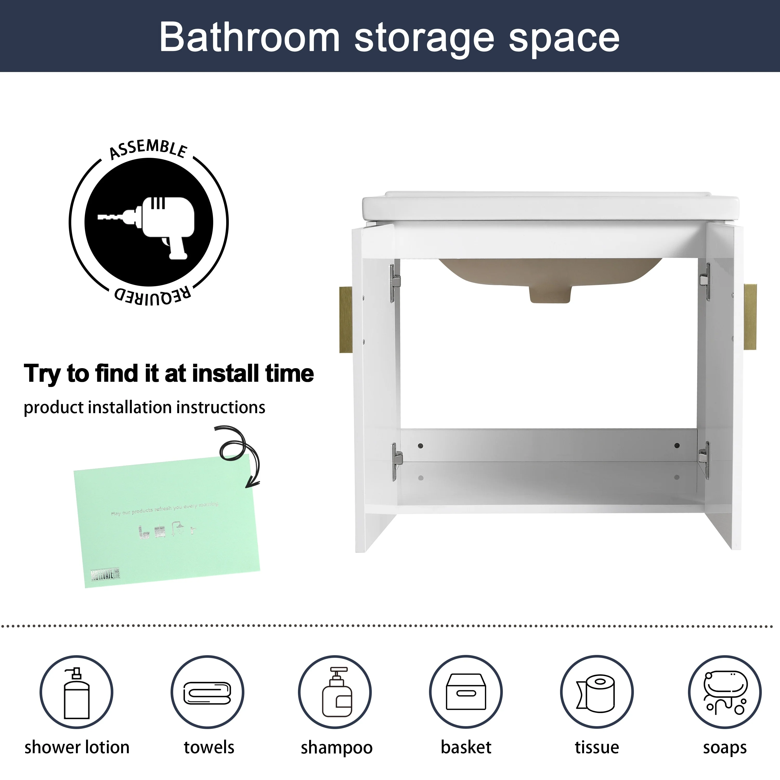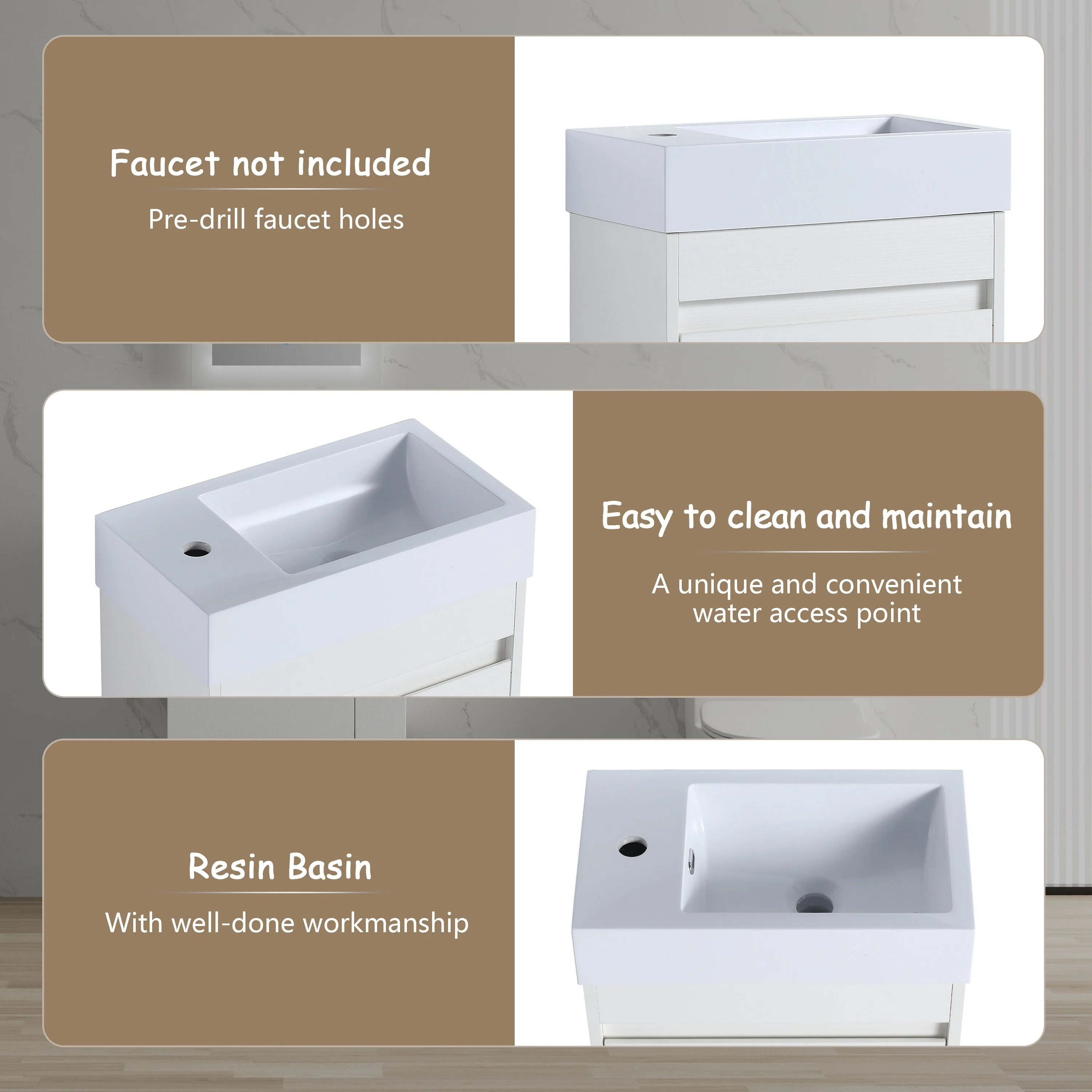 White, Gold Trim, White Cultured Marble Top