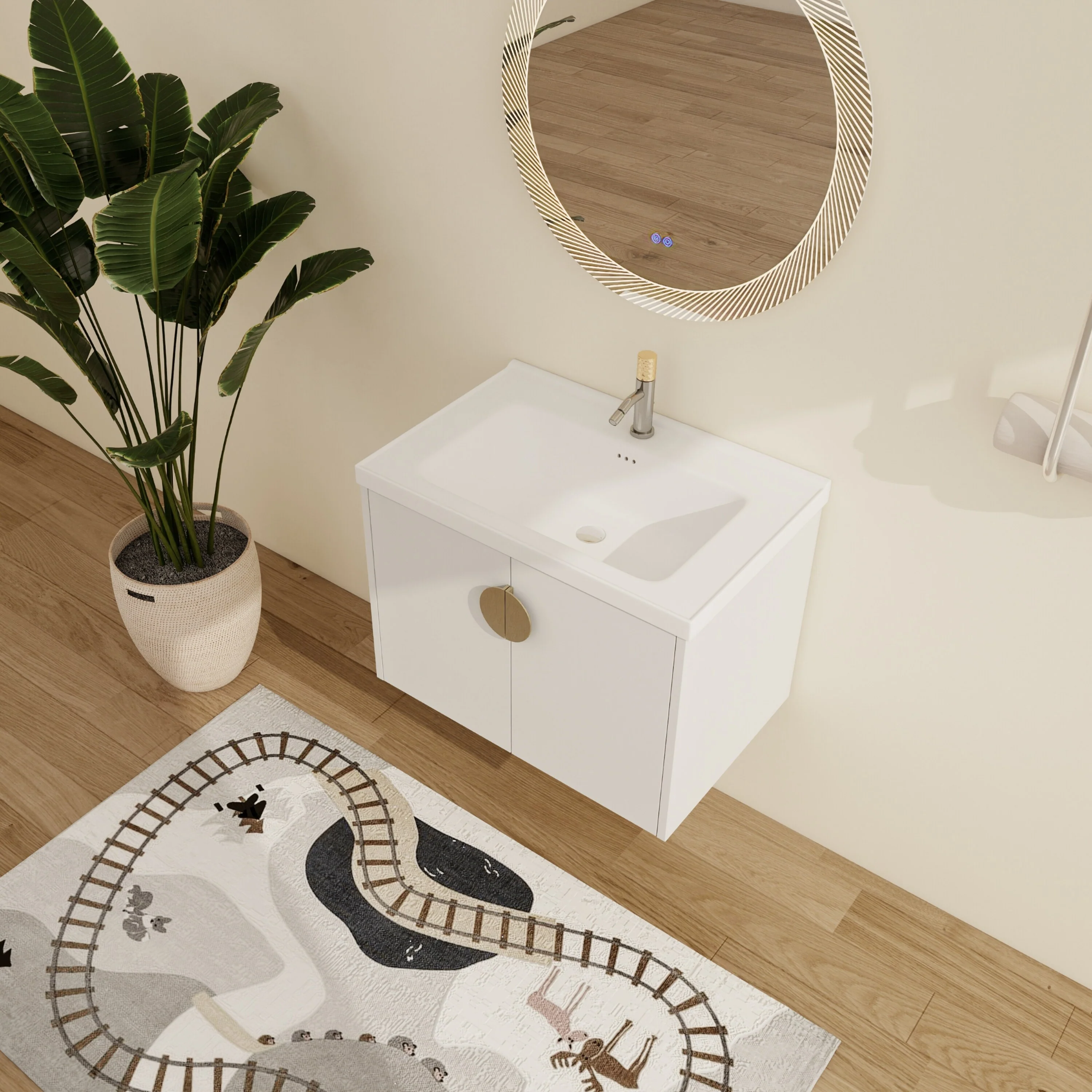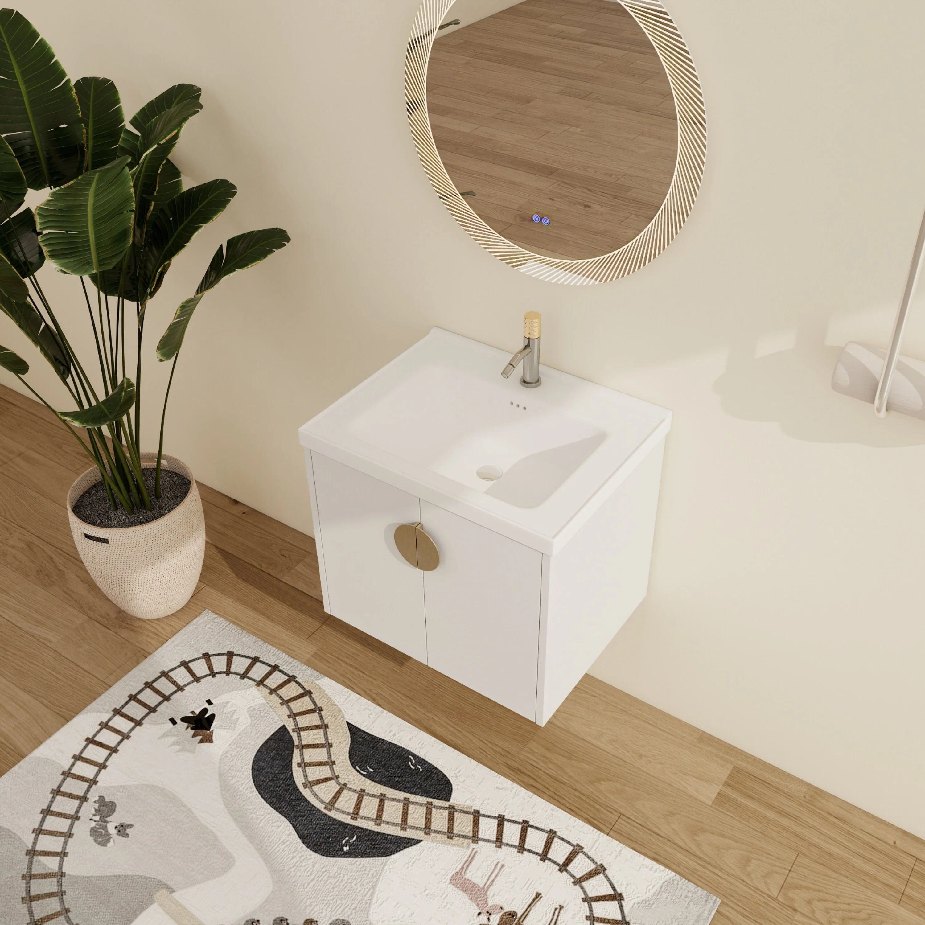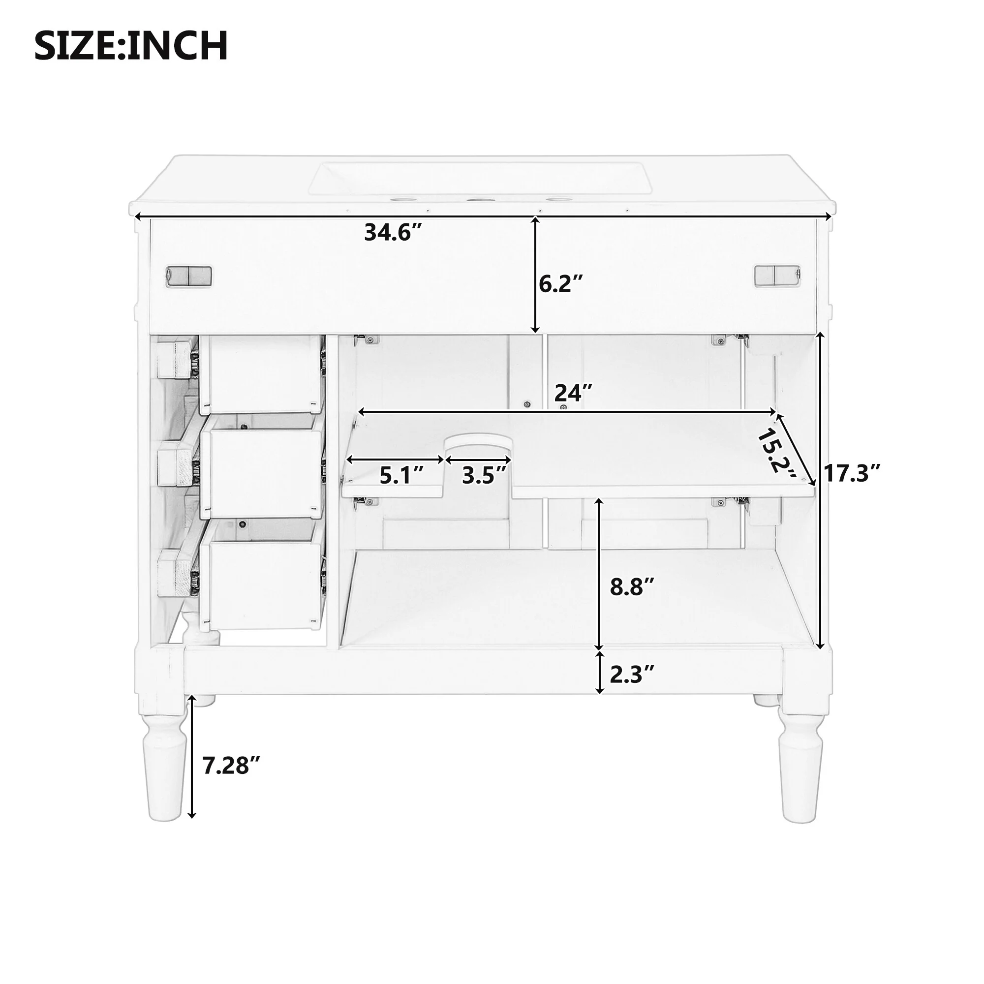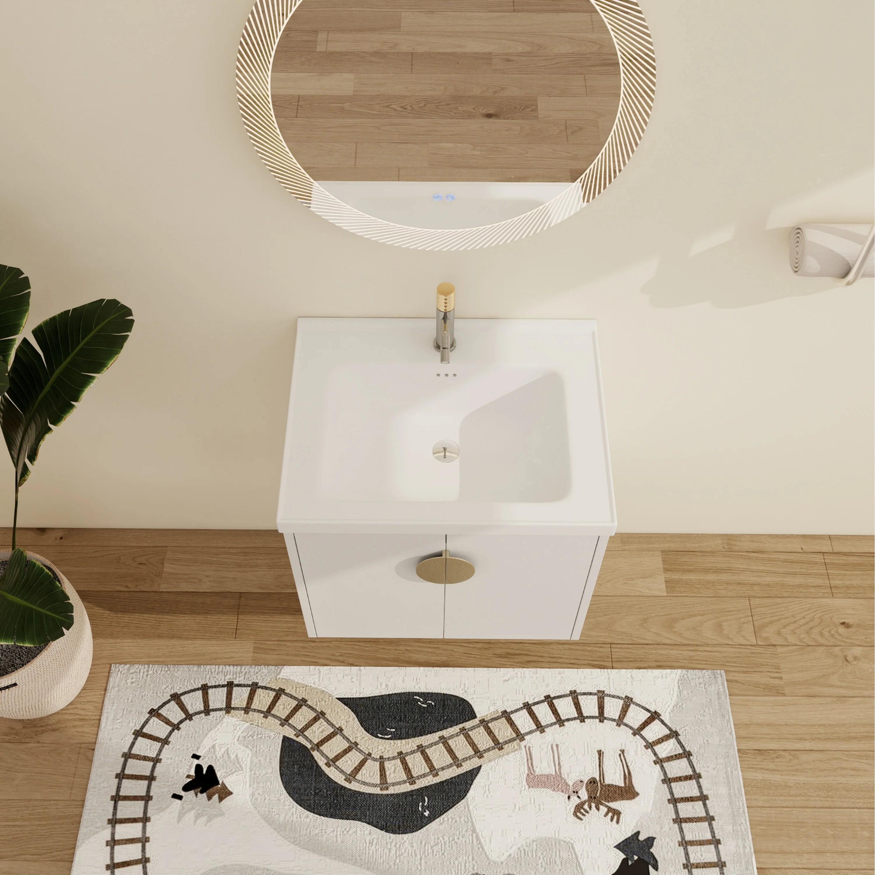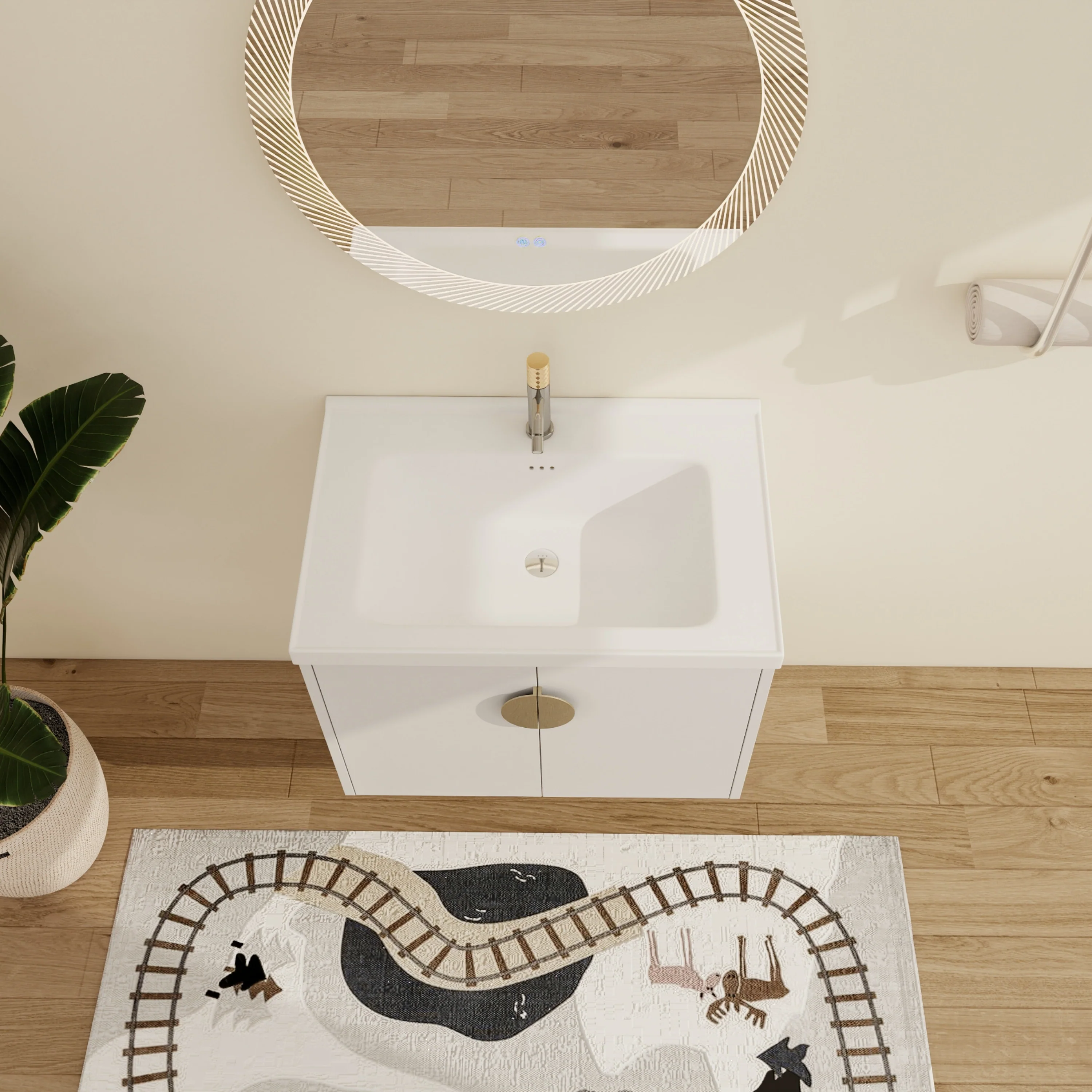 White, Gold Trim, White Cultured Marble Top