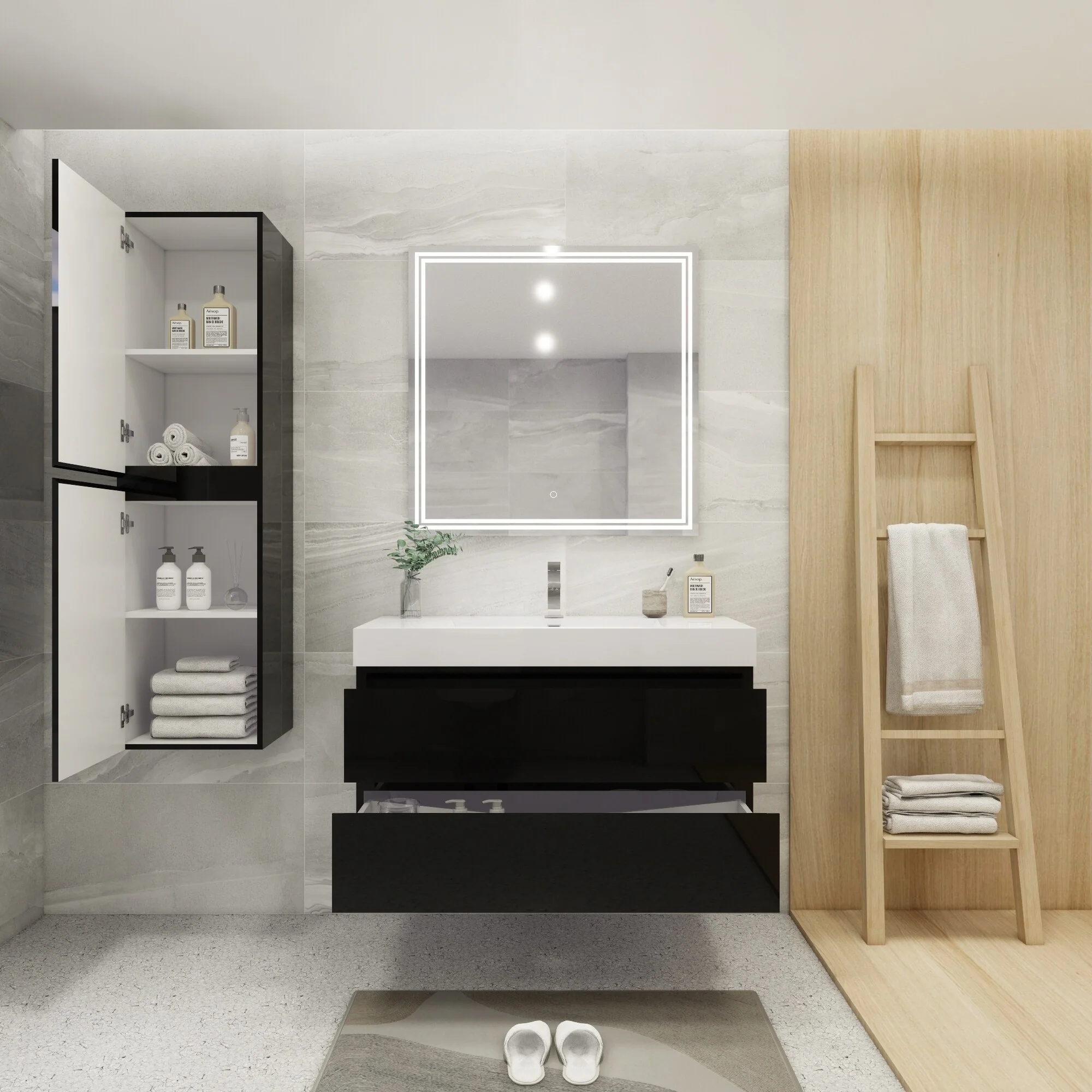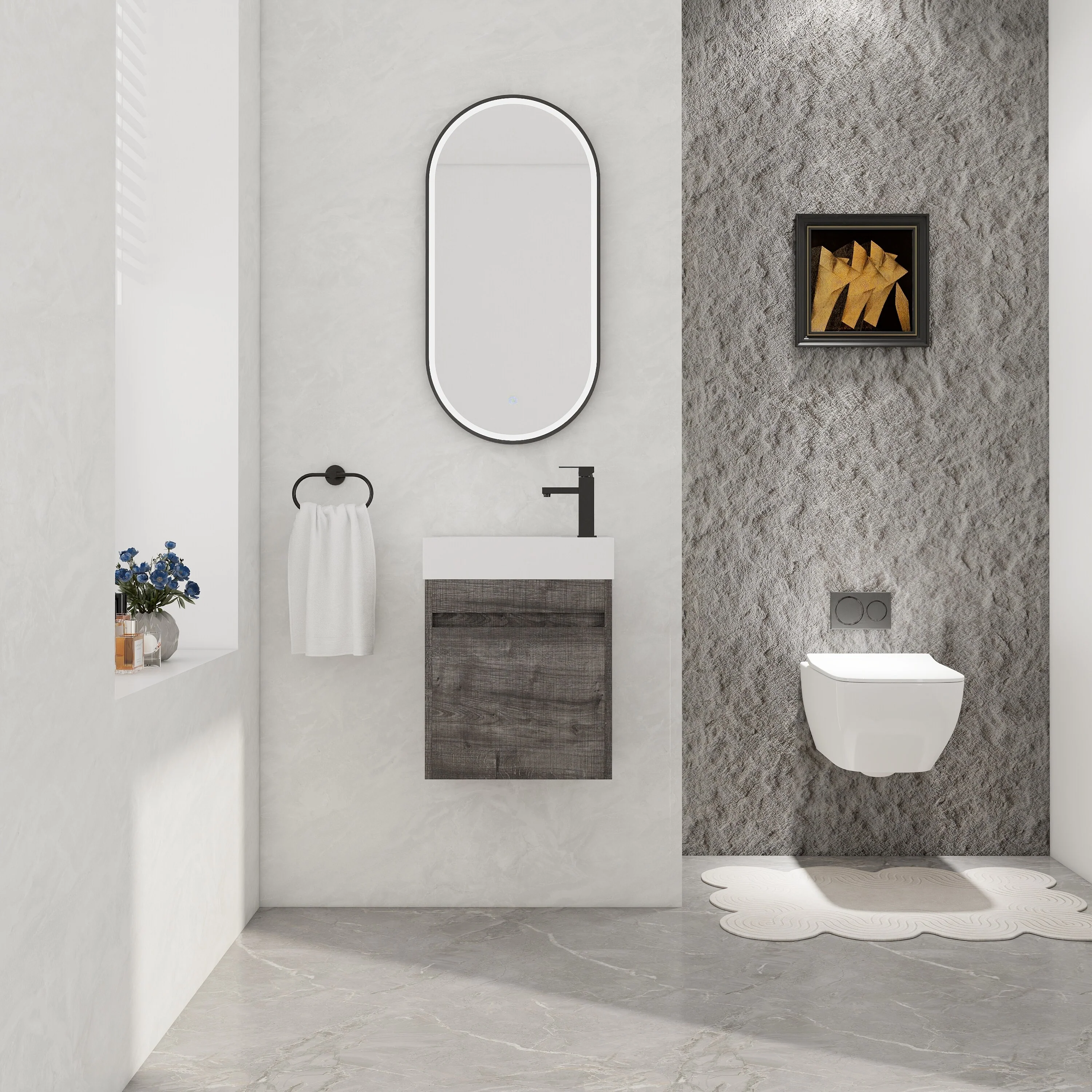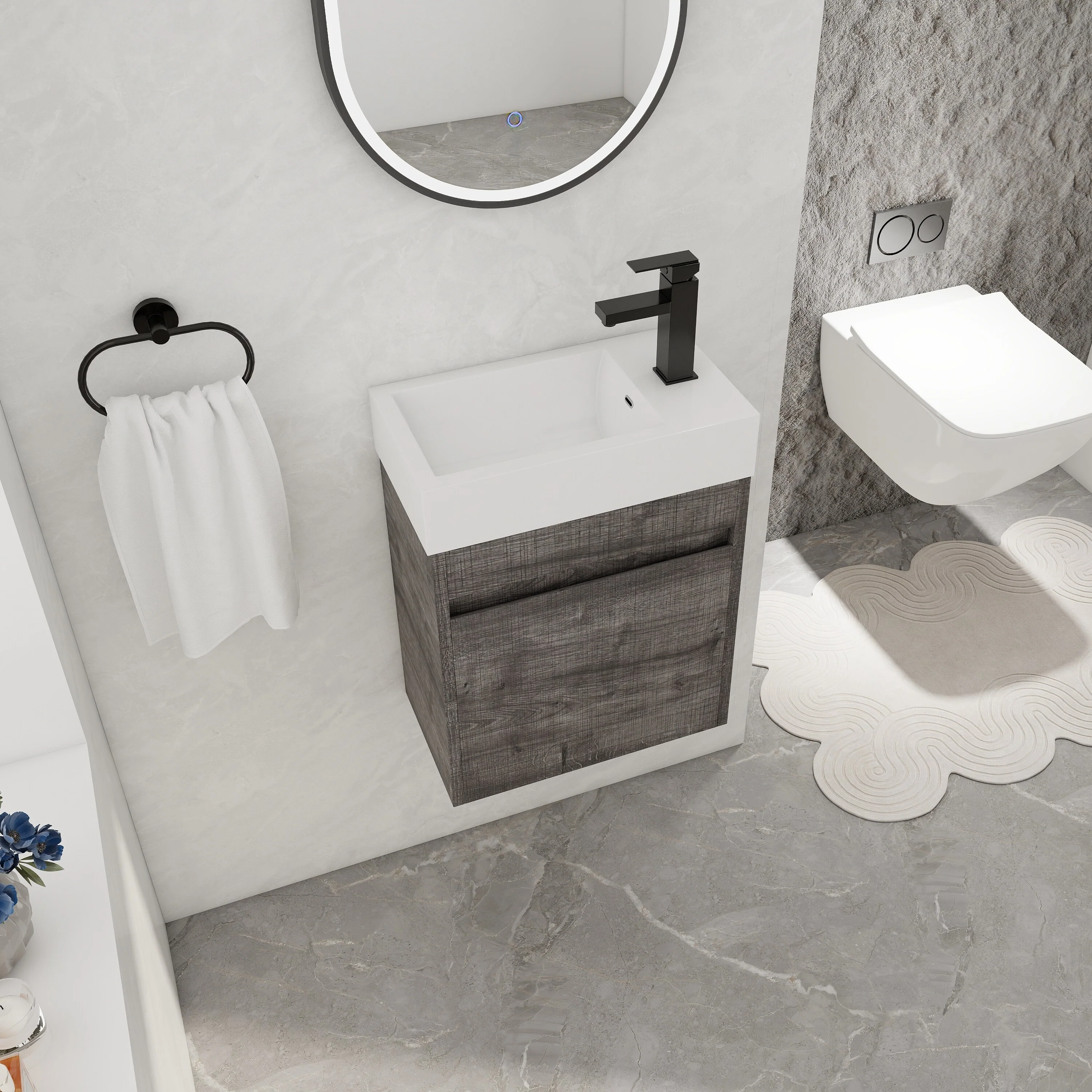 Dark Gray, Black Trim, Carrara Cultured Marble Top
