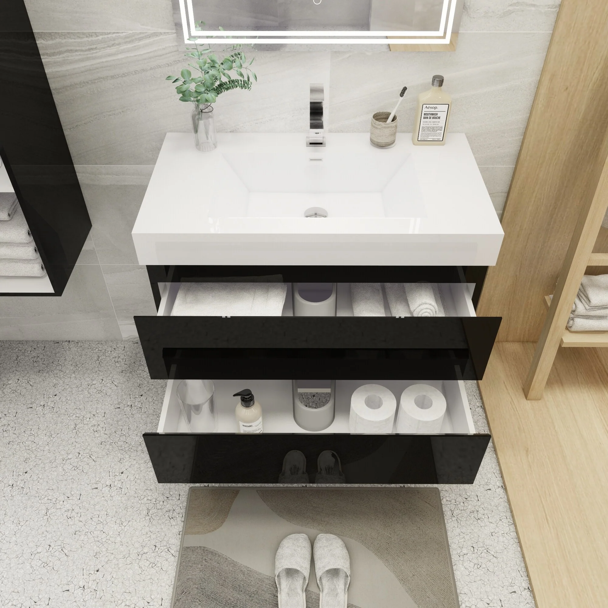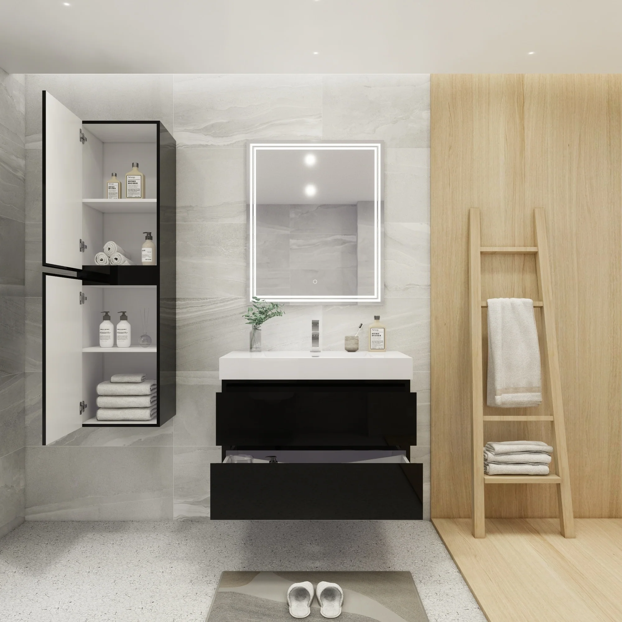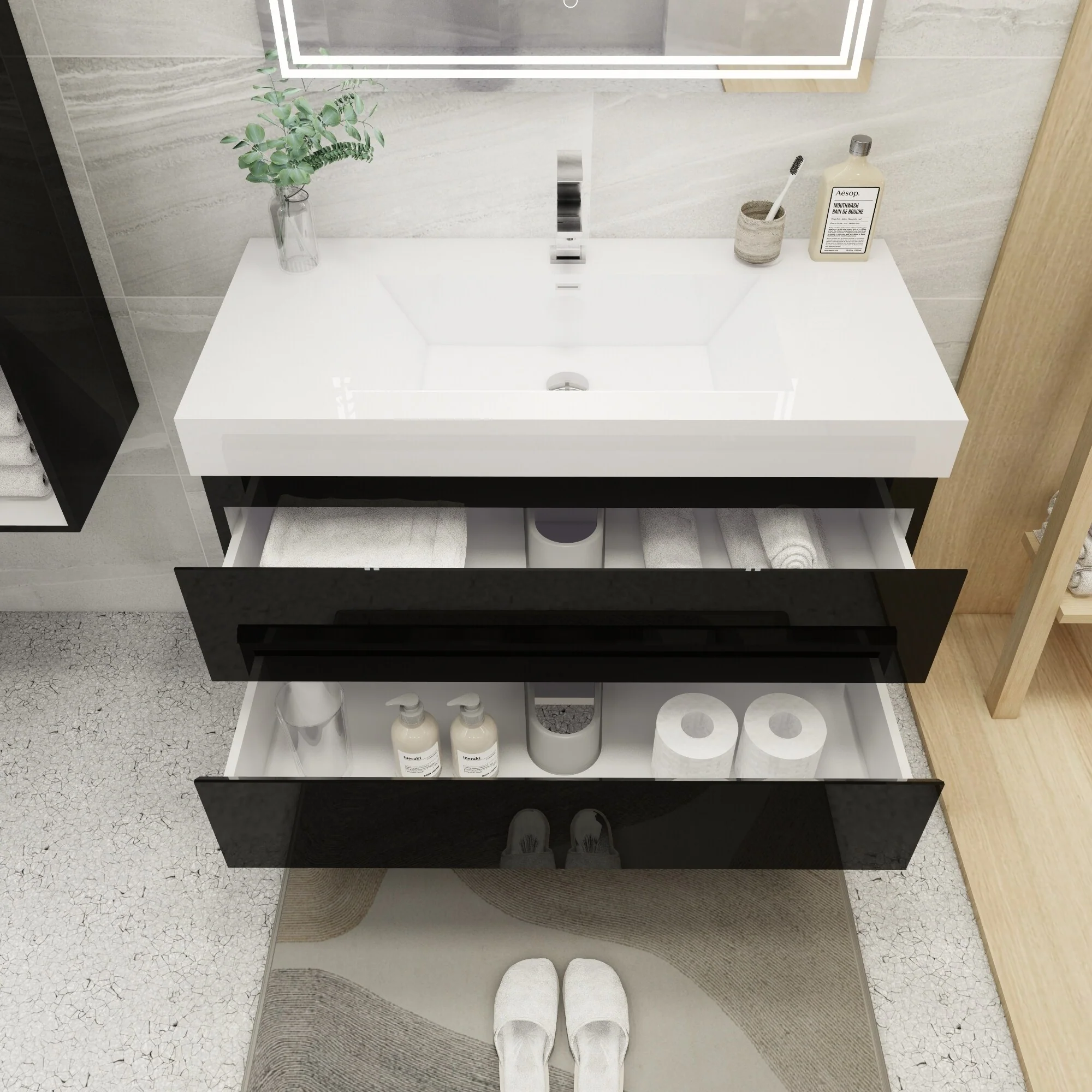 Dark Gray, Black Trim, Carrara Cultured Marble Top
