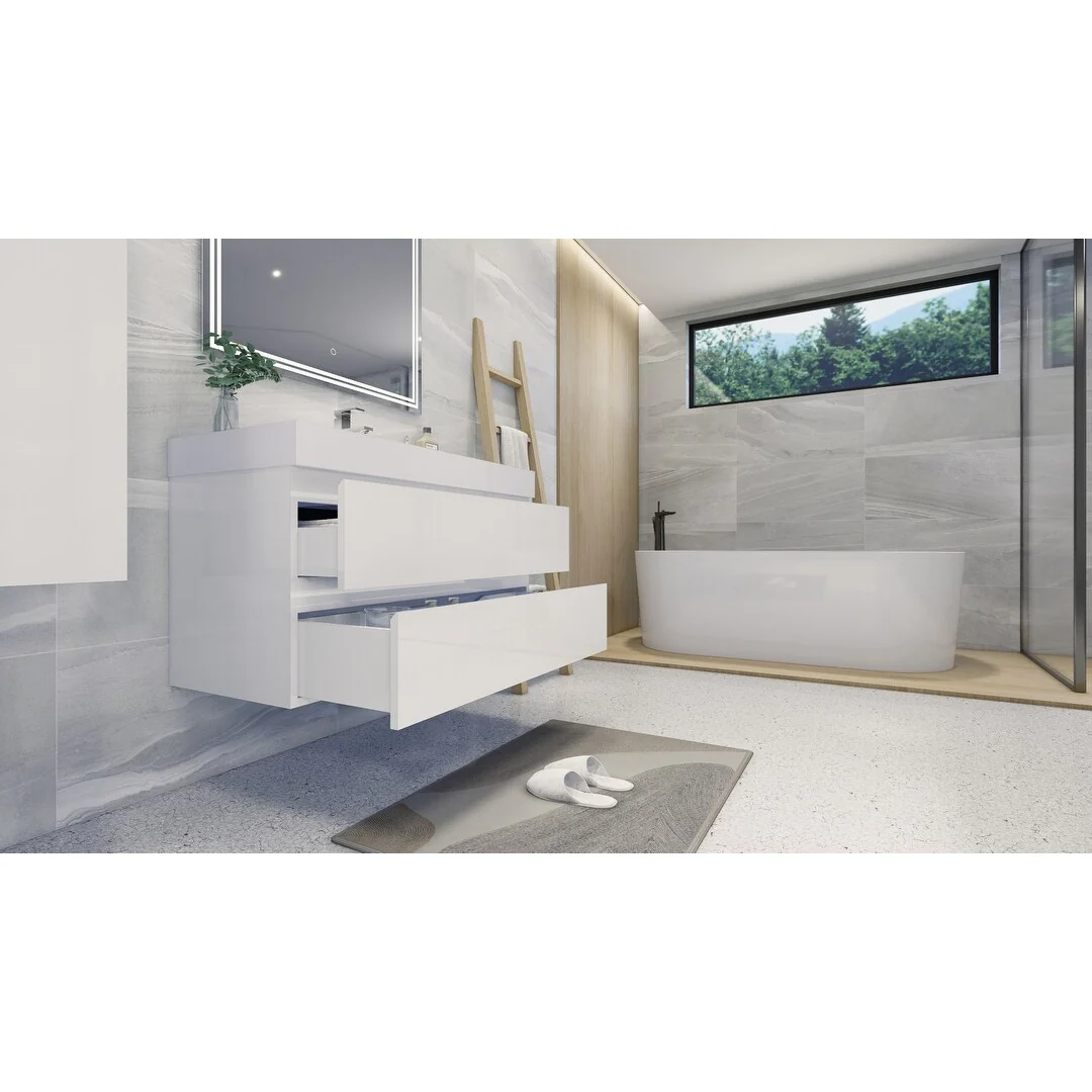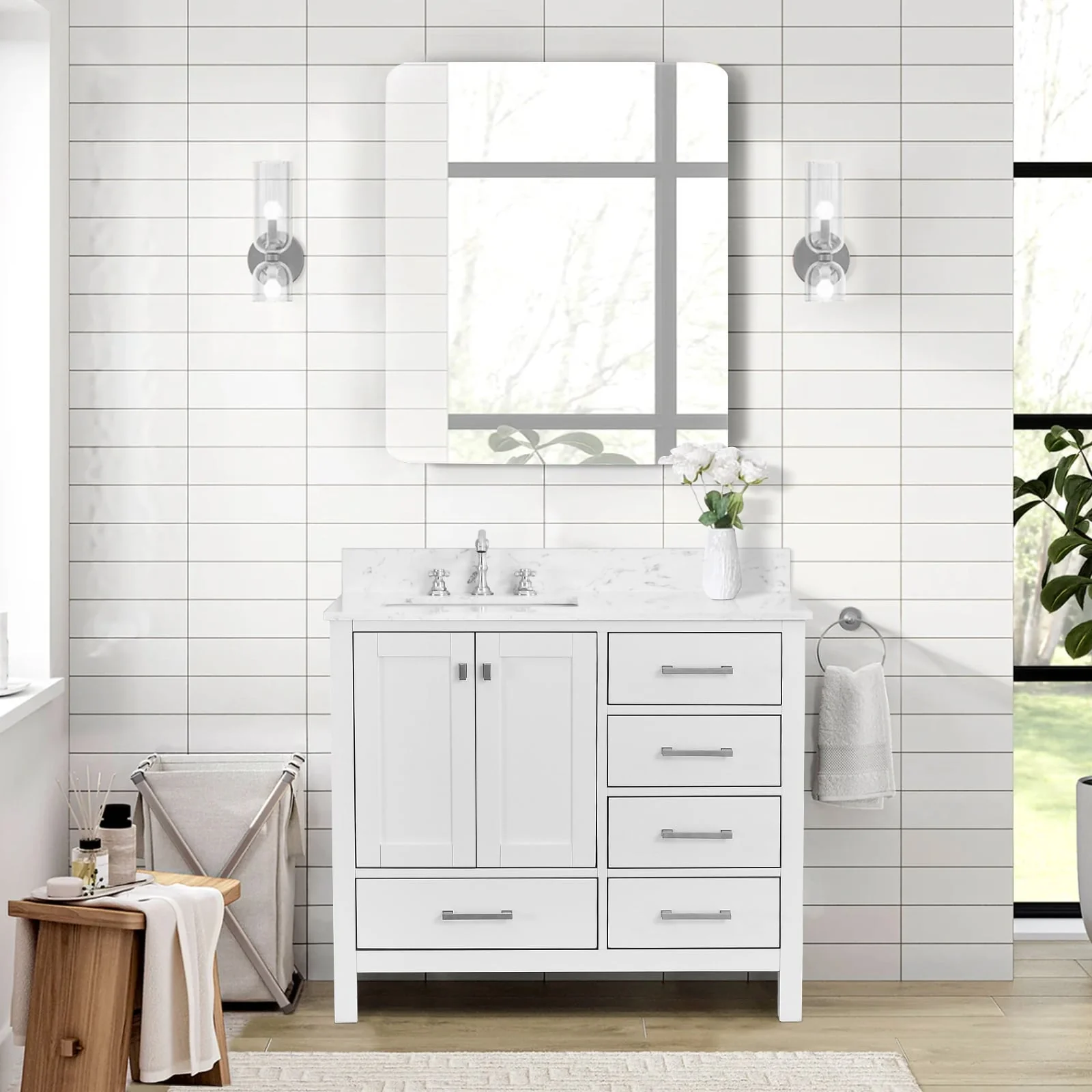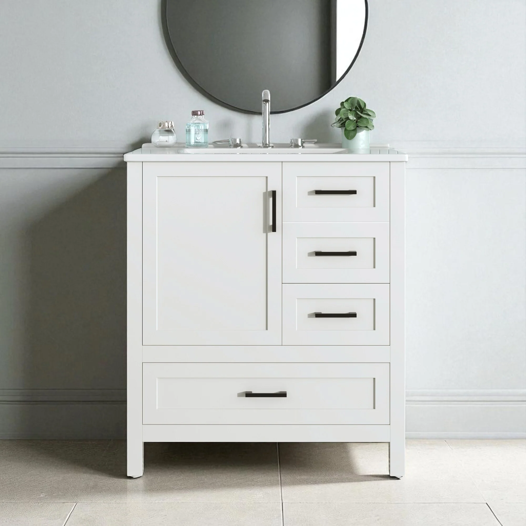 White, Nickel Trim, White Cultured Marble Top