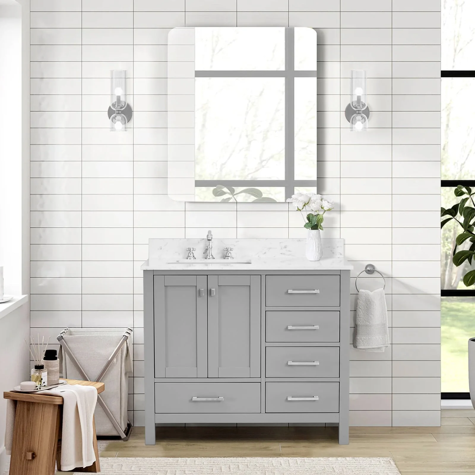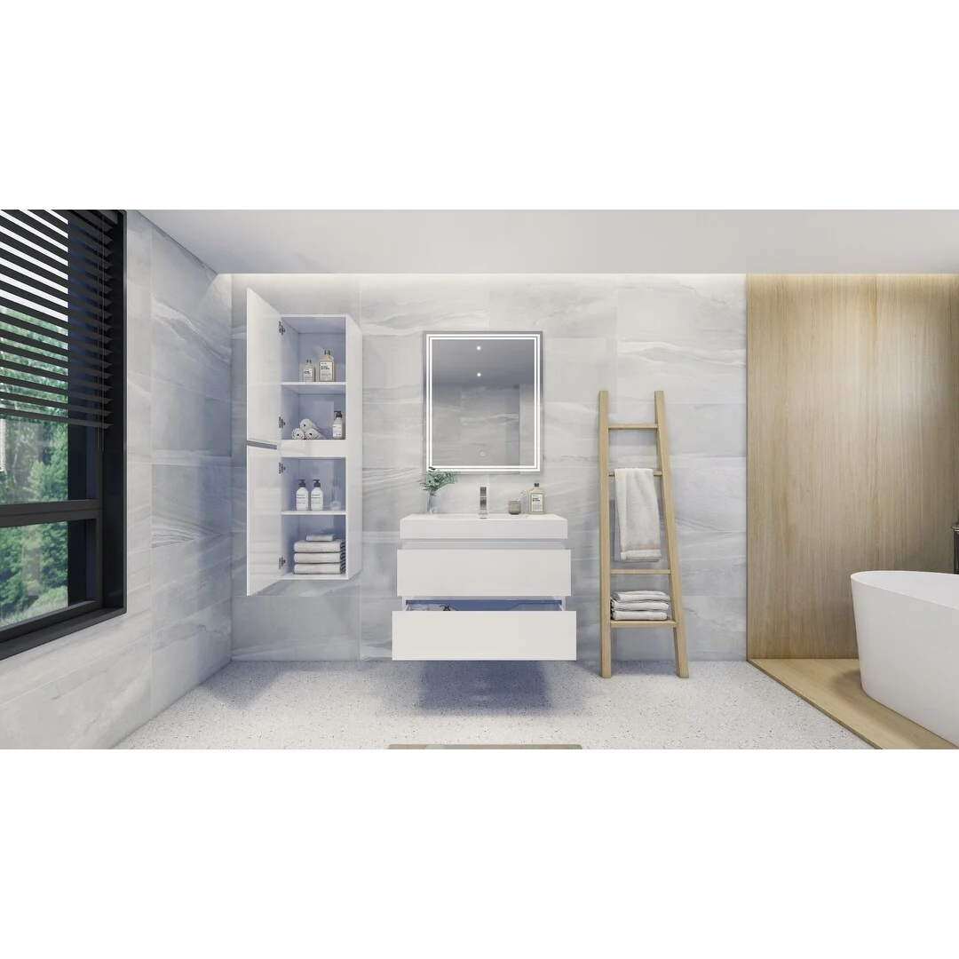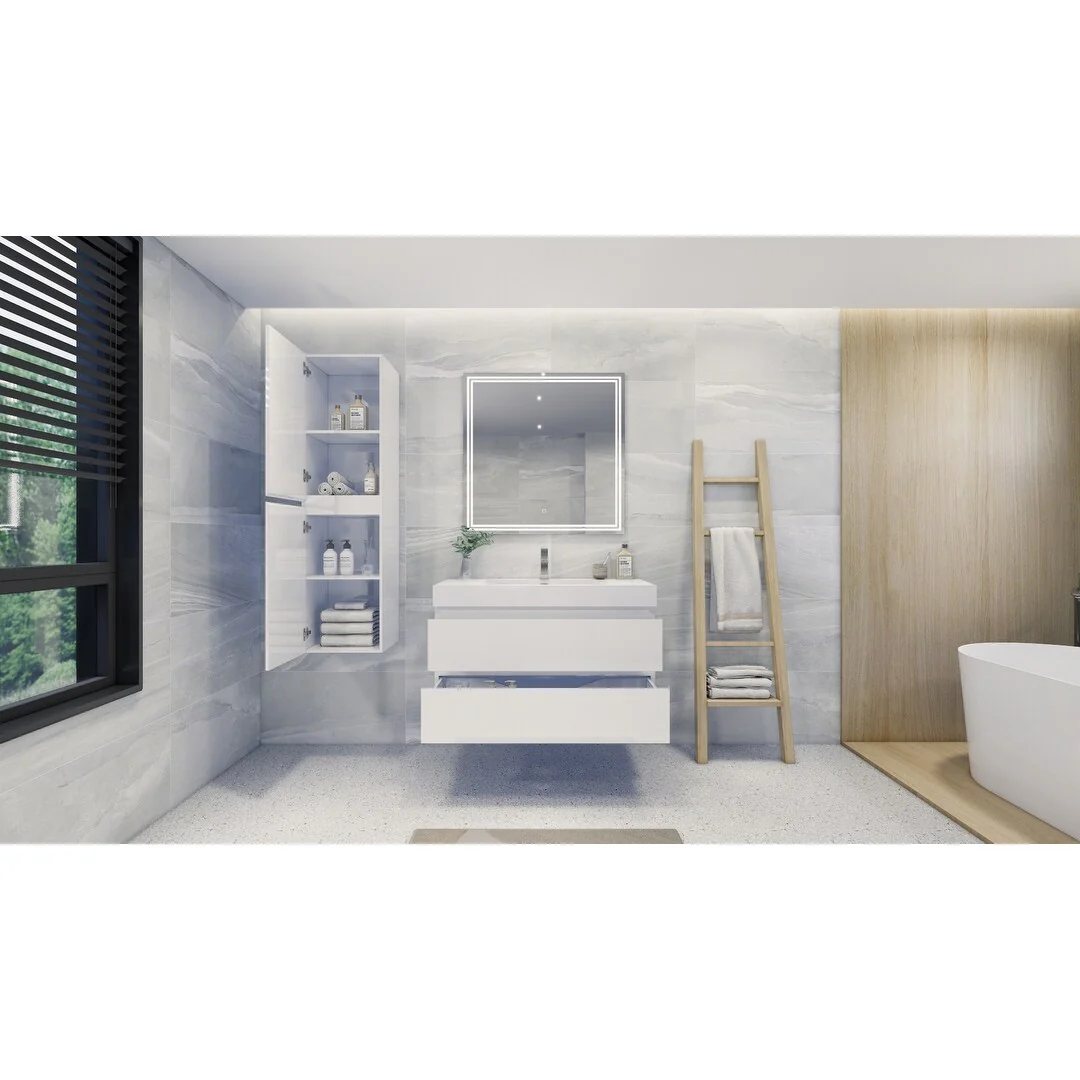 White, Nickel Trim, White Cultured Marble Top