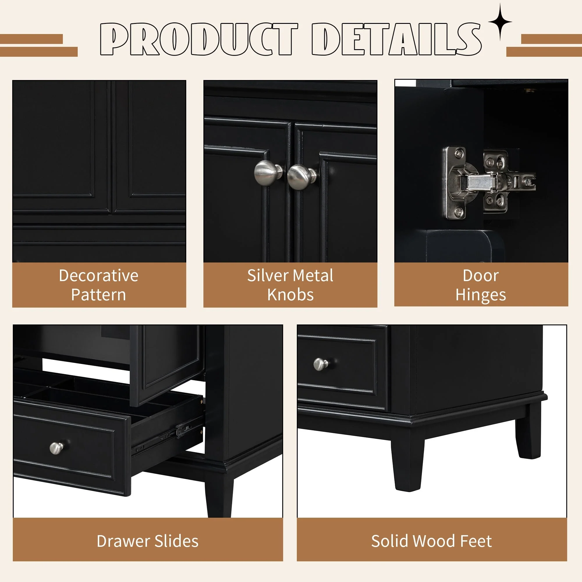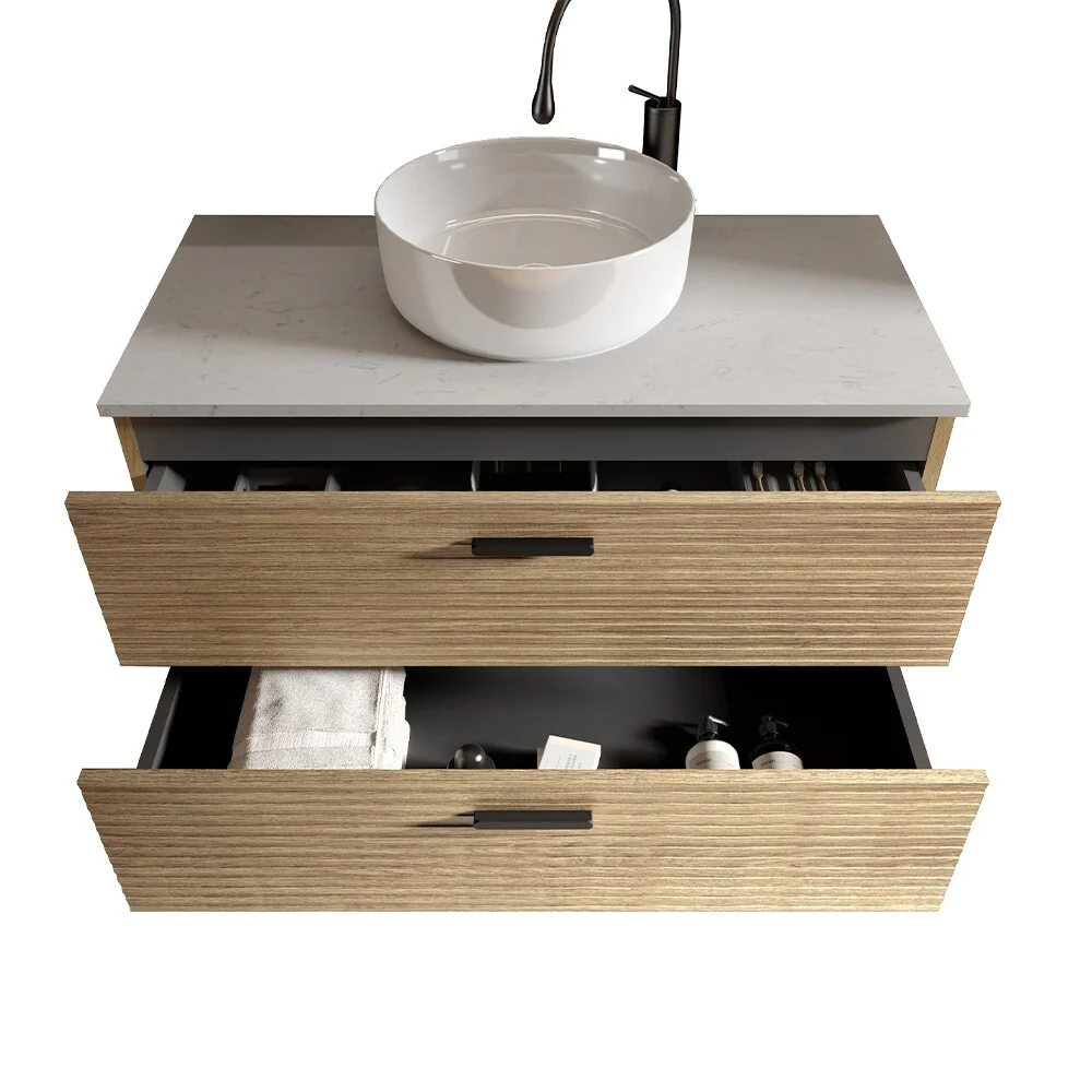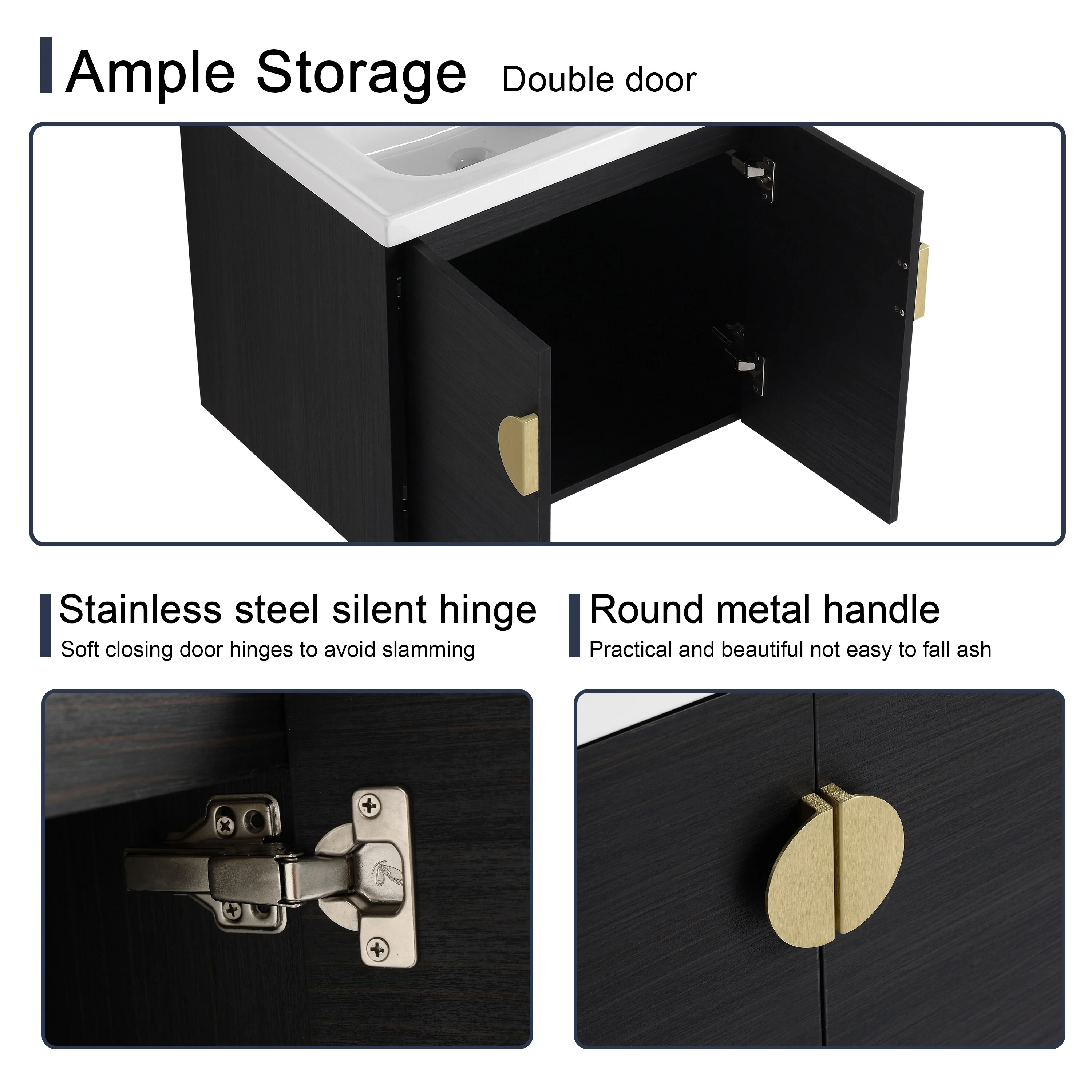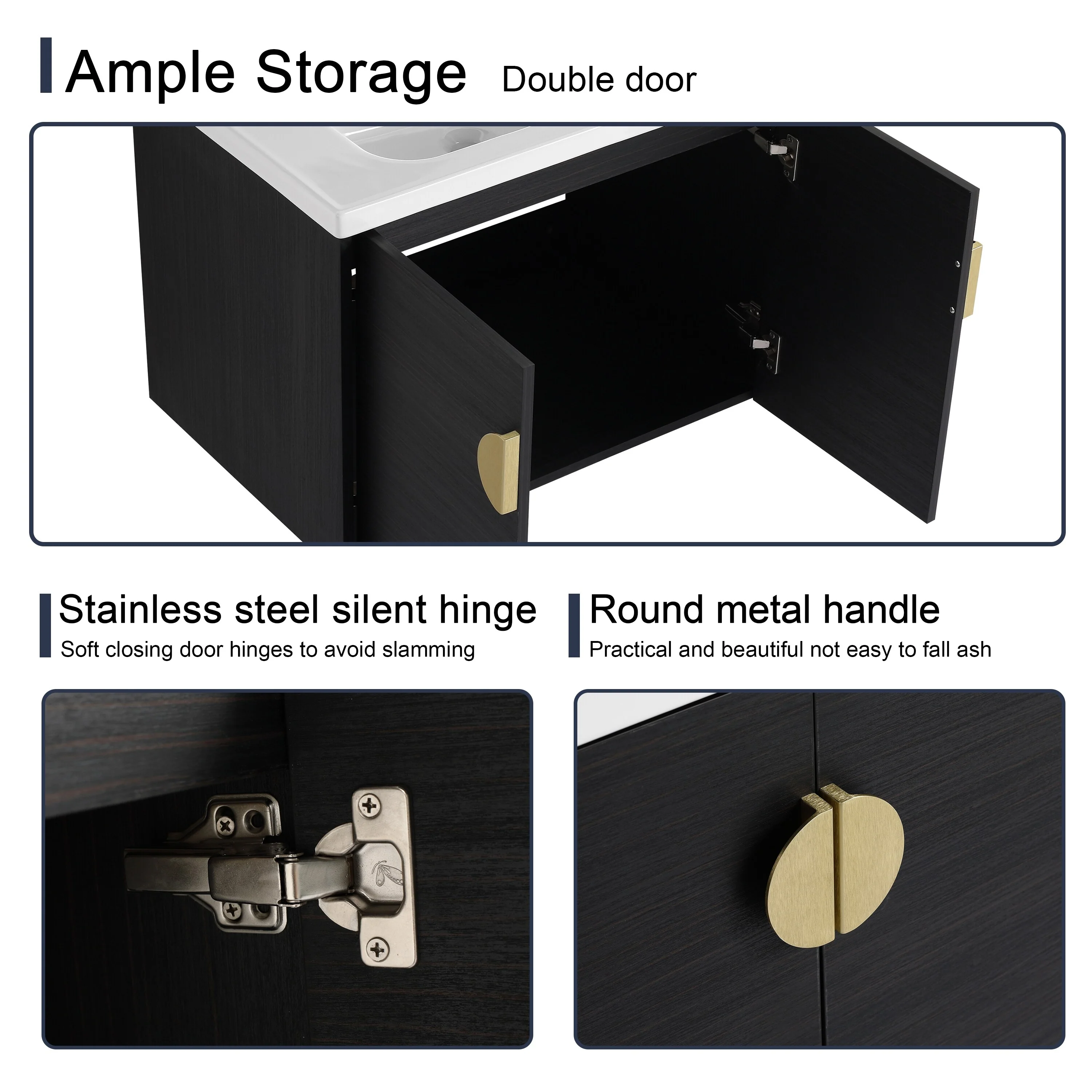 Dark Gray, Gold Trim, Carrara Cultured Marble Top