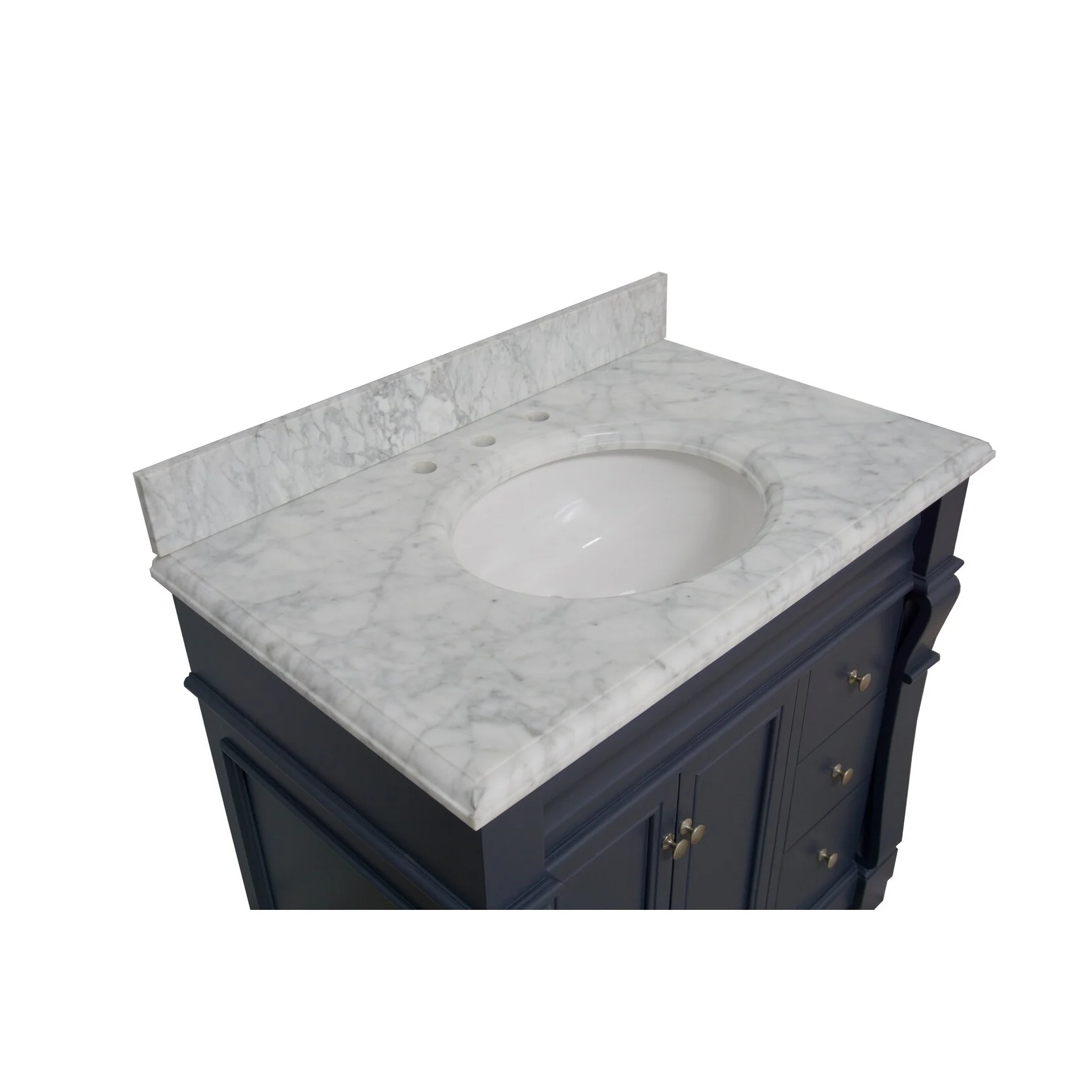 Dark Blue, Gold Trim, Carrara Cultured Marble Top