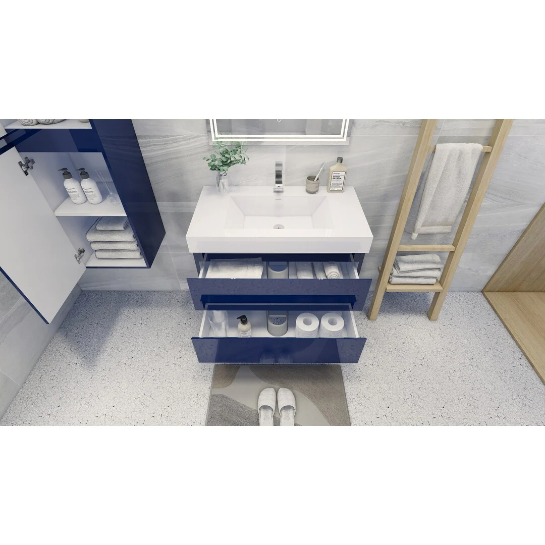 Dark Blue, Nickel Trim, White Cultured Marble Top