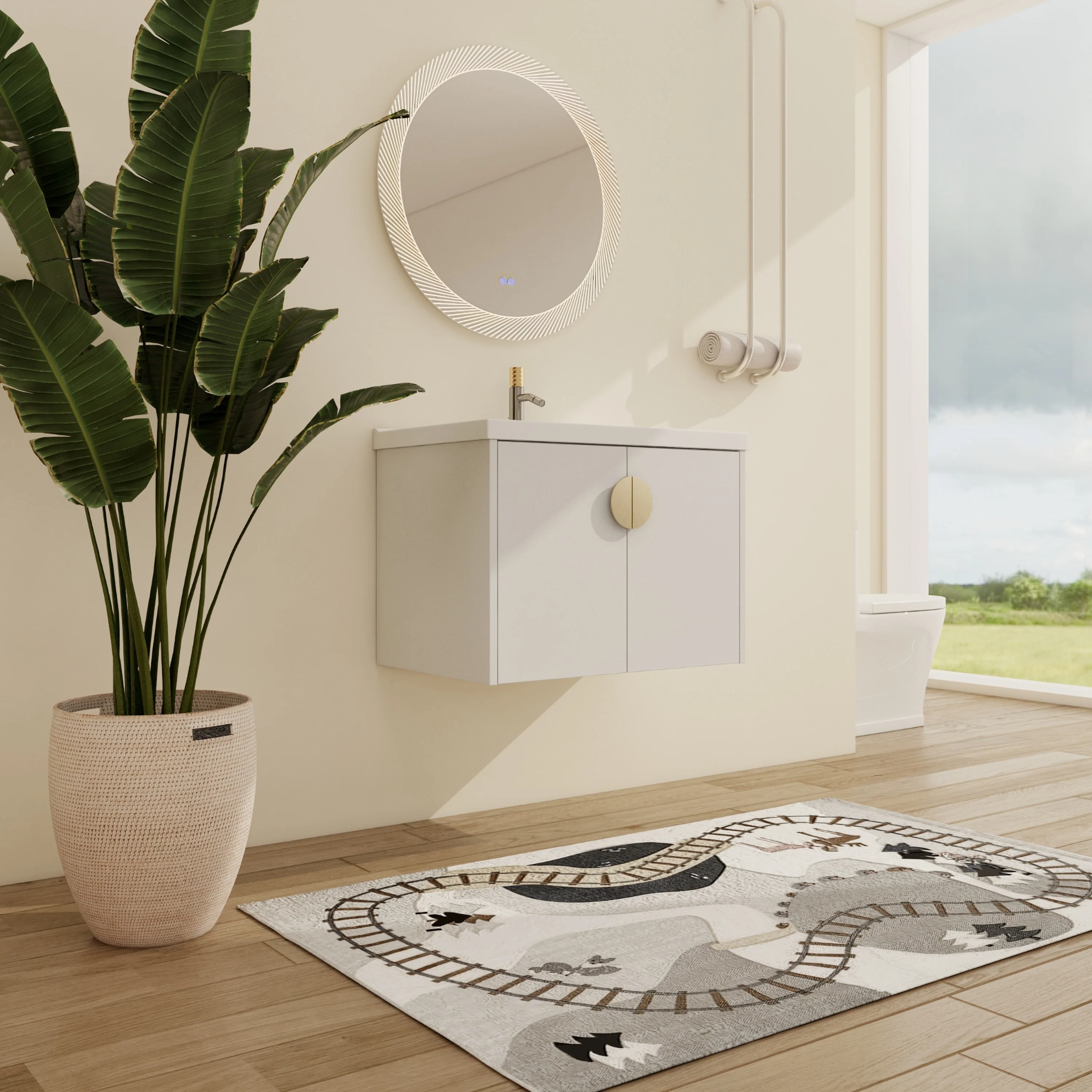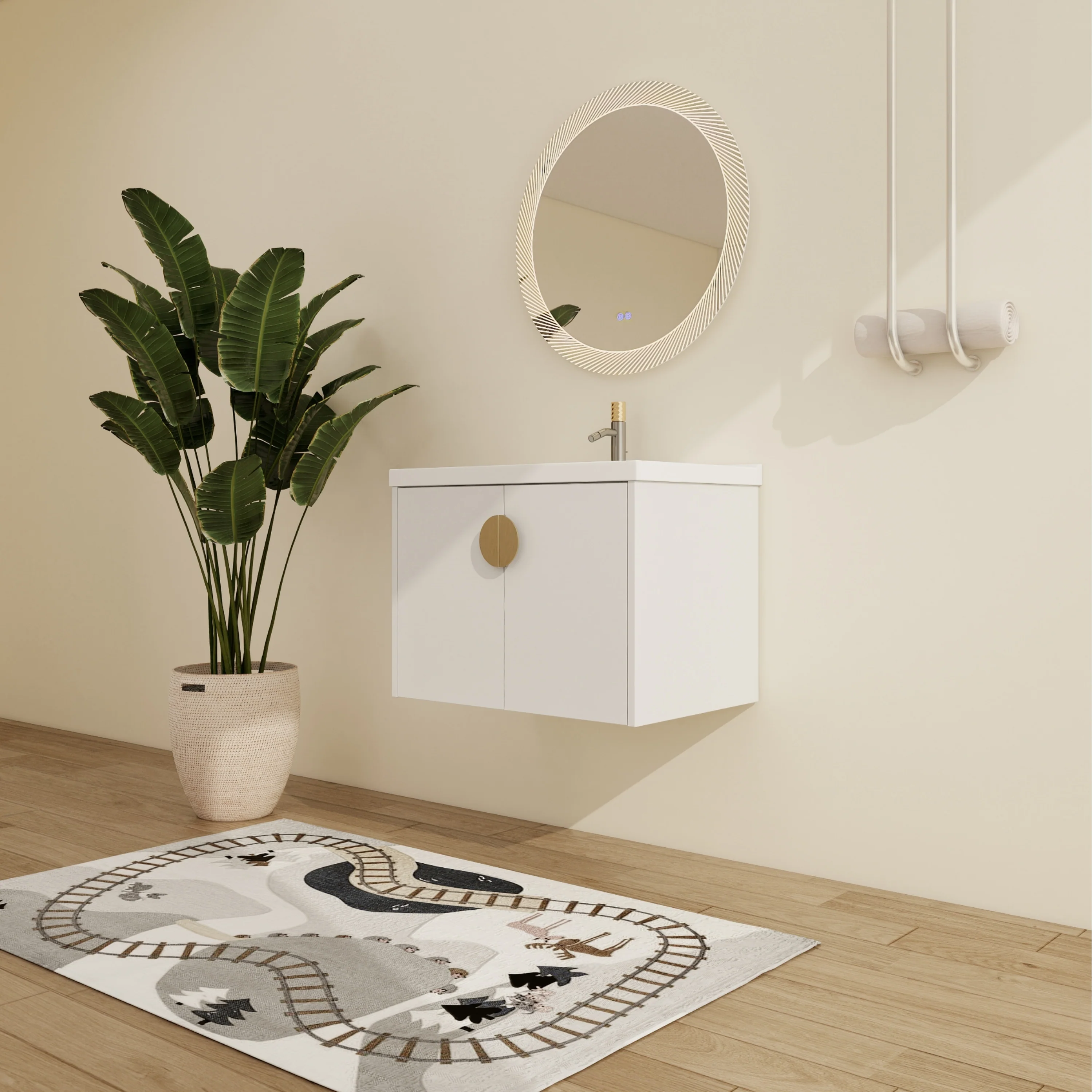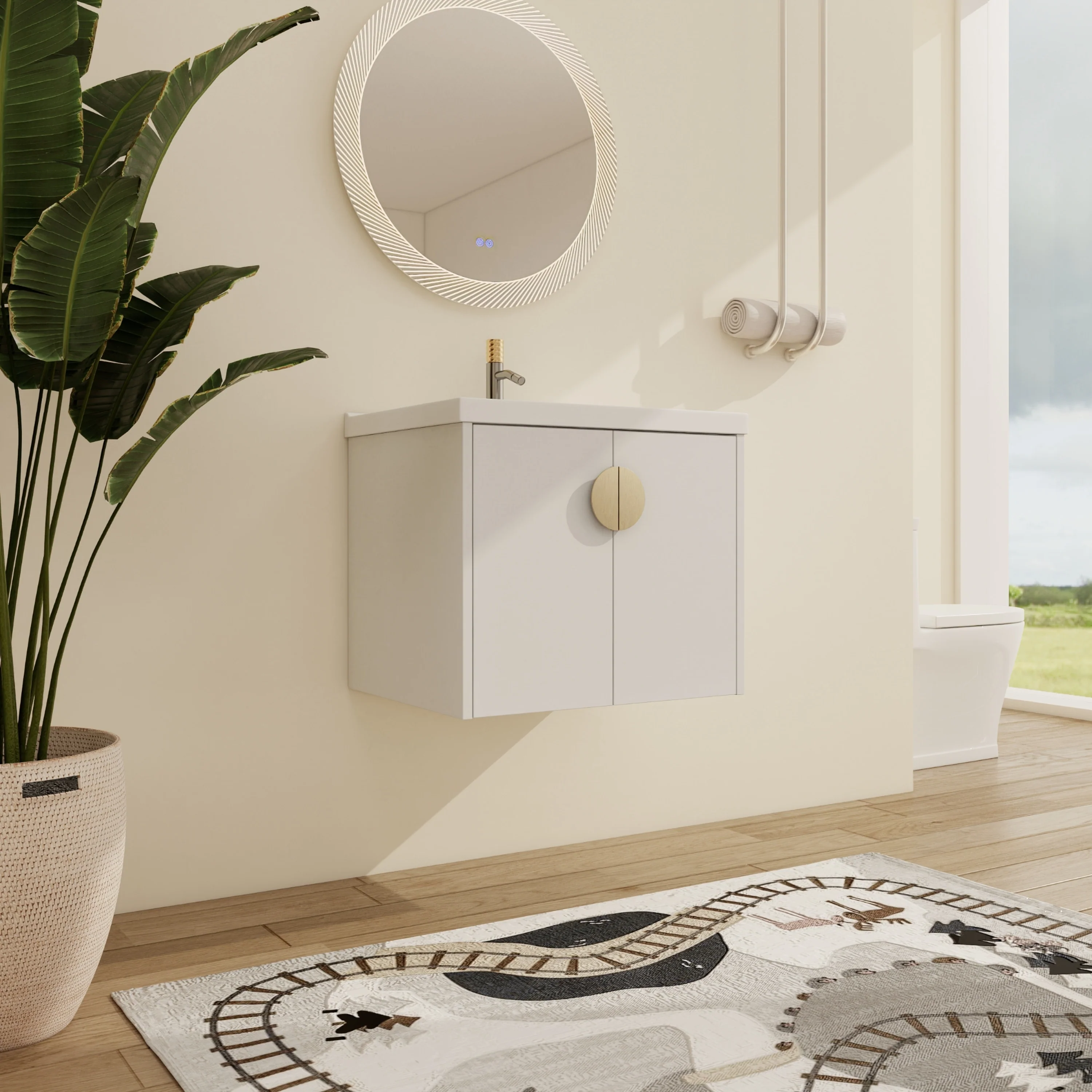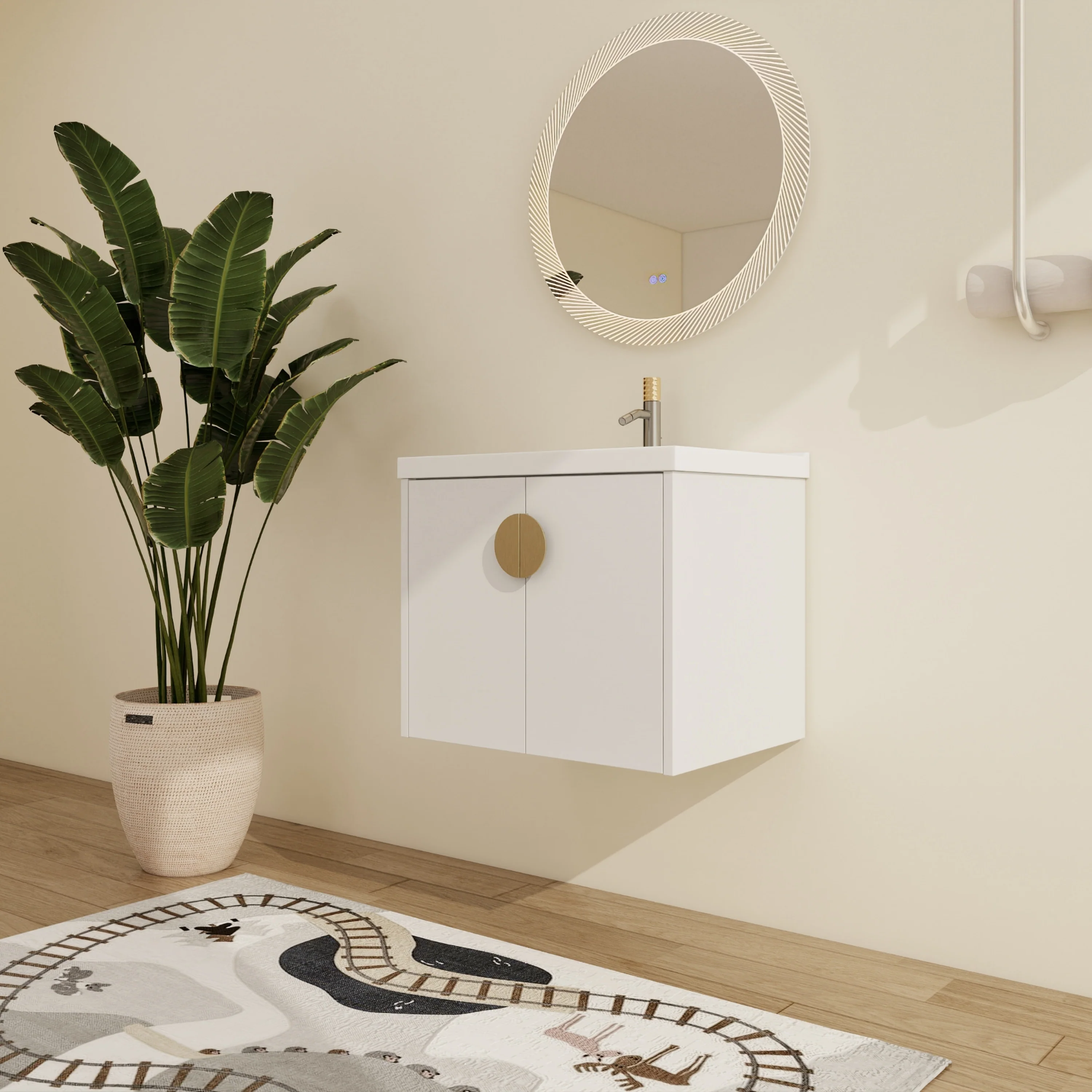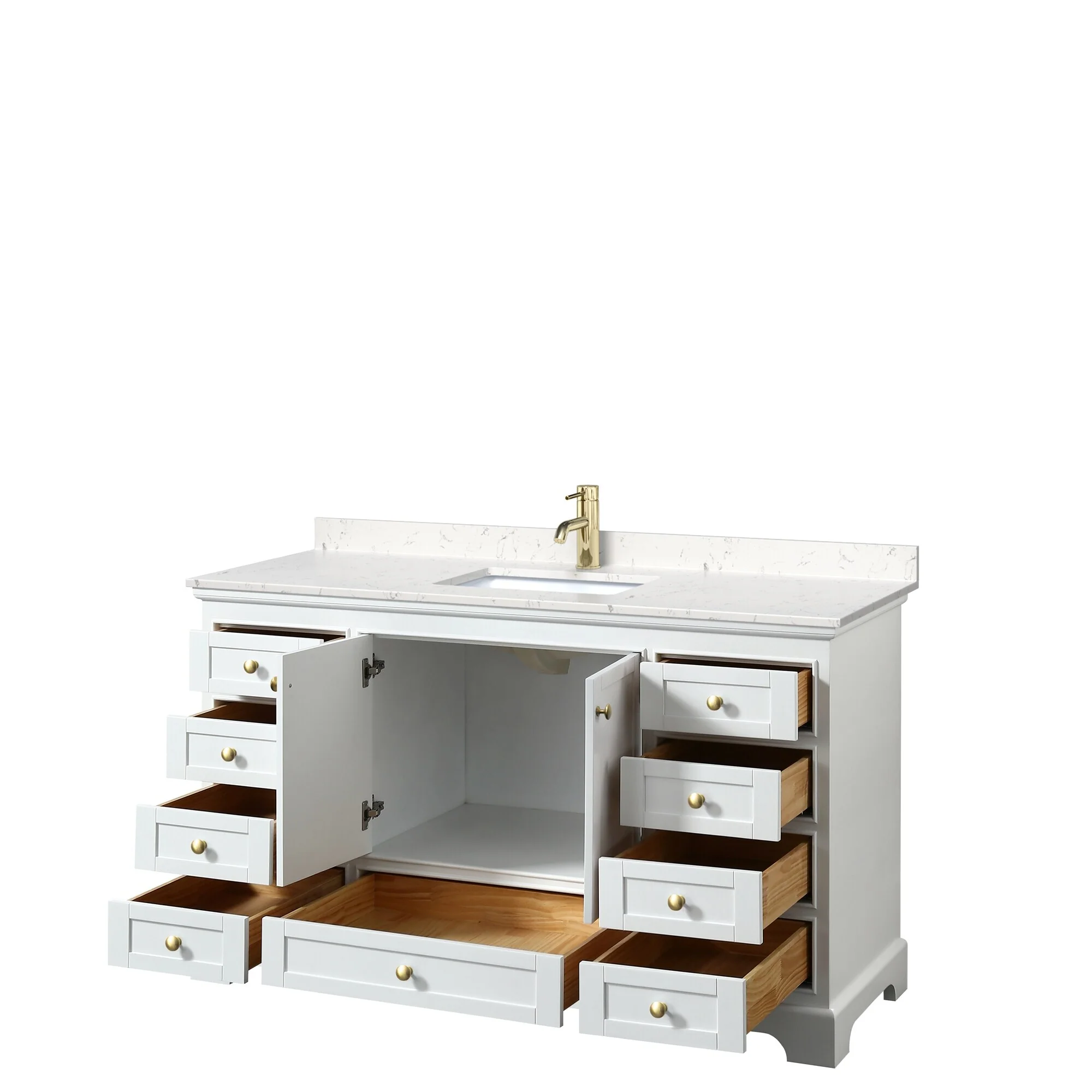 White, Gold Trim, Carrara Cultured Marble Top