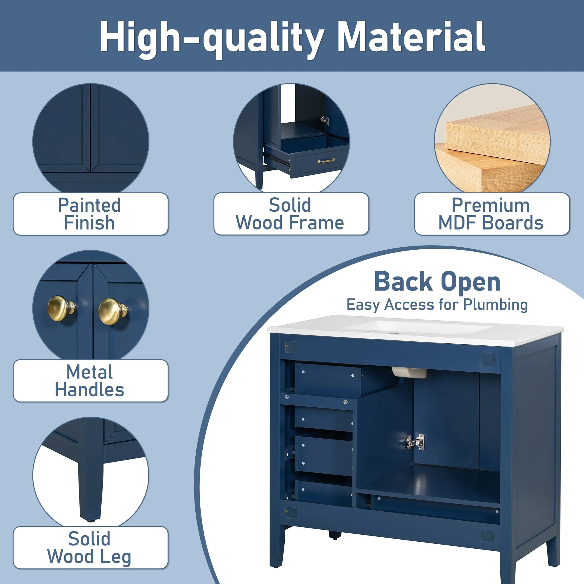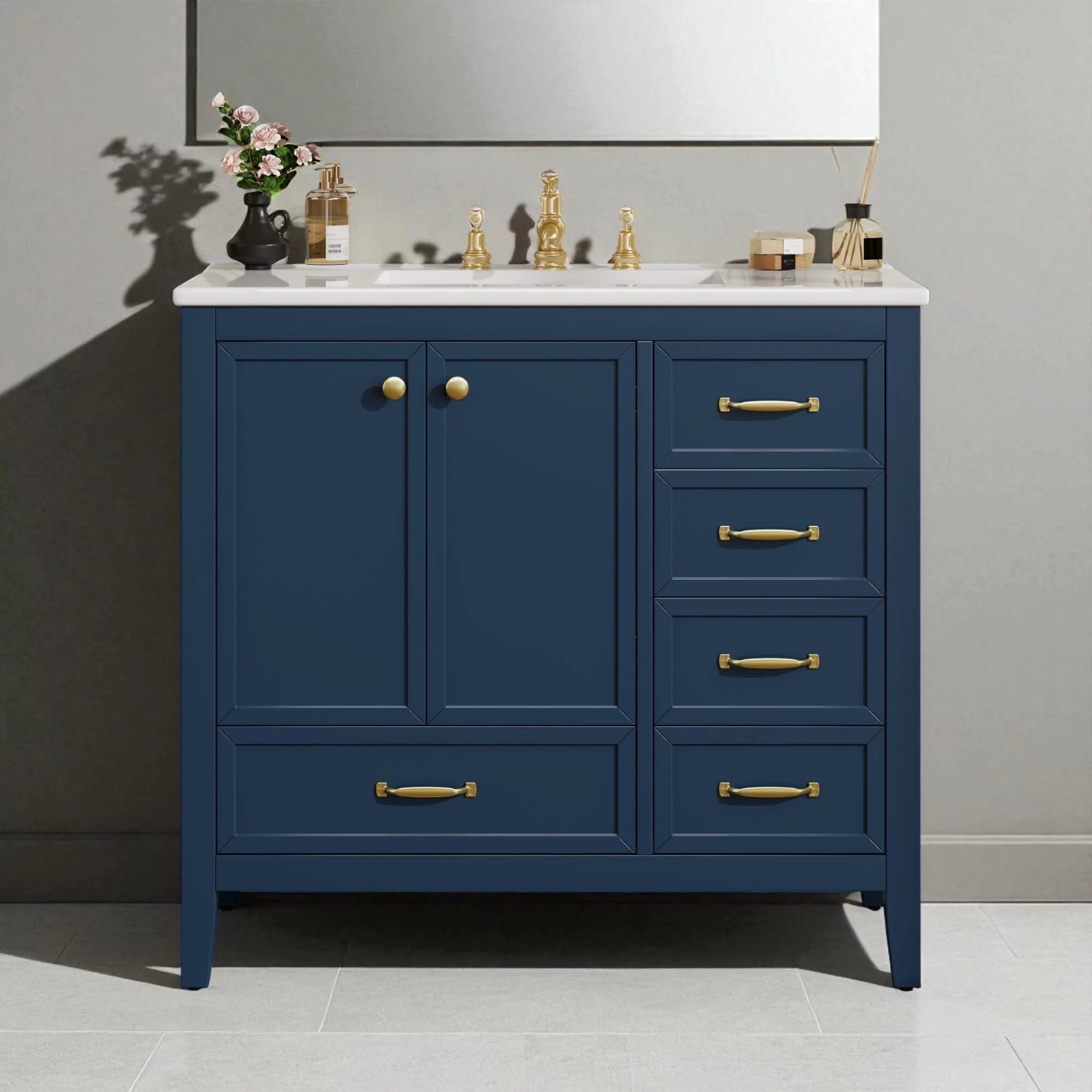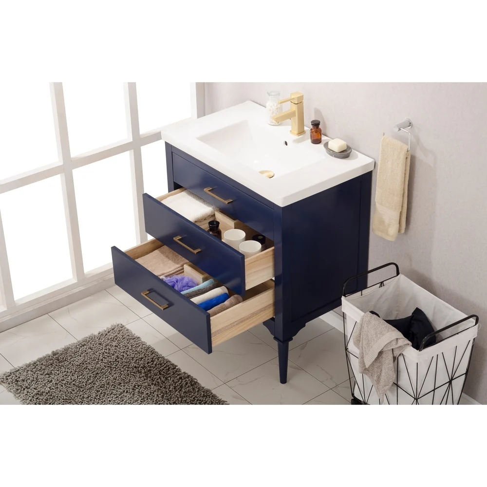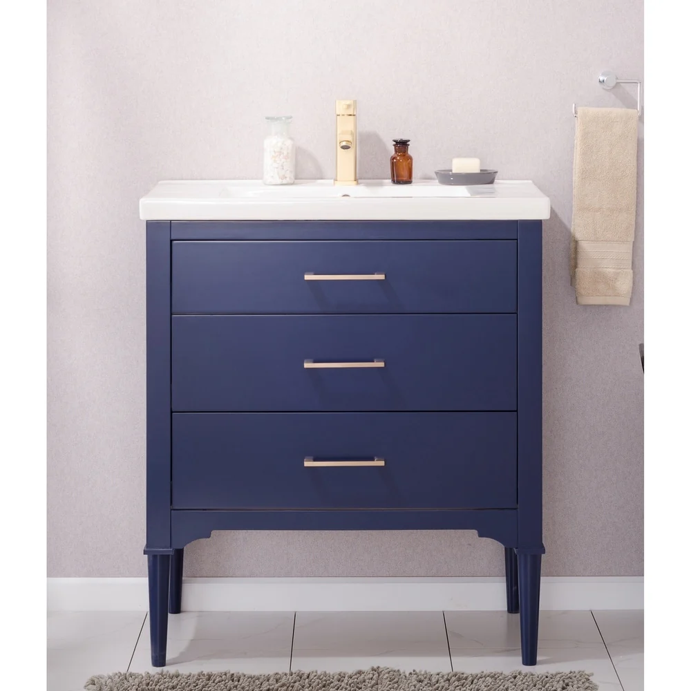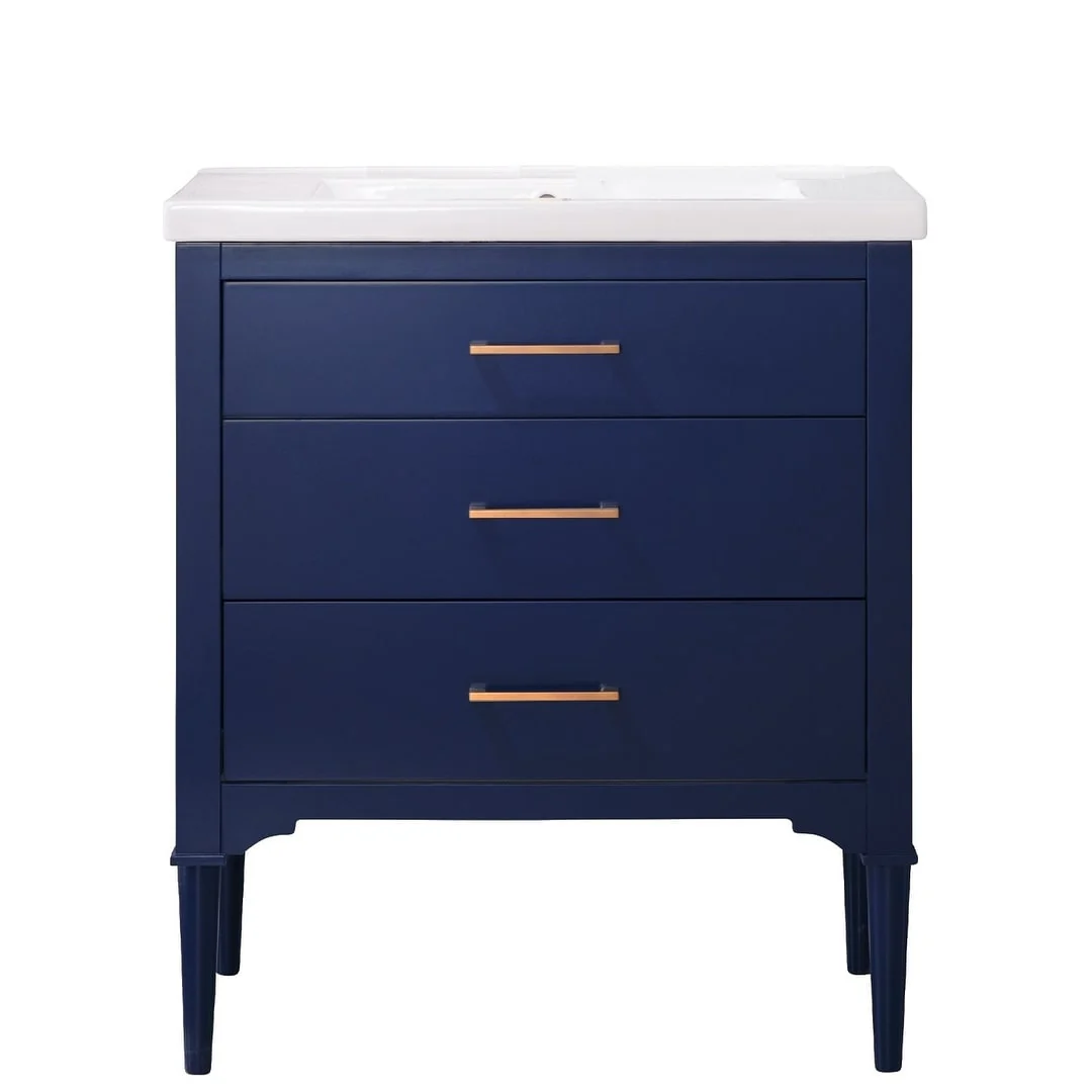 Dark Blue, Gold Trim, White Cultured Marble Top