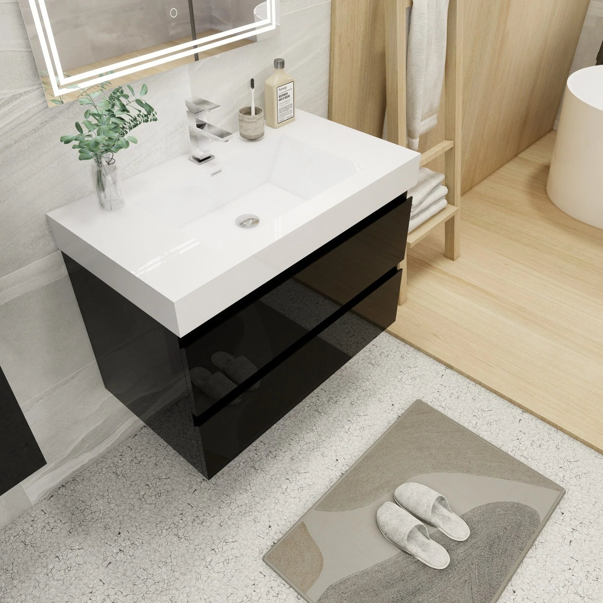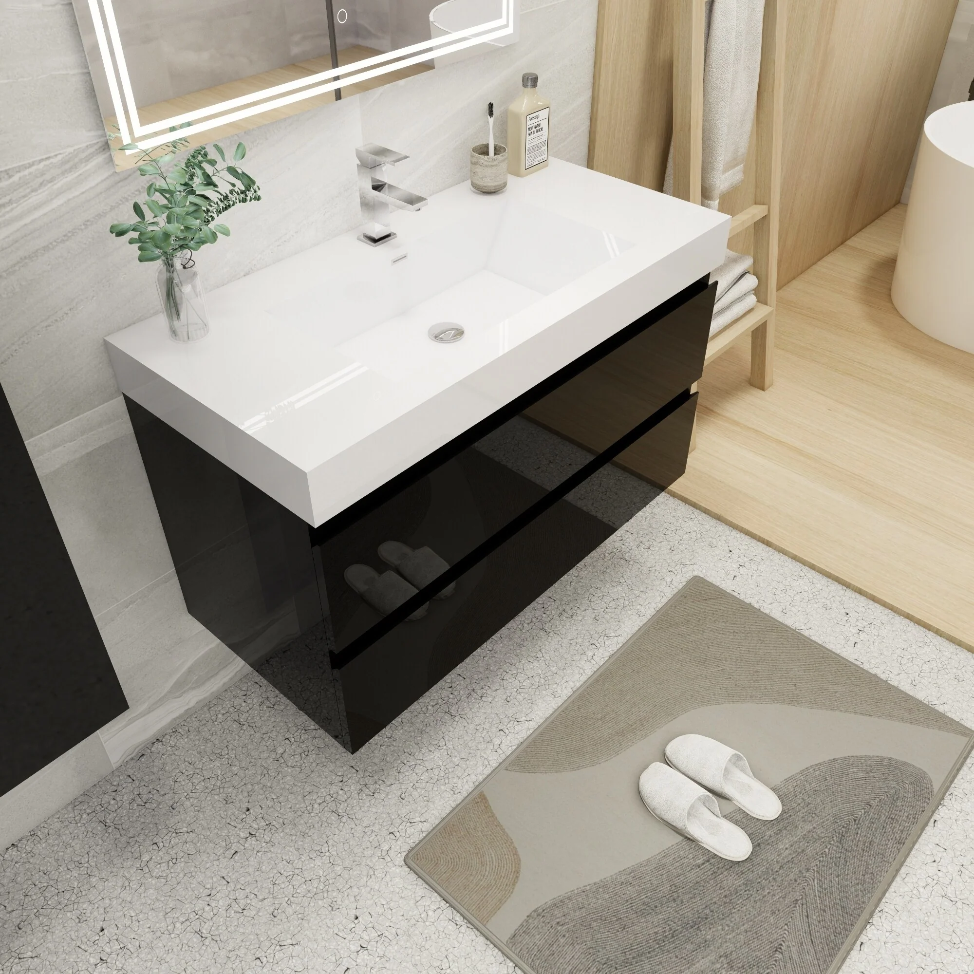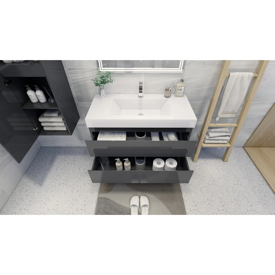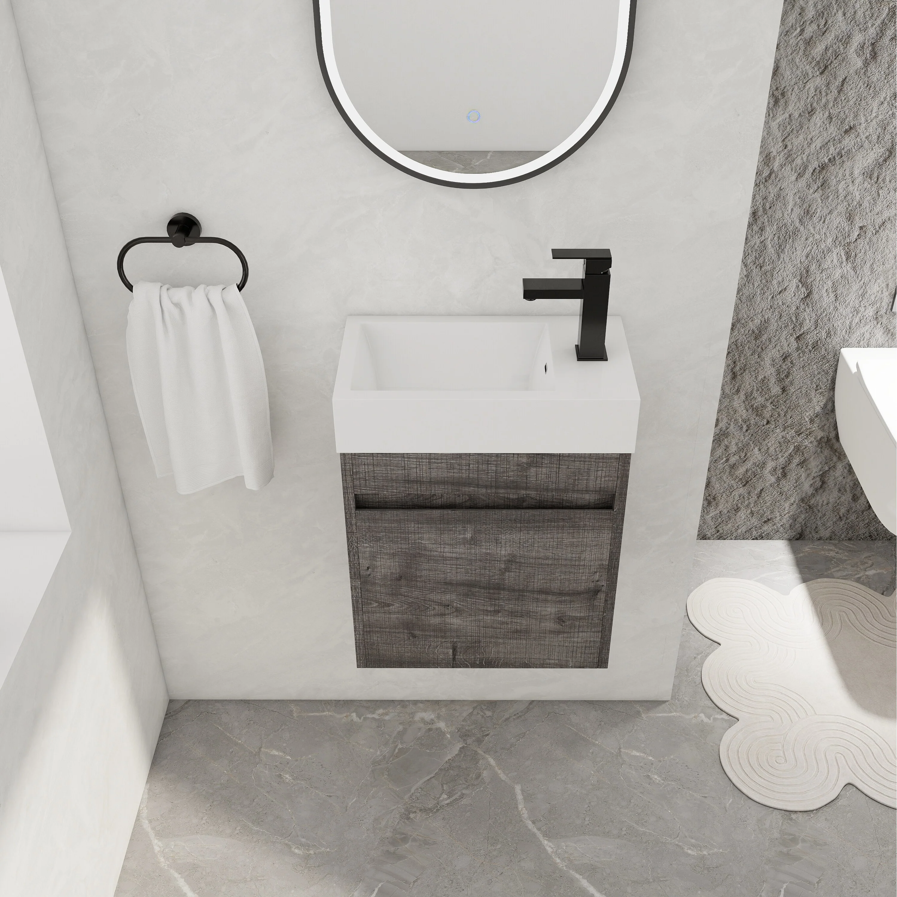 Dark Gray, Black Trim, White Cultured Marble Top