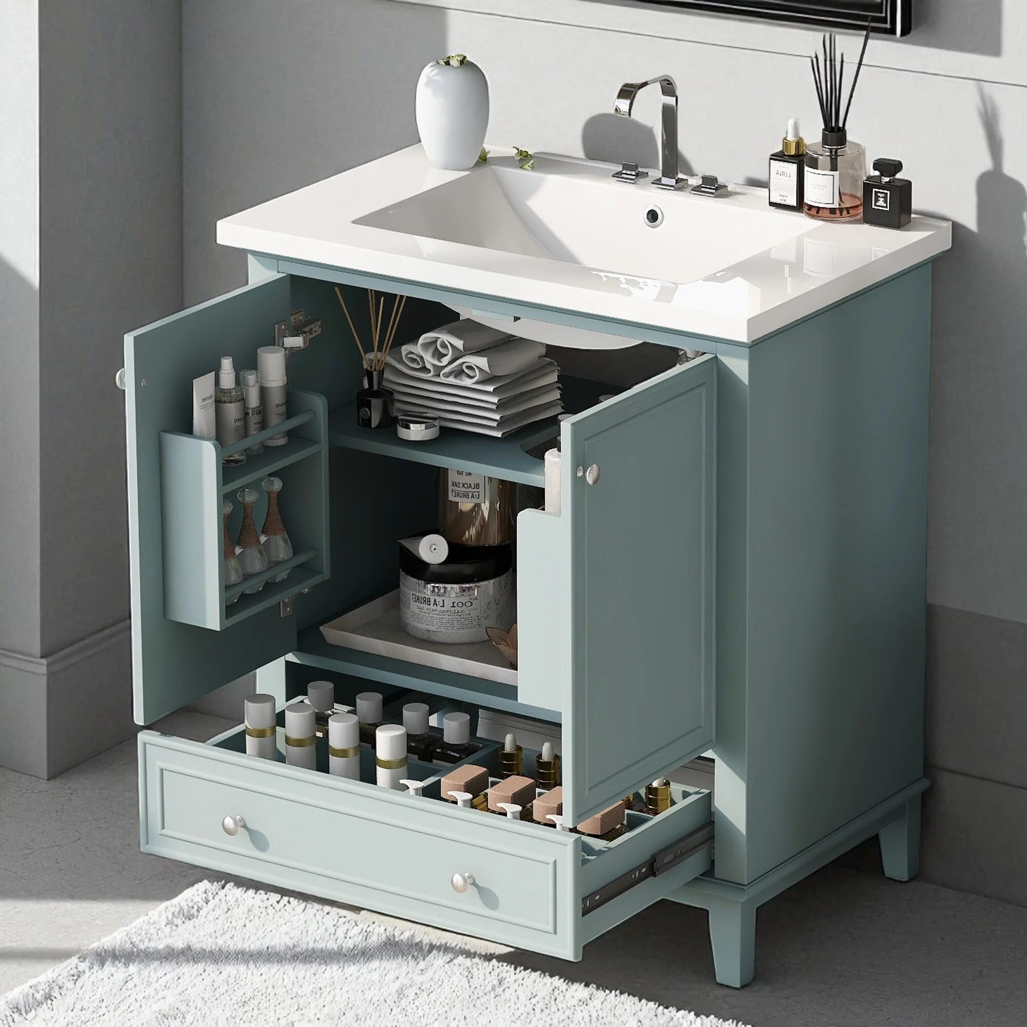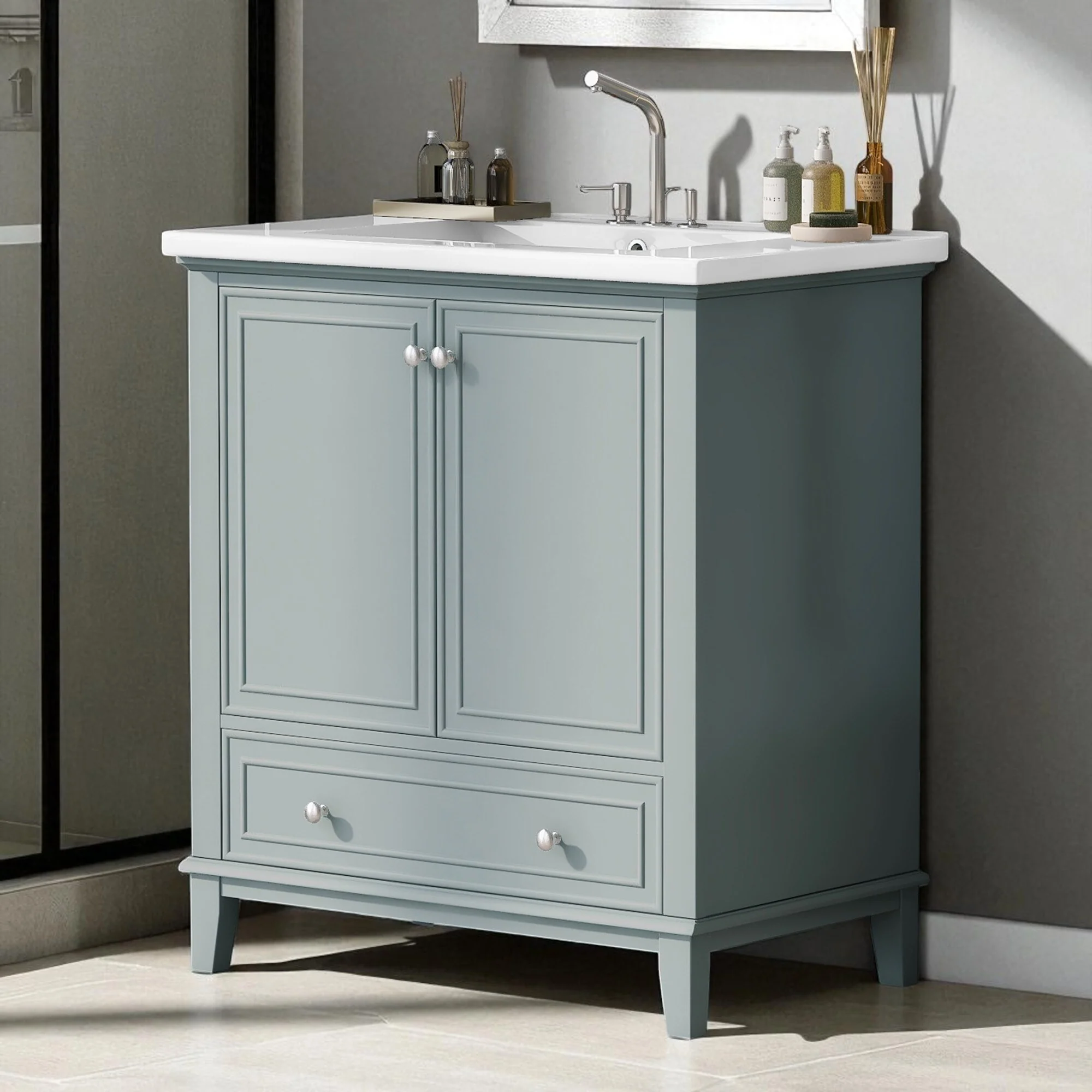 Green, Nickel Trim, White Cultured Marble Top