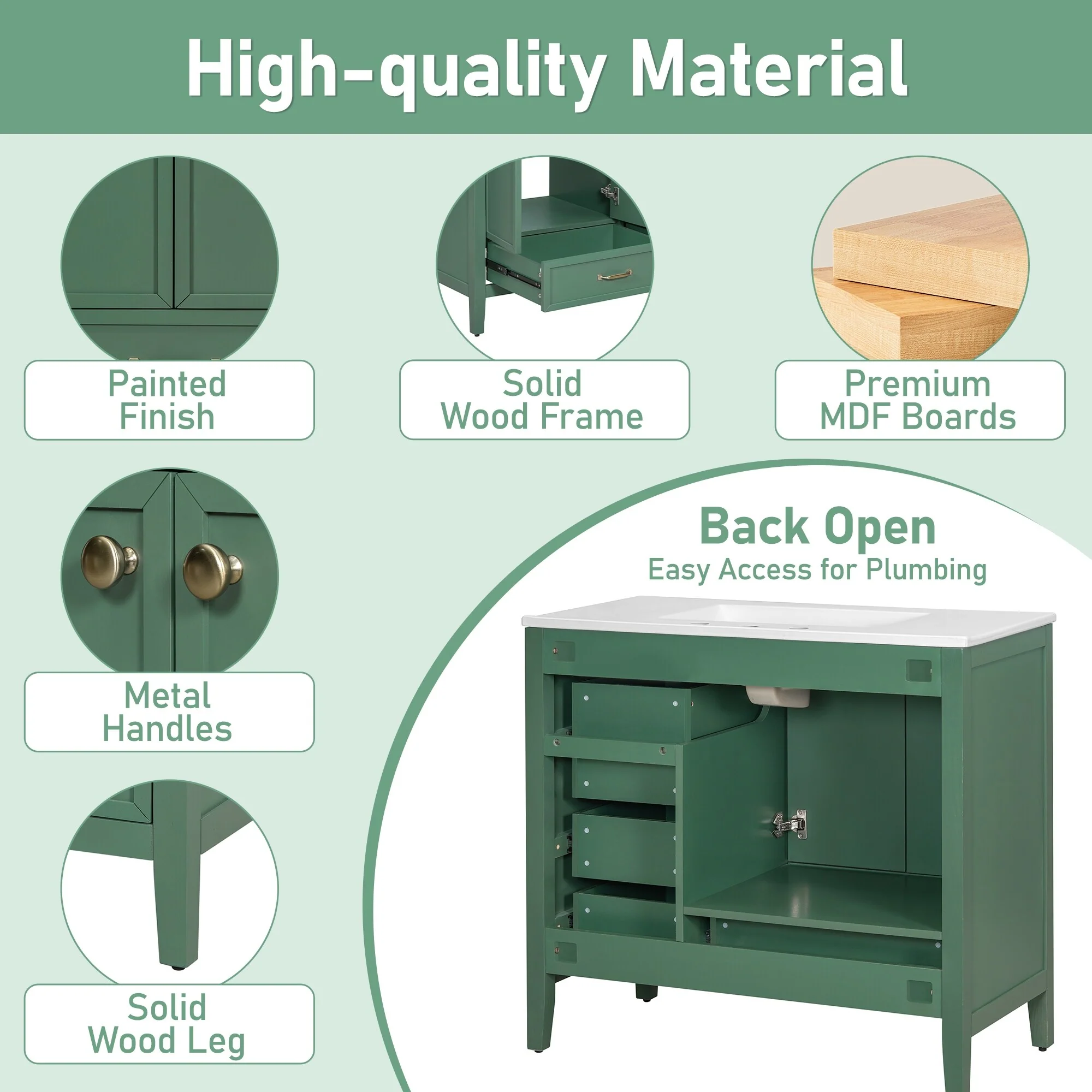 Green, Black Trim, White Cultured Marble Top